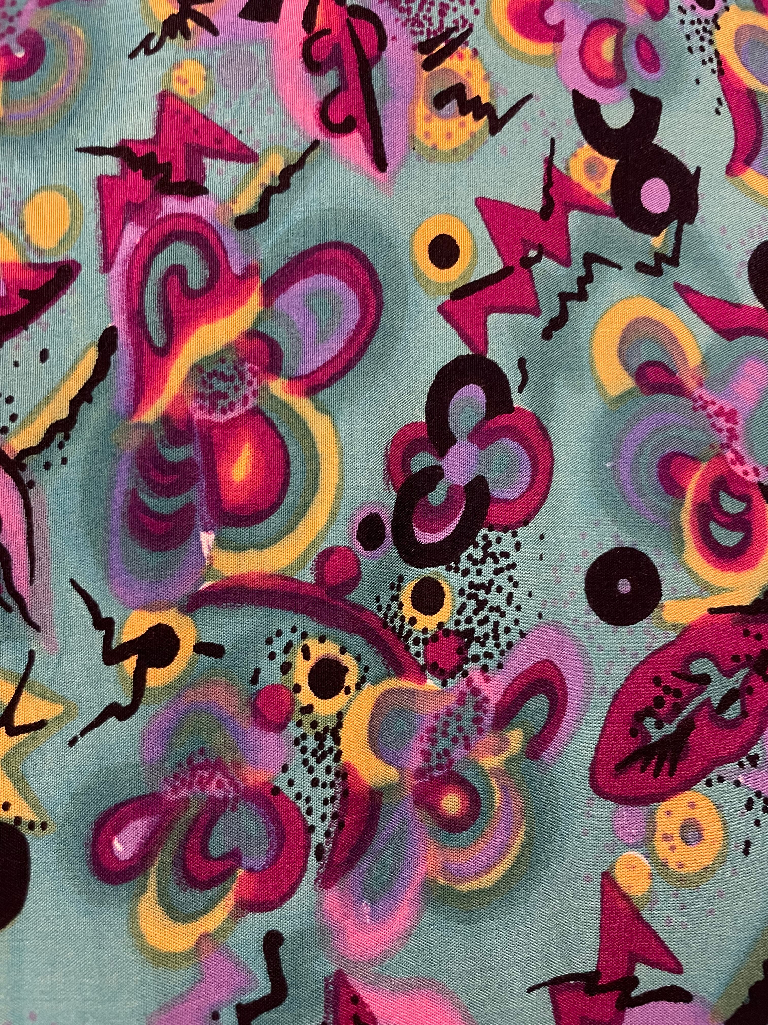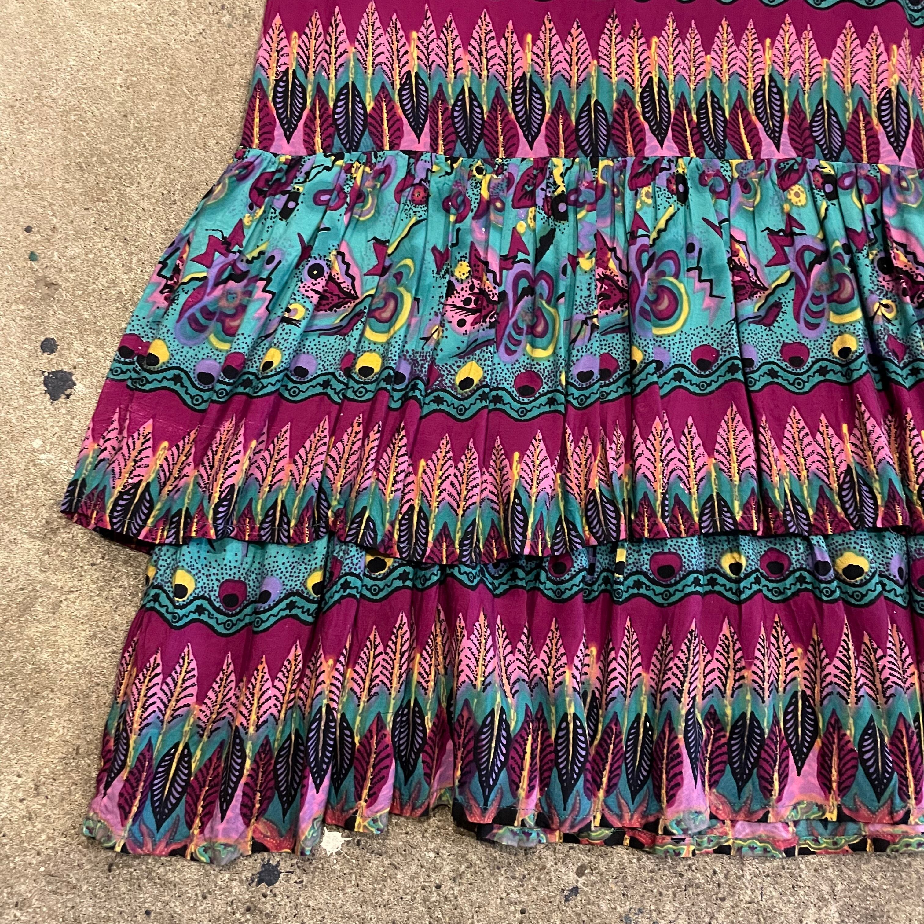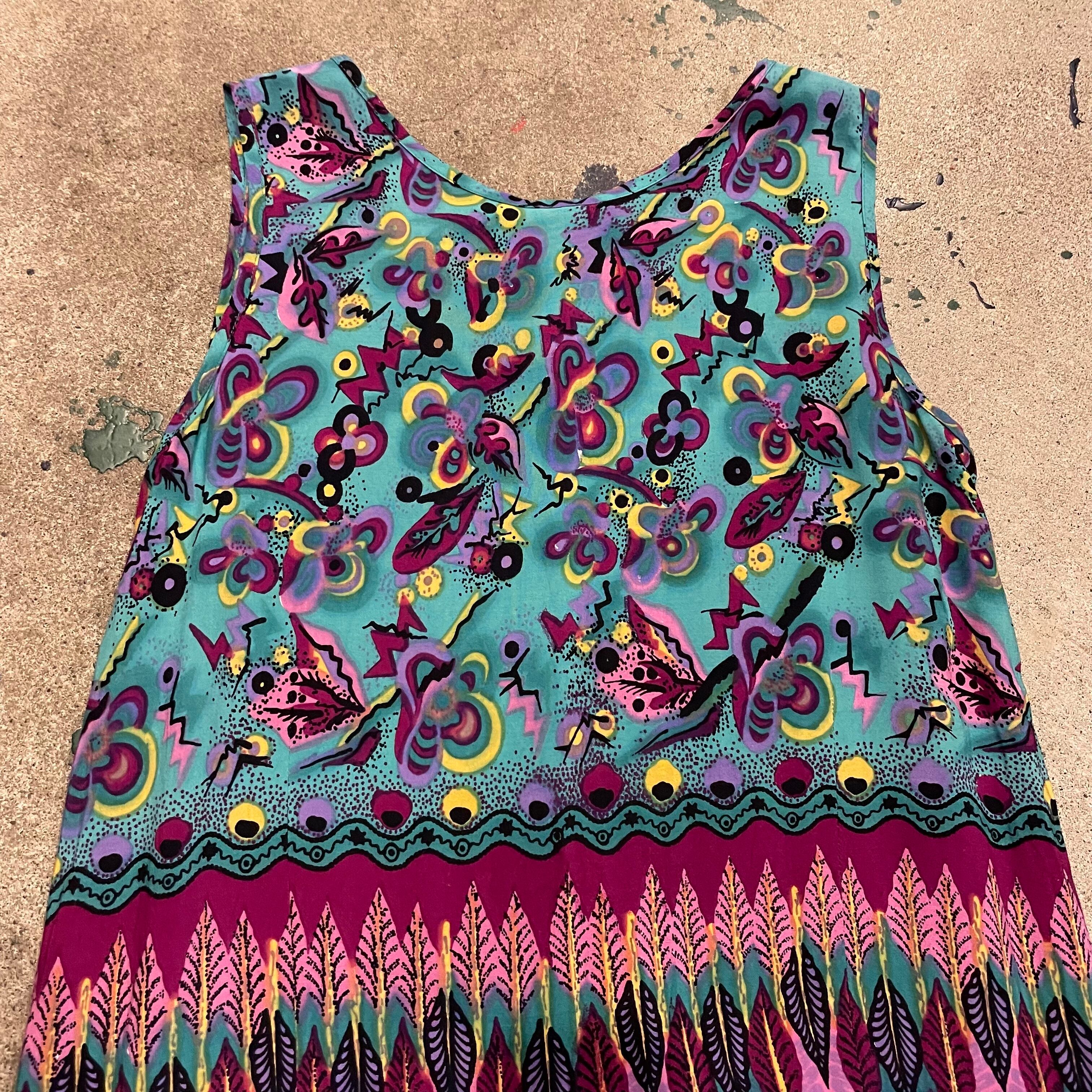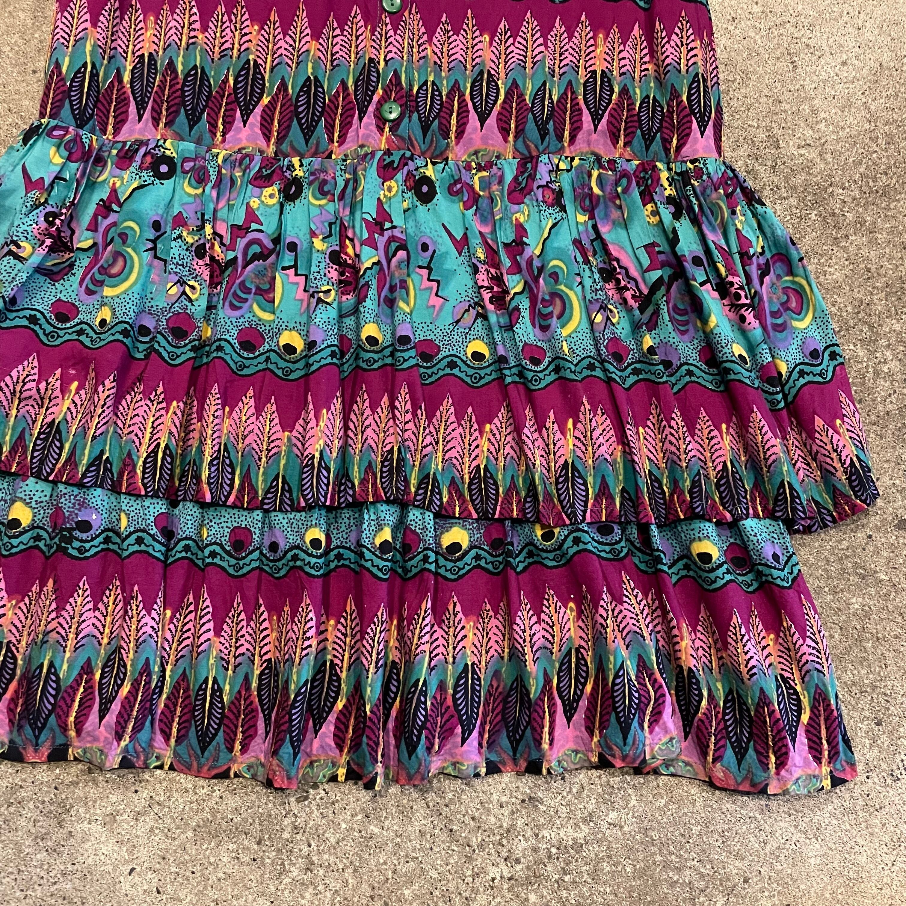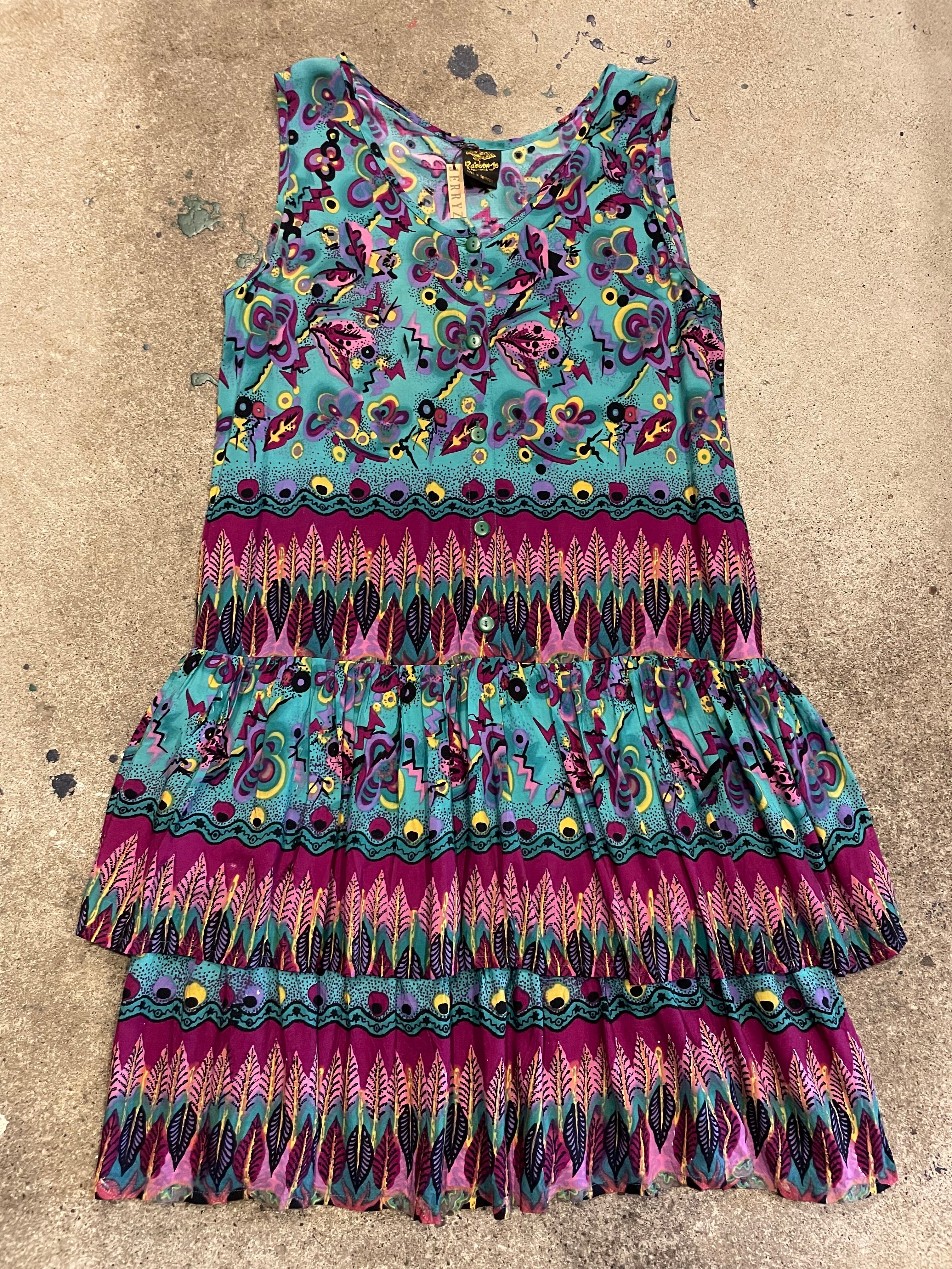 エメラルドグリーン×赤紫な色味がかわいいレーヨン素材のワンピースです。