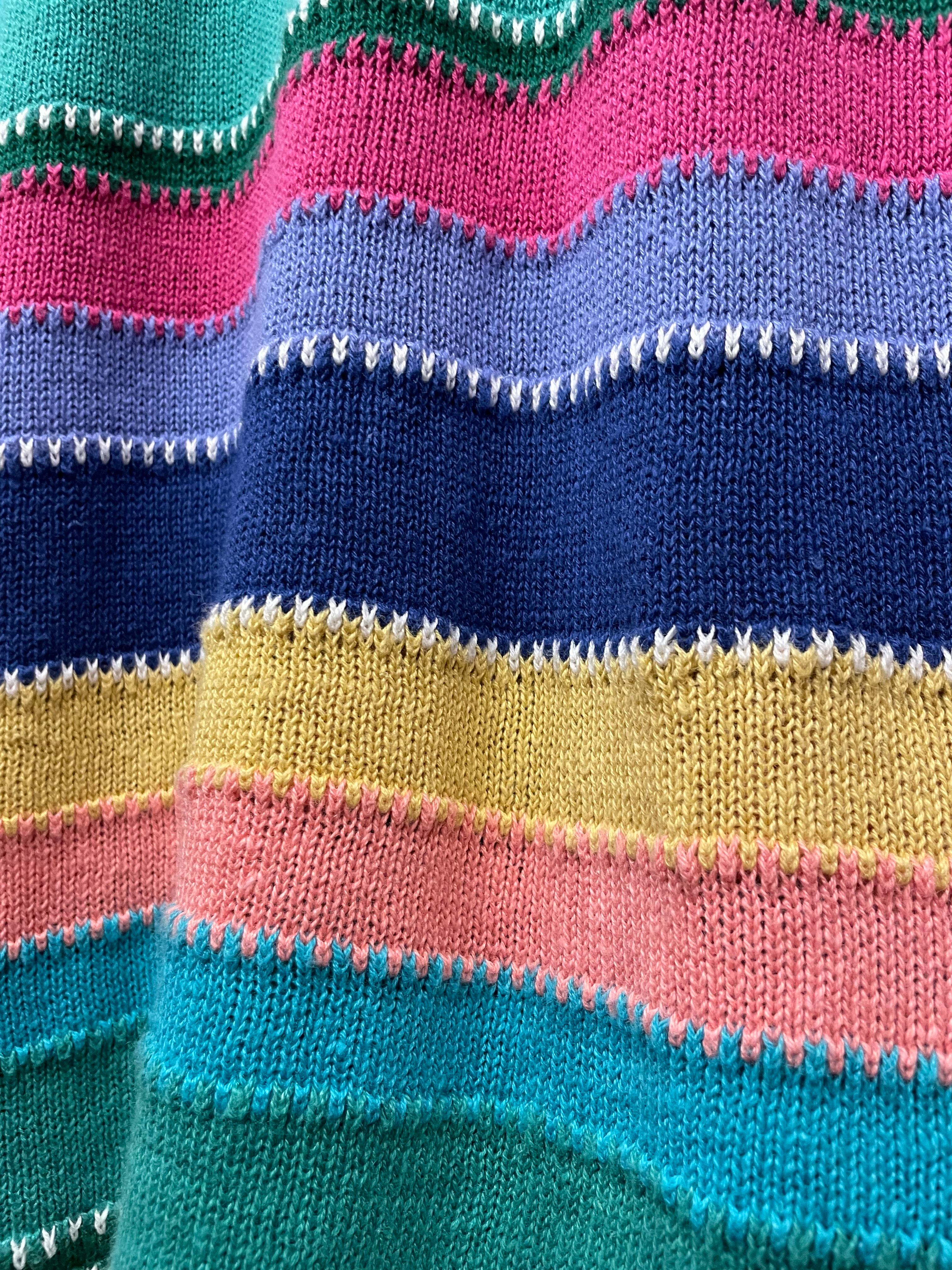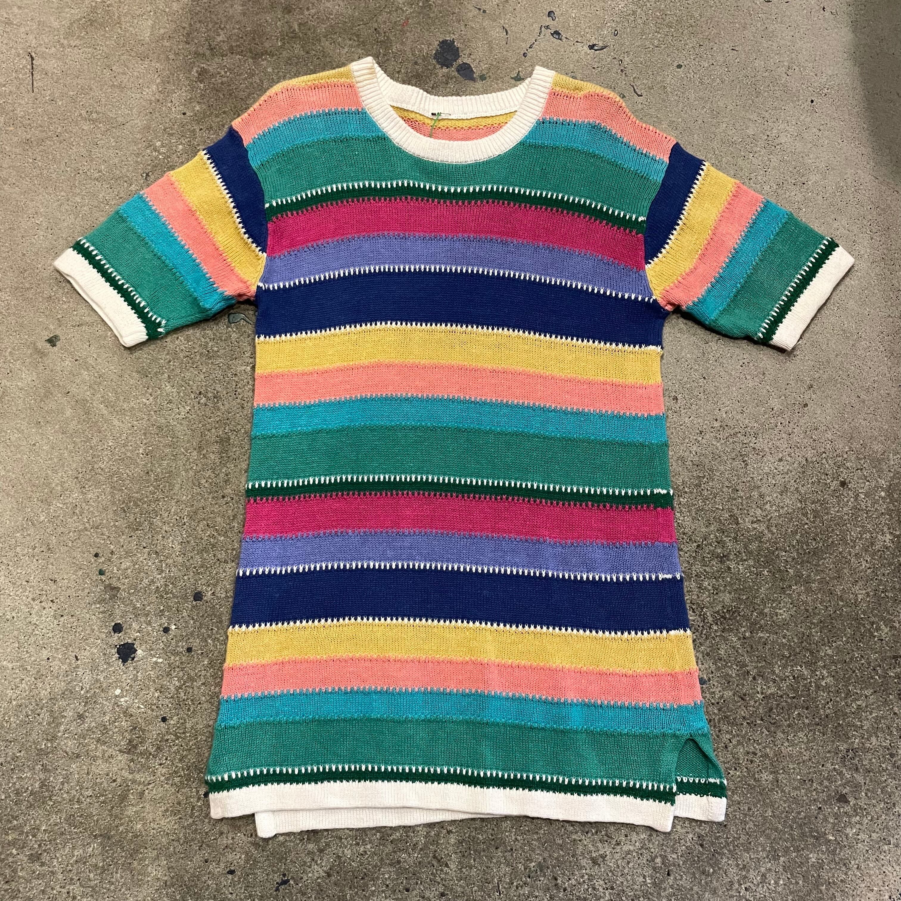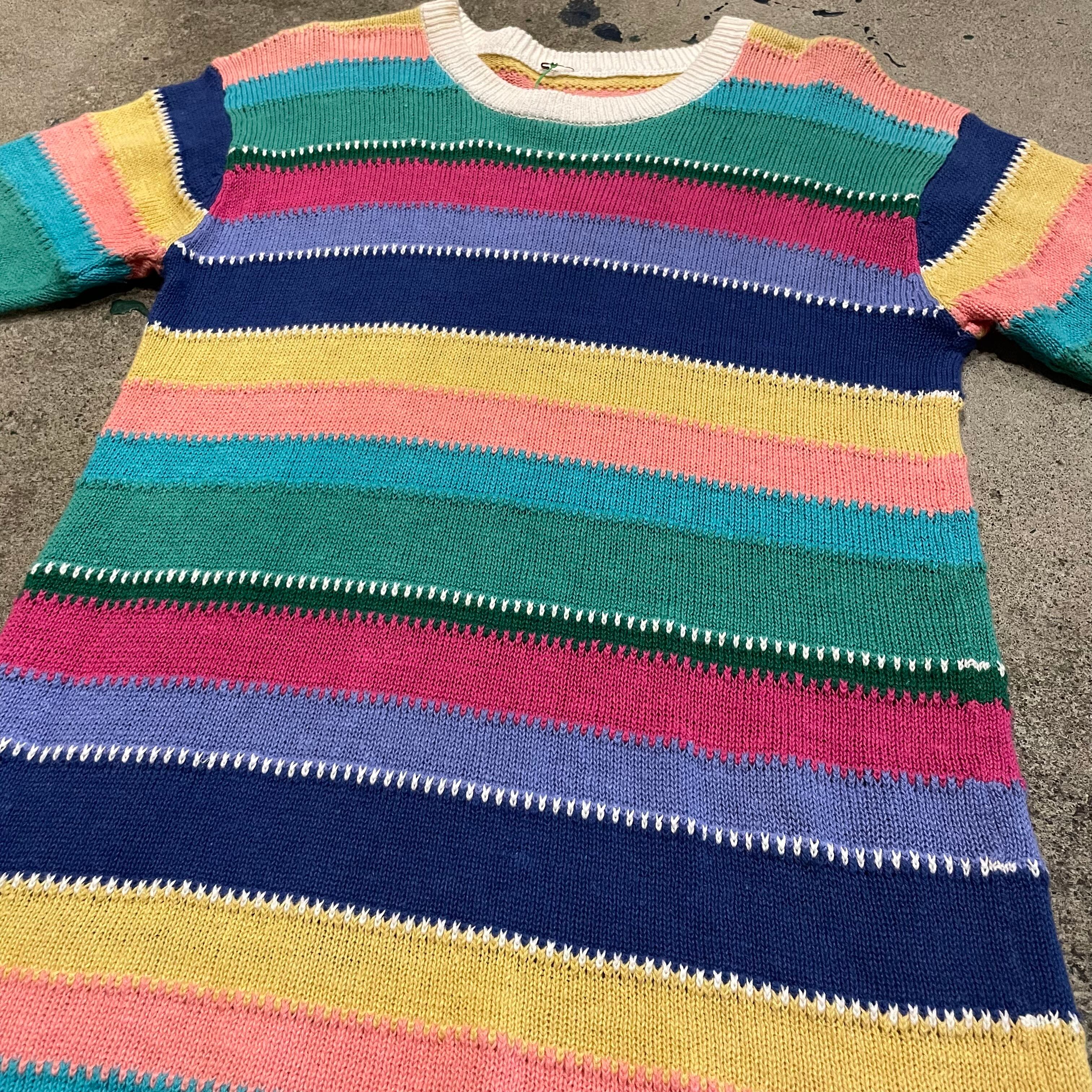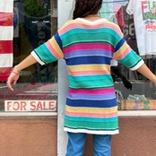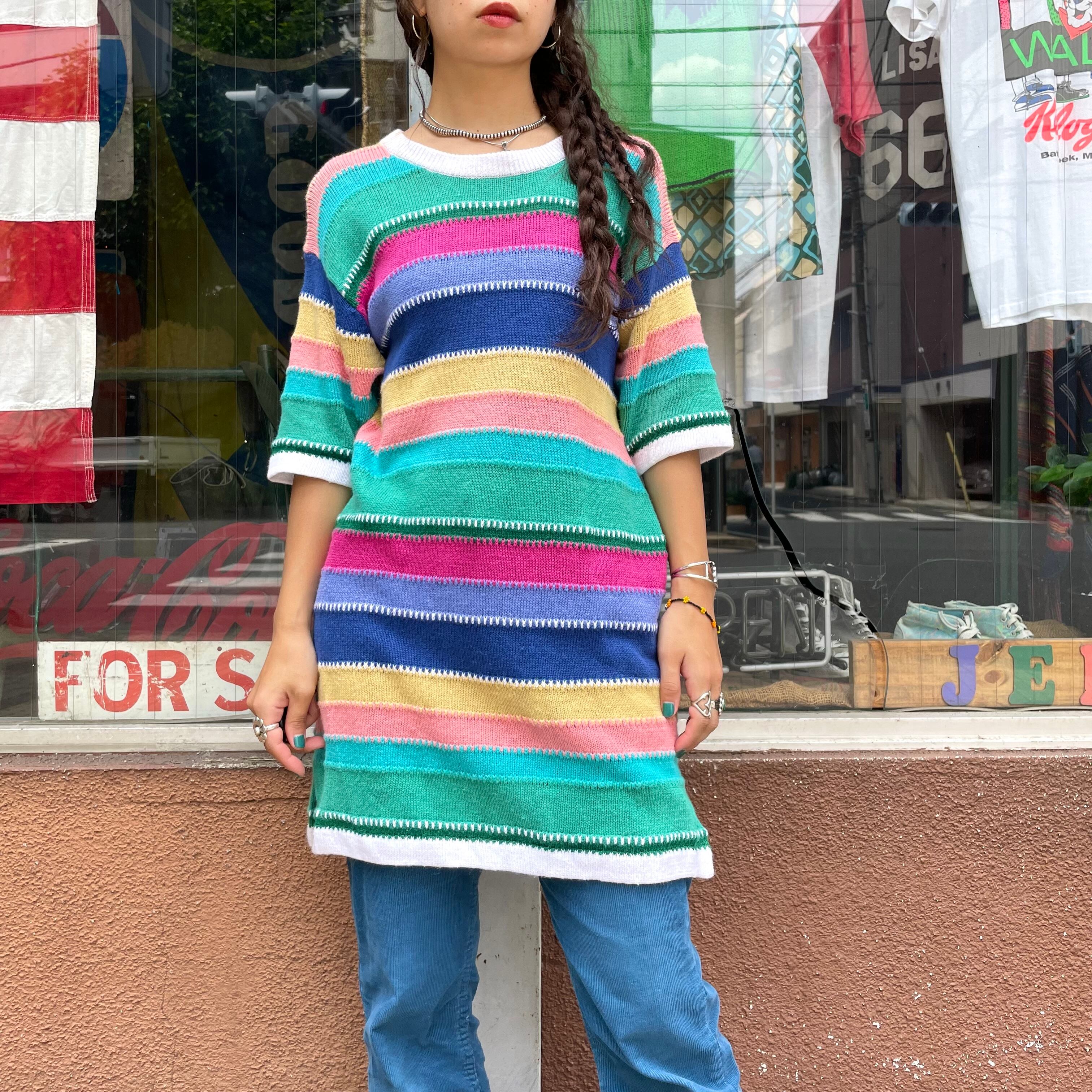 カラフルなボーダーがかわいいニットワンピースです。ハッピーな色味が良いですね!