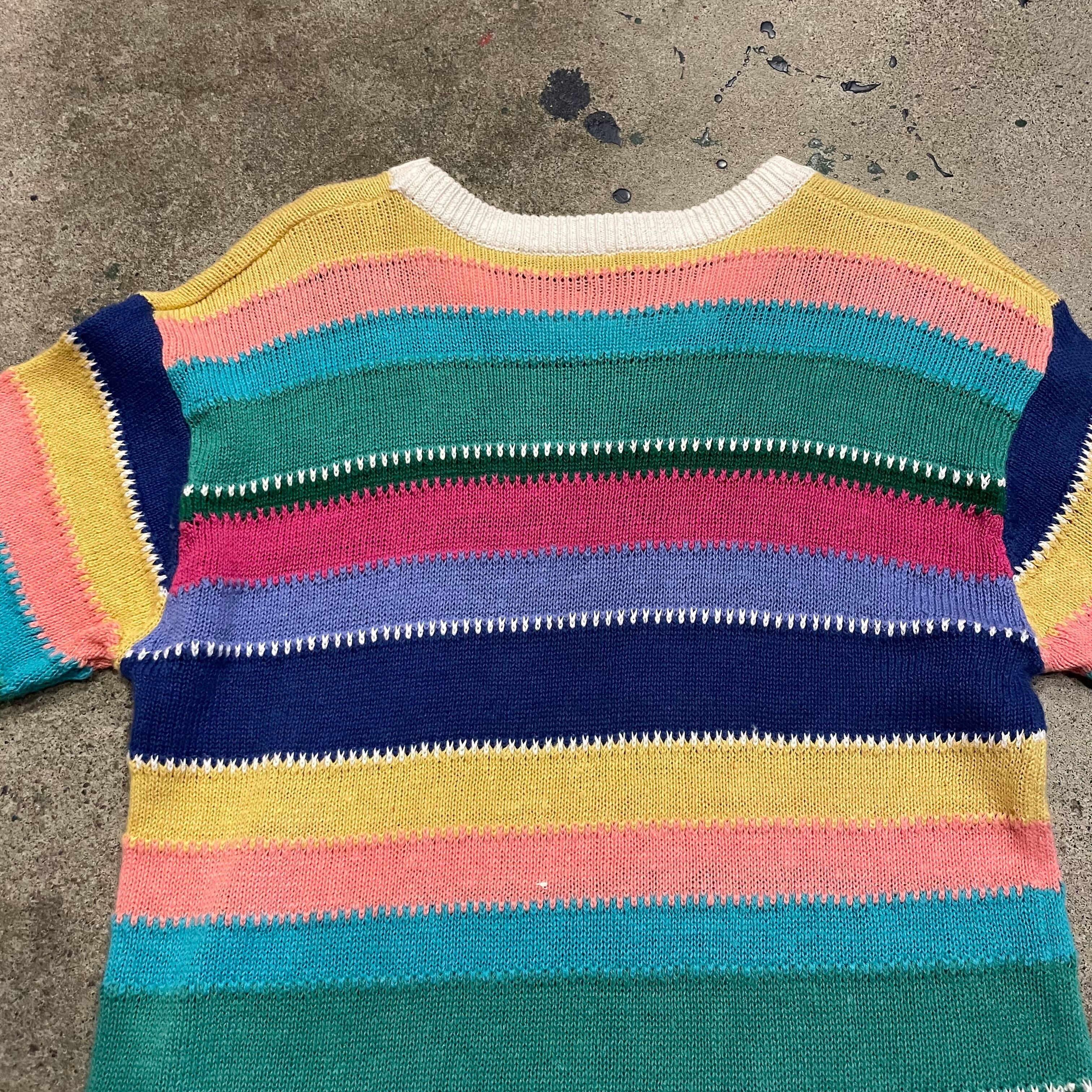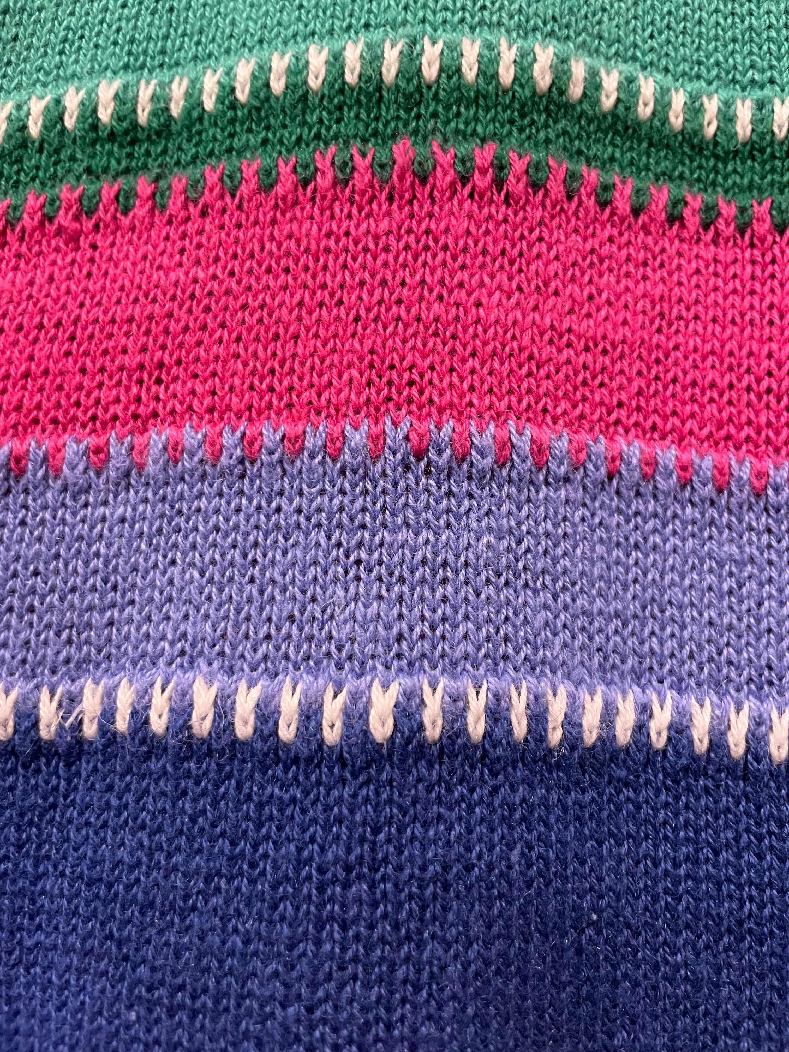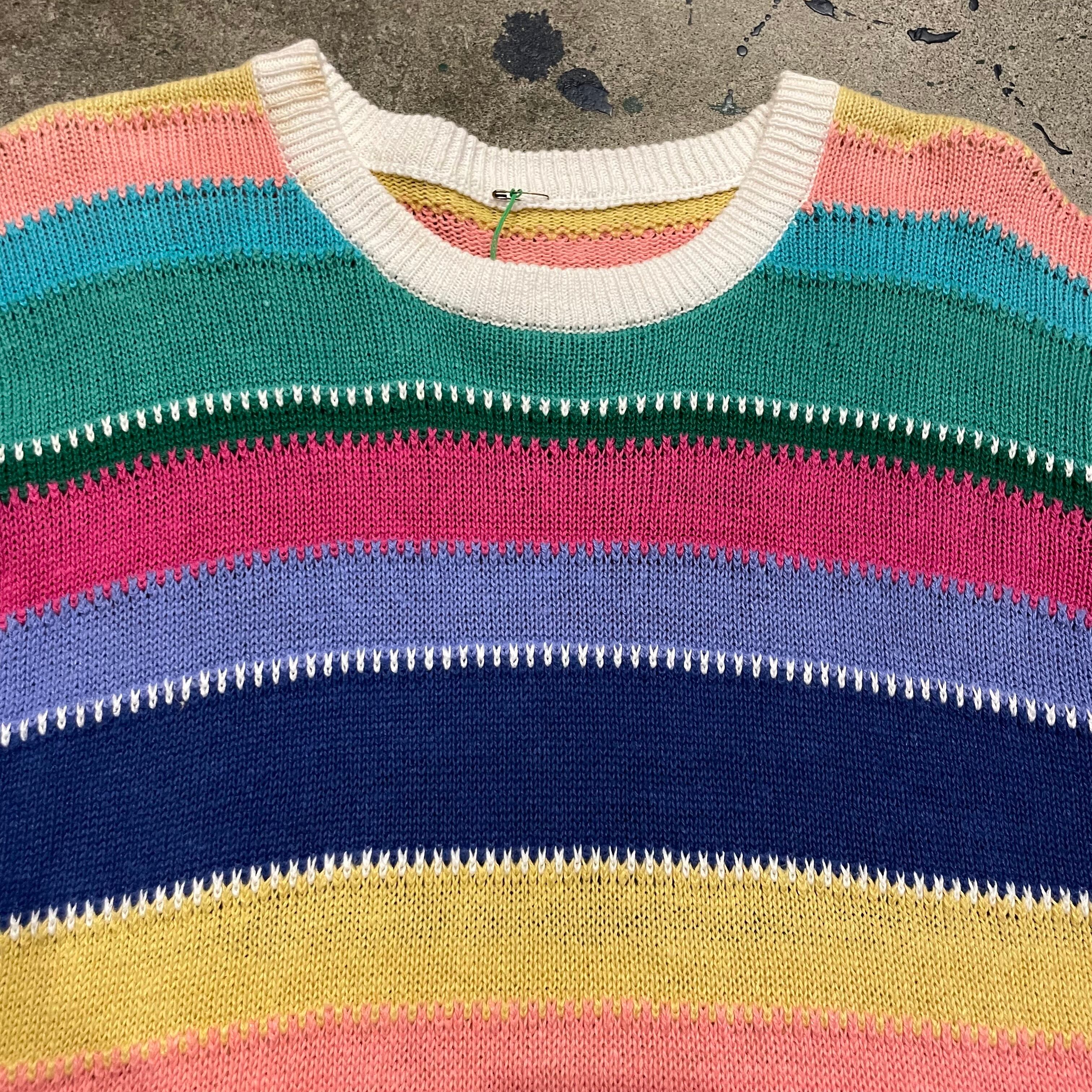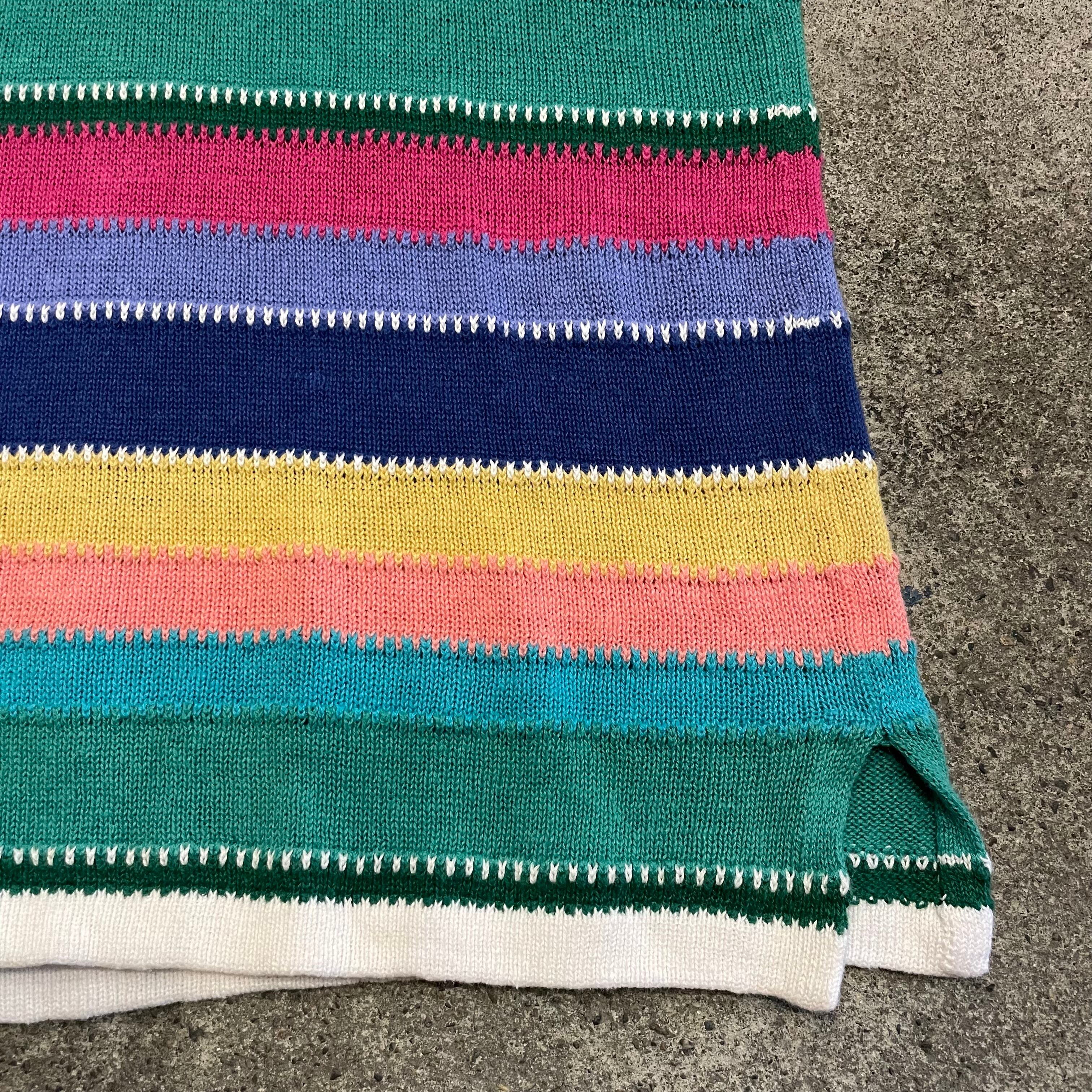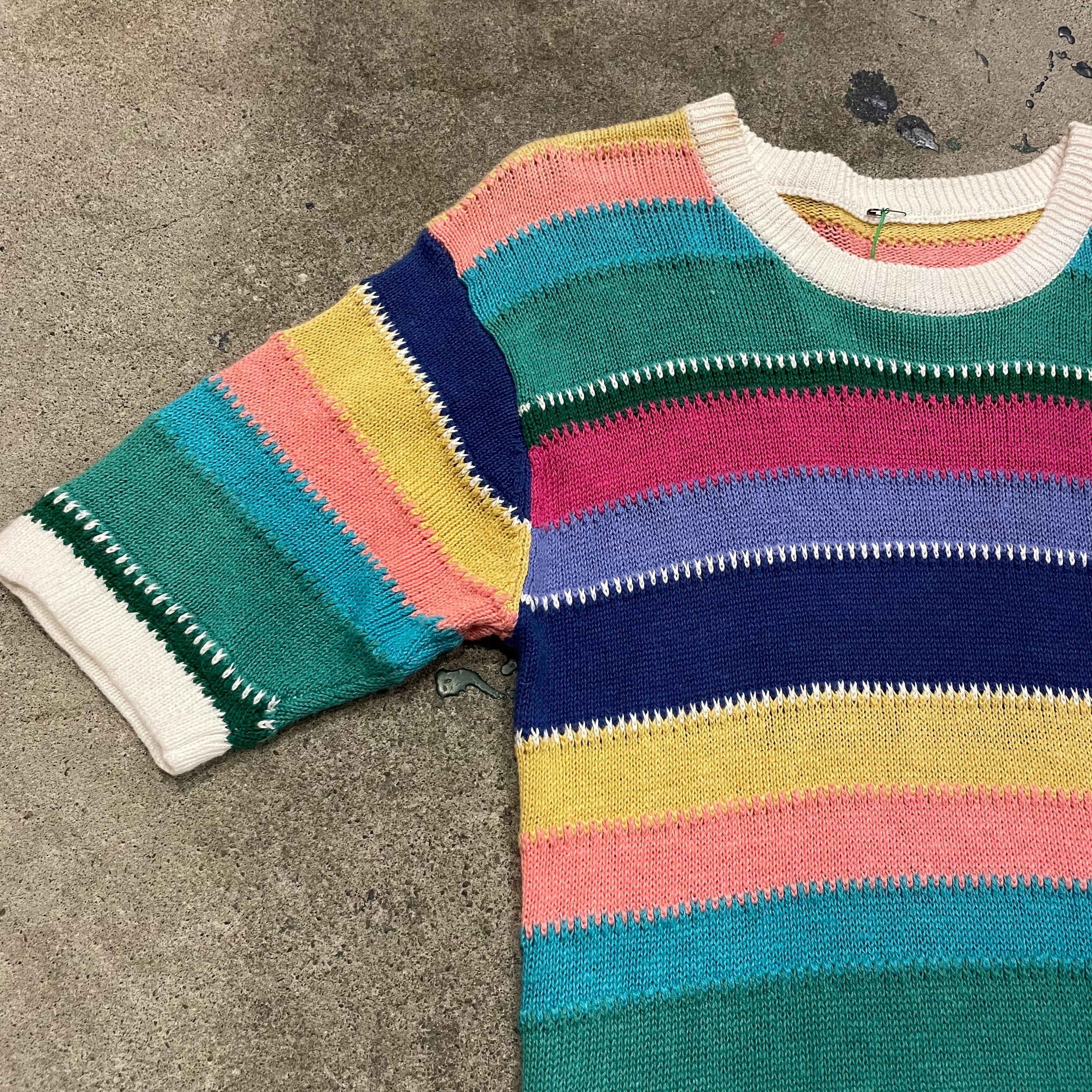 カラフルなボーダーがかわいいニットワンピースです。ハッピーな色味が良いですね!
