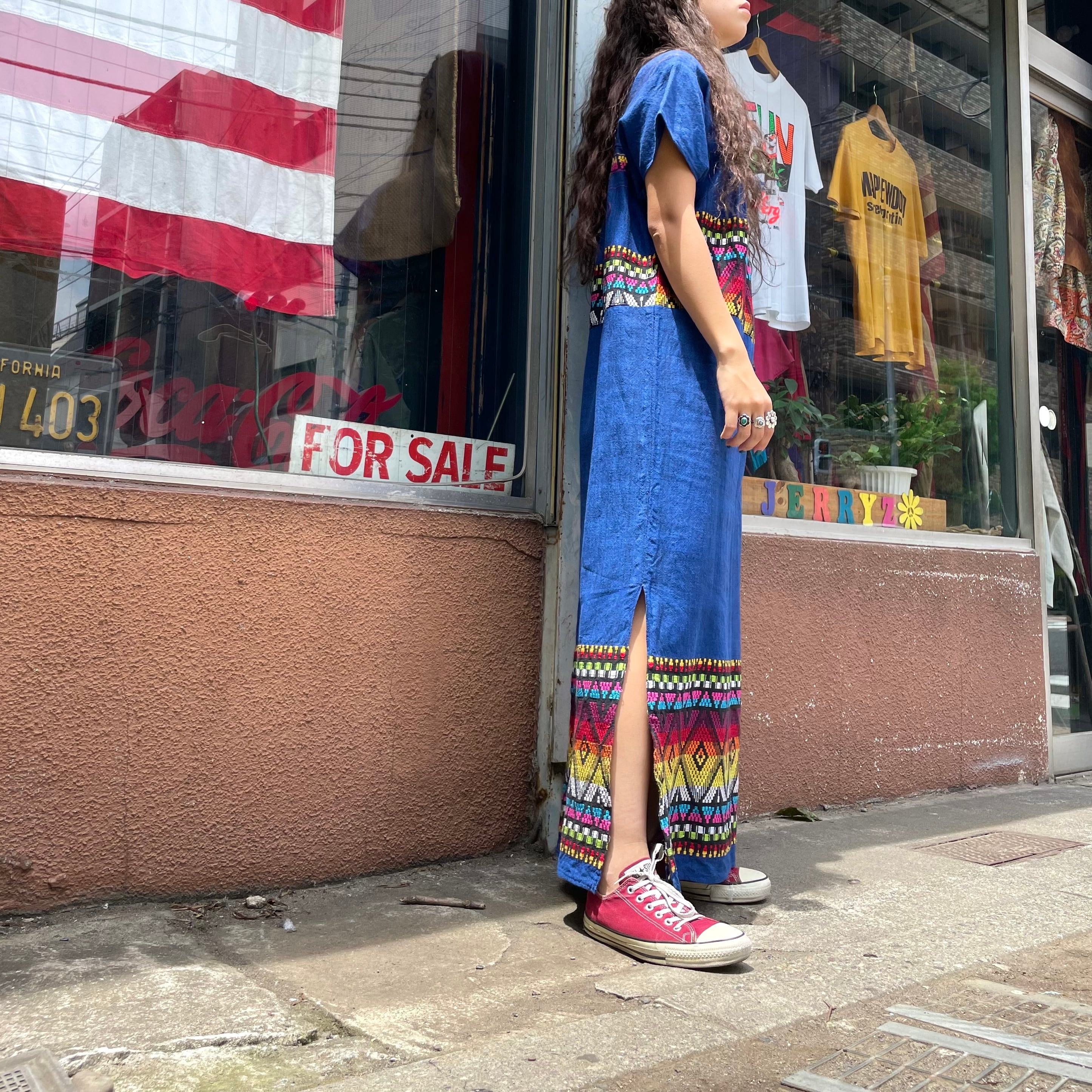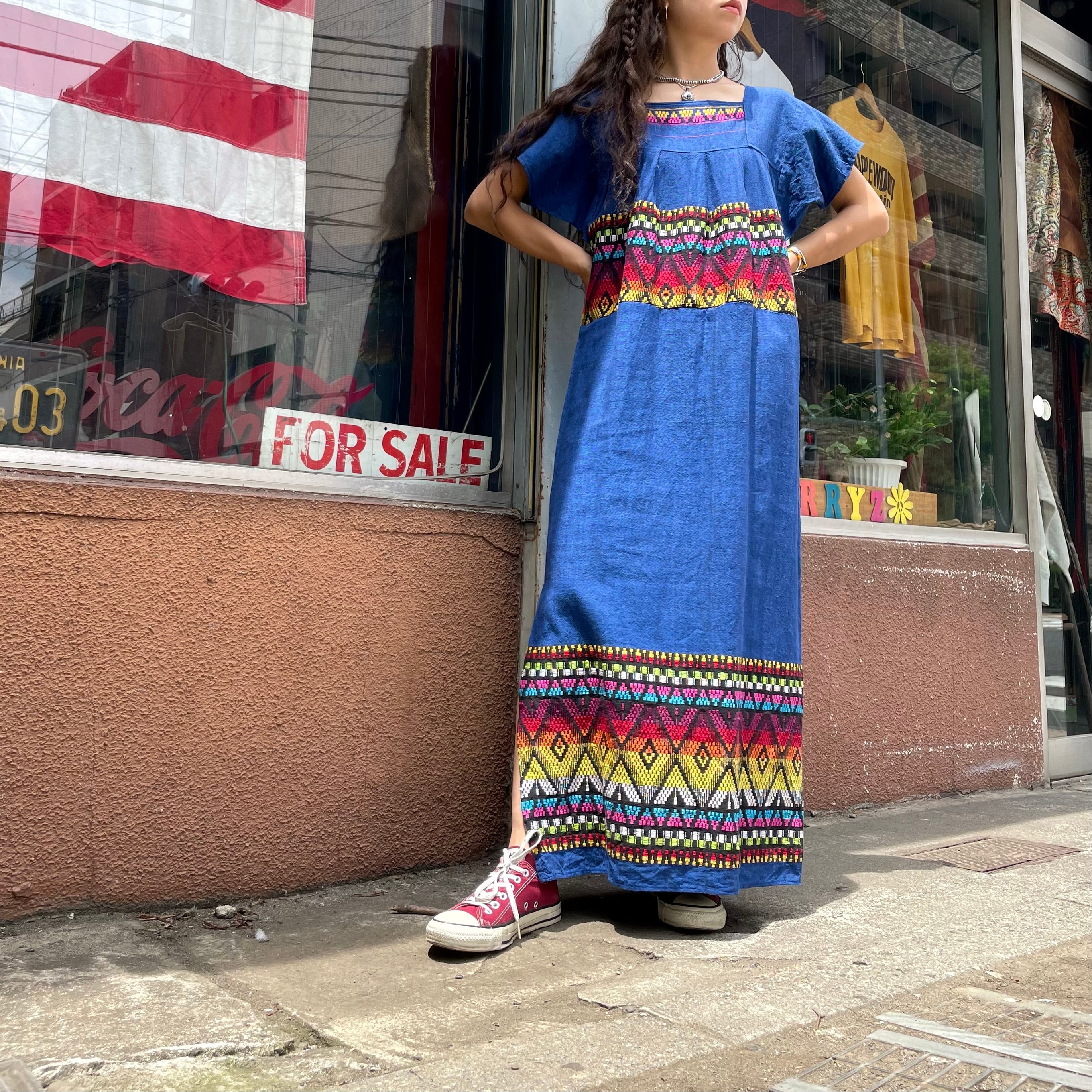 色鮮やかな織りがとても素敵な、ガテマラっぽい雰囲気のワンピースです。