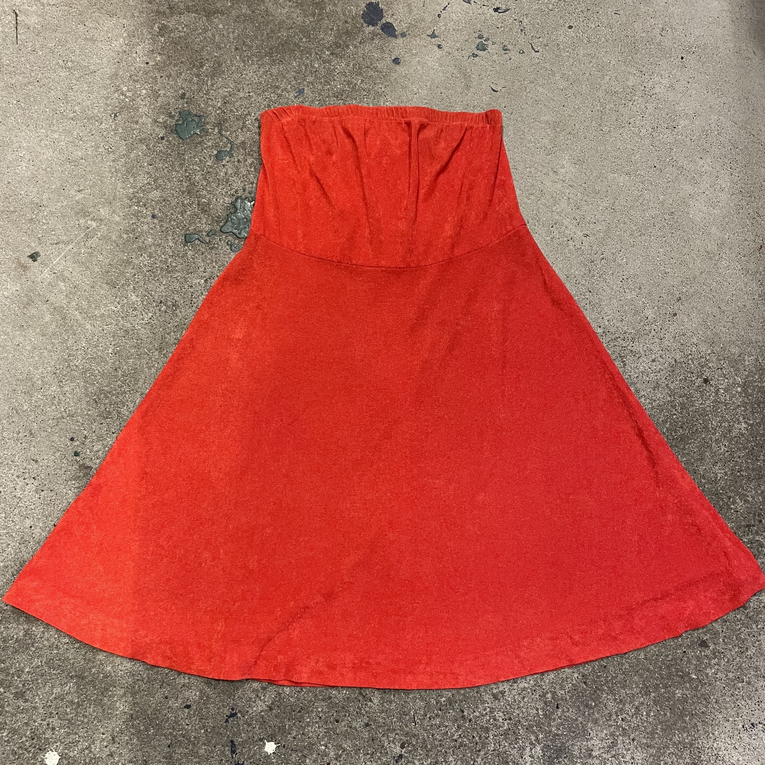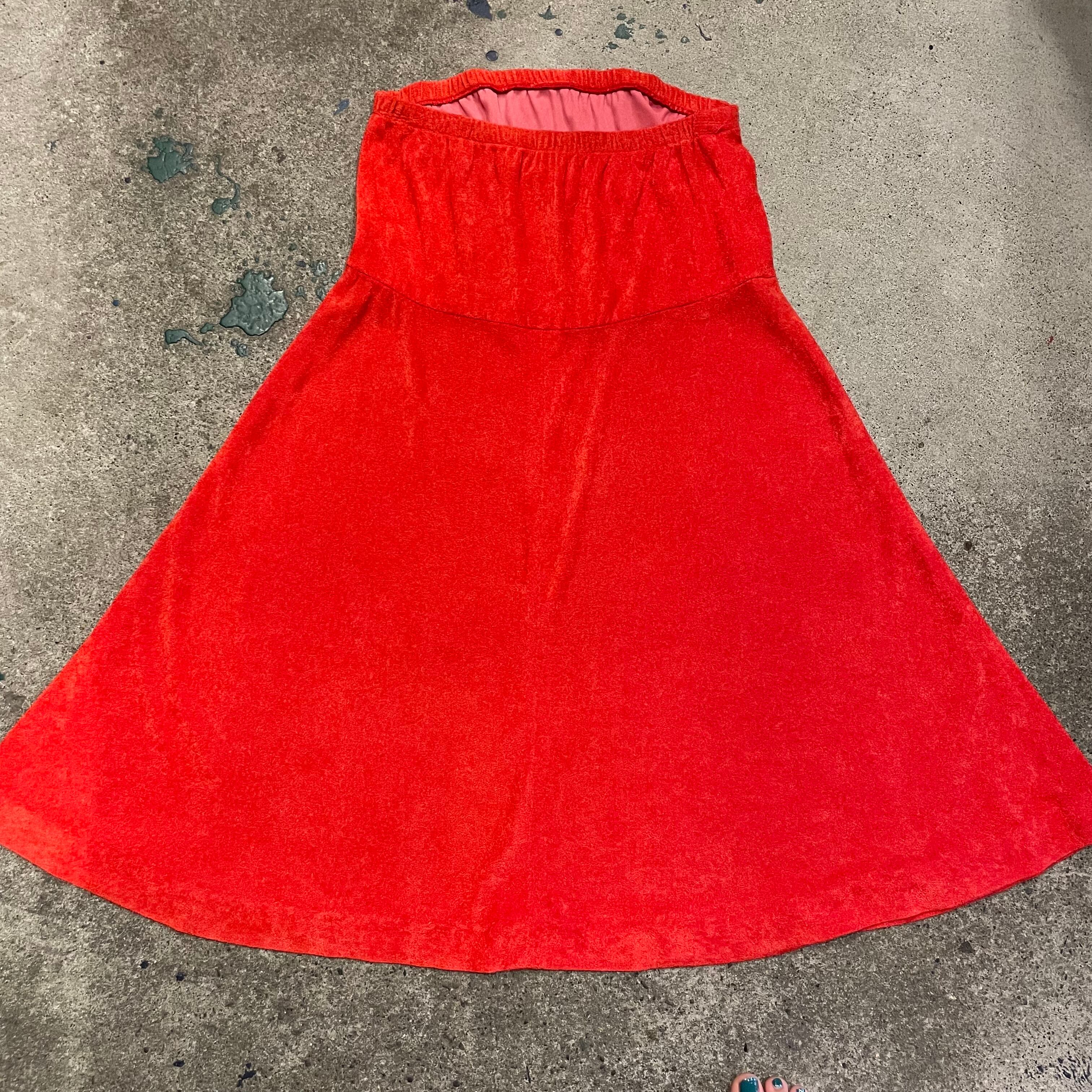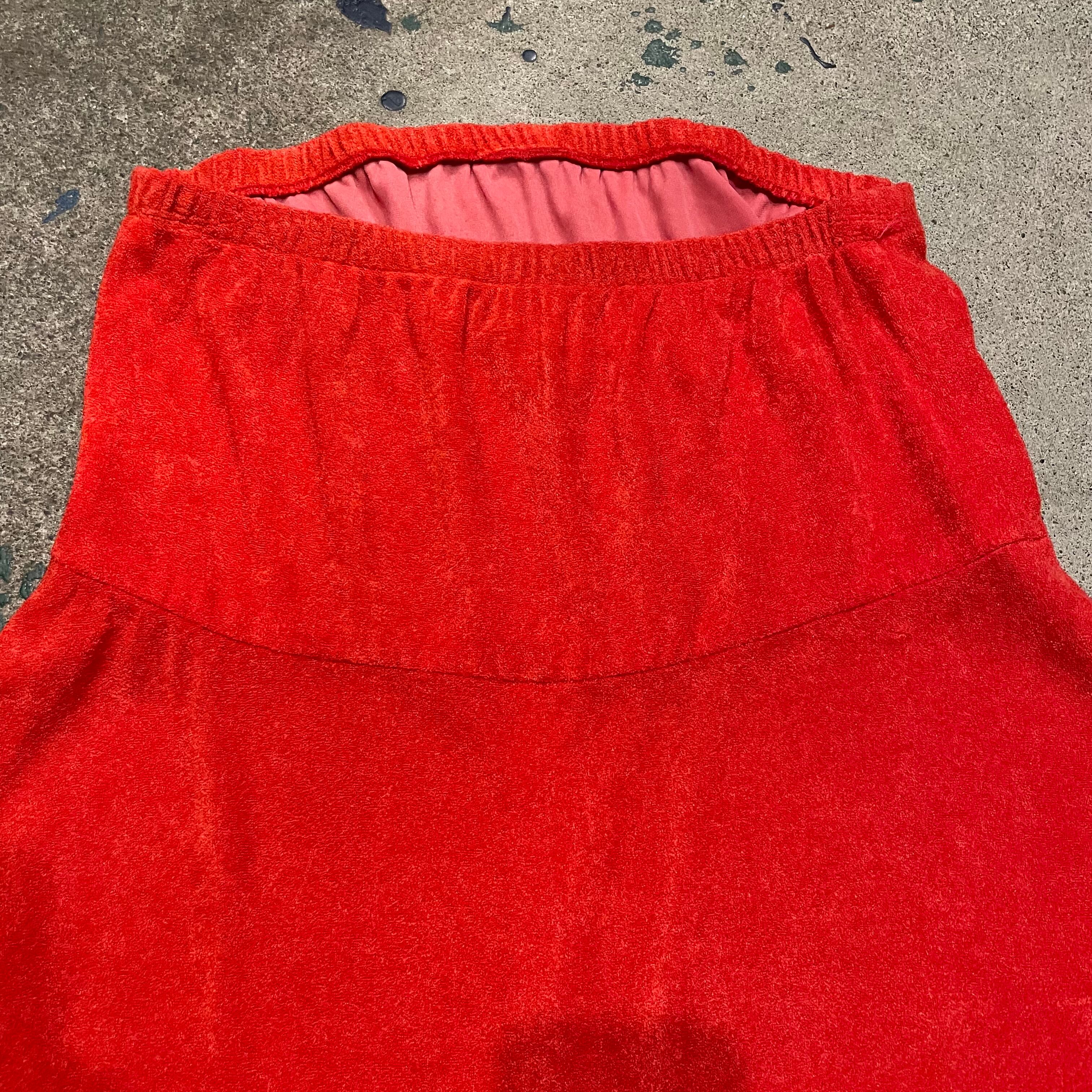 70年代のものによく見受けられるペラッとしたパイル地のベアトップワンピースです。