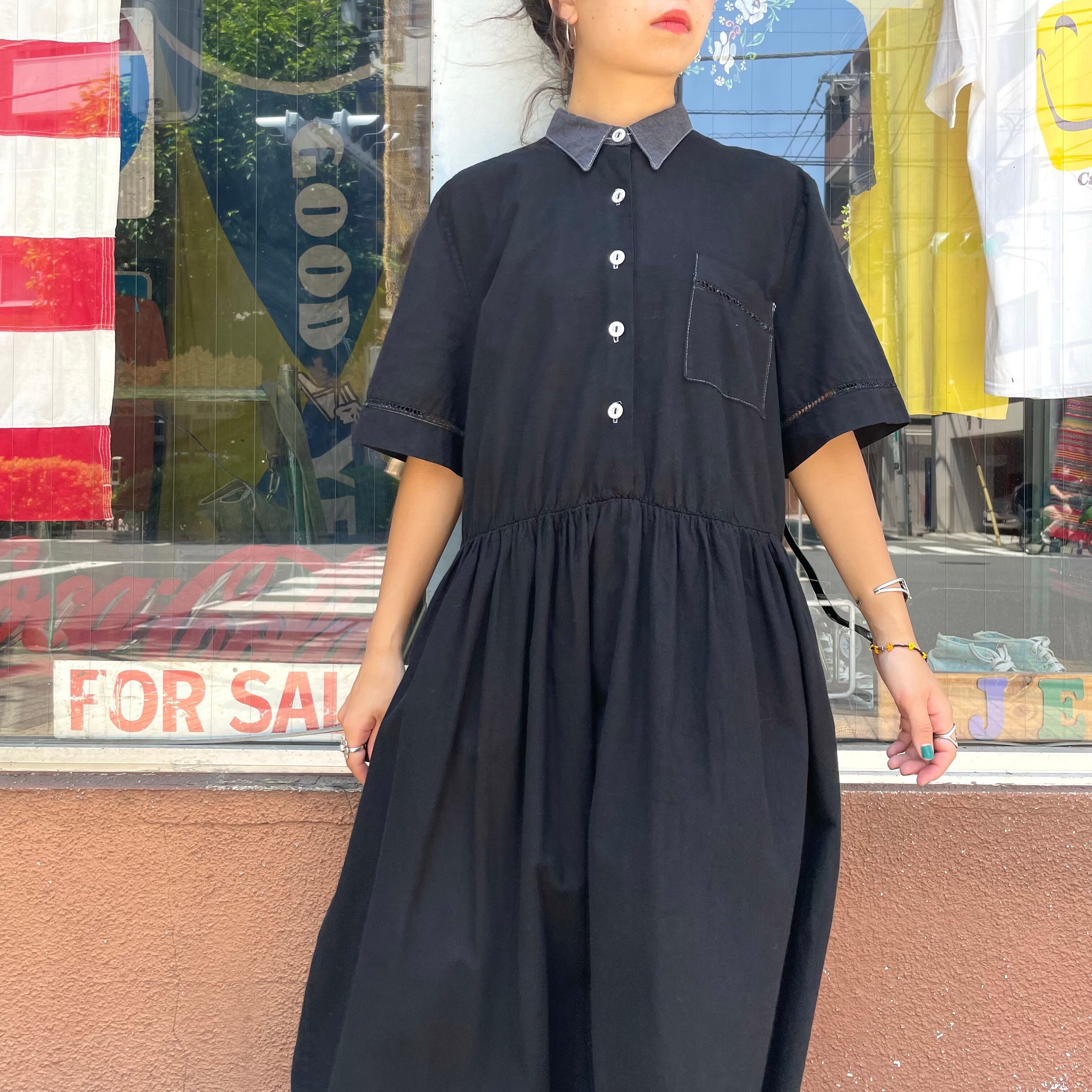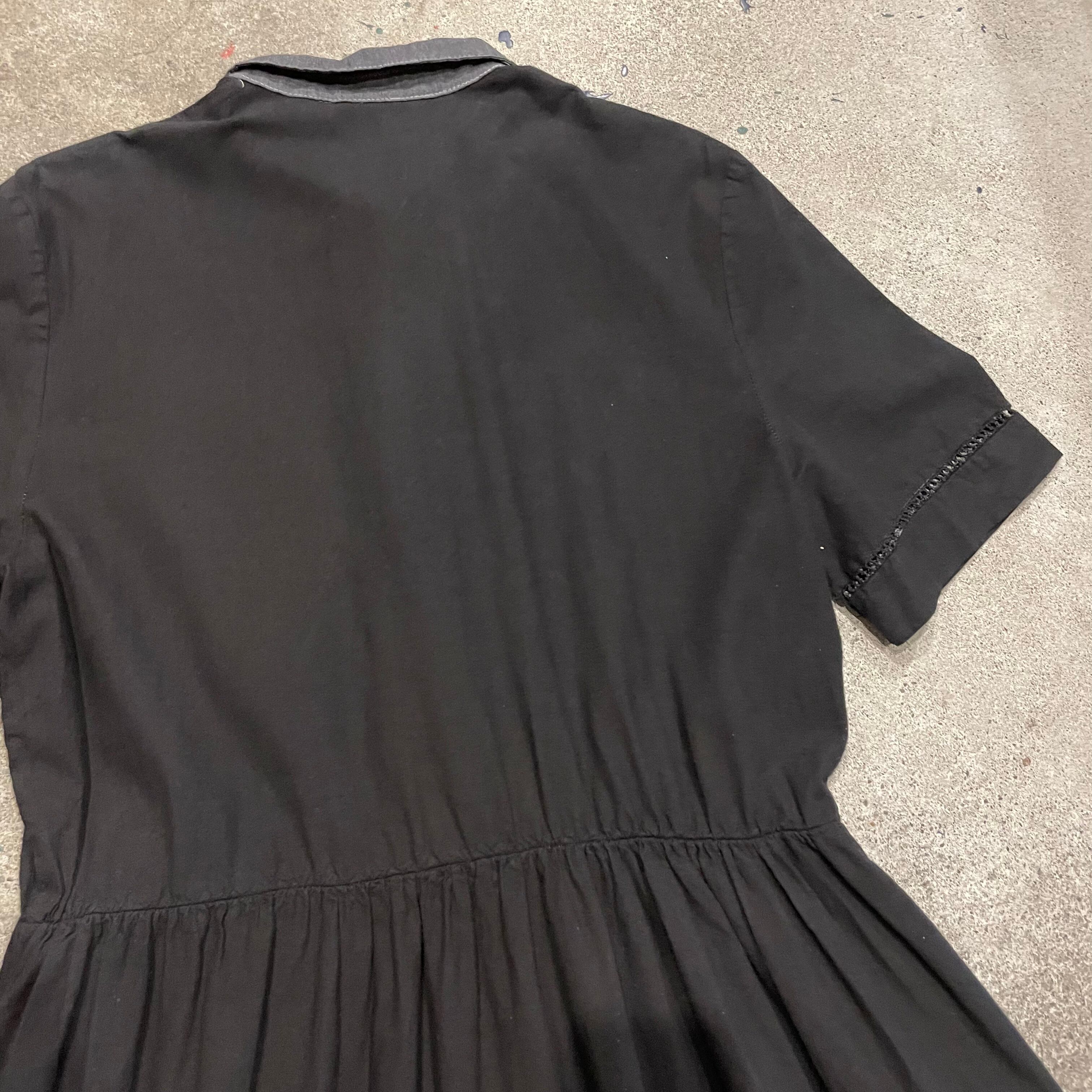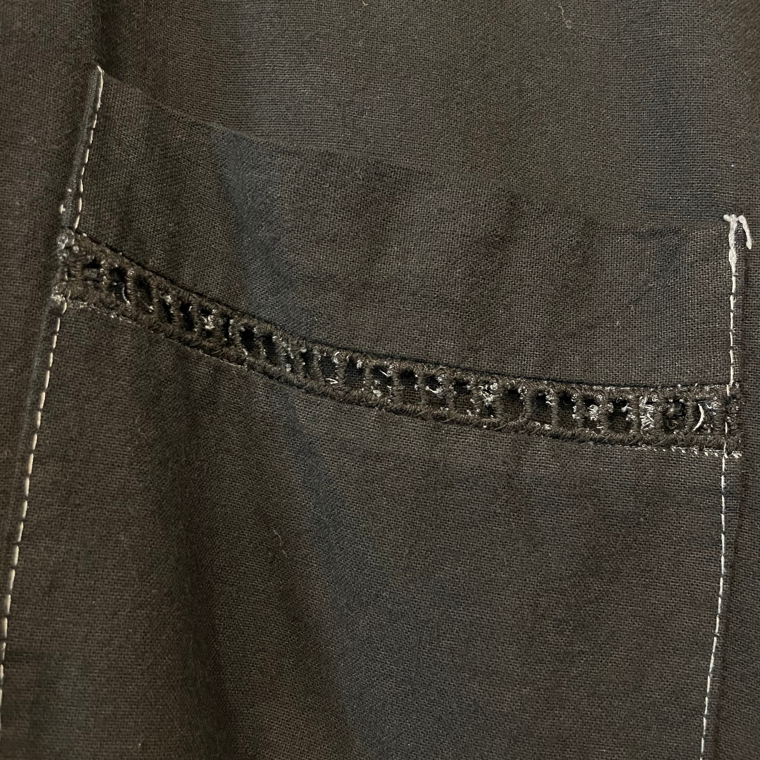 こちらはおそらく、白っぽい色味だったものを後から黒に染めたものだと思われます。しっかり染まり切らなかった襟やポケットのステッチが逆に良い感じのデザインになっています。