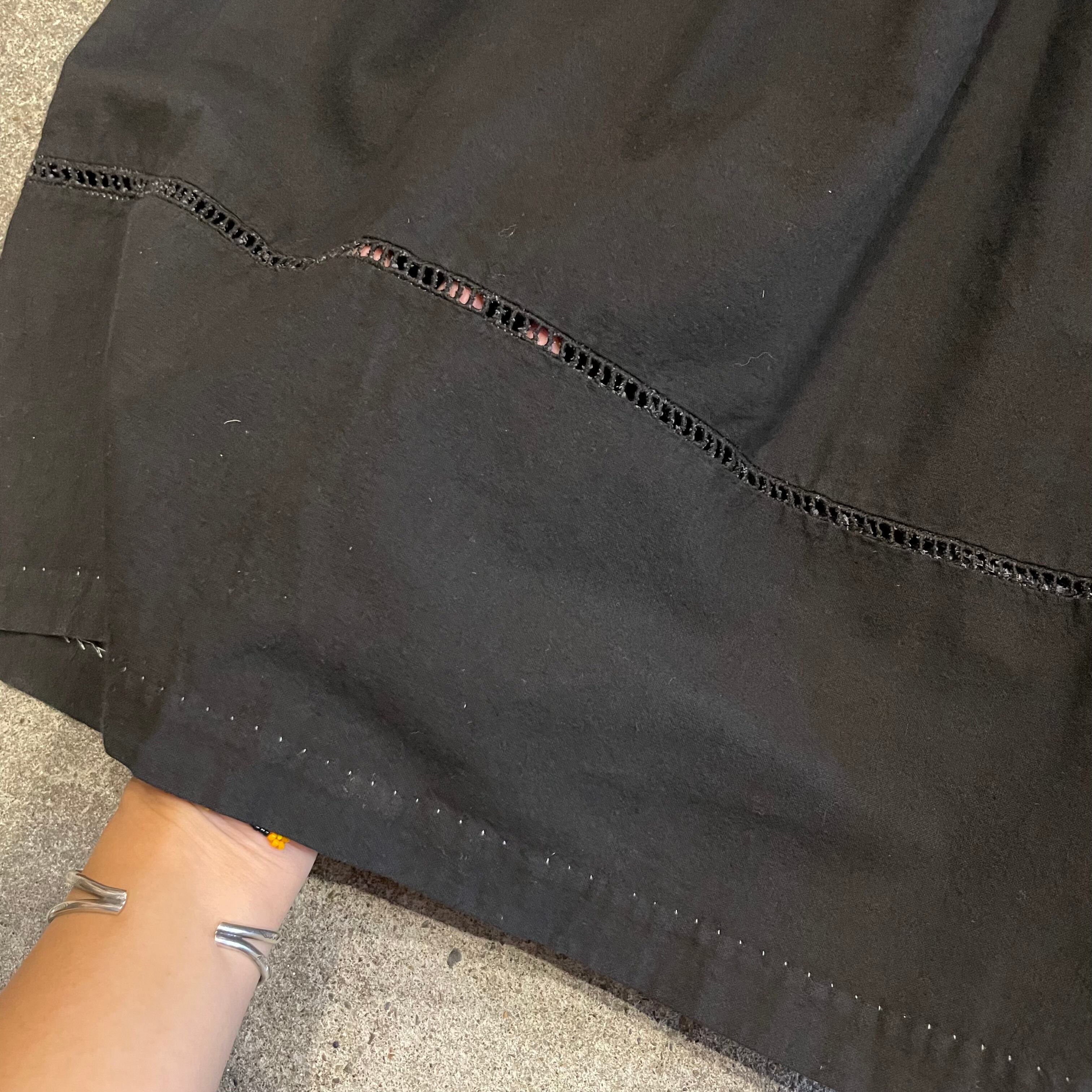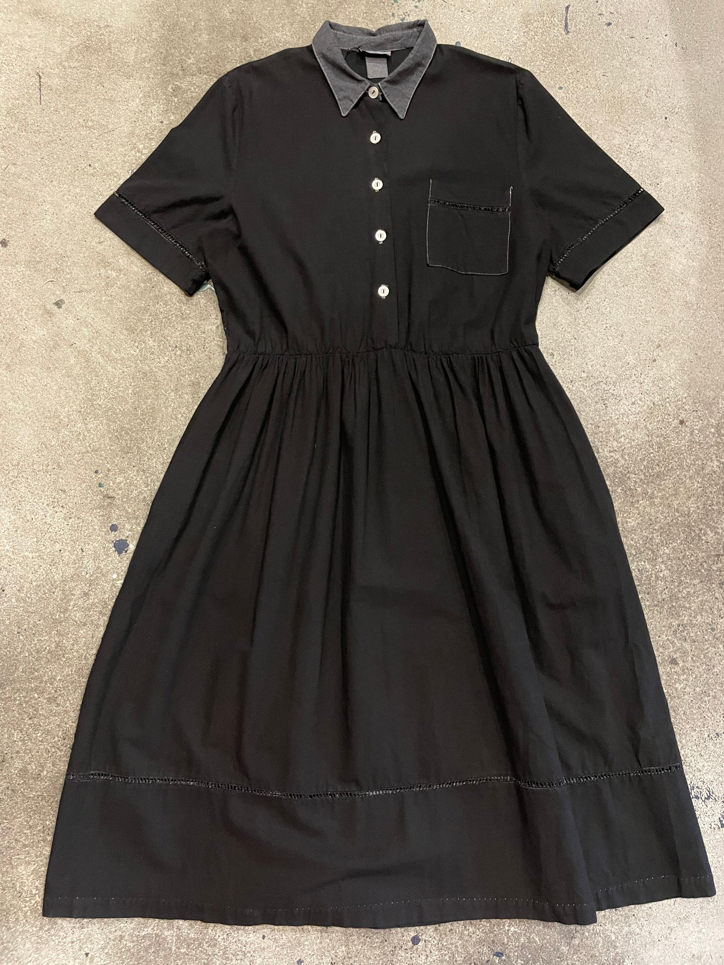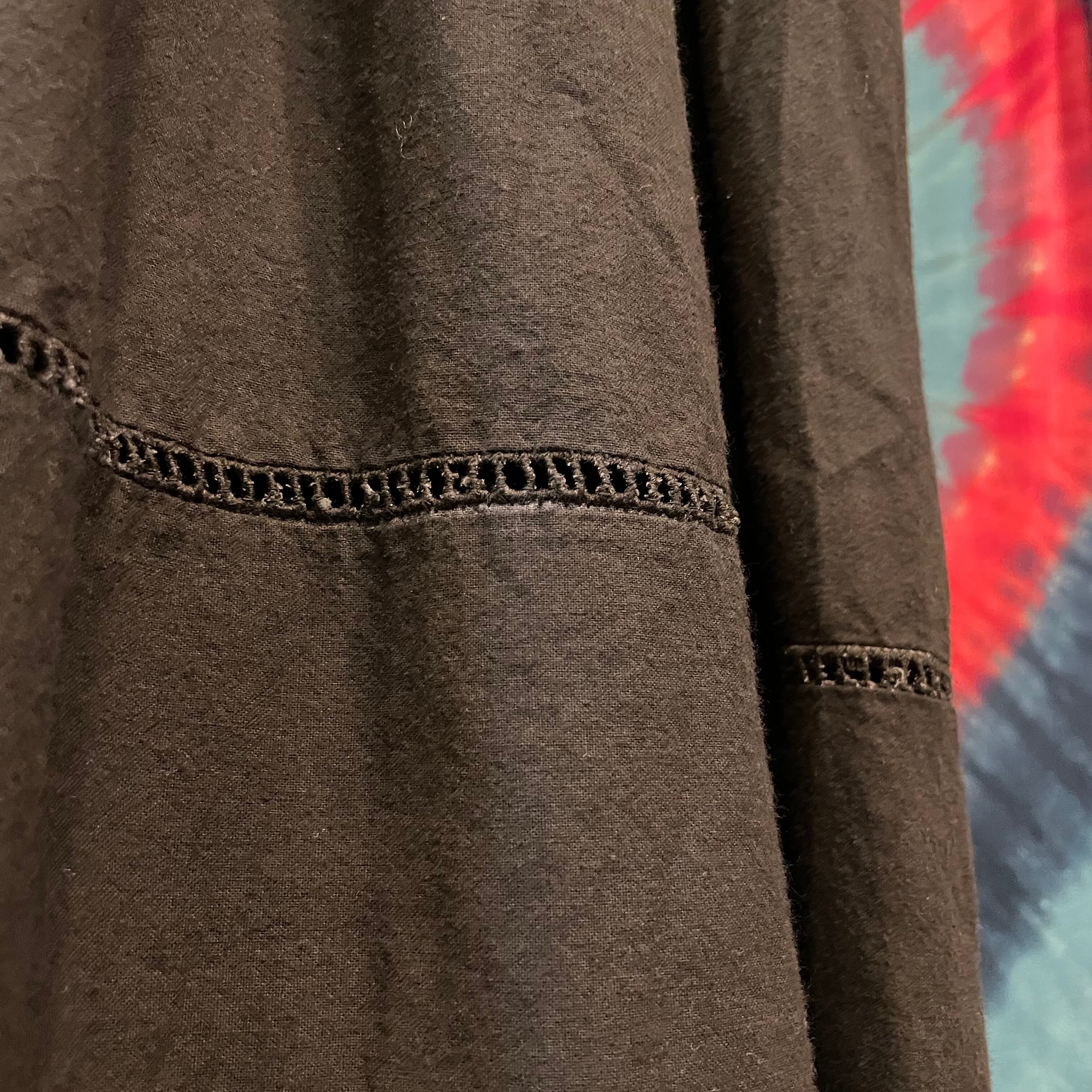 こちらはおそらく、白っぽい色味だったものを後から黒に染めたものだと思われます。しっかり染まり切らなかった襟やポケットのステッチが逆に良い感じのデザインになっています。
