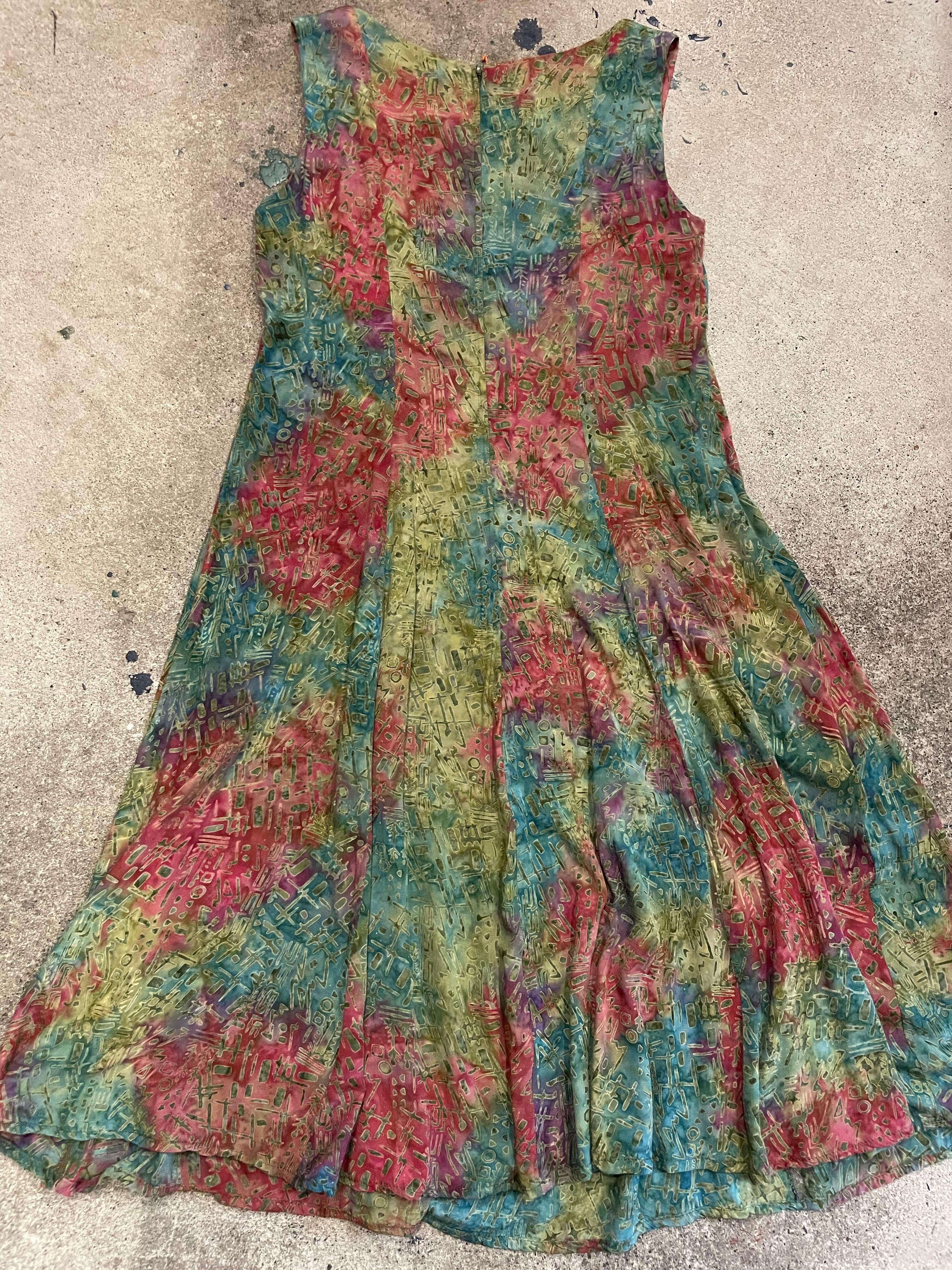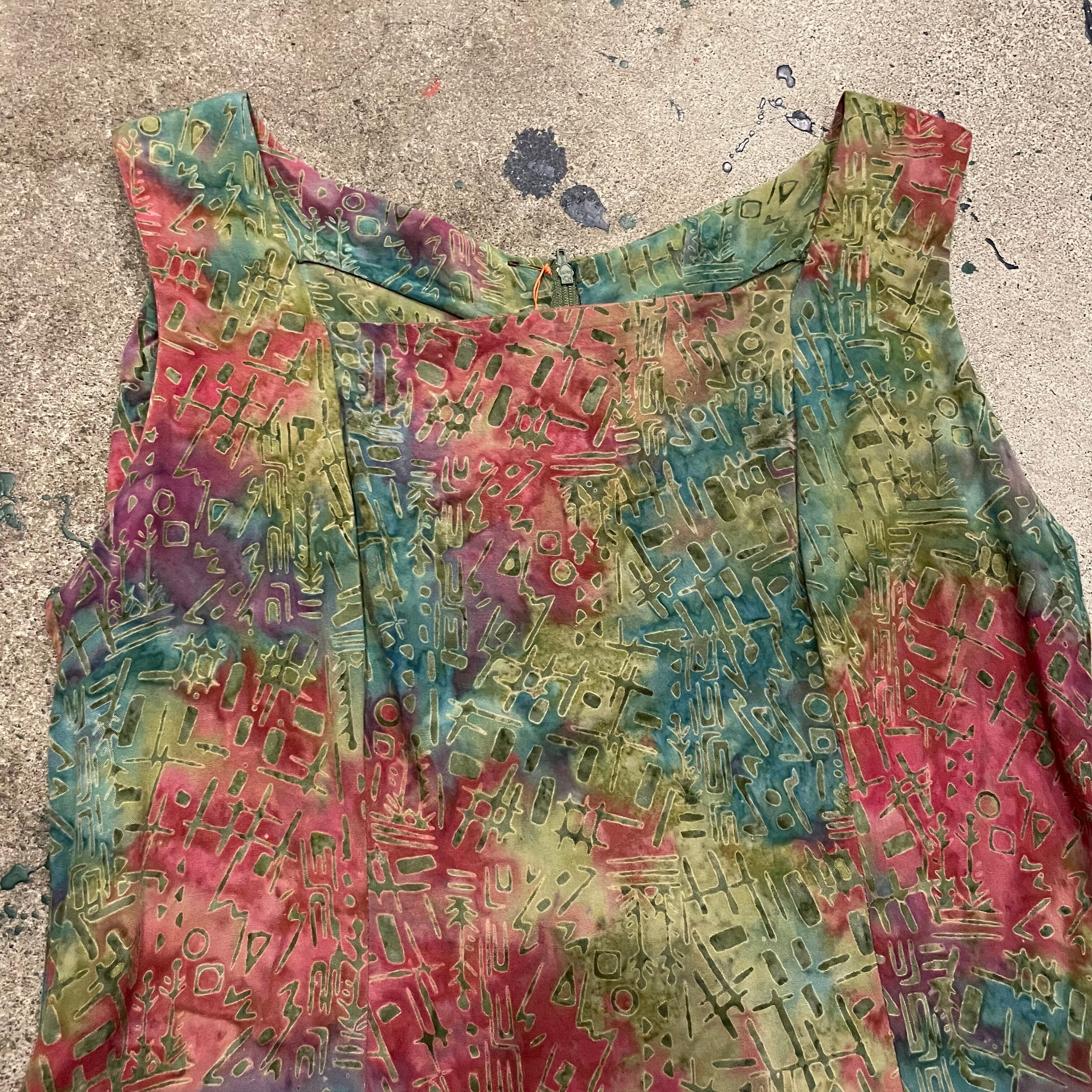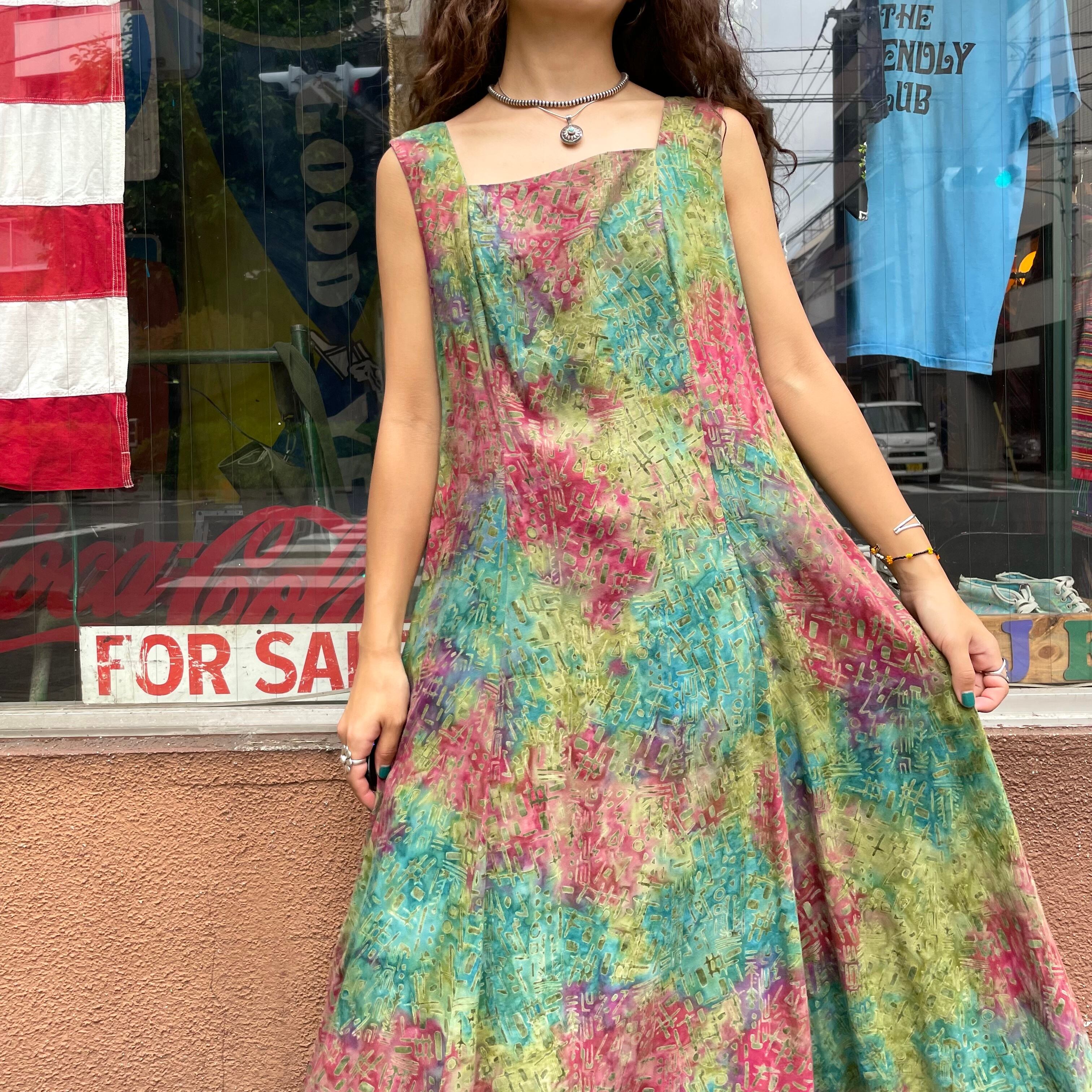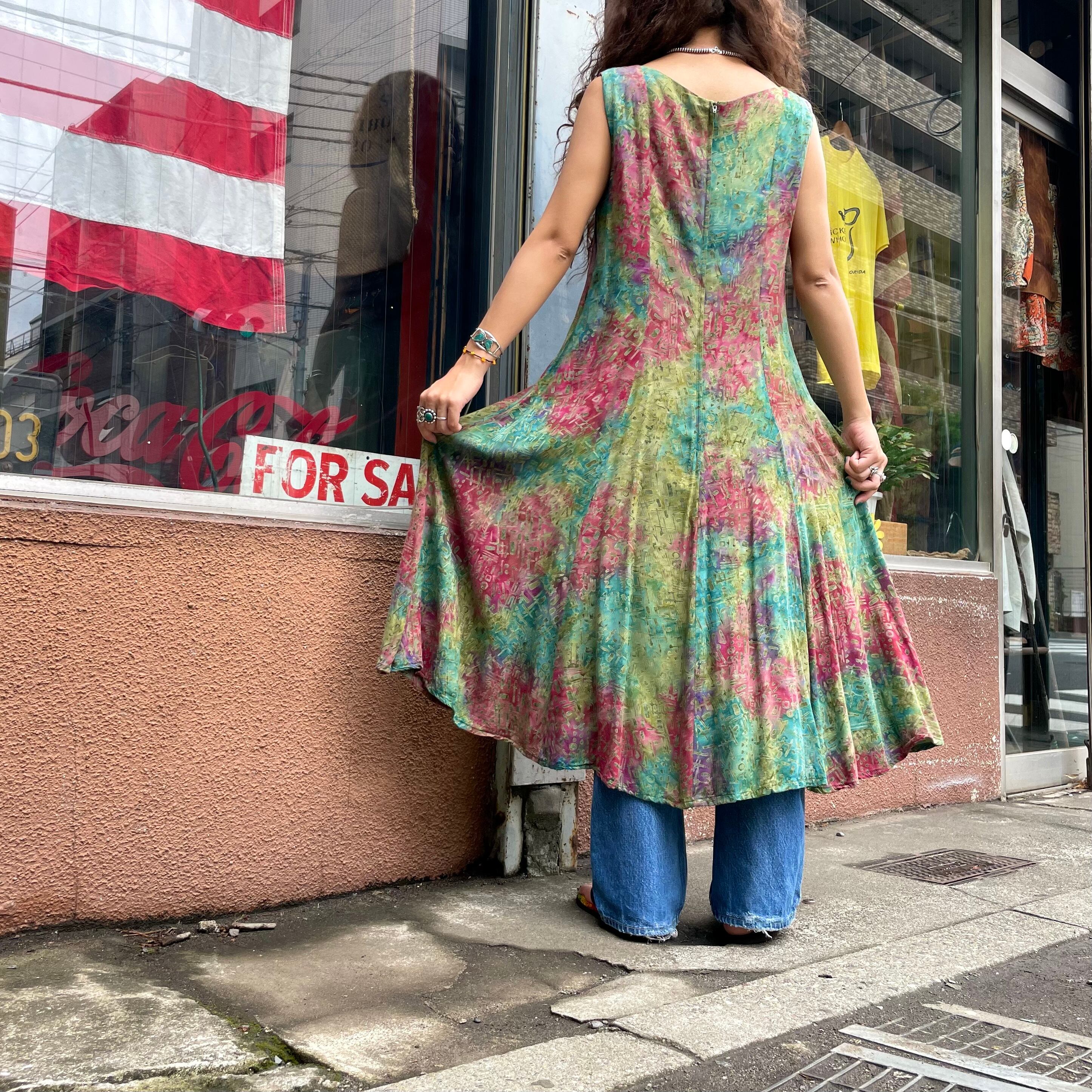 細かいバティックのような模様とモヤモヤした綺麗な染めがかわいいワンピースです。