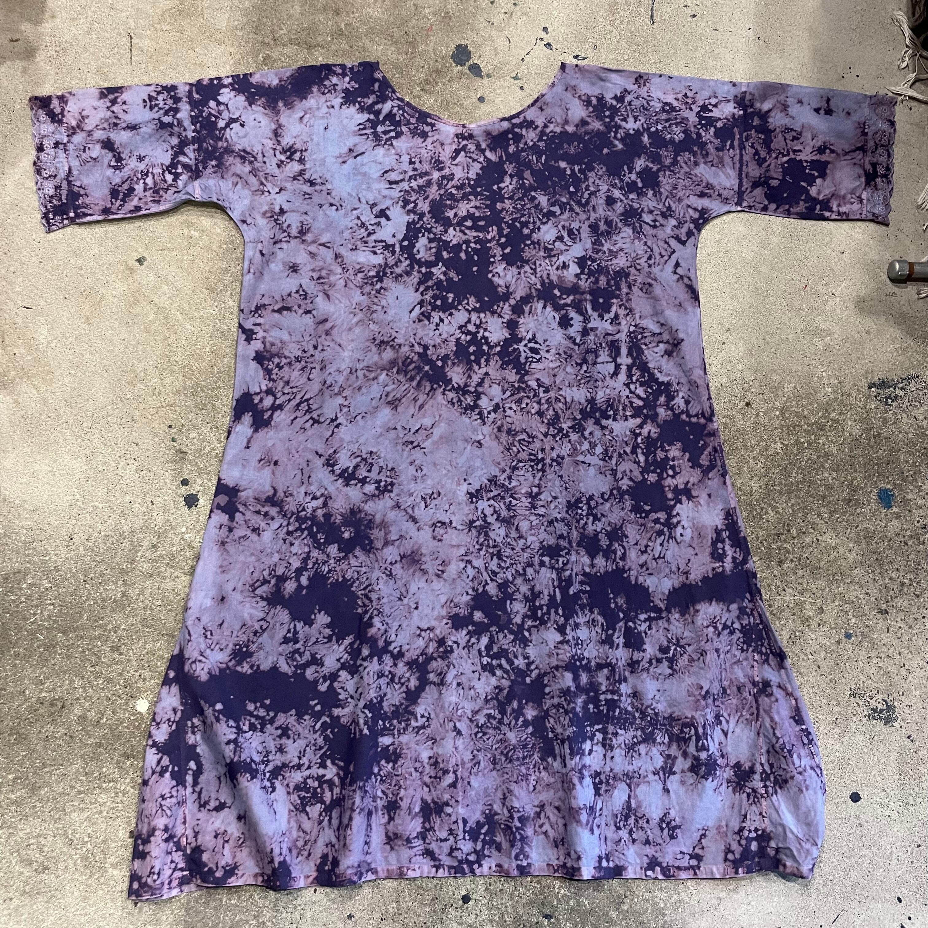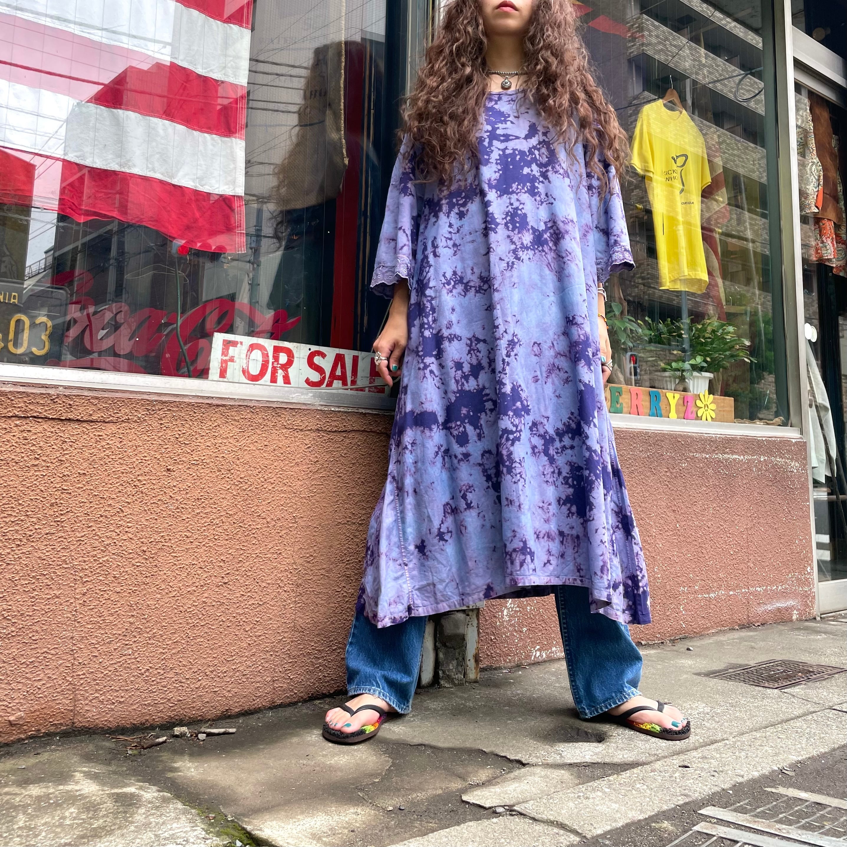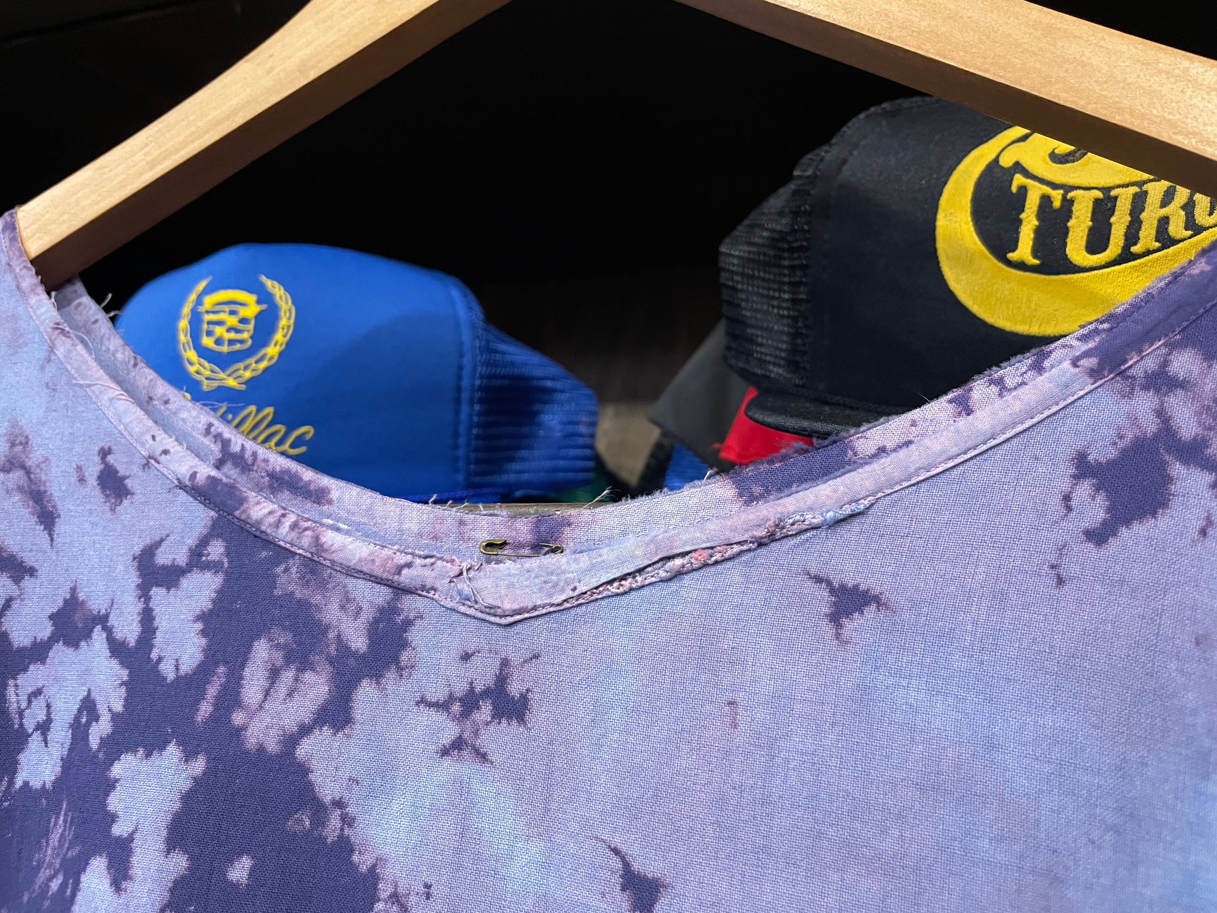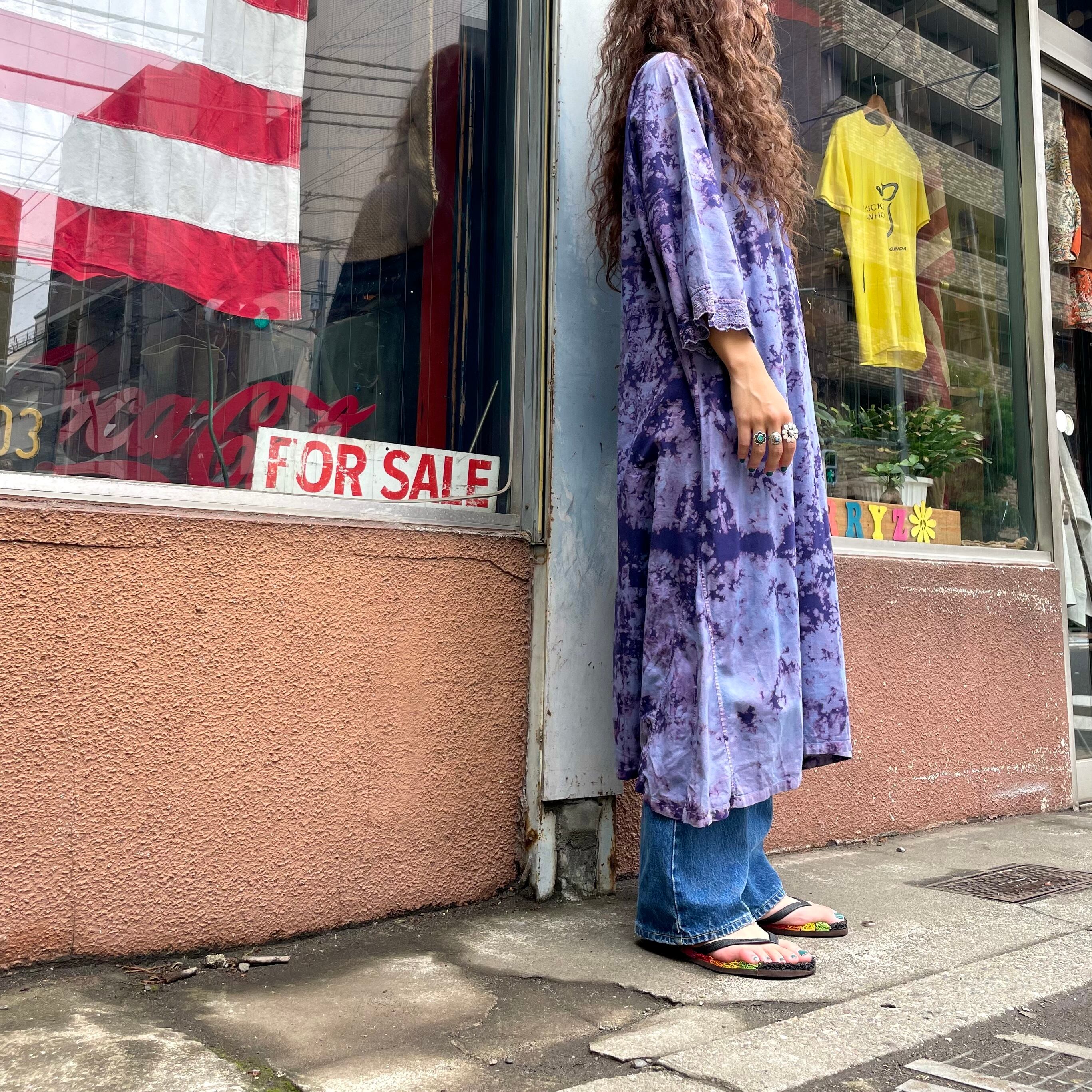 おそらく元々は単色のナイトドレスだった物だとおもいますが、大胆に染められており雰囲気のある一着です。