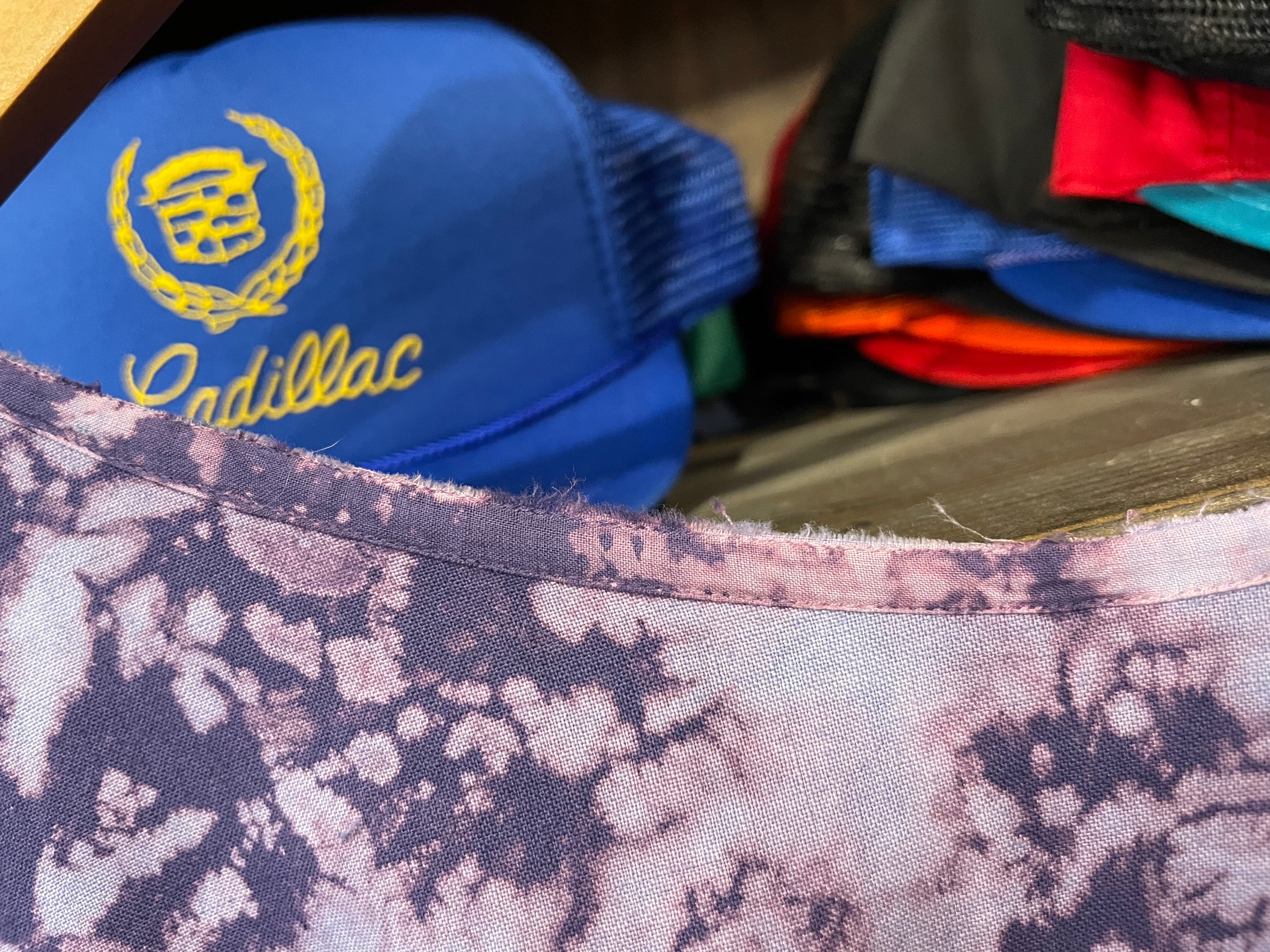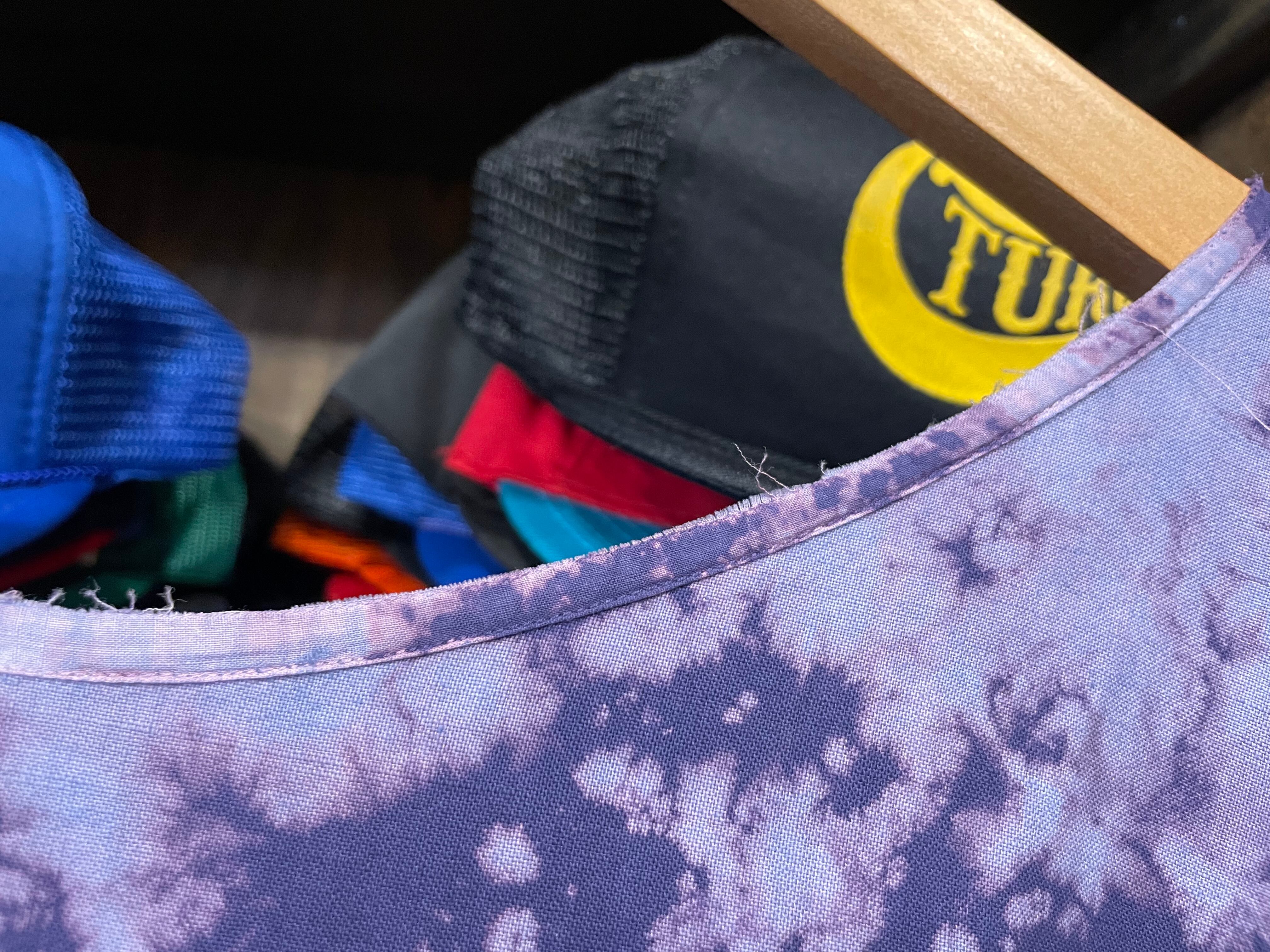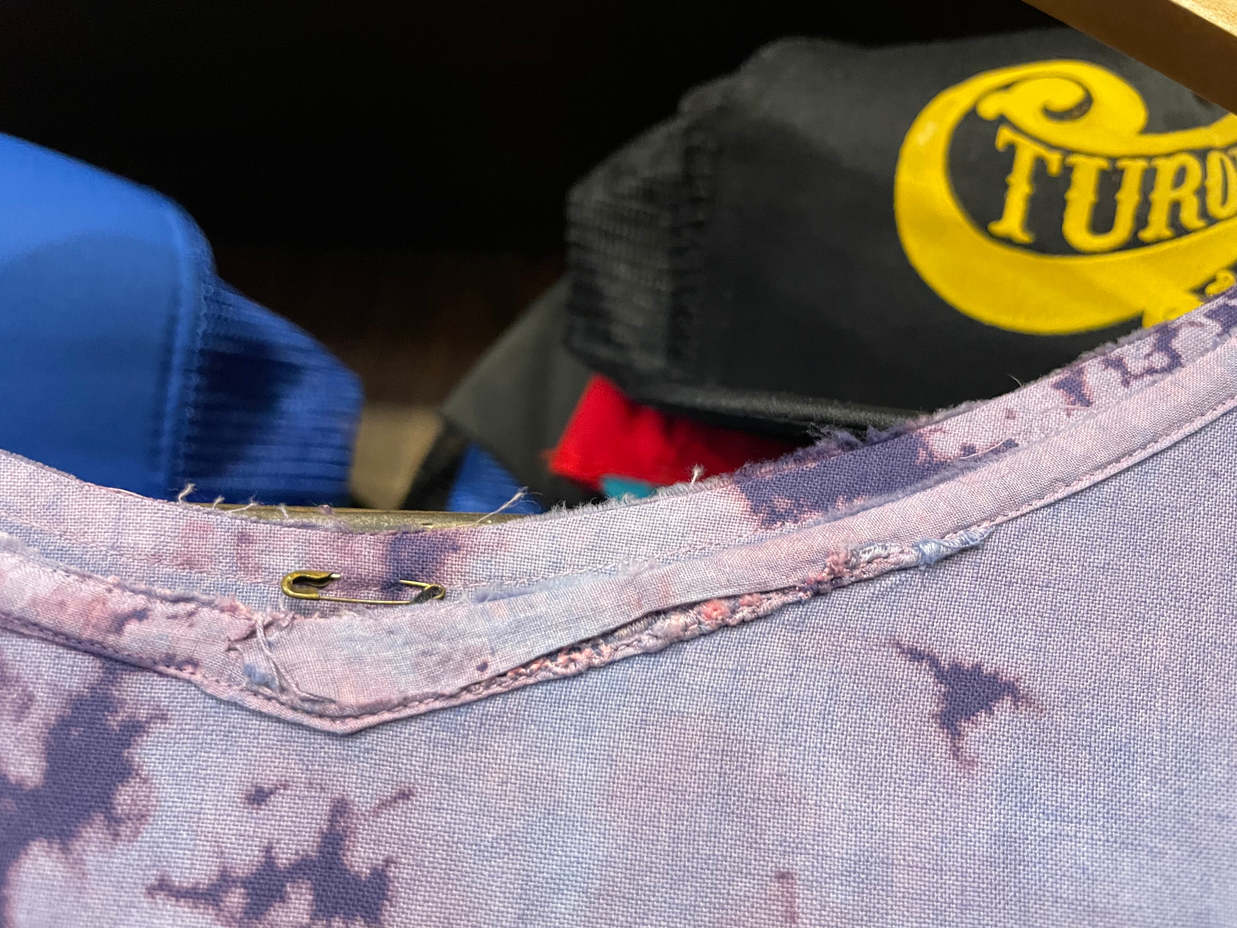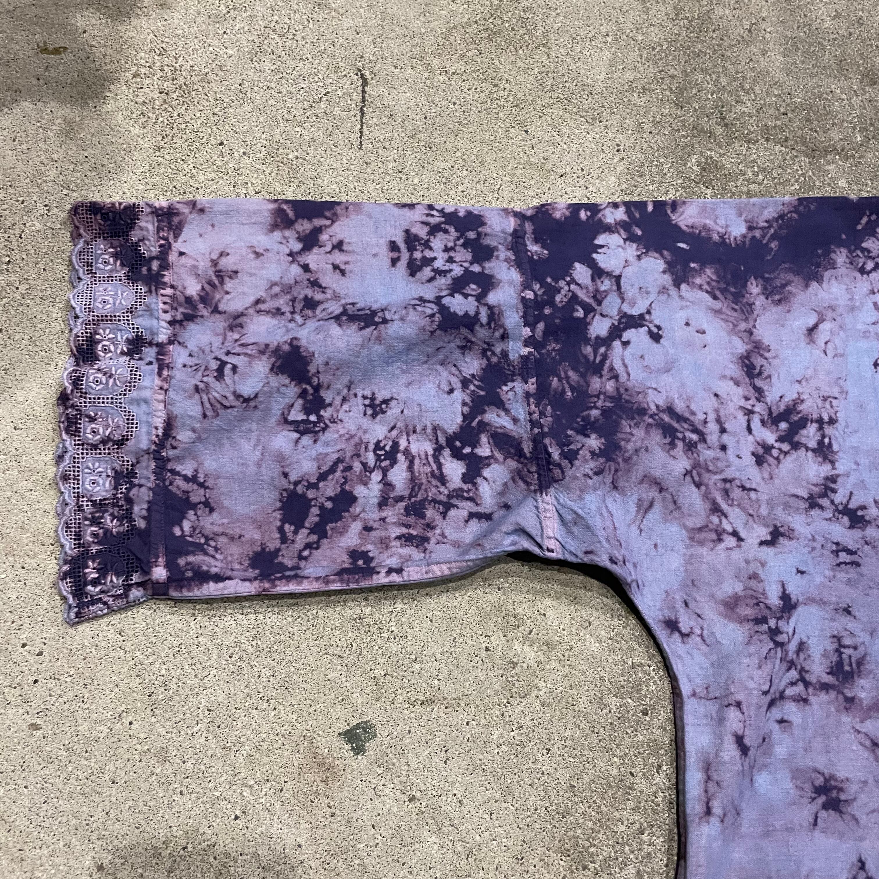 おそらく元々は単色のナイトドレスだった物だとおもいますが、大胆に染められており雰囲気のある一着です。