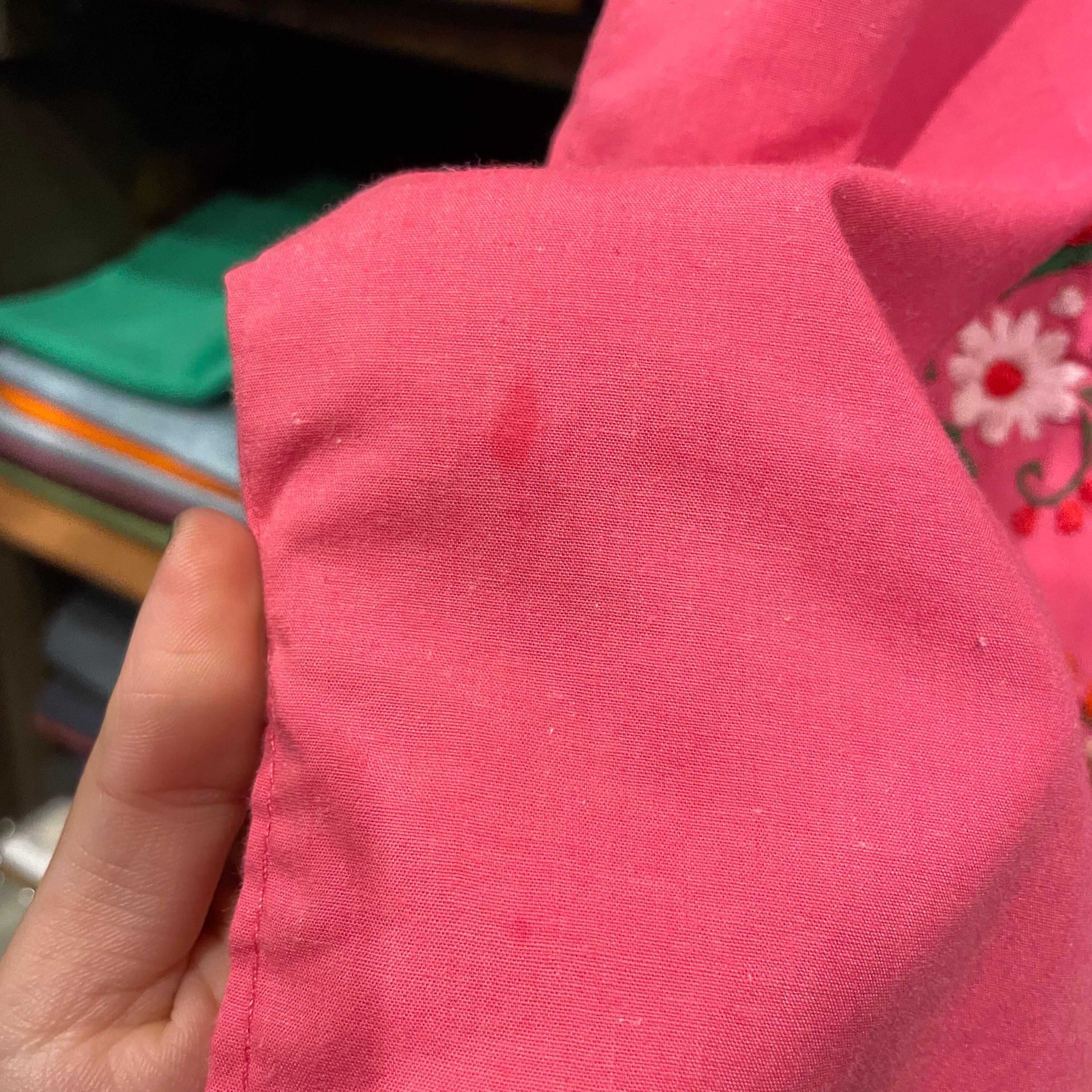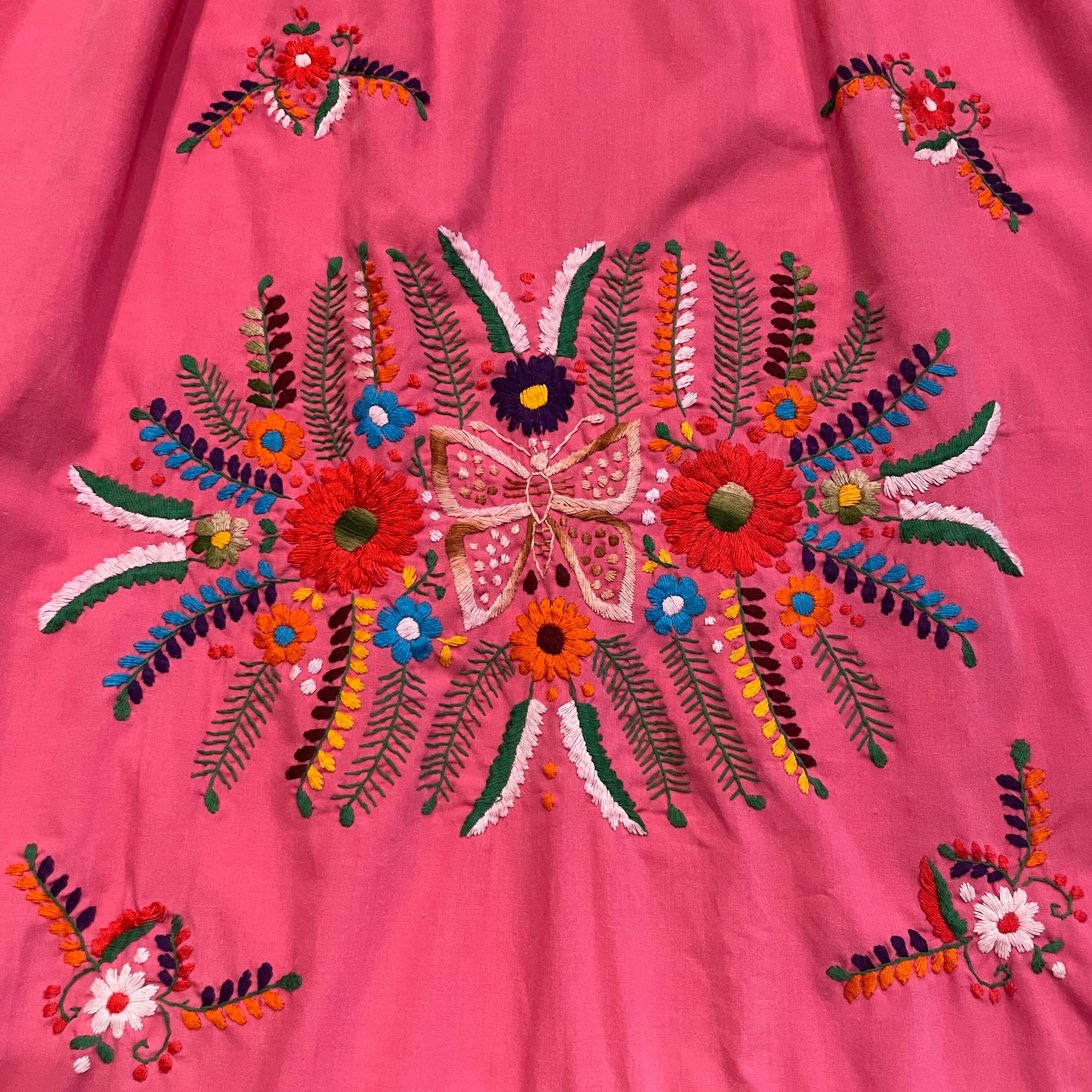 ピンク地に施されたカラフルなお花がとても映えてかわいいですし、真ん中には蝶々もいてたまらない一枚です。