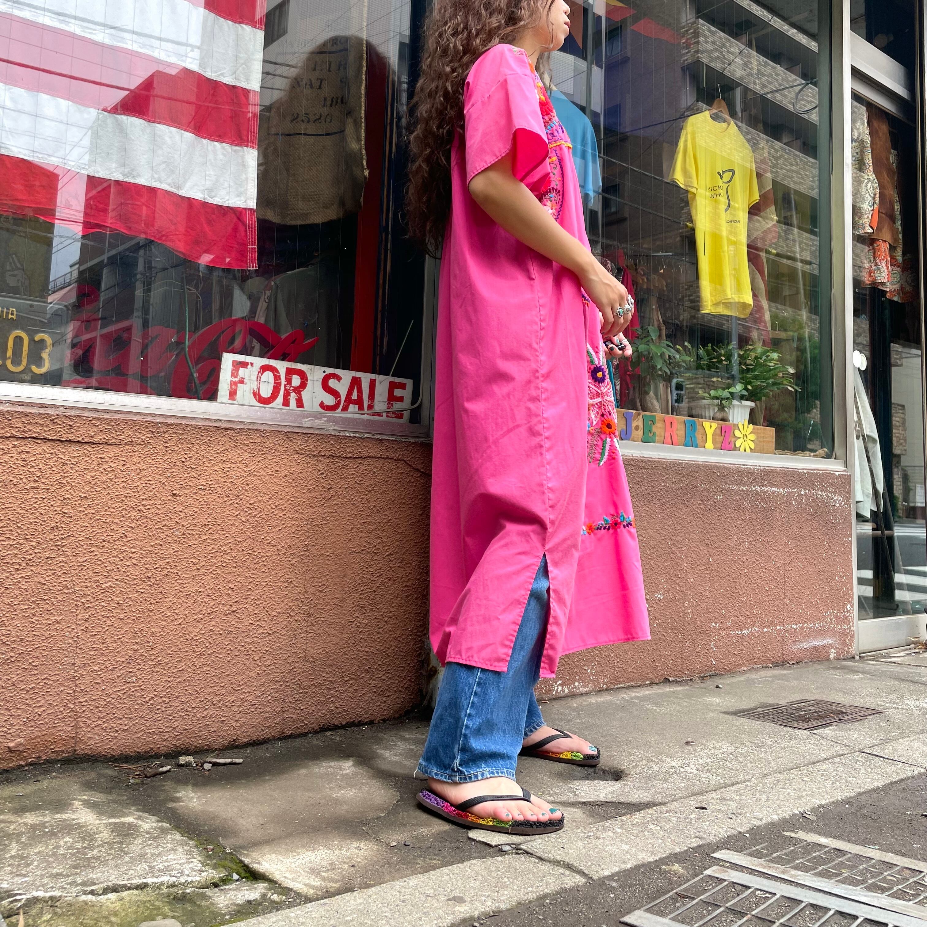 ゆったりなサイズ感ですので、中にロンTやサーマル、パーカーなども重ねられますし、夏は一枚で涼しくて楽ちんな定番ワンピースです。