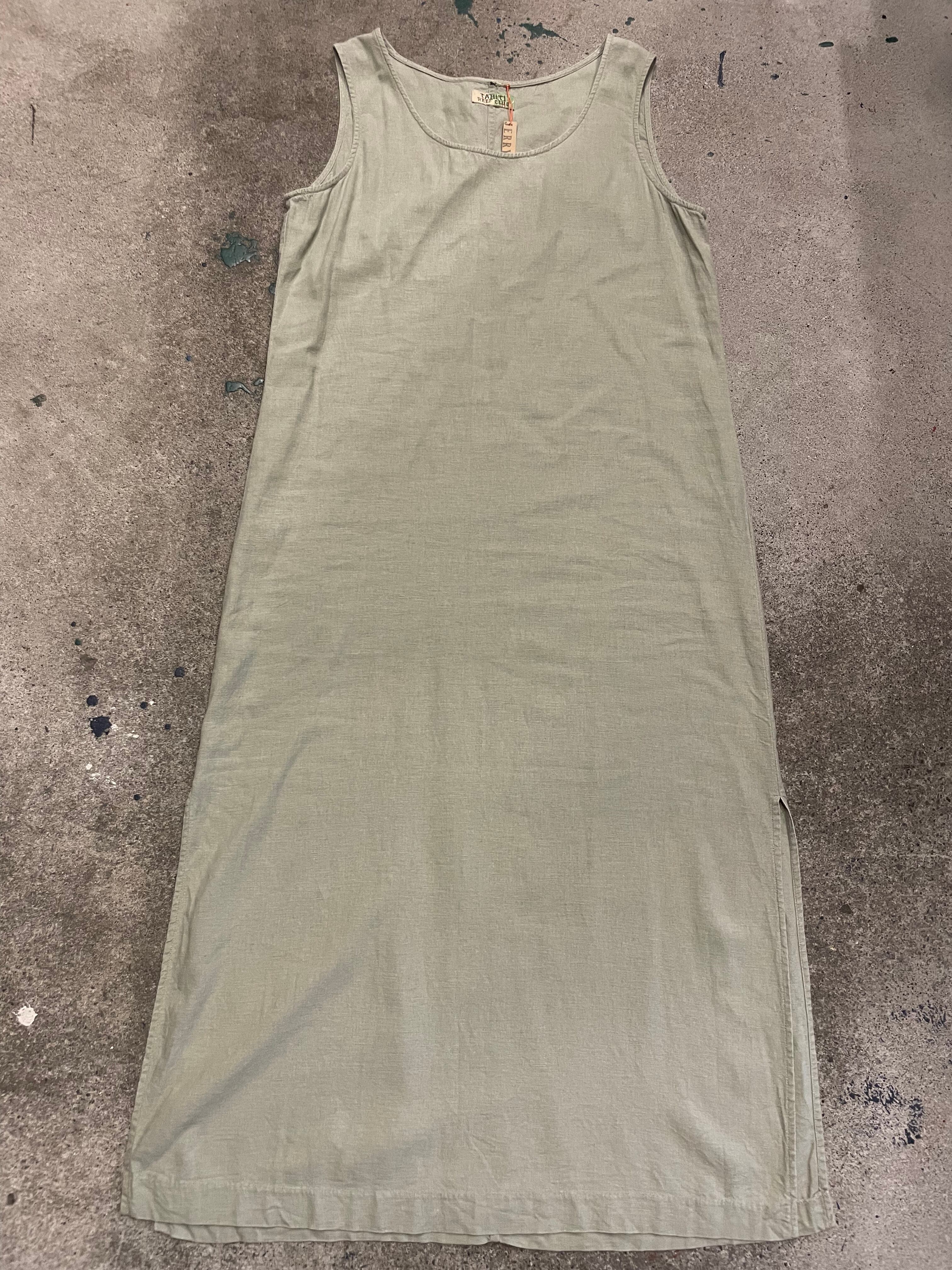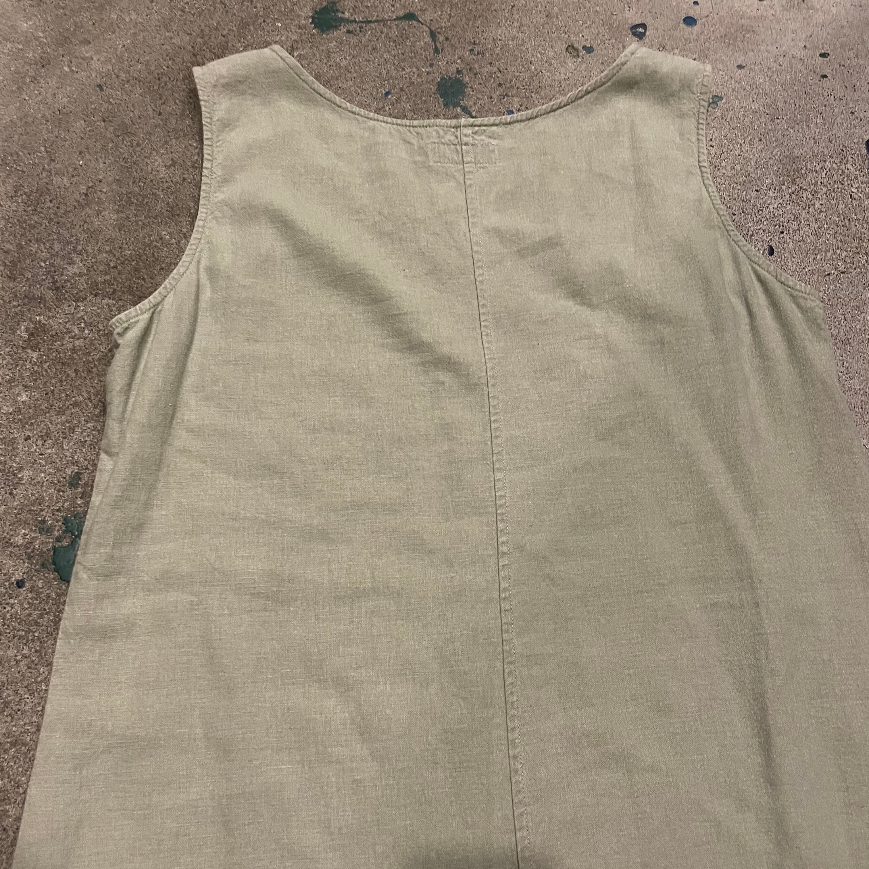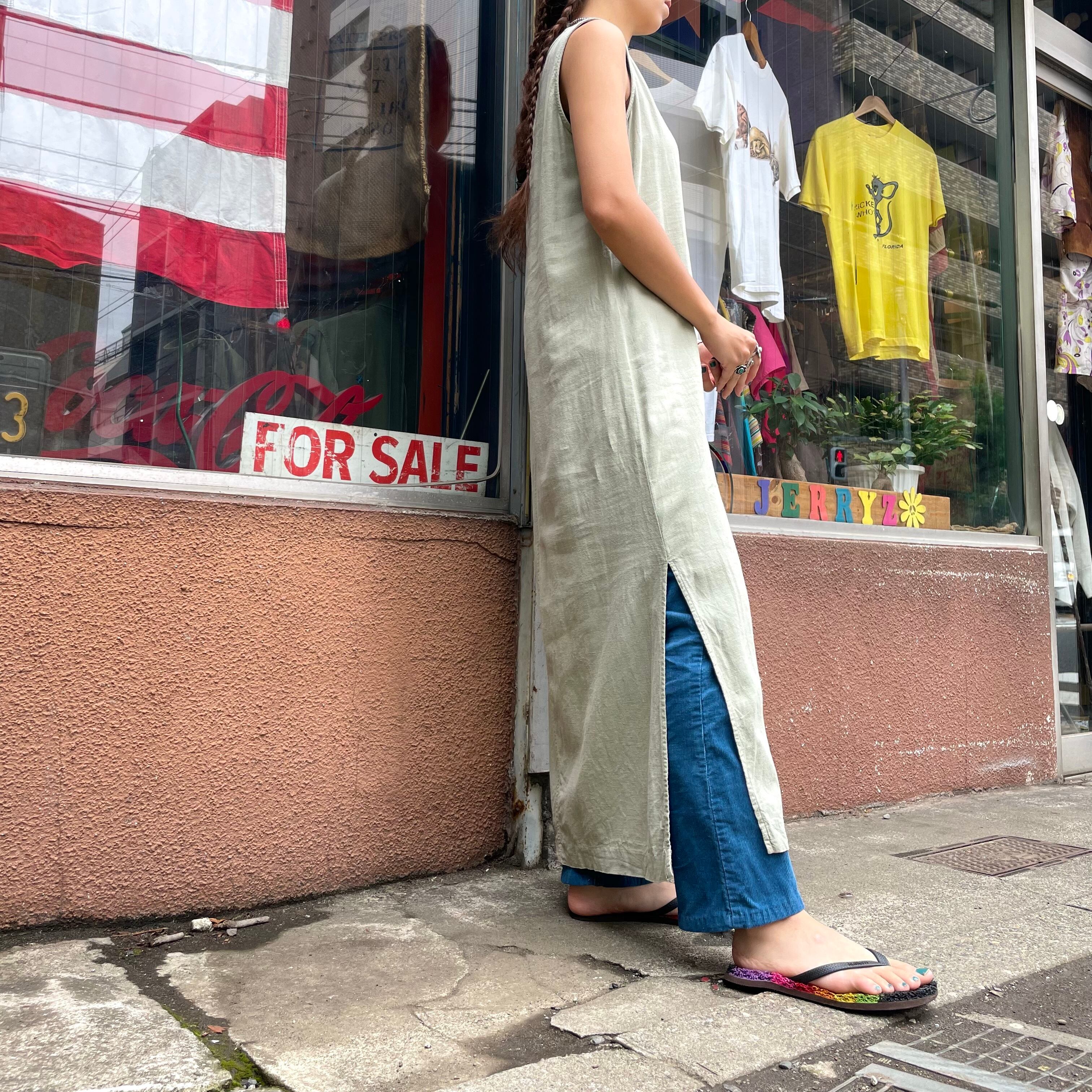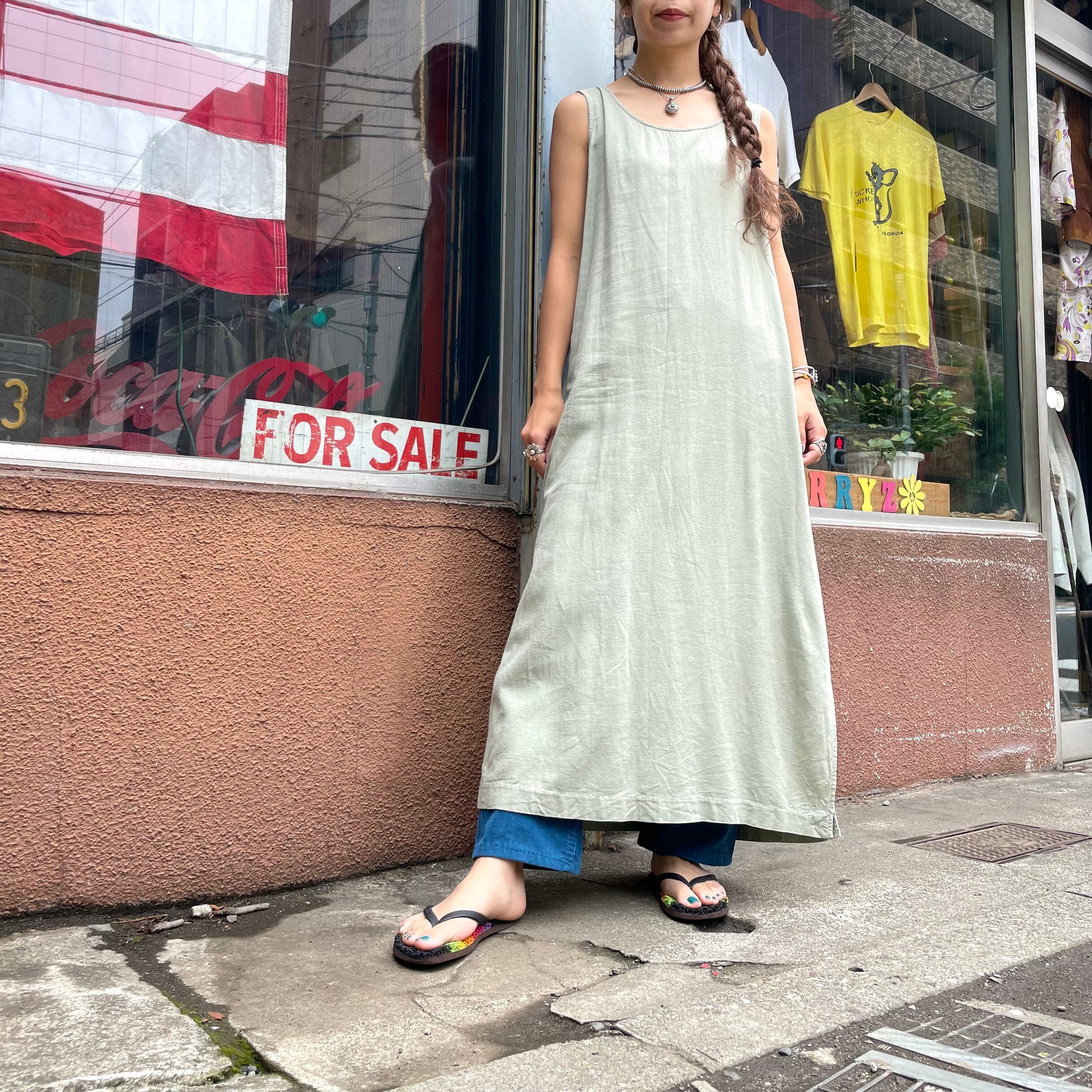 ノースリーブで両サイドにスリットがあり、ストンと広がらないシルエットが大人っぽいですし、丈の長いシャツなどと合わせやすい一着です。