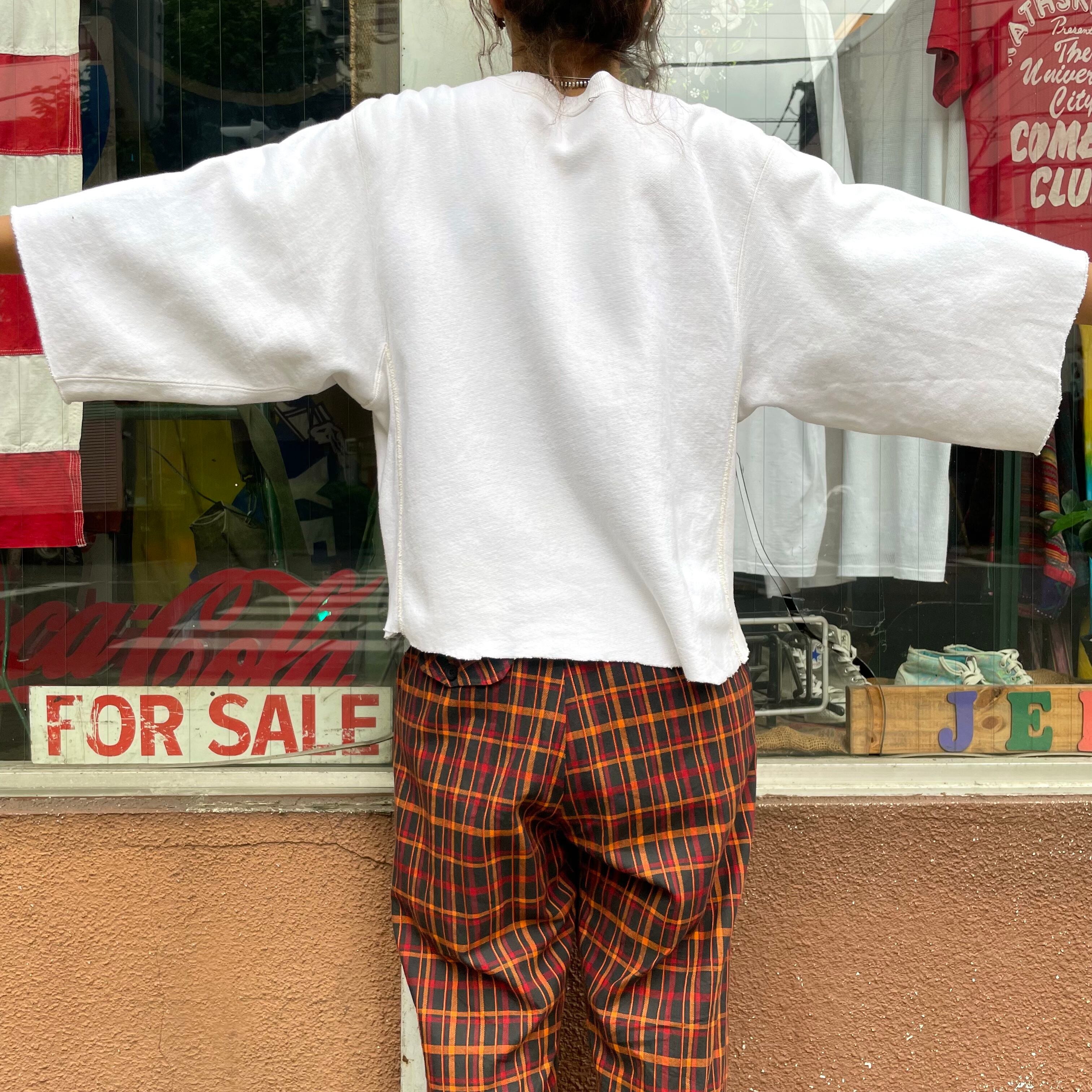 90年代USA製のchampionリバースウィーブの袖と裾がカットされたスウェットです。
