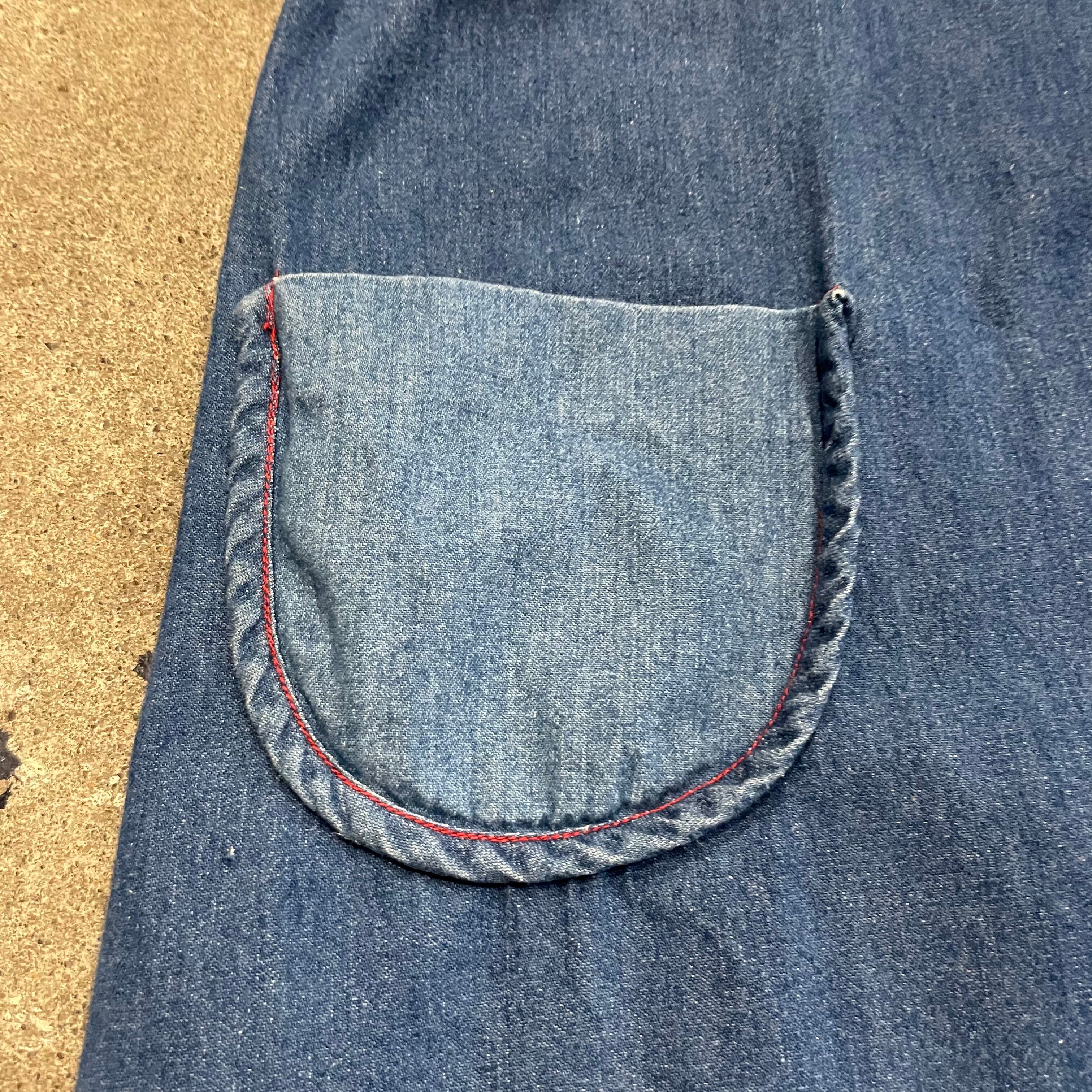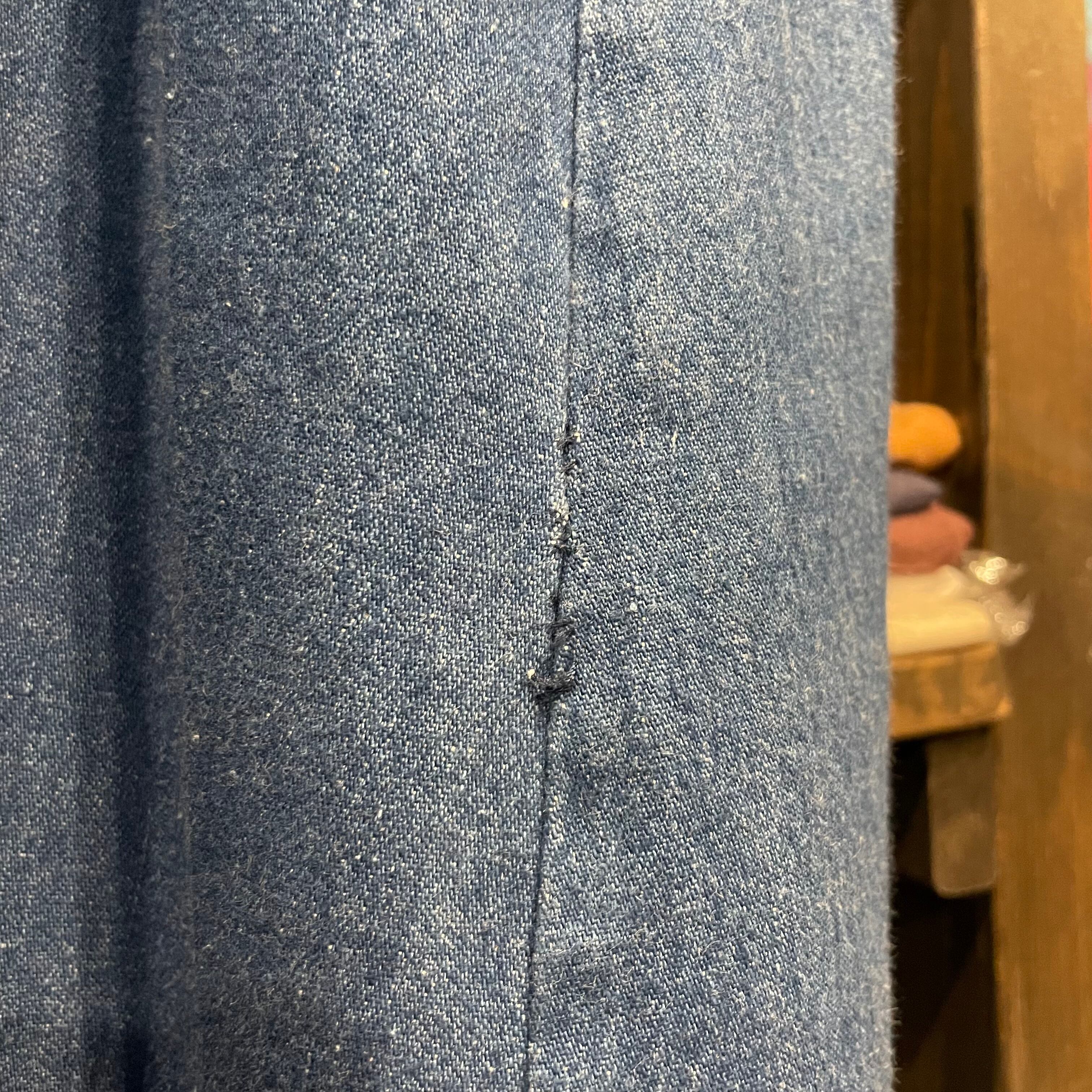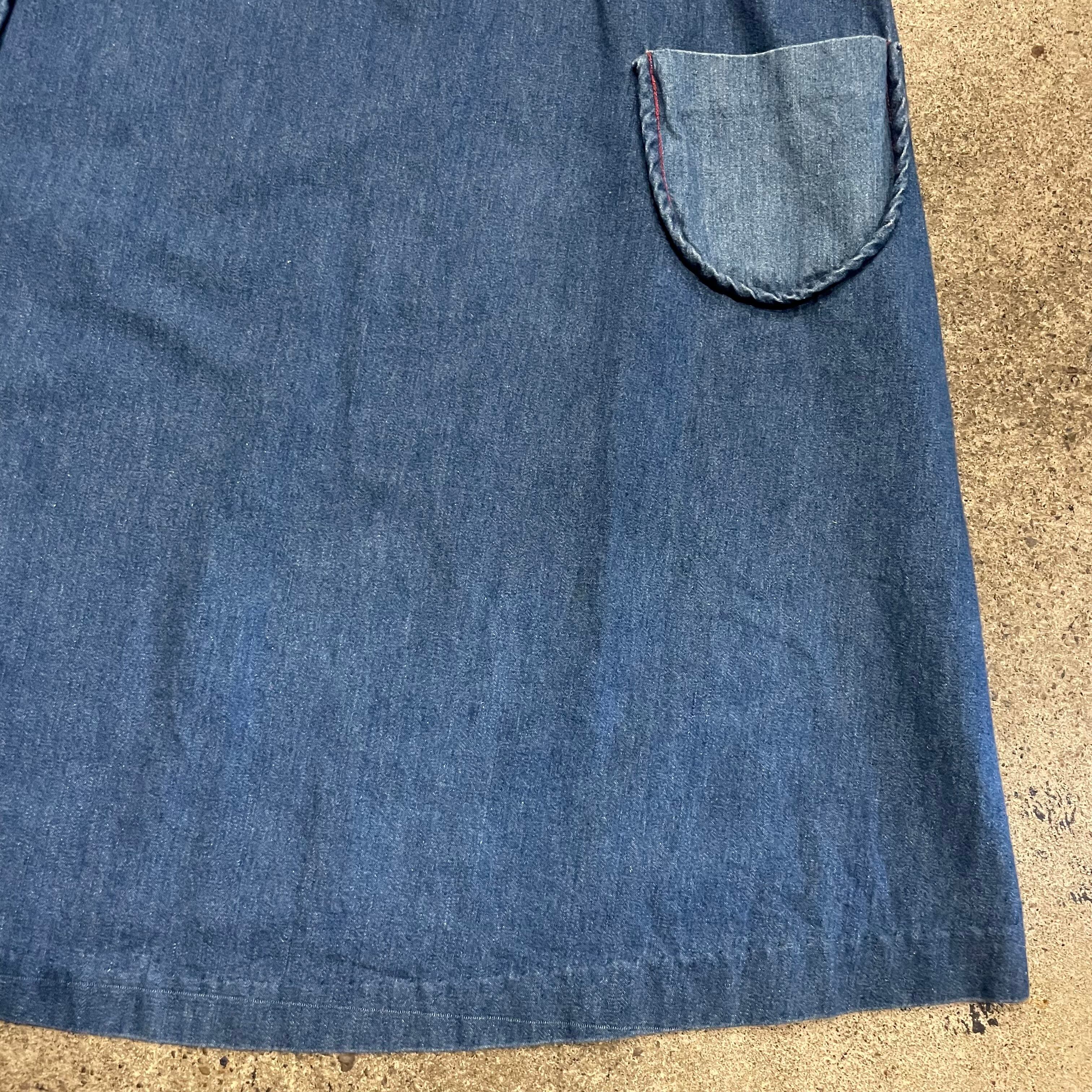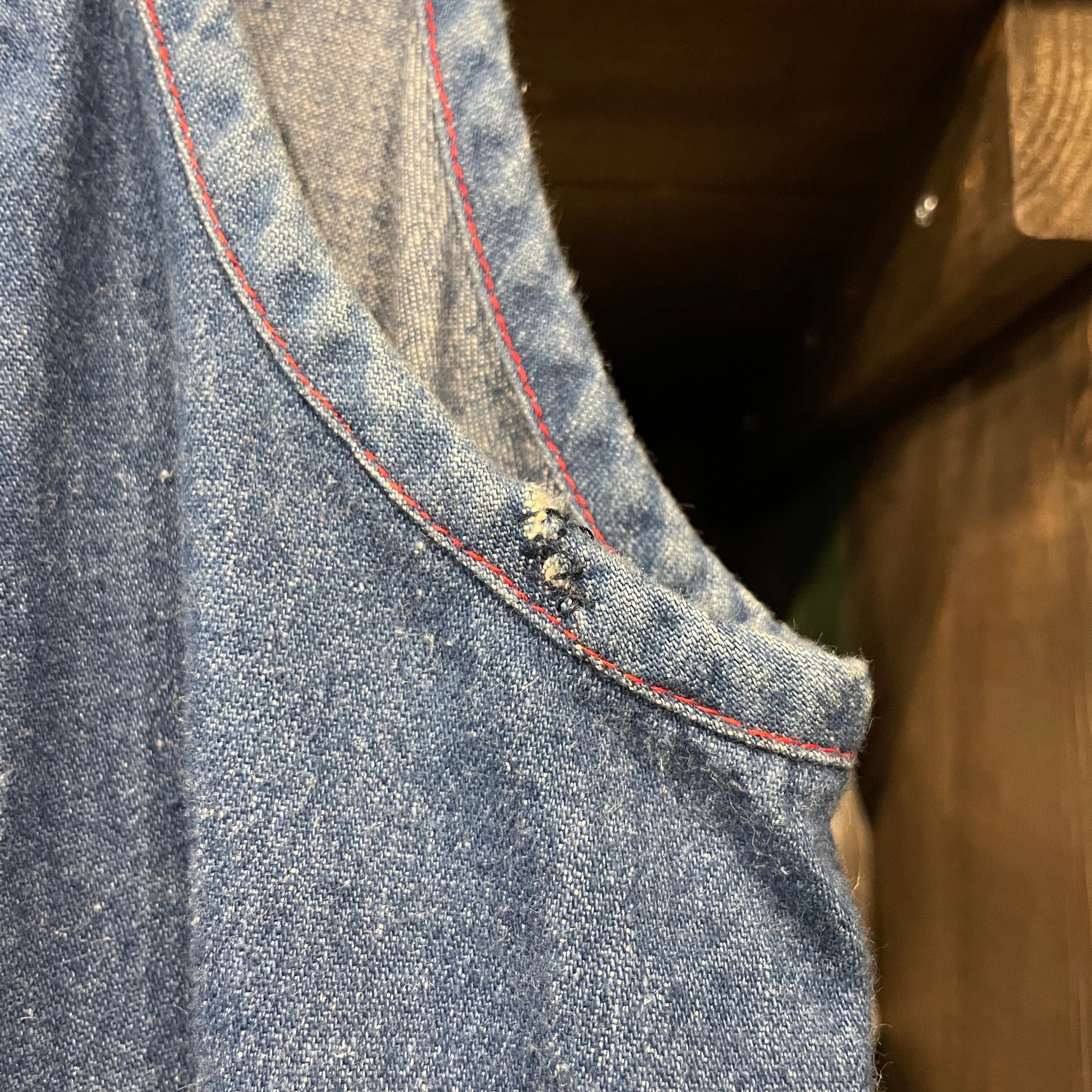 丸いパッチポケットや、赤いステッチもポイントになっていてかわいいですし、デニムですのでかわいくなりすぎずエプロンのような気持ちでも着ていただけそうです。
