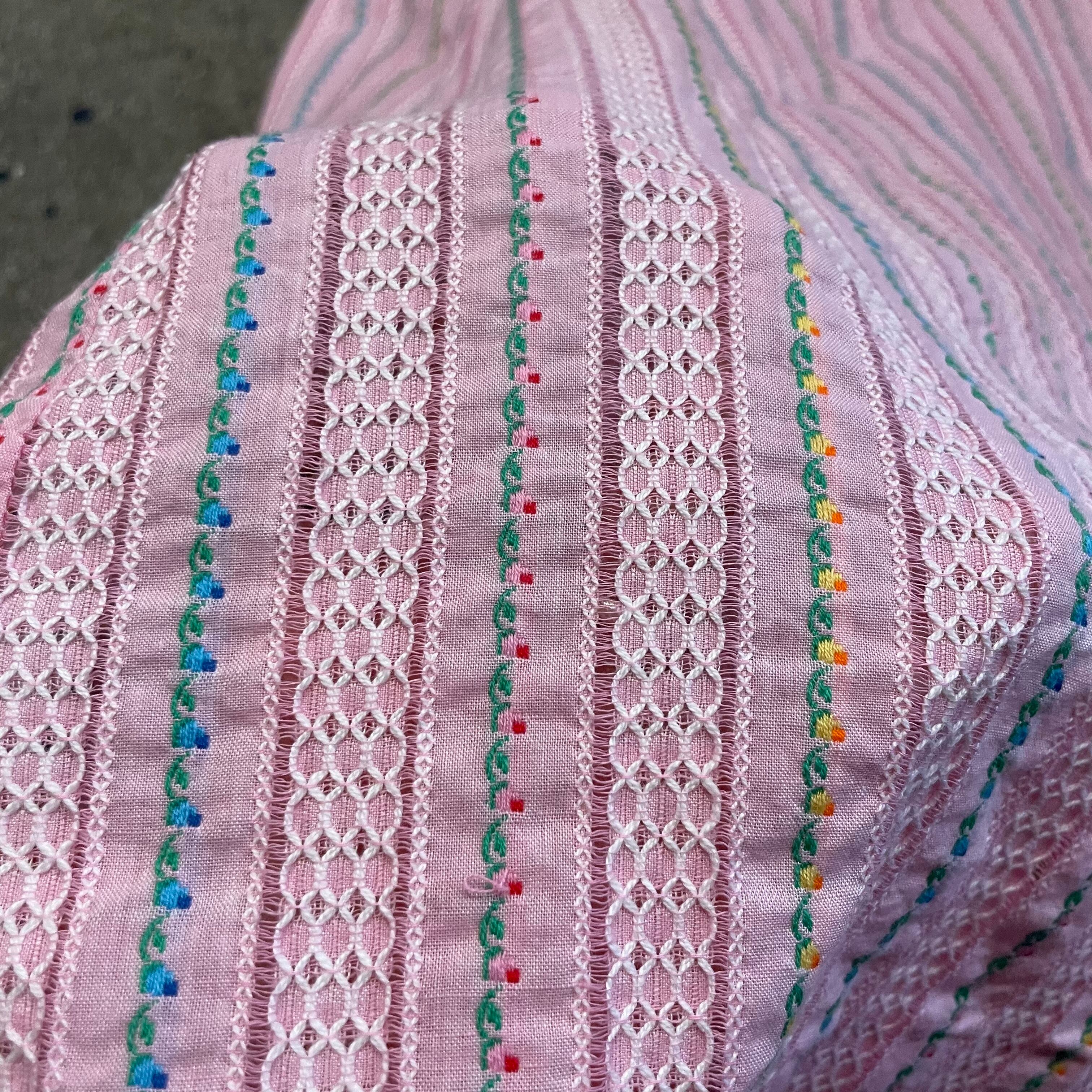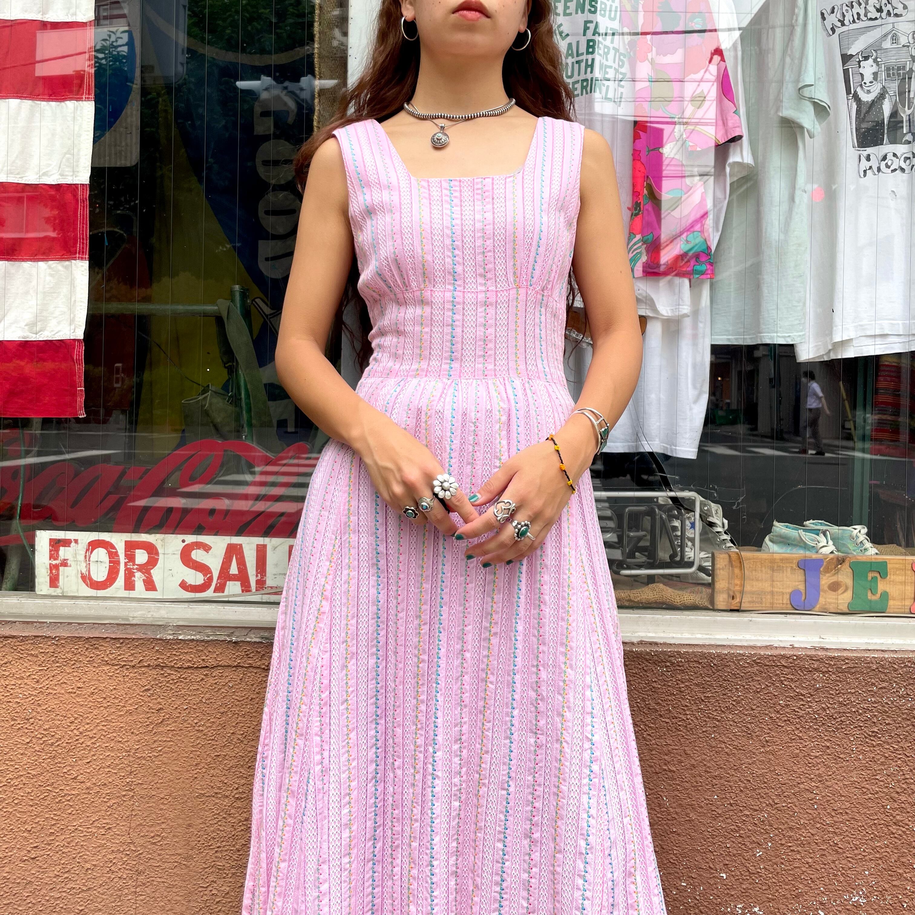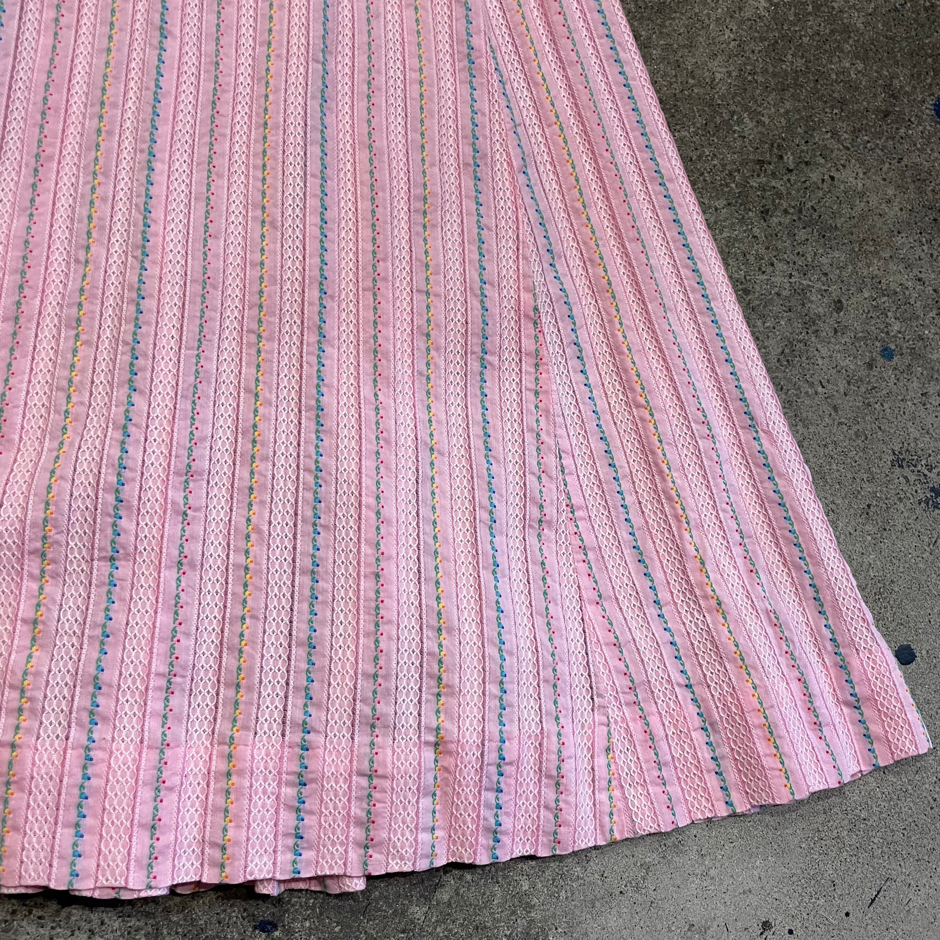 ベビーピンクのレースや細かい刺繍の生地がとてもかわいいワンピースです。