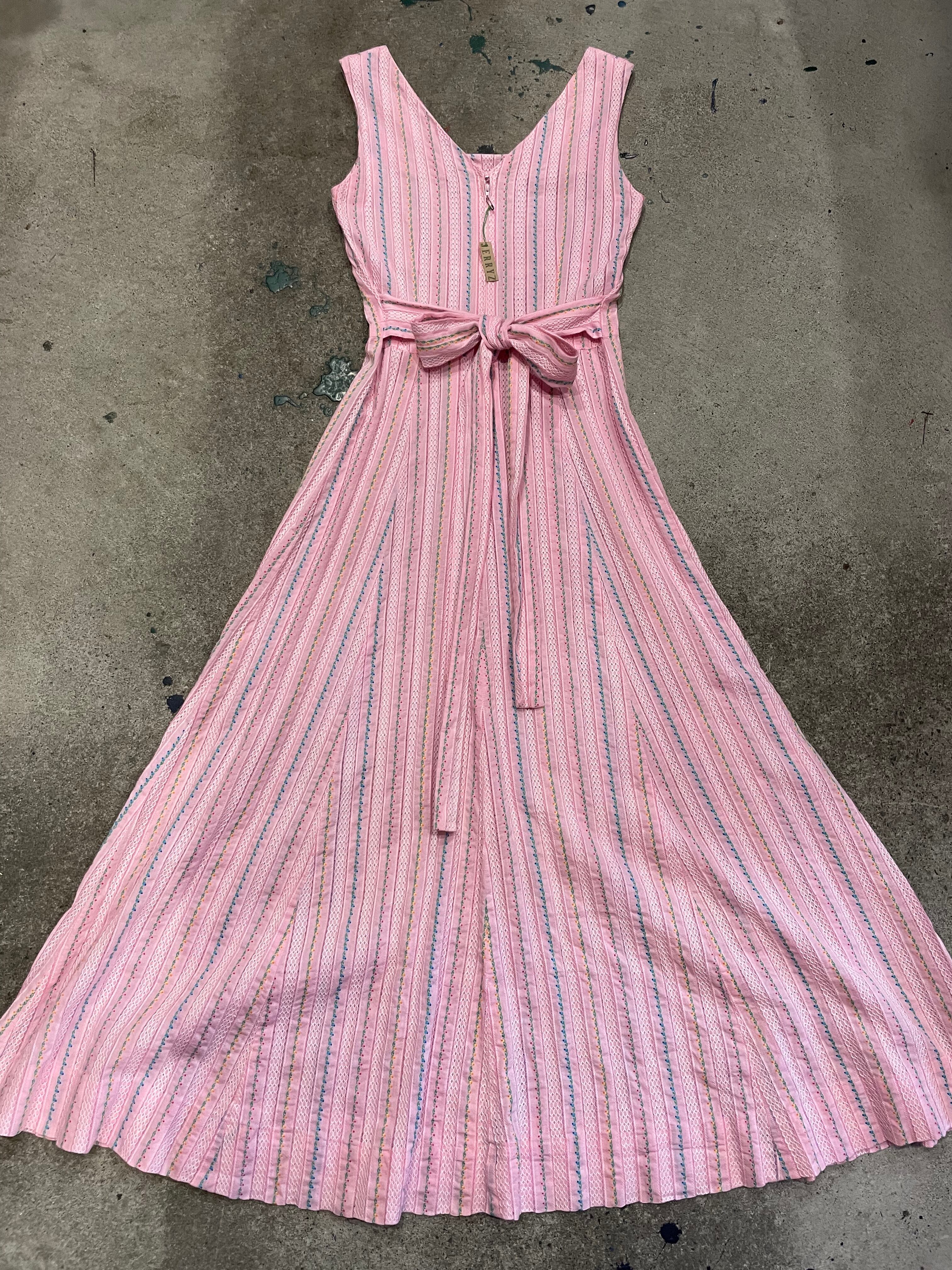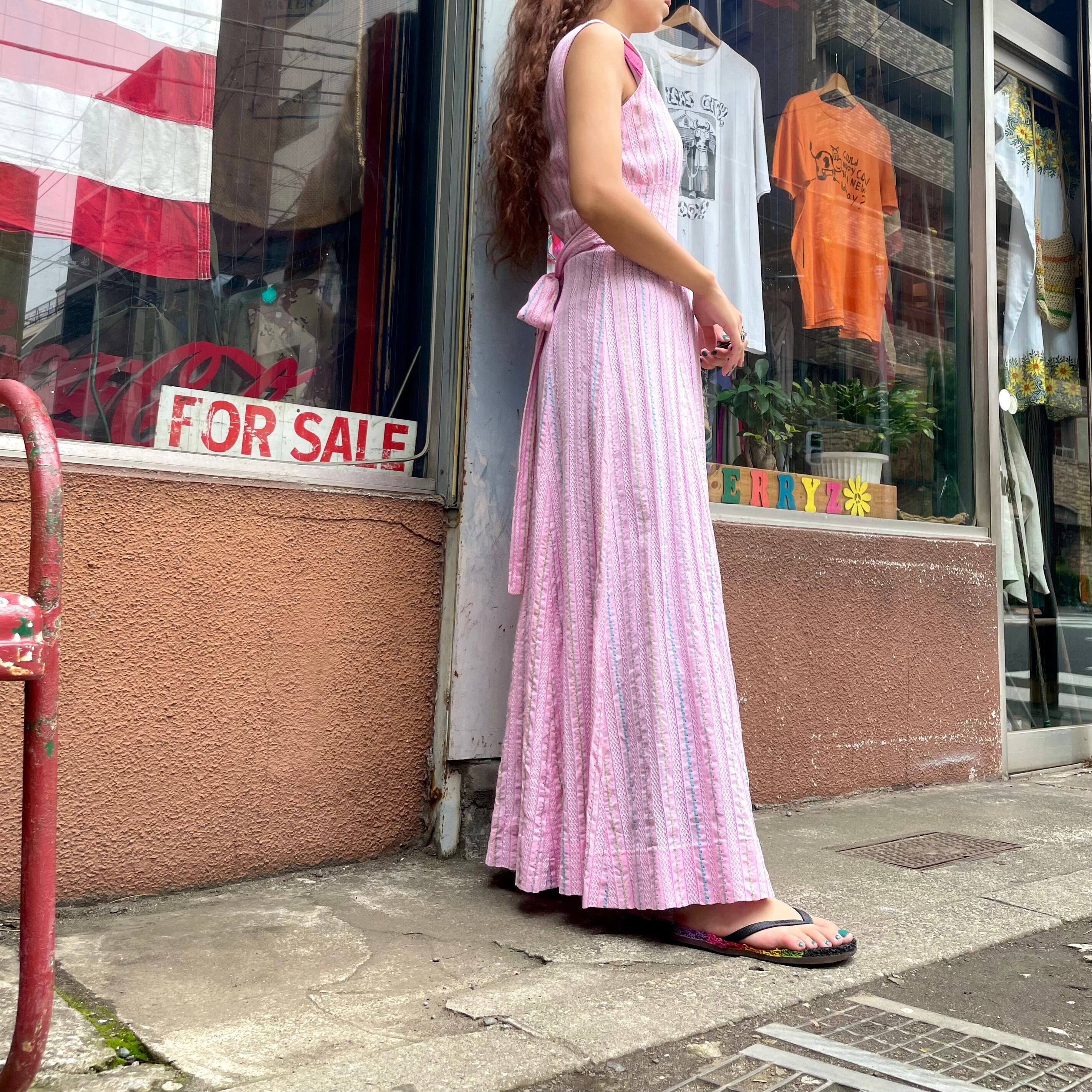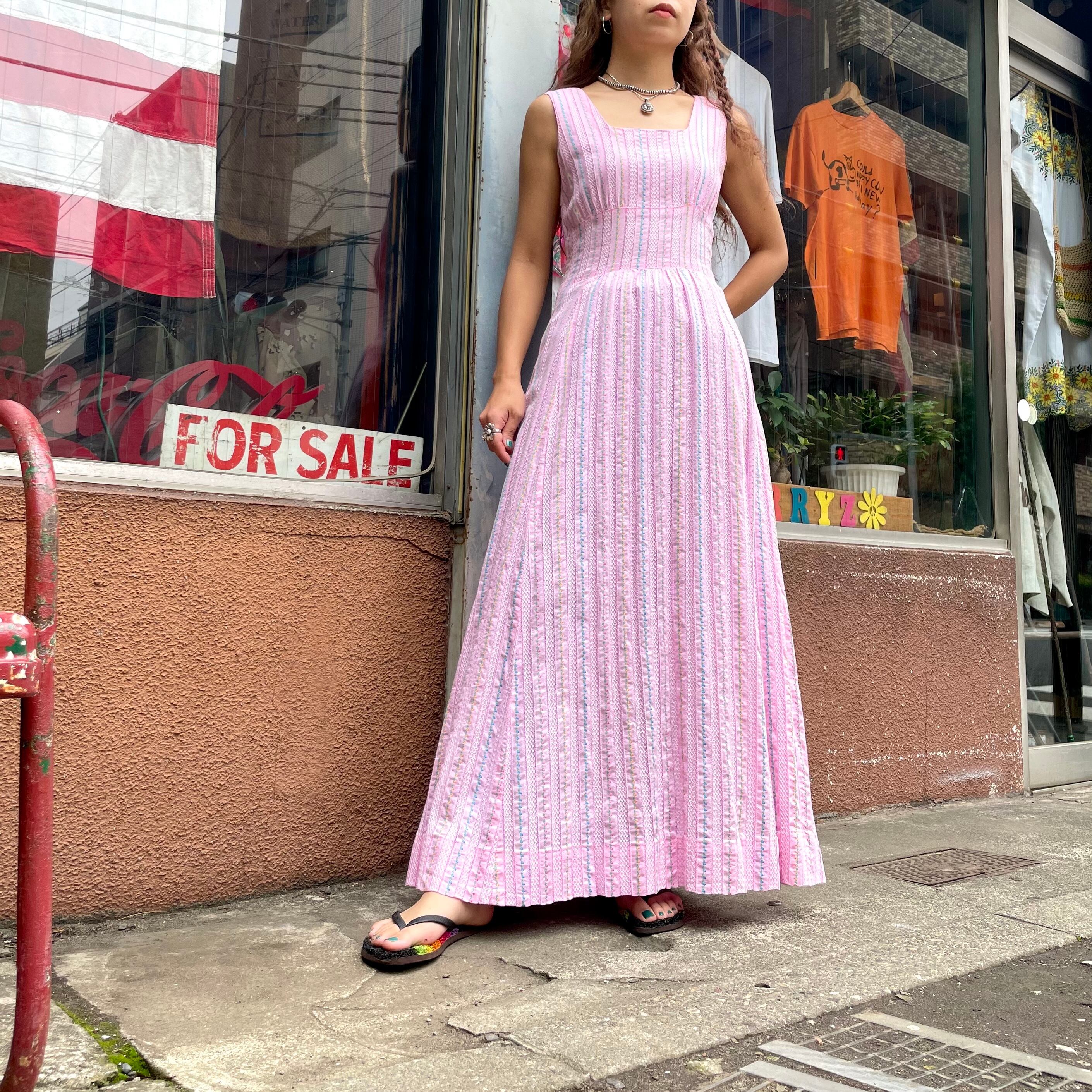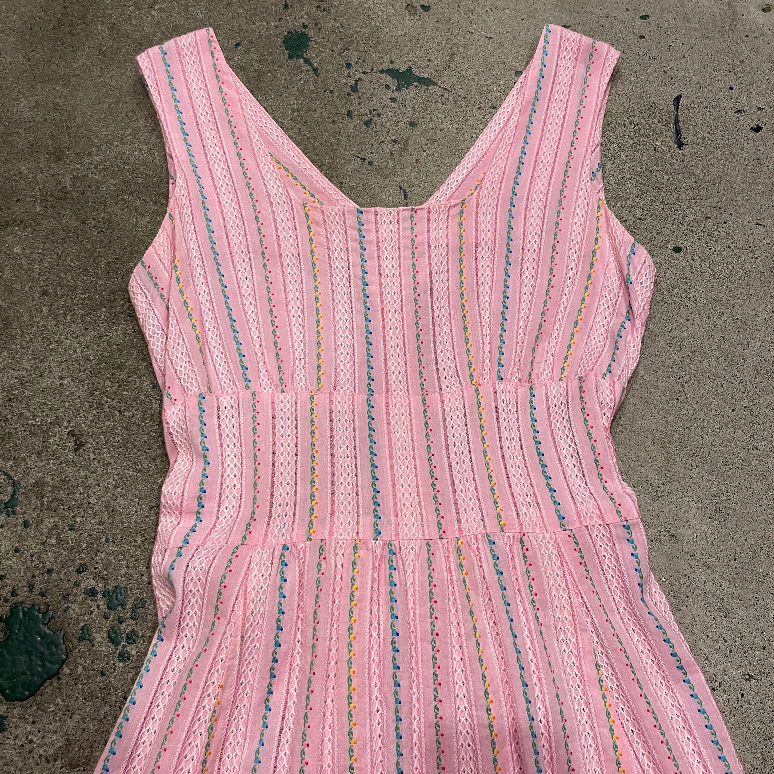 ベビーピンクのレースや細かい刺繍の生地がとてもかわいいワンピースです。