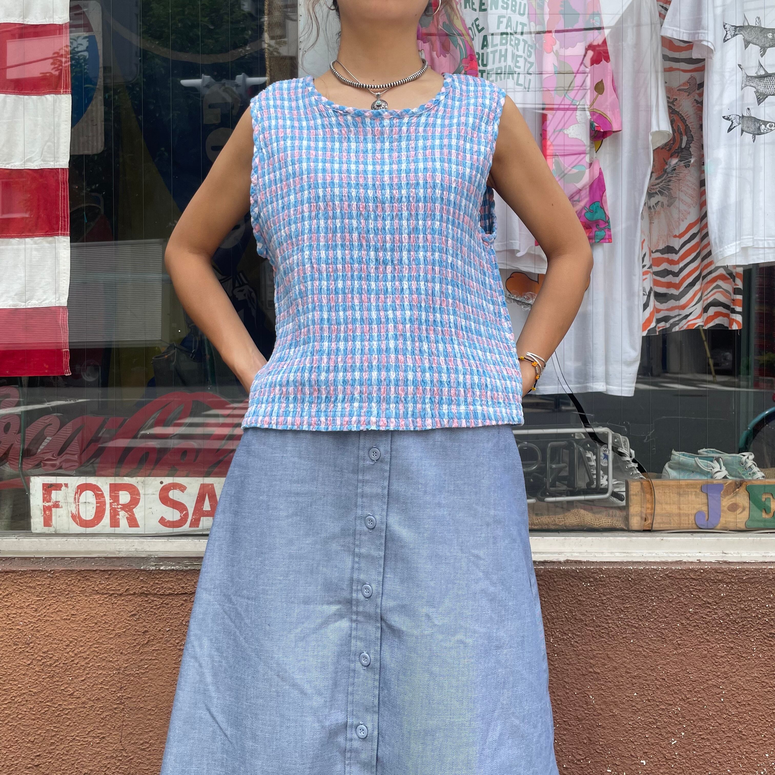 ピンクと水色のチェック柄がかわいいタンクトップです。