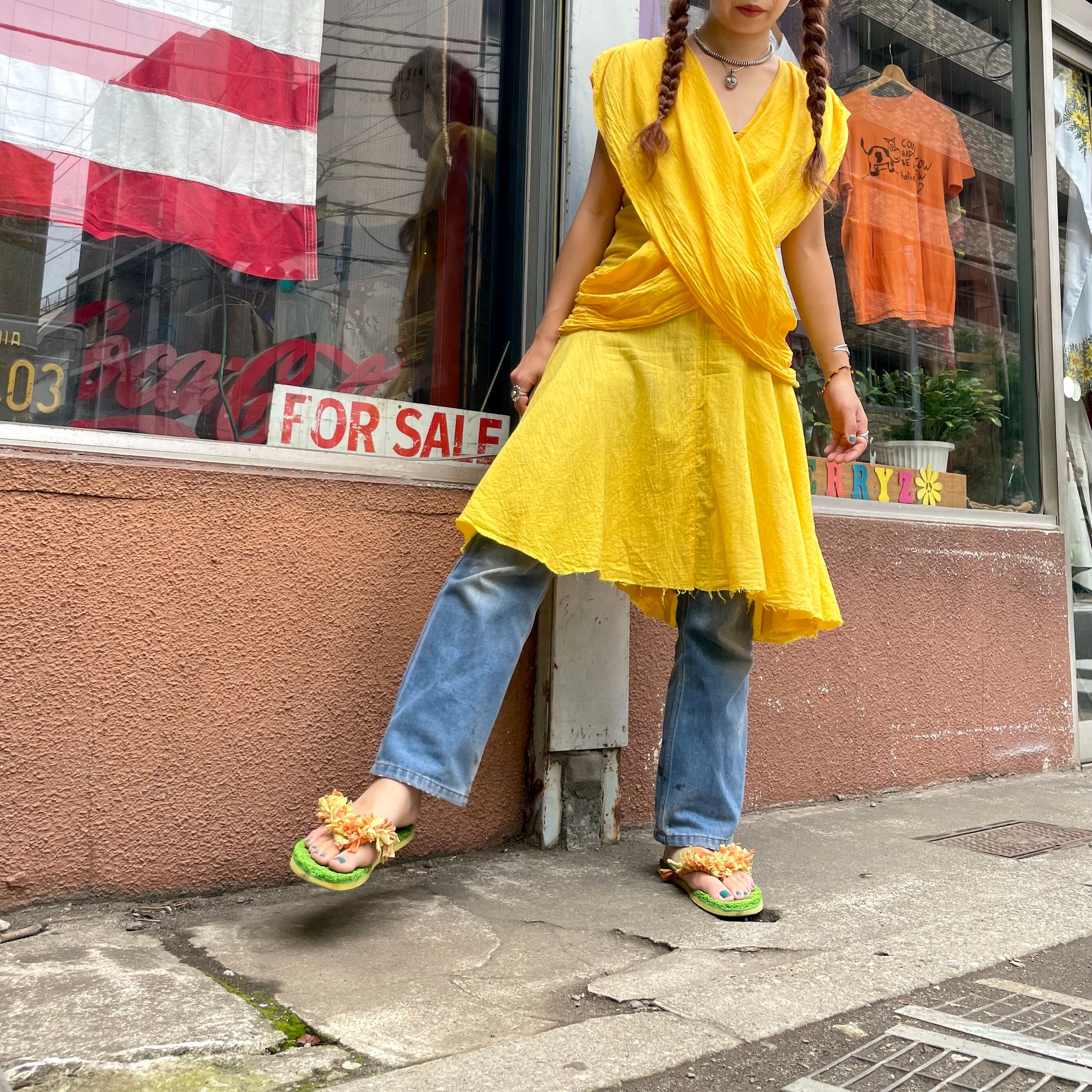裾が切りっぱなしになっていてそれもなんだかヤンチャな雰囲気で良い感じです。もっと短く切っても良さそうですね!