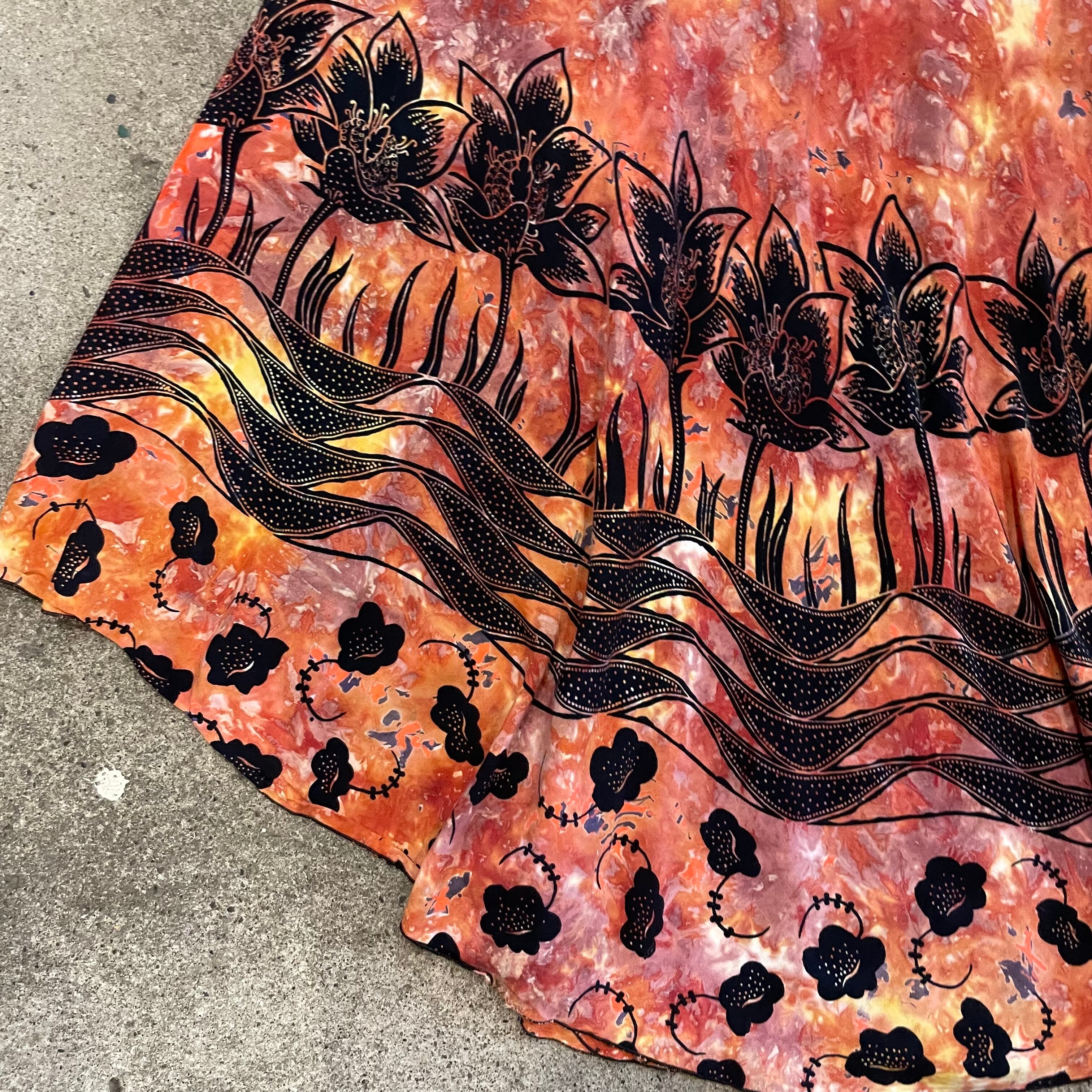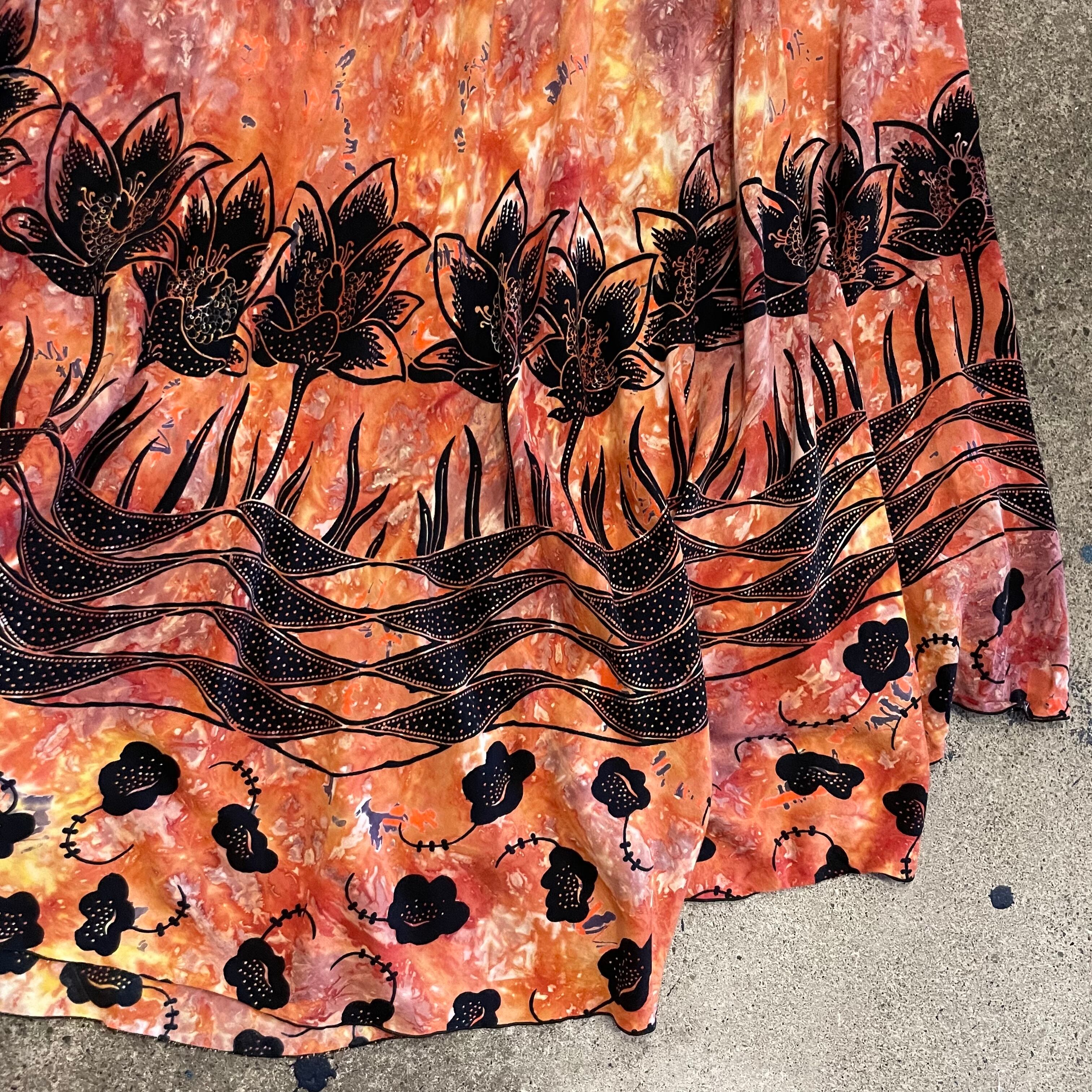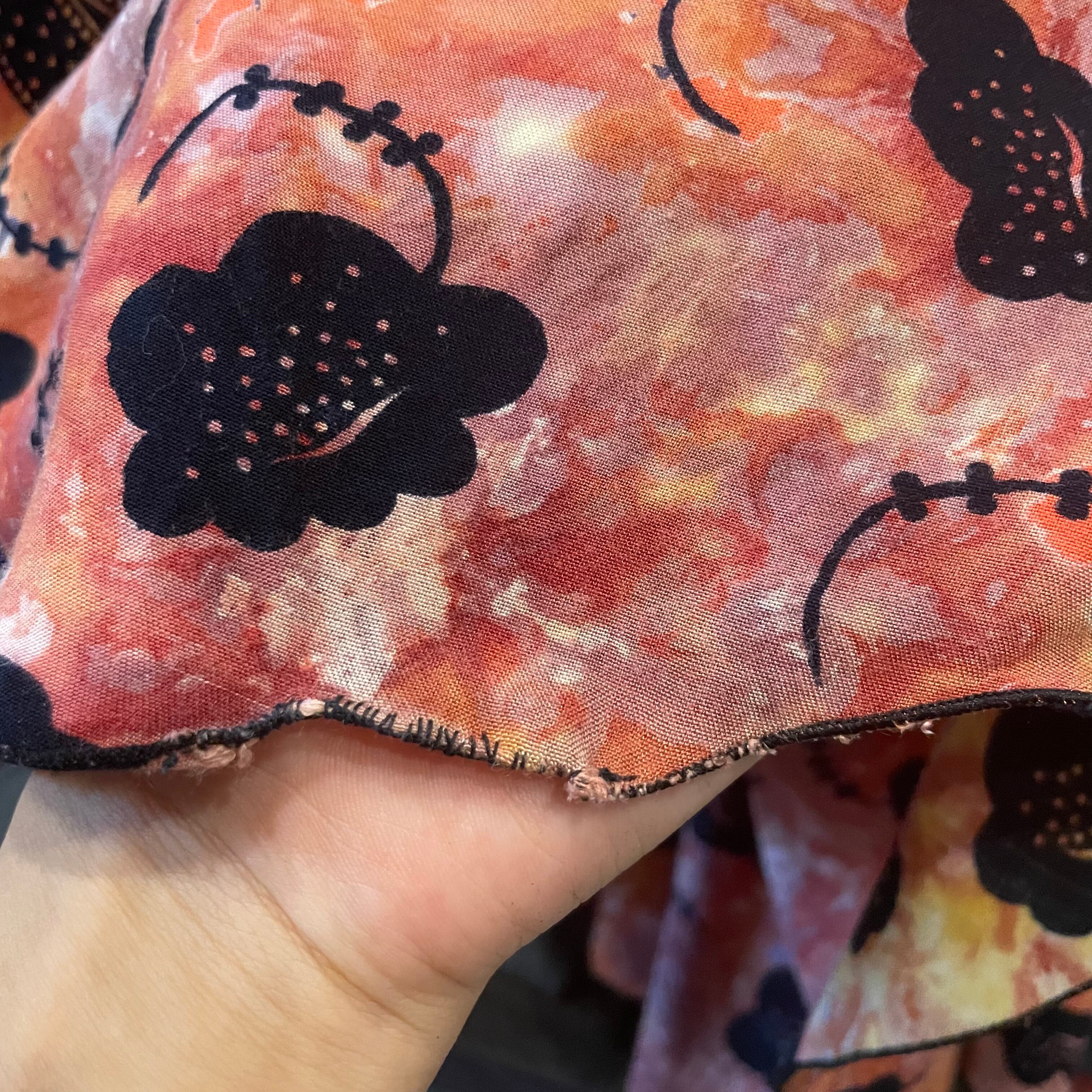 独特の雰囲気のあるお花の模様と、タイダイのようなムラのある染めがとても素敵なワンピースです。肩で結ぶタイプのキャミソールってかわいいですよね。