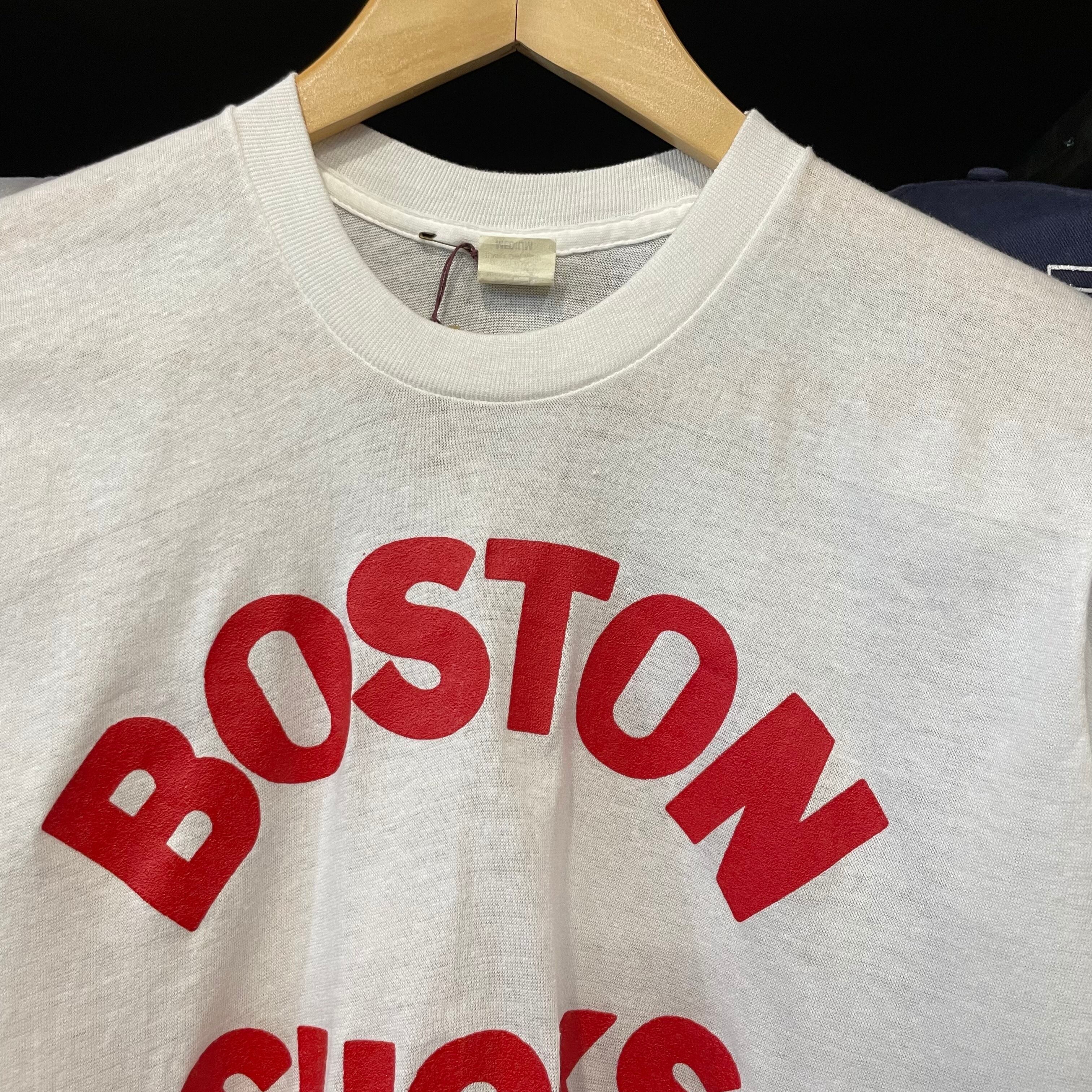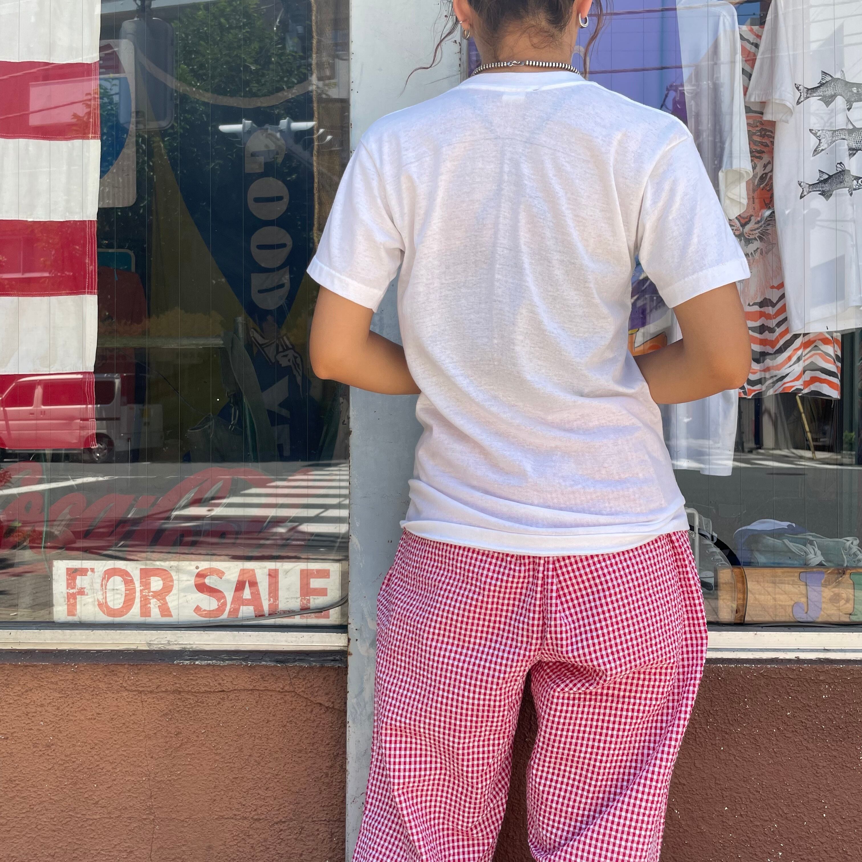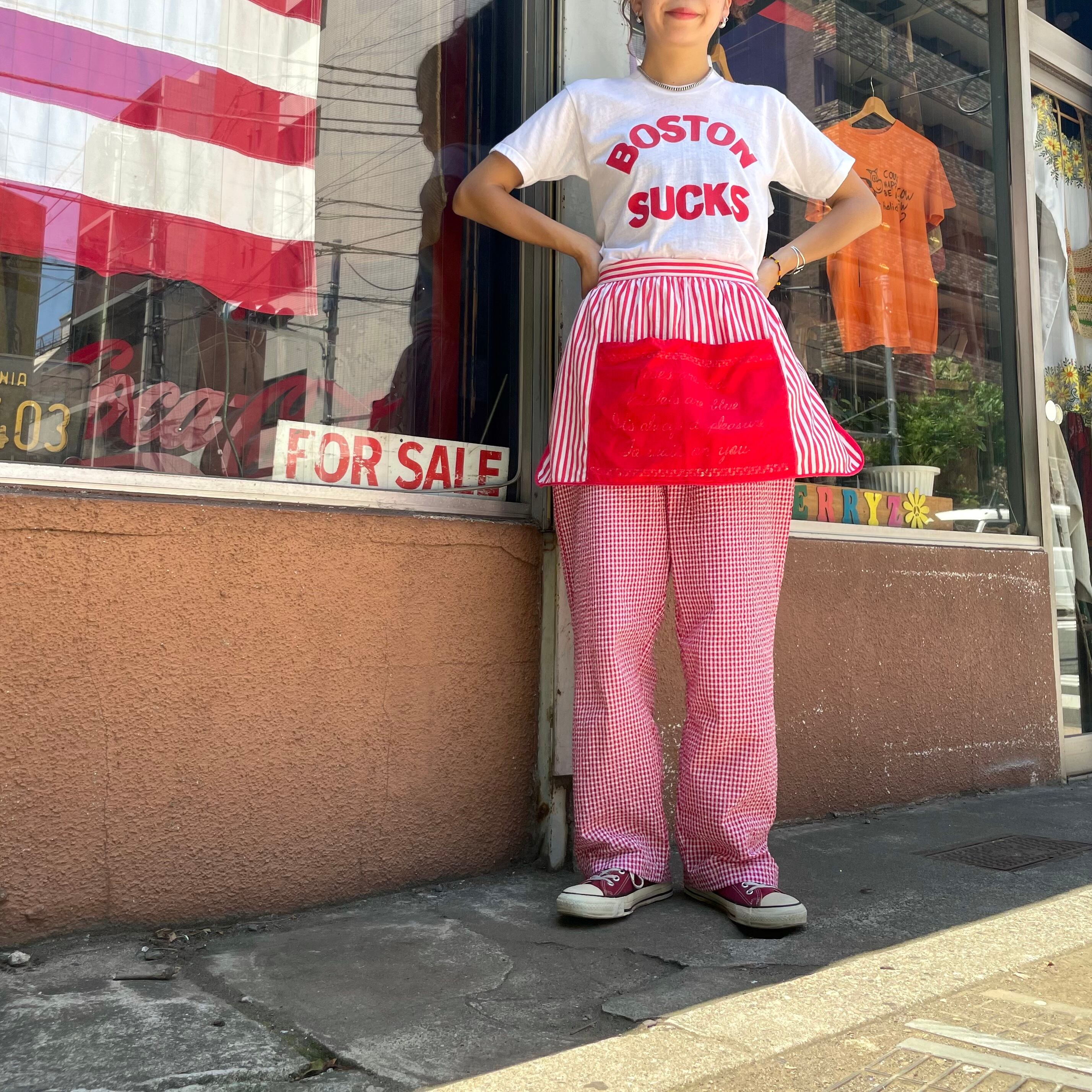 白地に赤い文字で書体もバランスも良い感じのTシャツです。