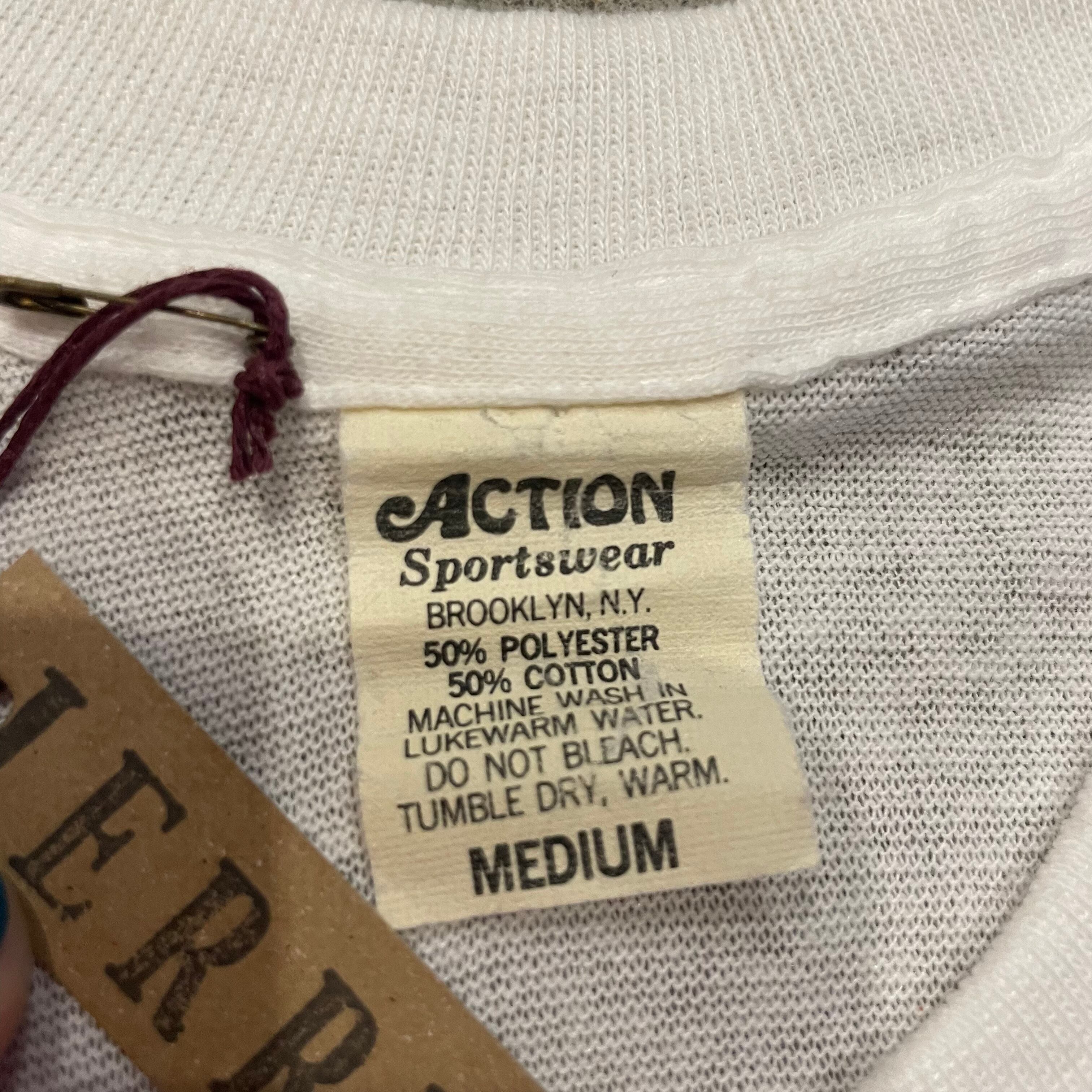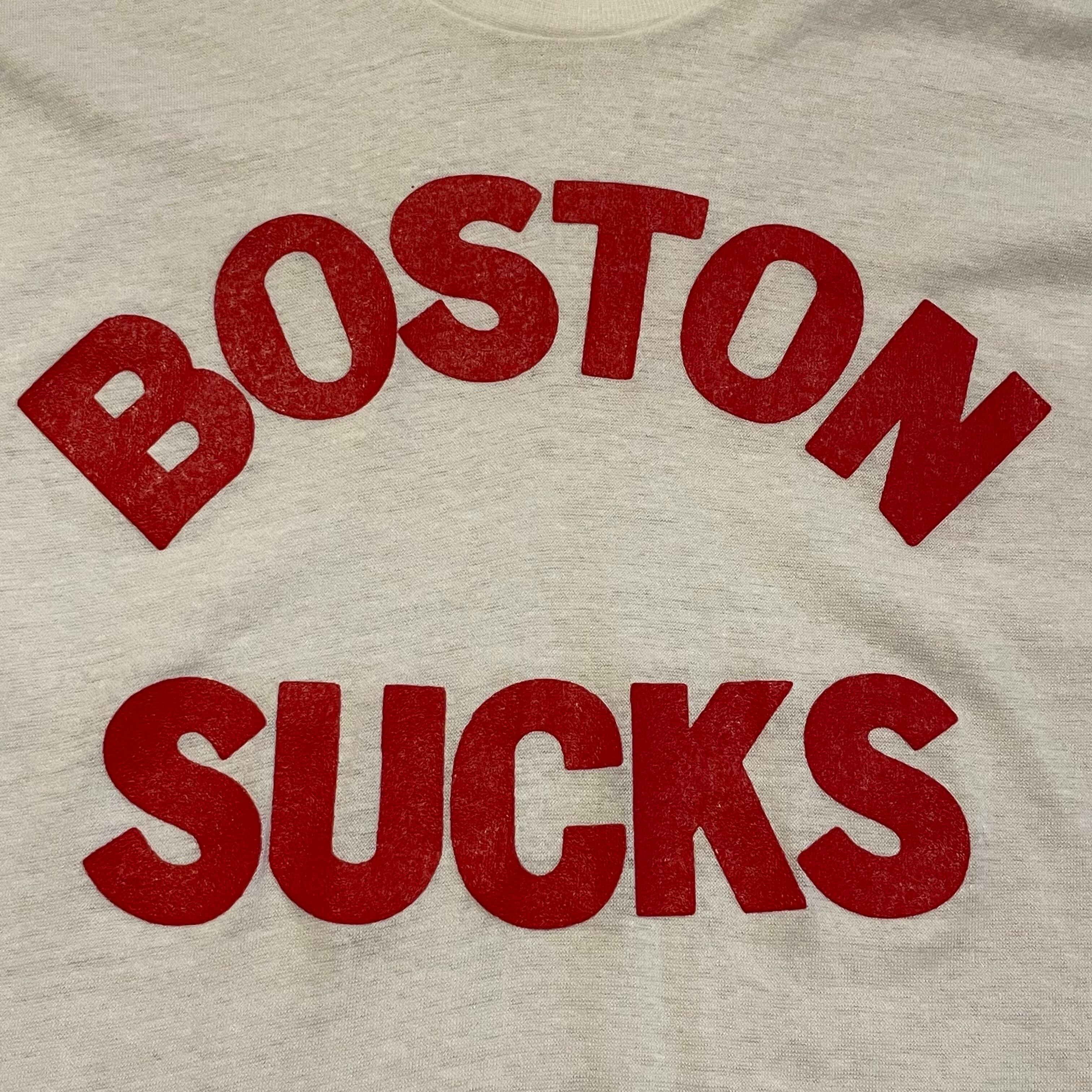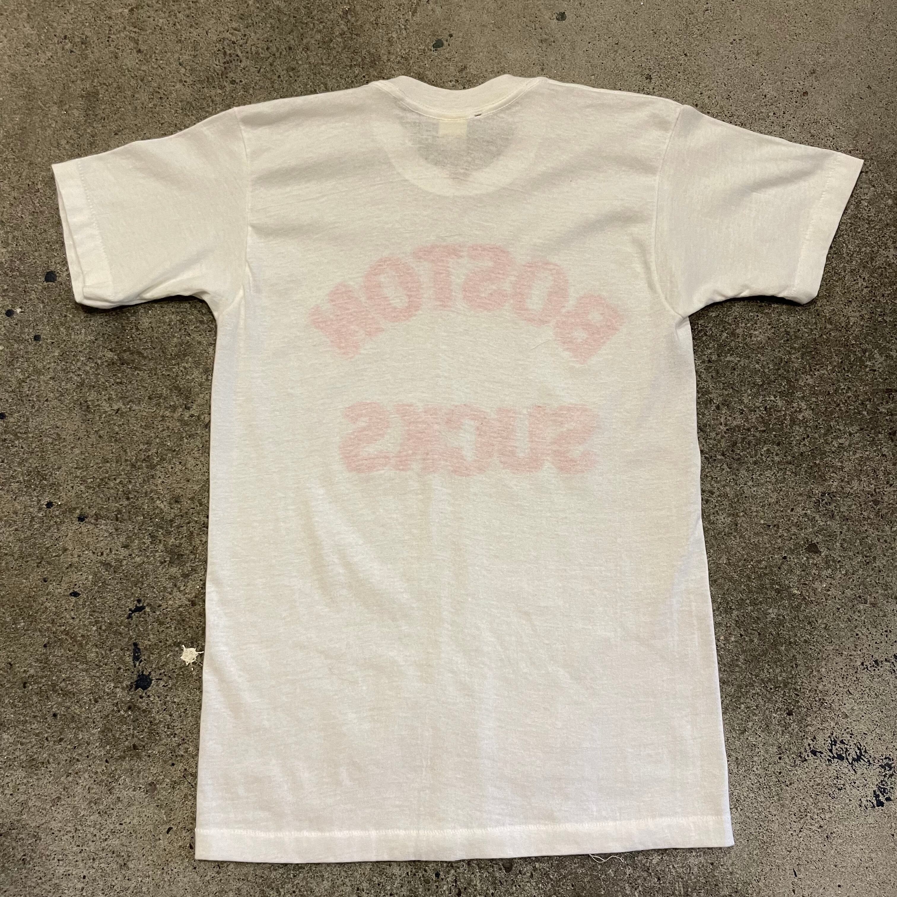 白地に赤い文字で書体もバランスも良い感じのTシャツです。