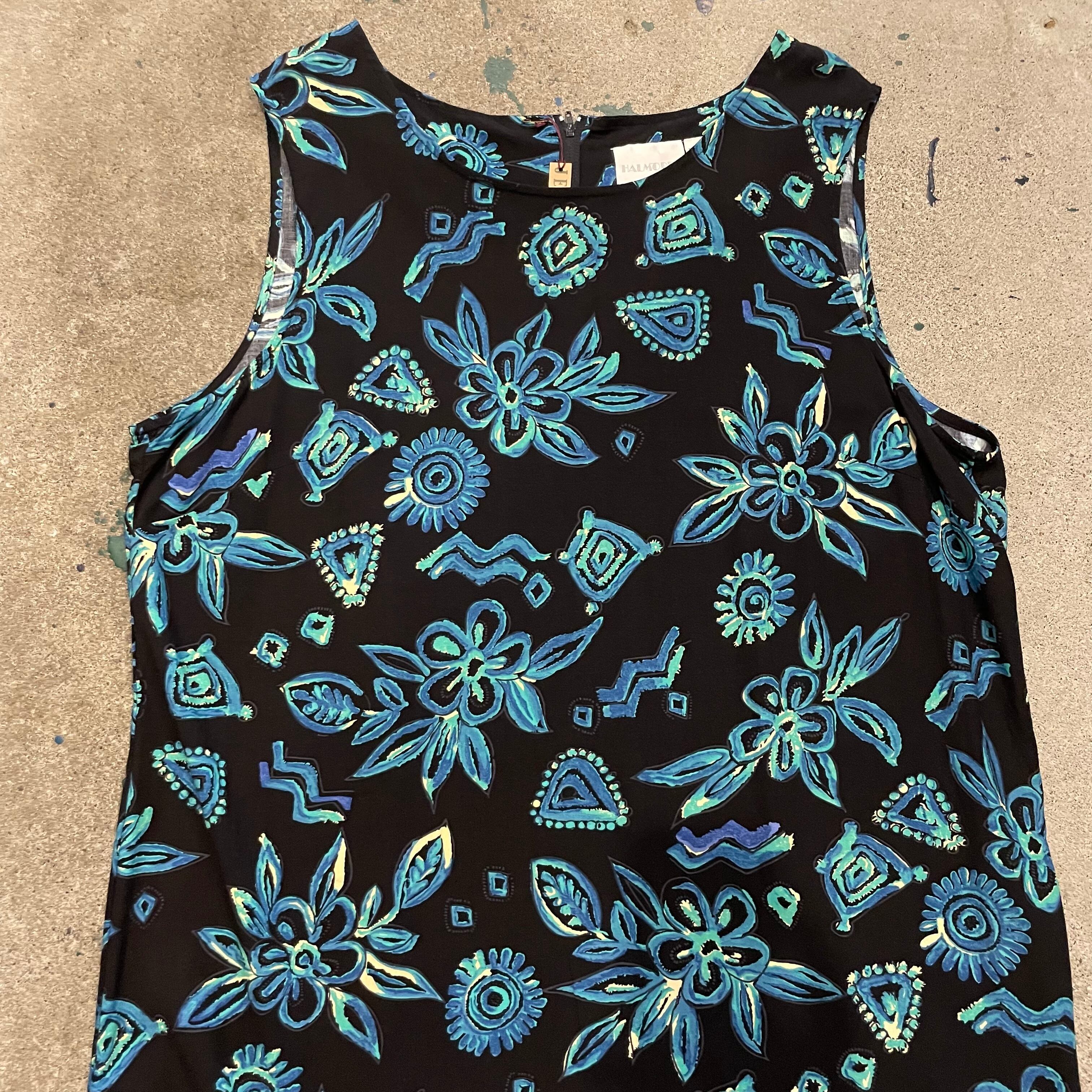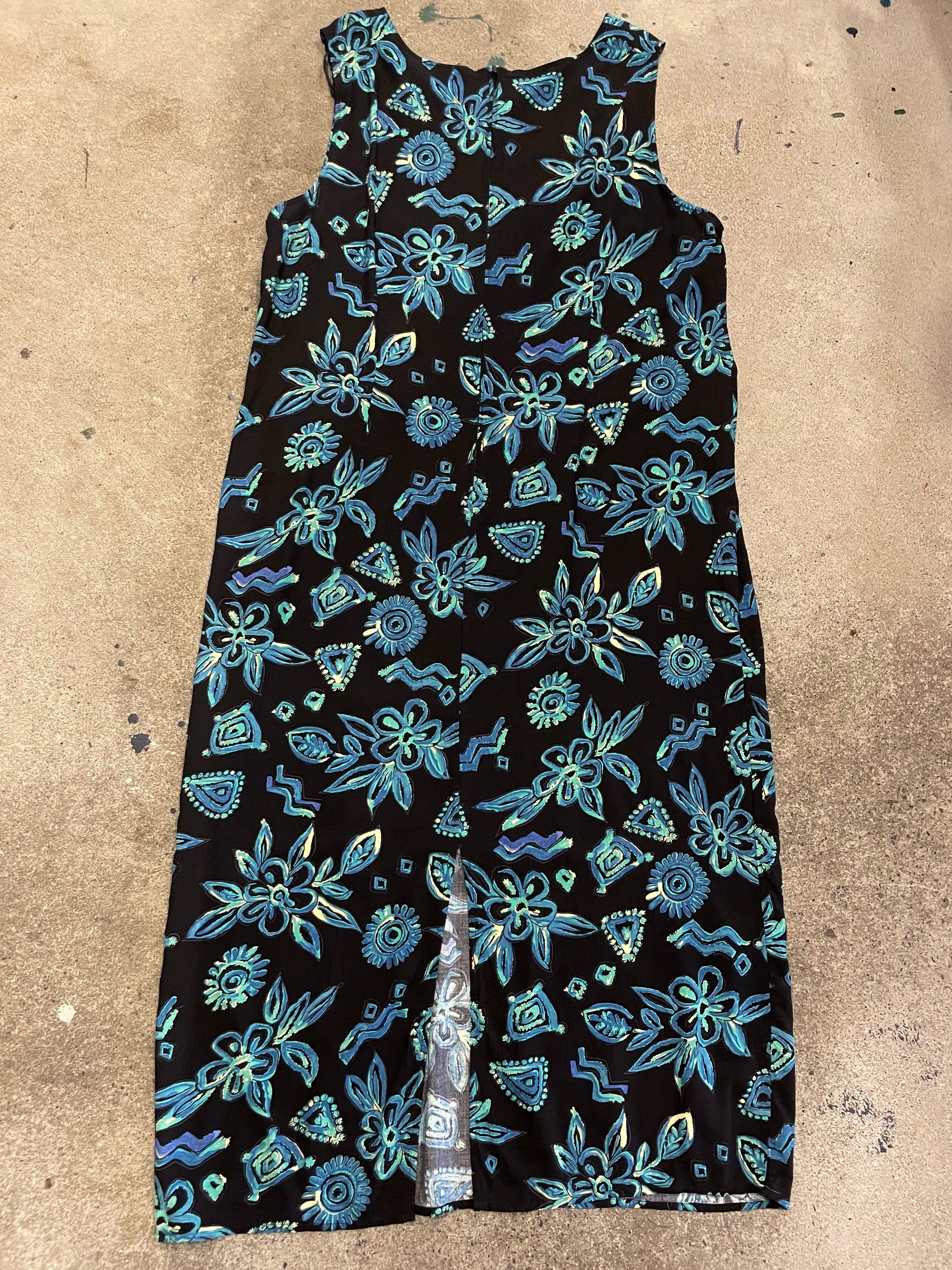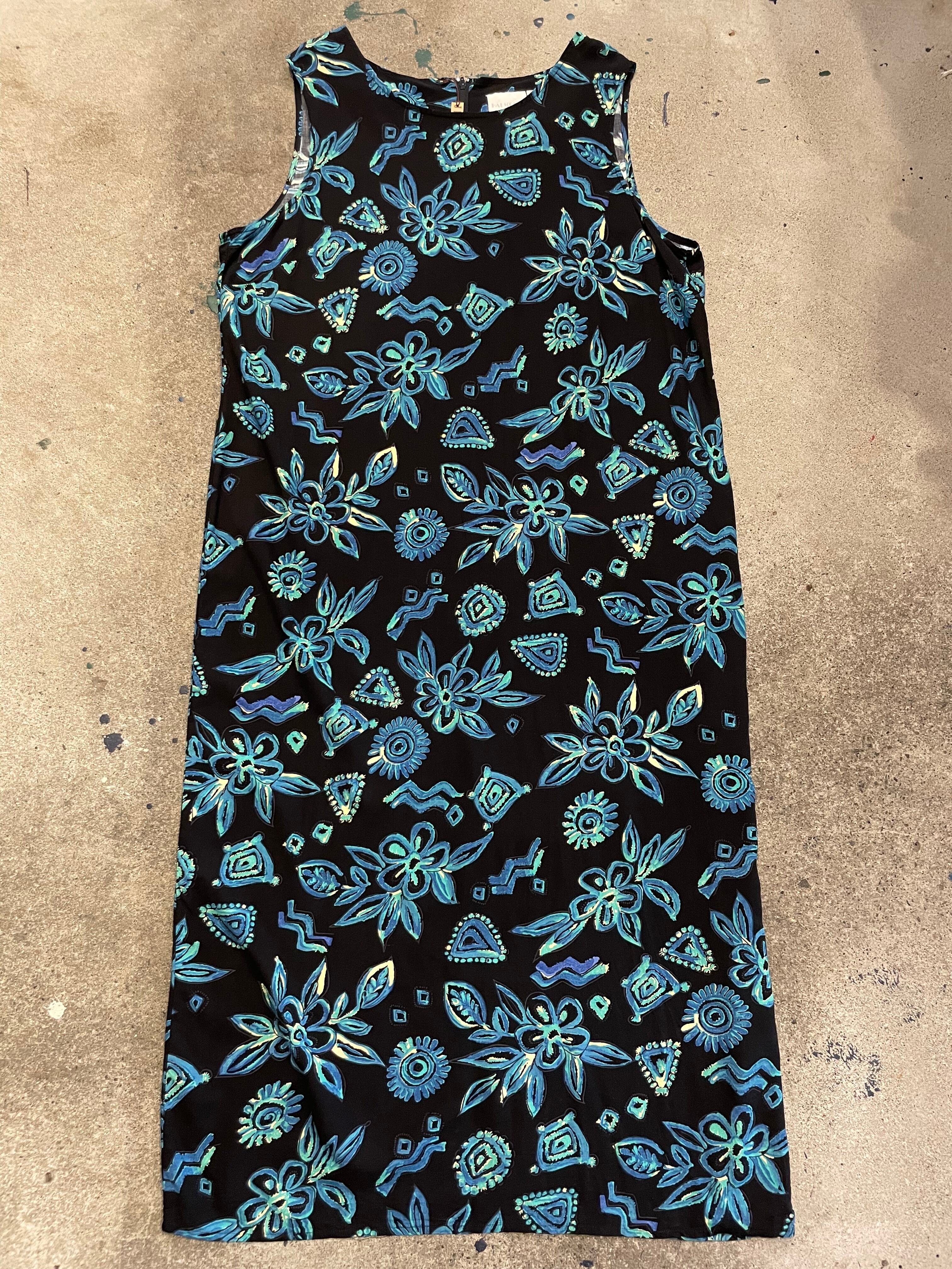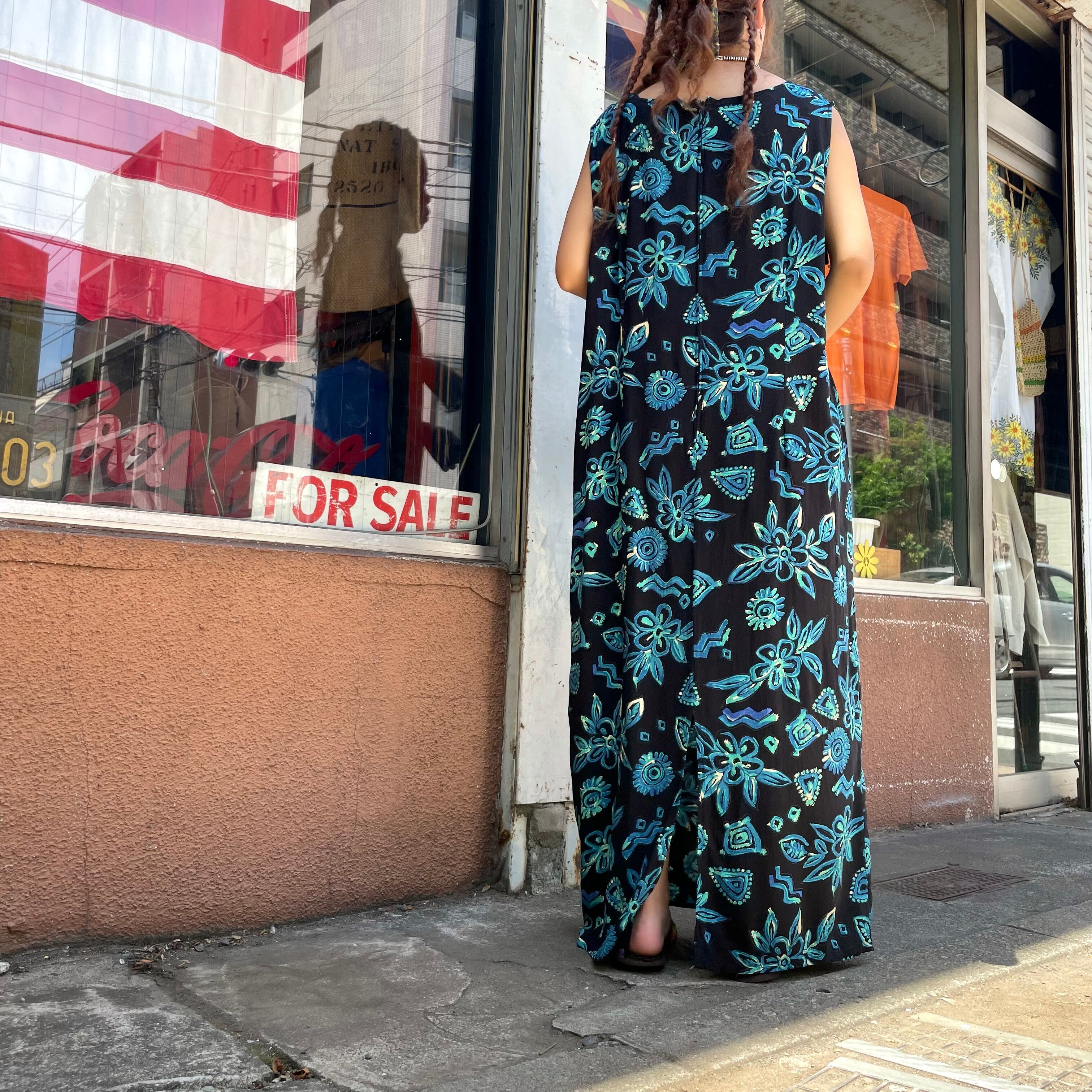 黒地に青緑の花柄がとても素敵なワンピースです。