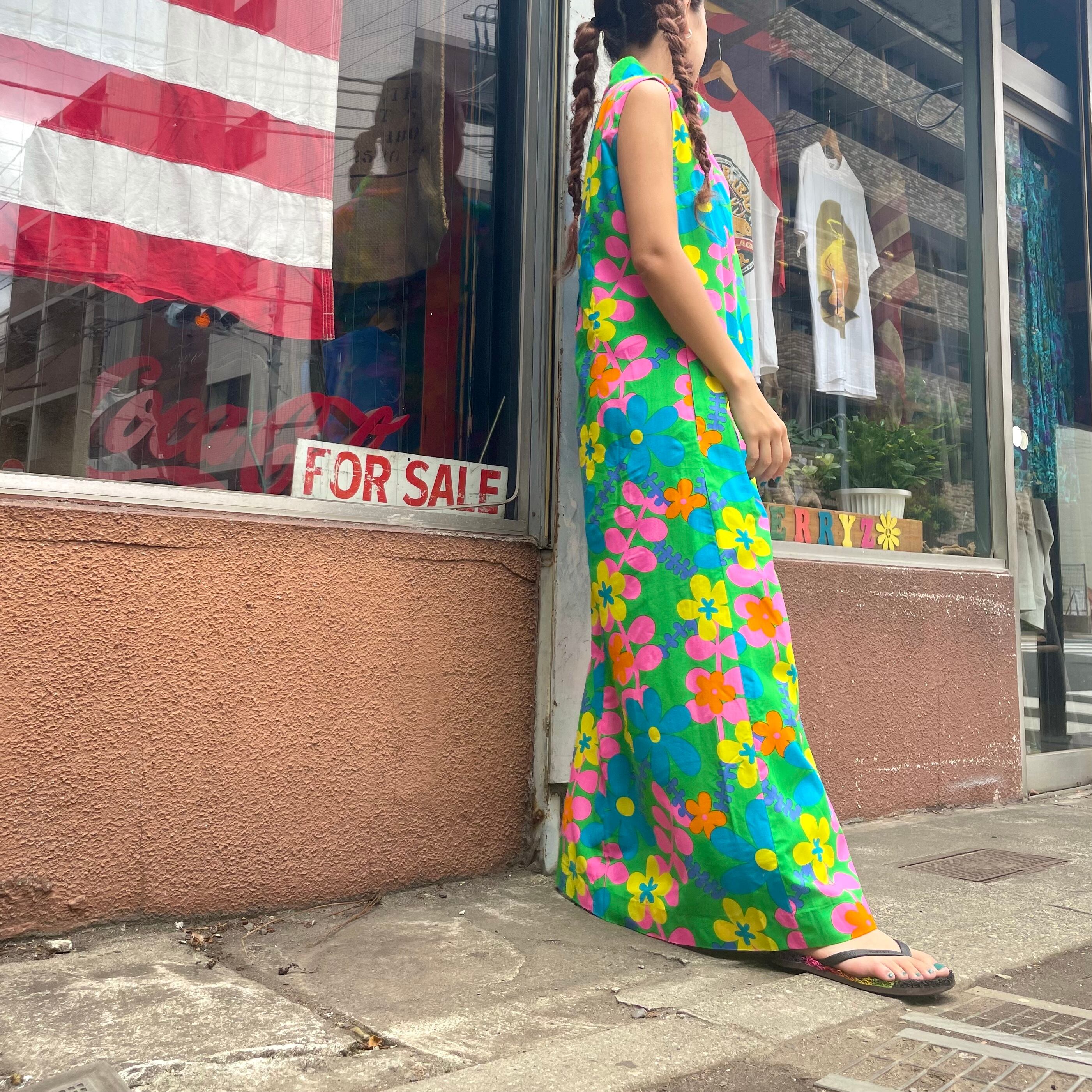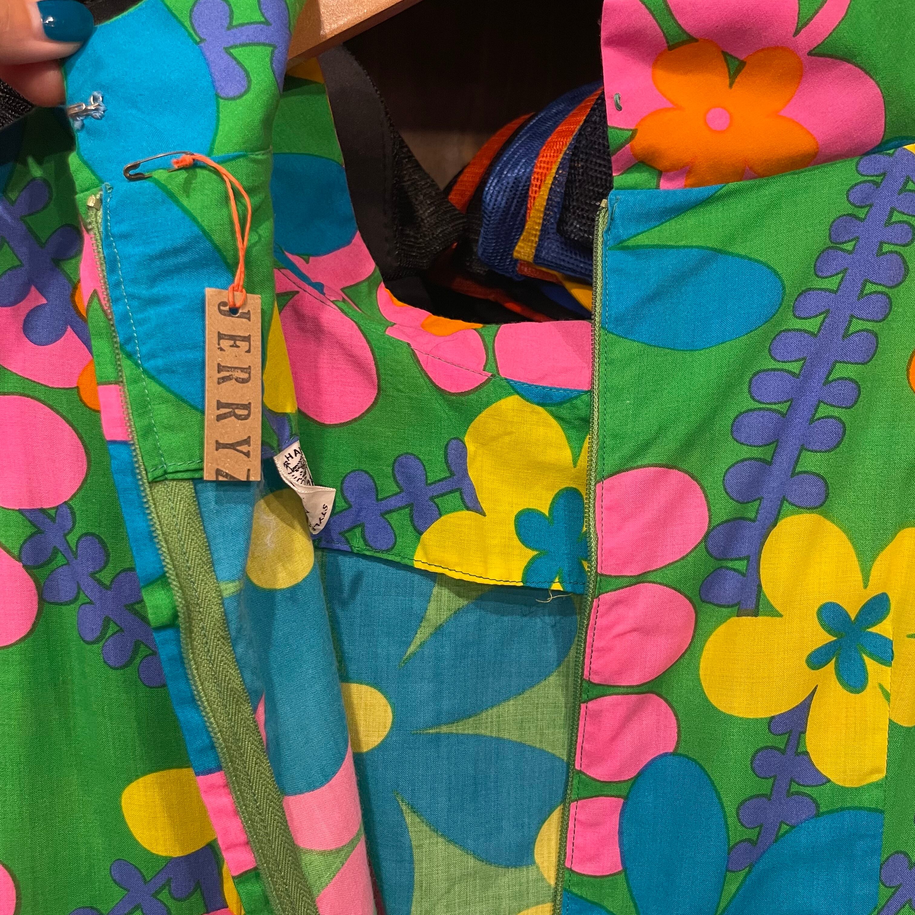 なんと言ってもハッピーでポップな花柄が印象的でかわいい一着です。