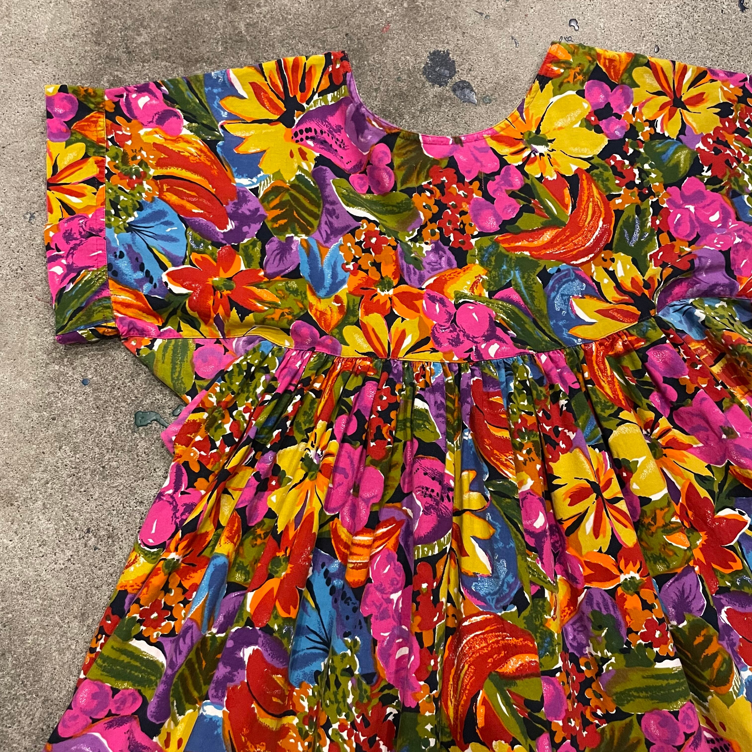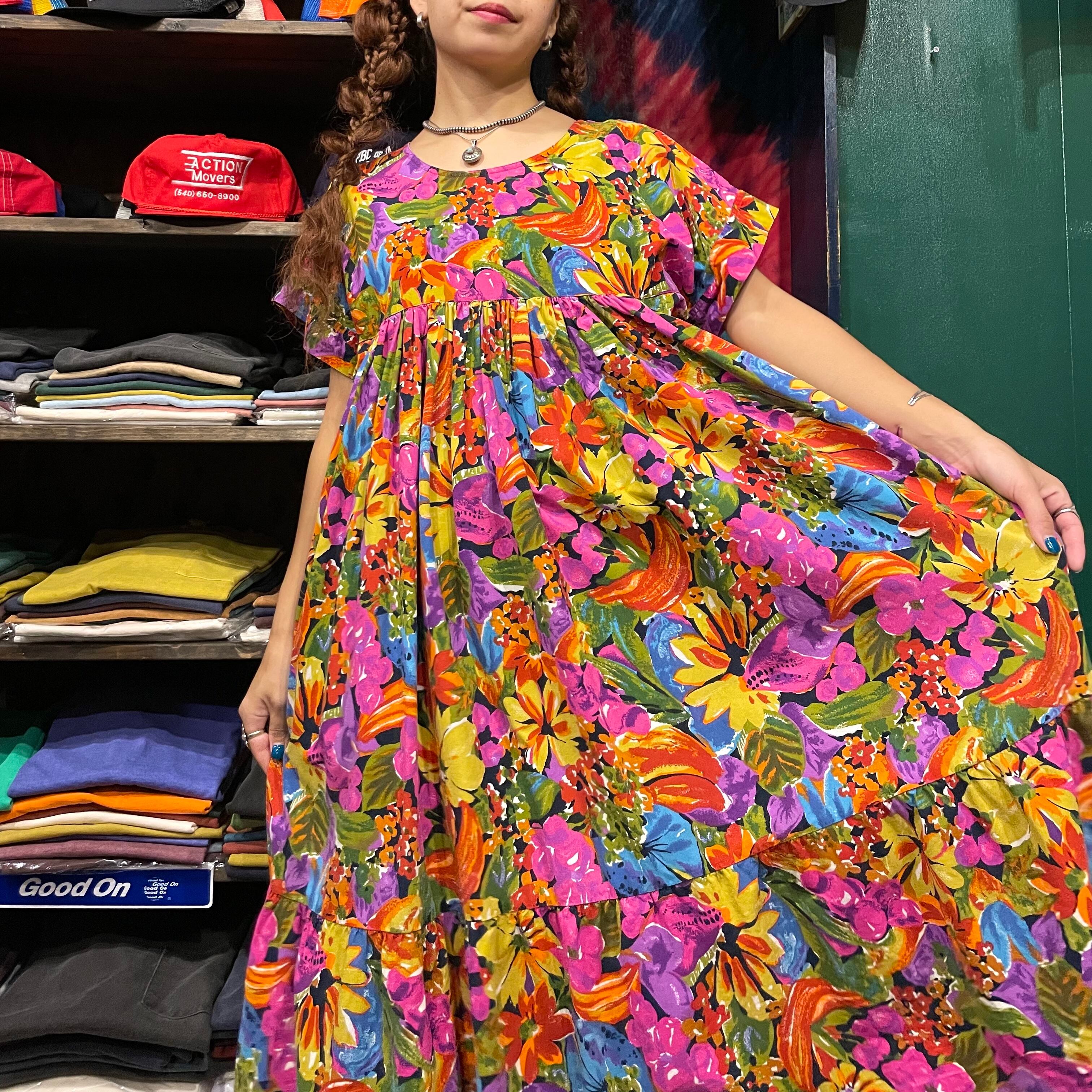 しっかり厚手のコットン素材の胸下切り替えでボリュームのあるシルエットがかわいいですし、両サイドにポケットが付いていて便利だと思います。一枚で着てもかわいいですし、ロングスカートを重ねても良さそうですね!