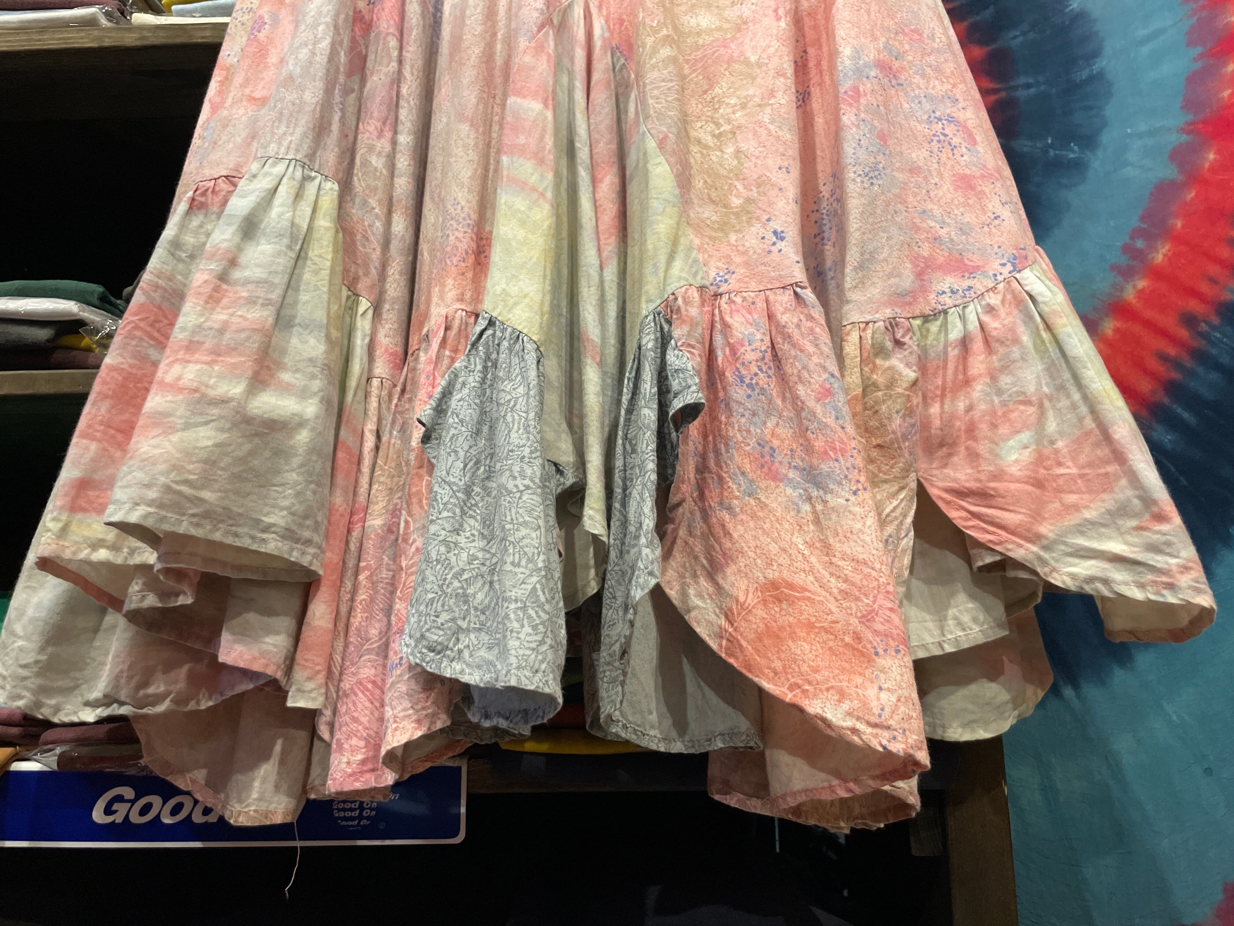 裾のフリルが丸いカットになっていたり、なみなみに付いていたり面白いデザインです。