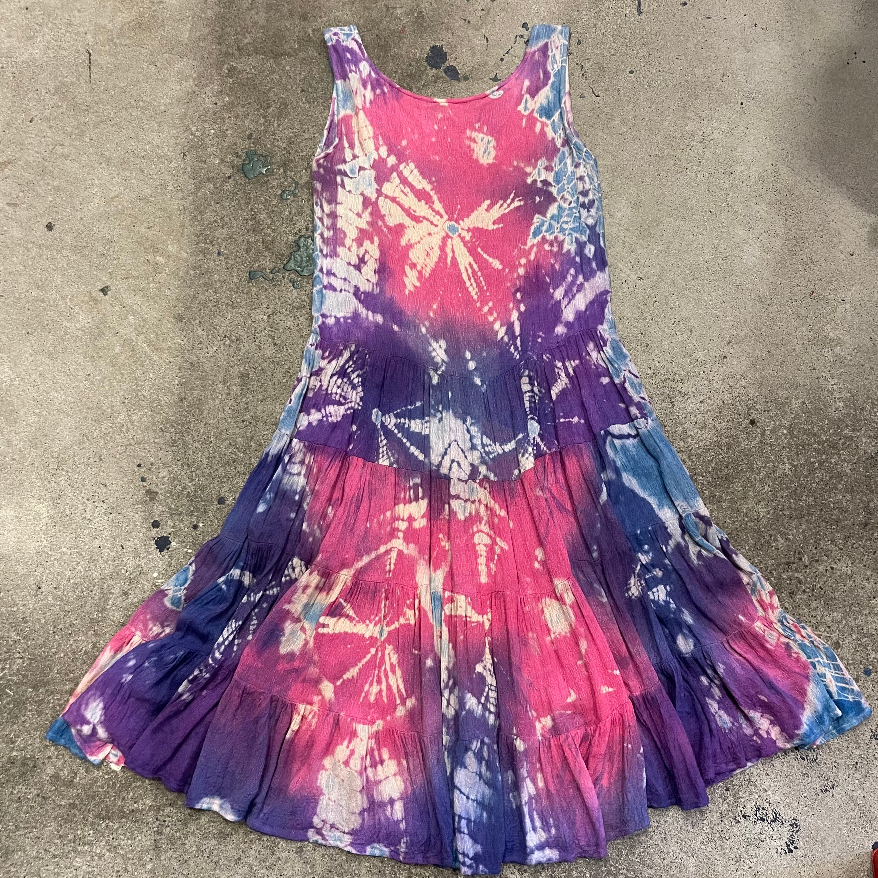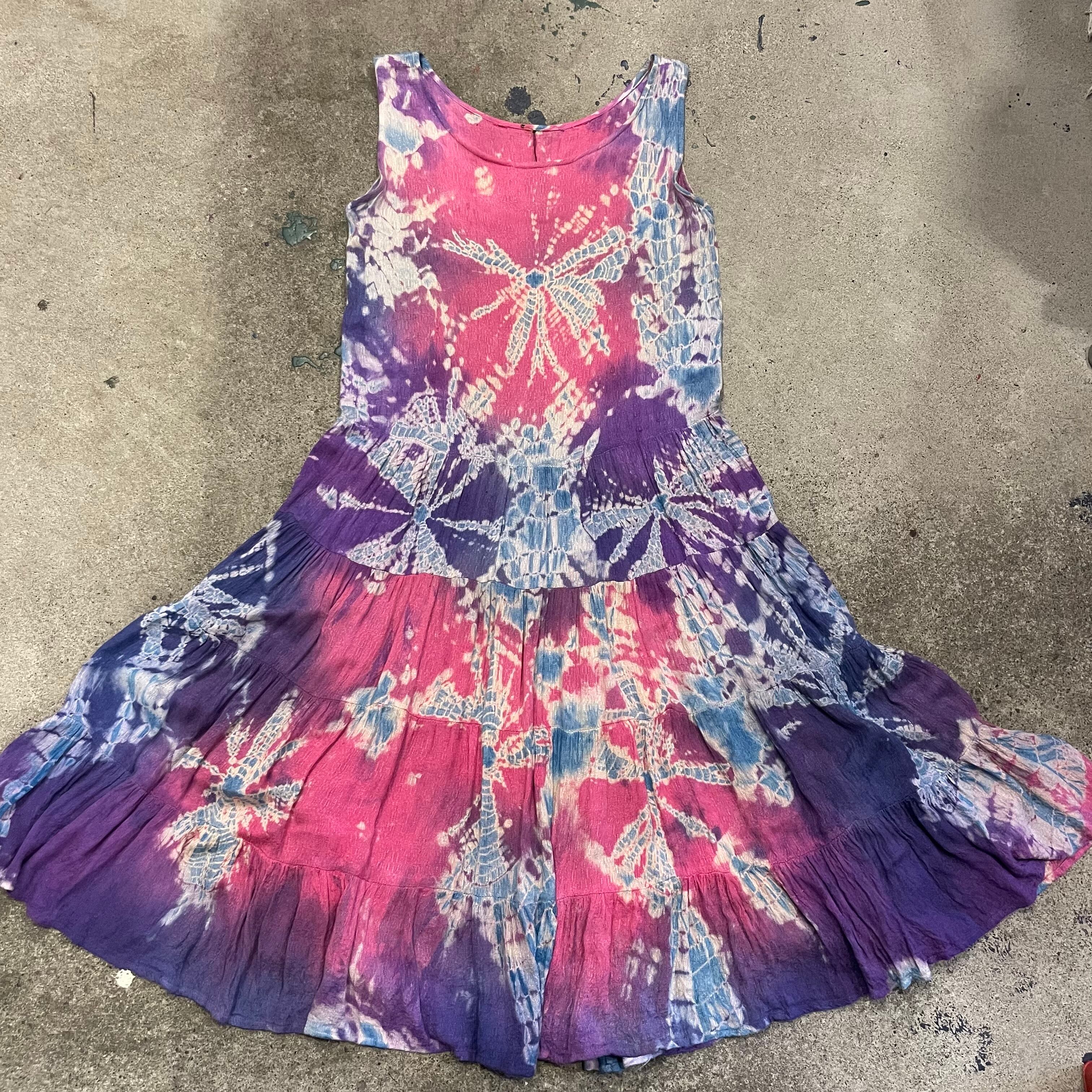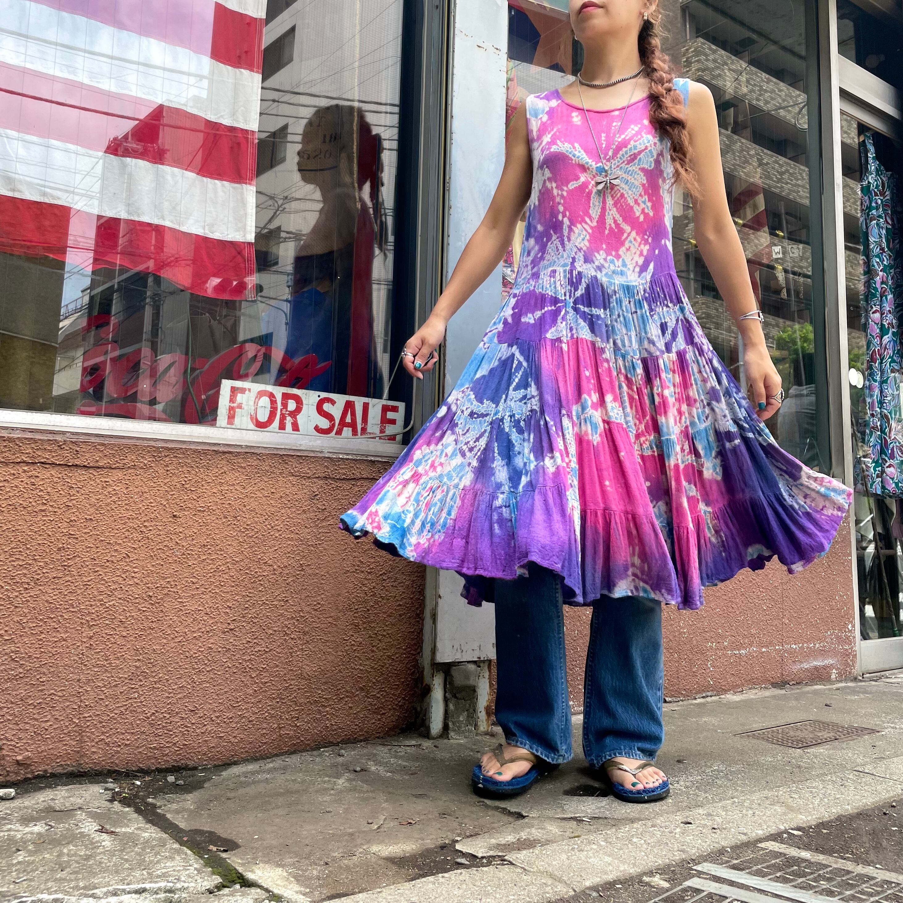 花火のような万華鏡のようなきれいなタイダイ染めがとてもかわいいワンピースです。