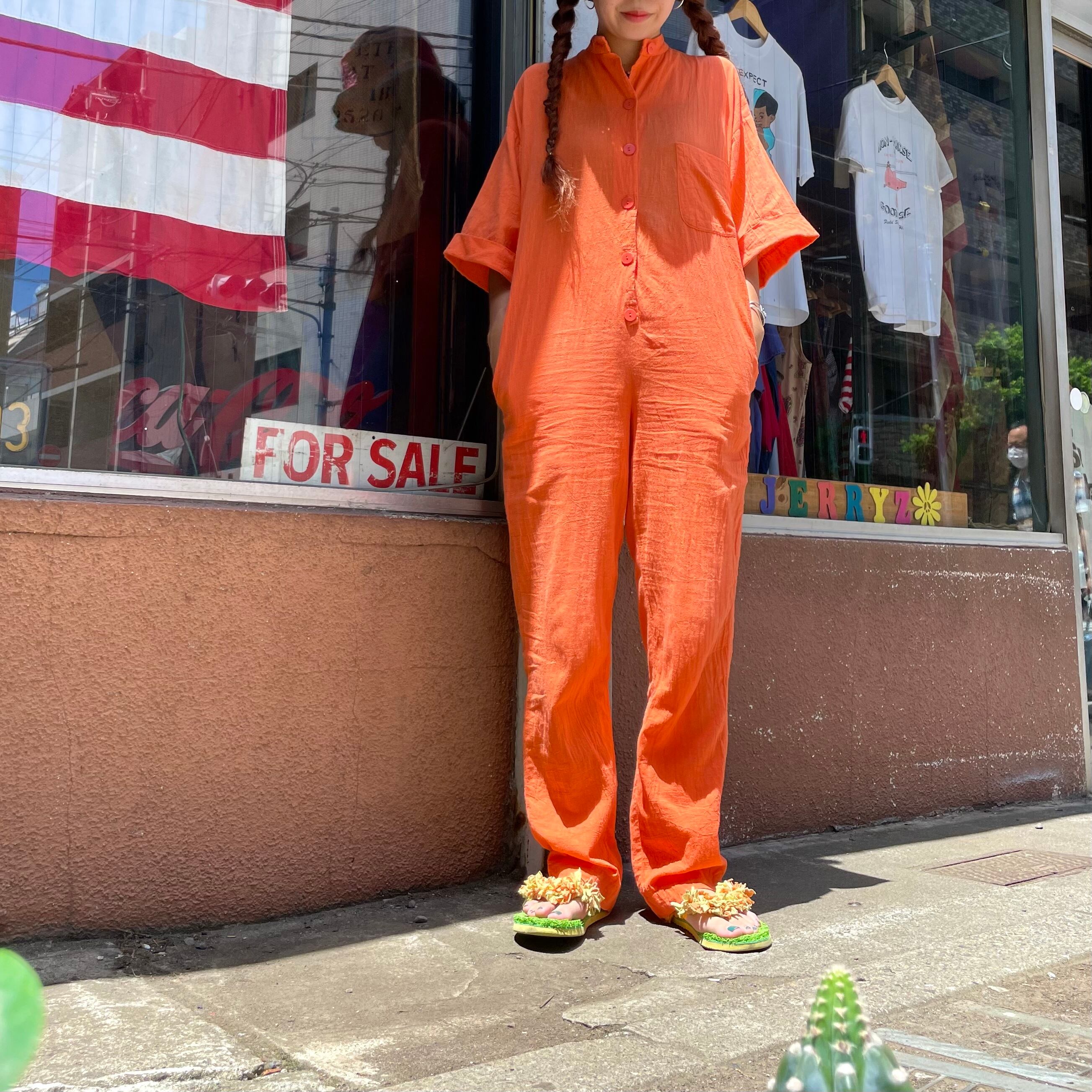 ポップなオレンジ色ですので、小物もカラフルに合わせてハッピーなコーディネートも良いですね!