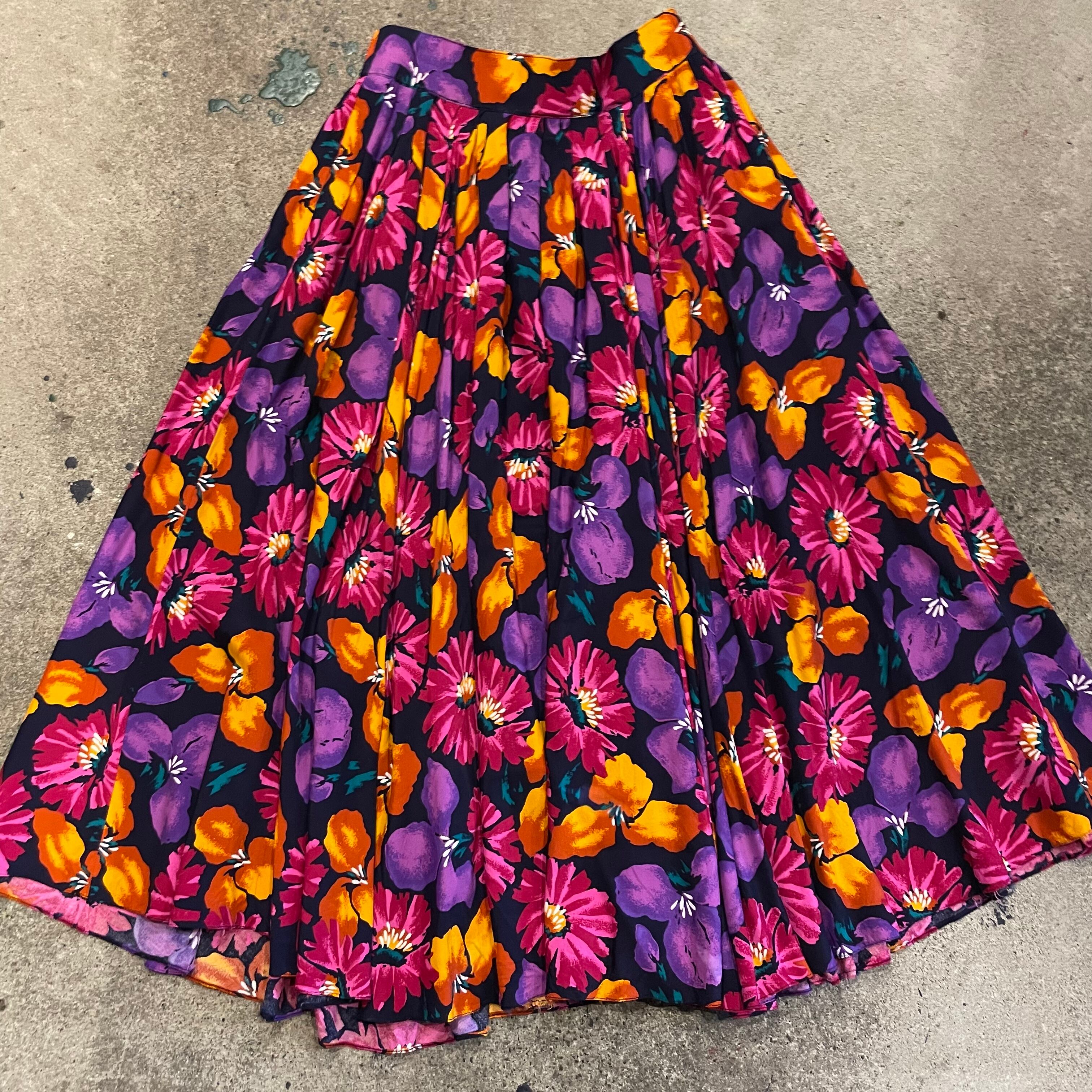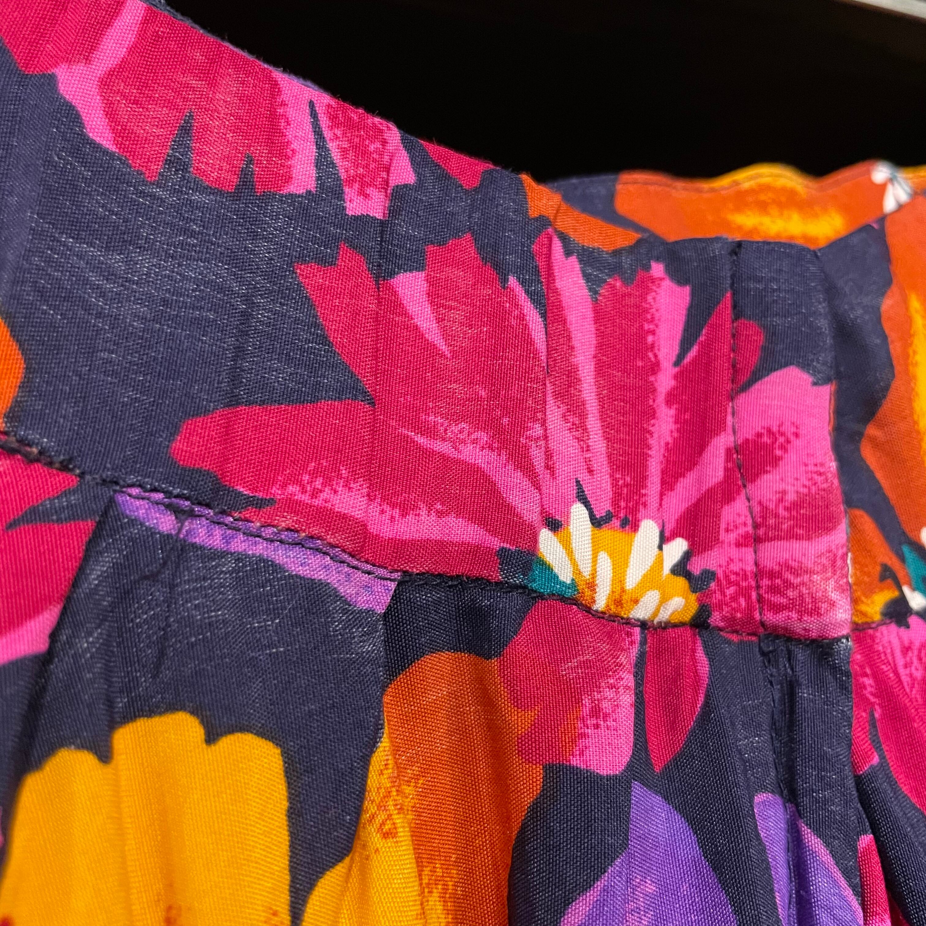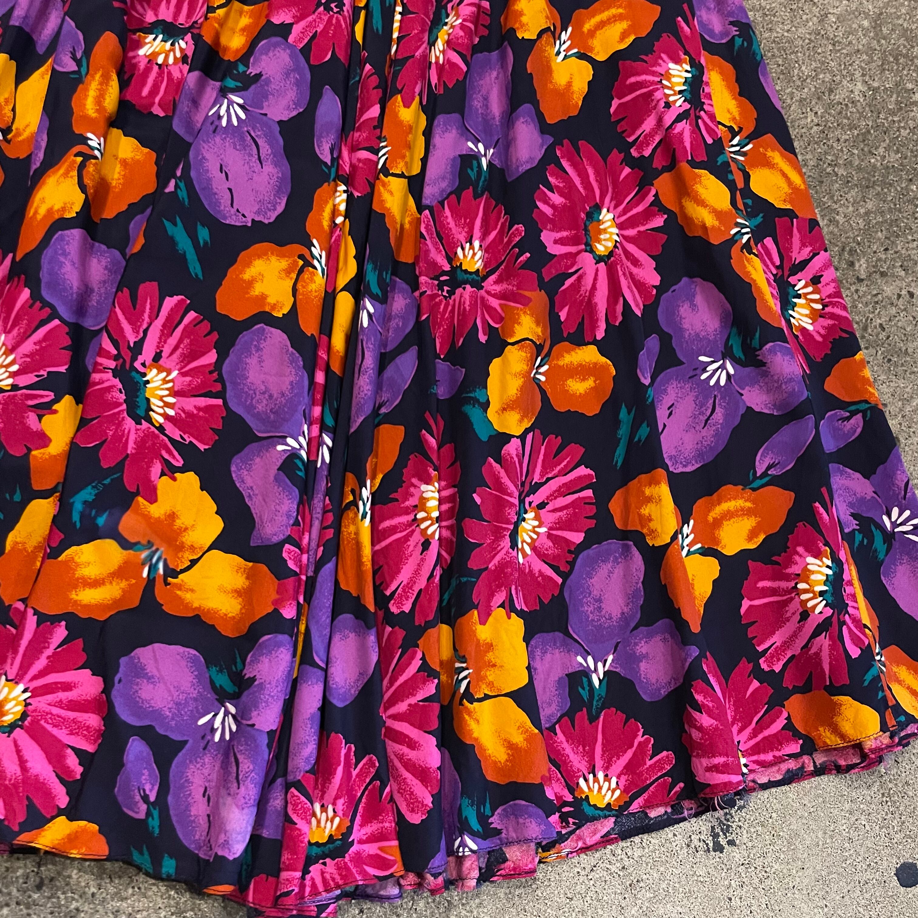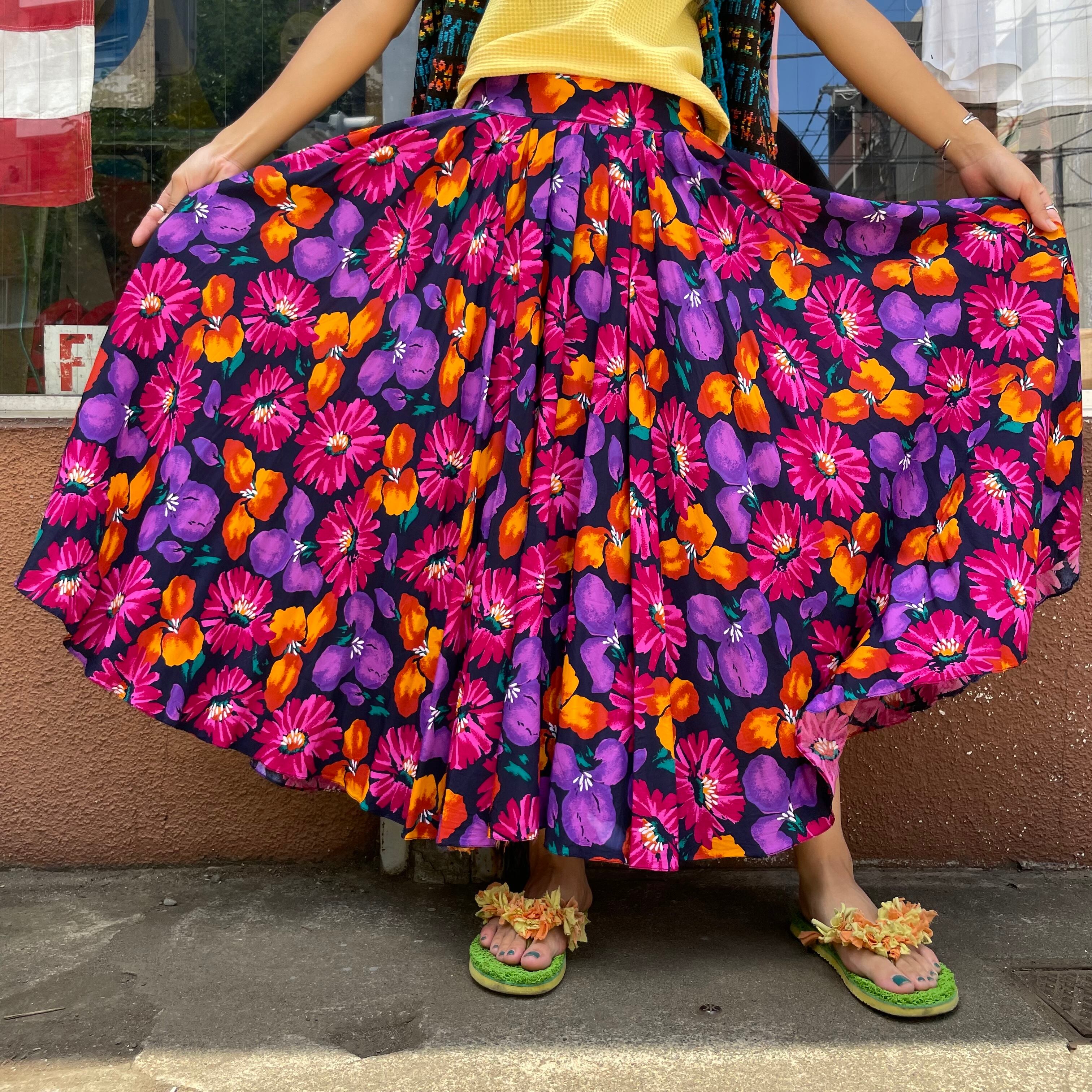 ネイビー地に色合わせがかわいい花柄が映えて素敵なスカートです。