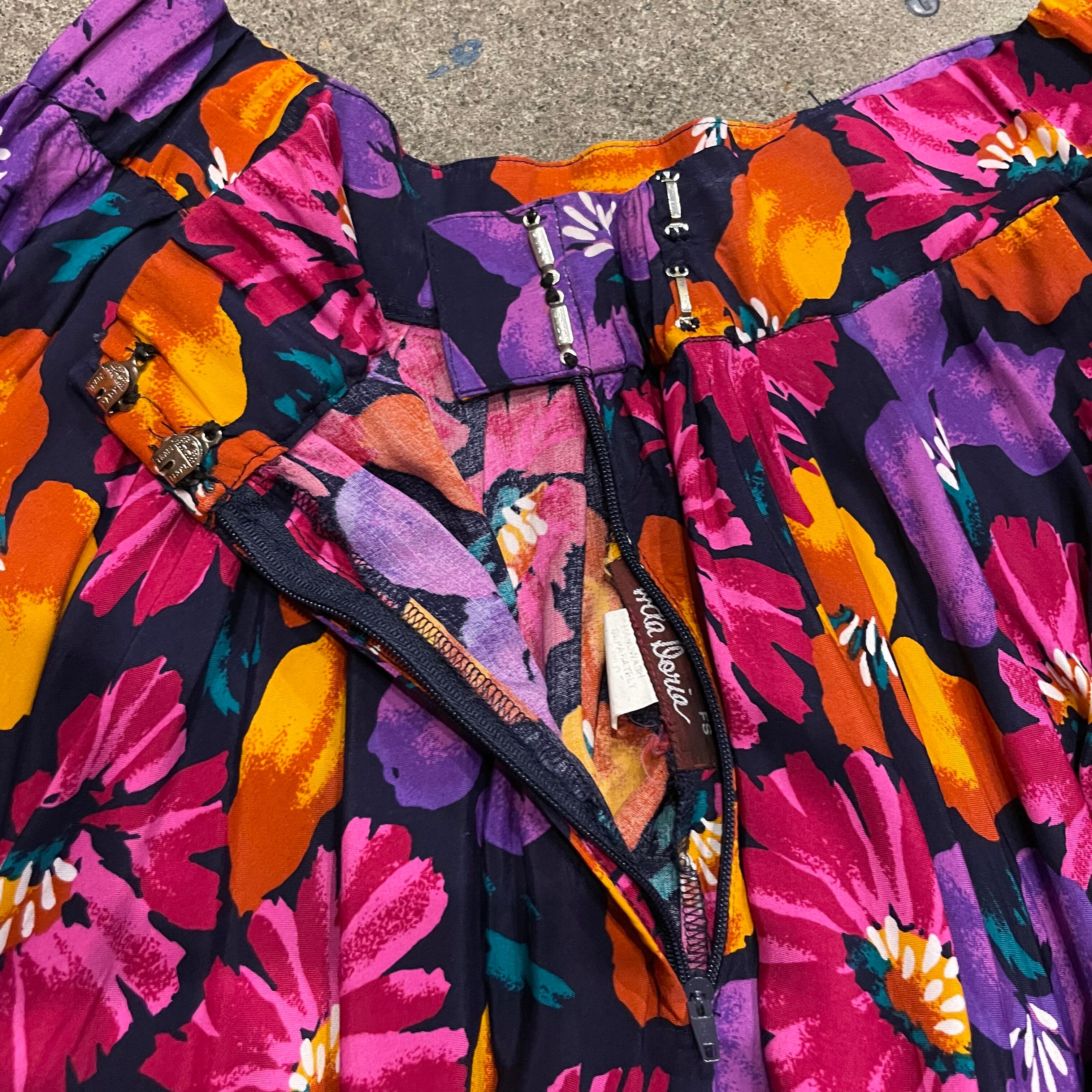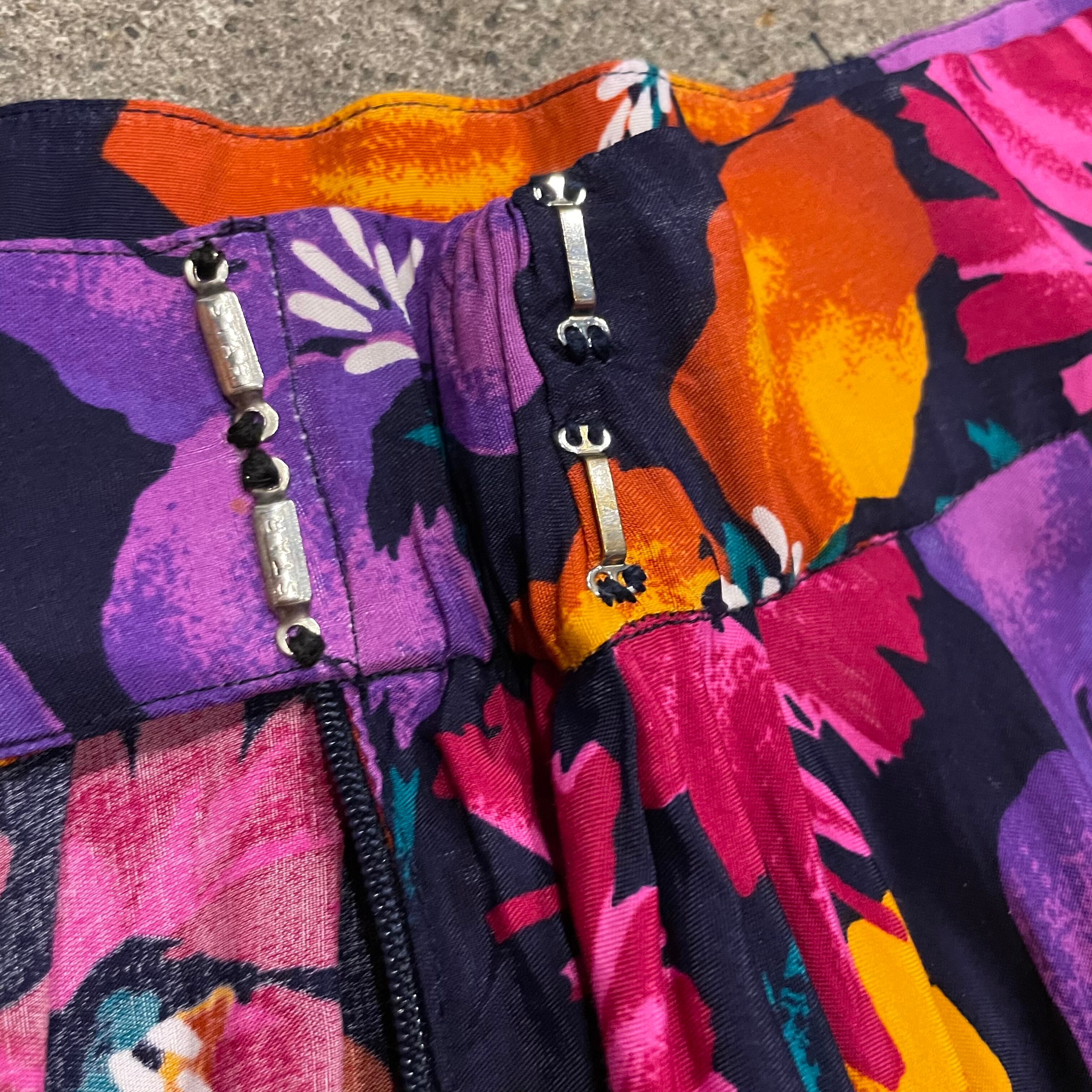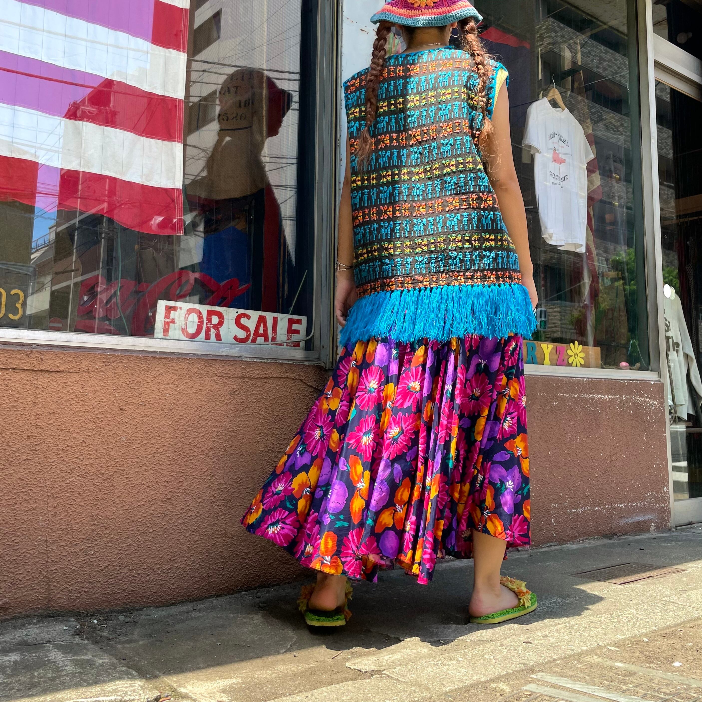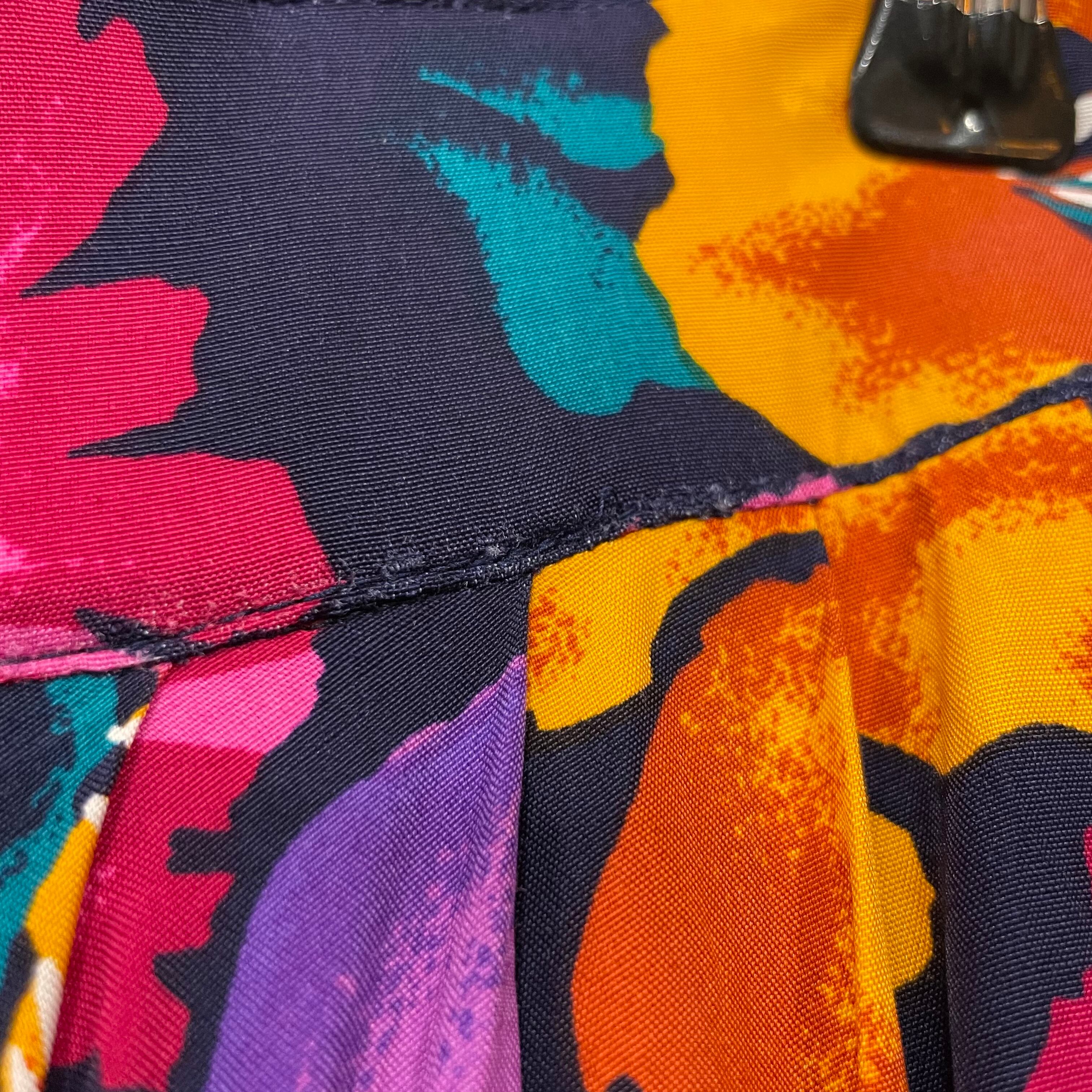 ネイビー地に色合わせがかわいい花柄が映えて素敵なスカートです。