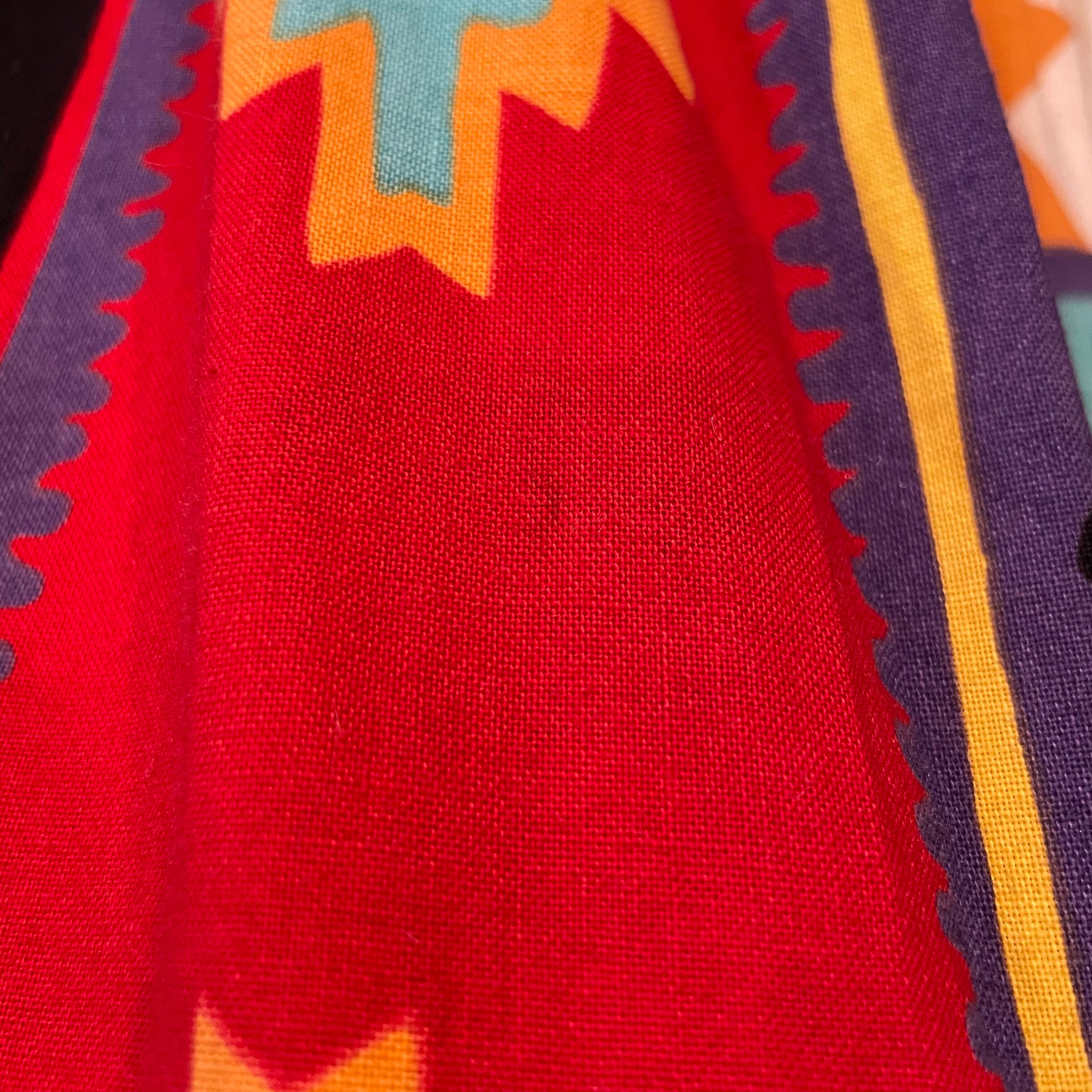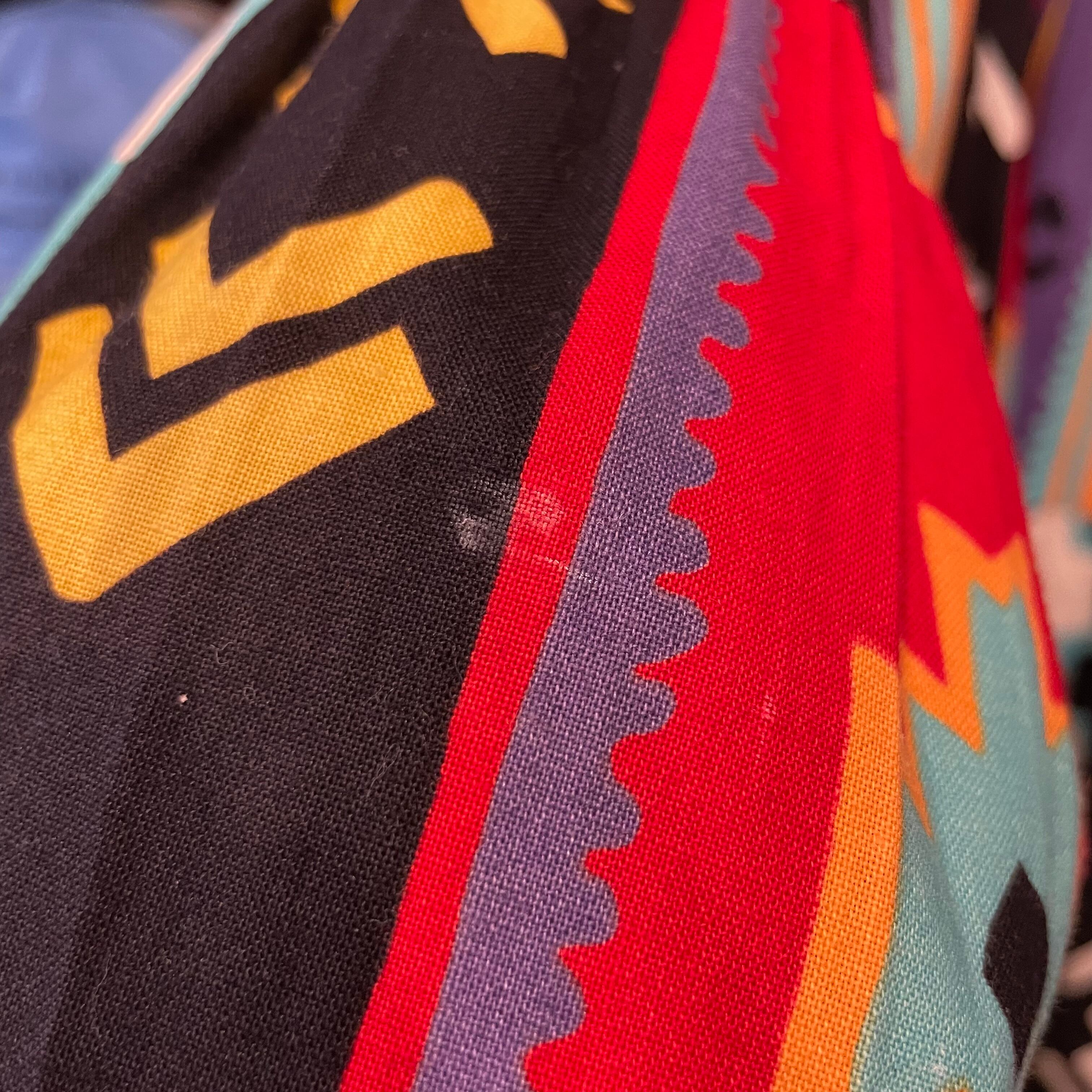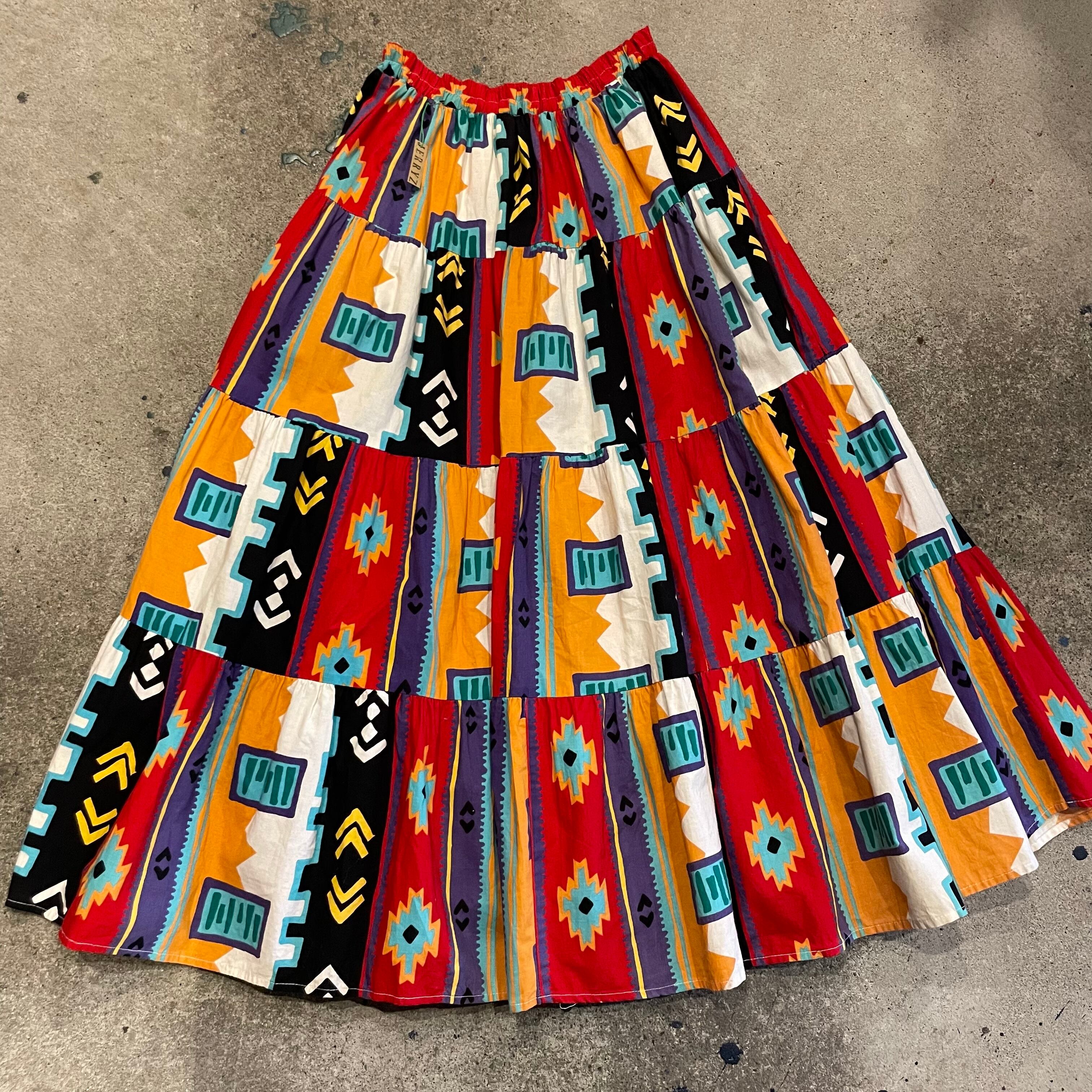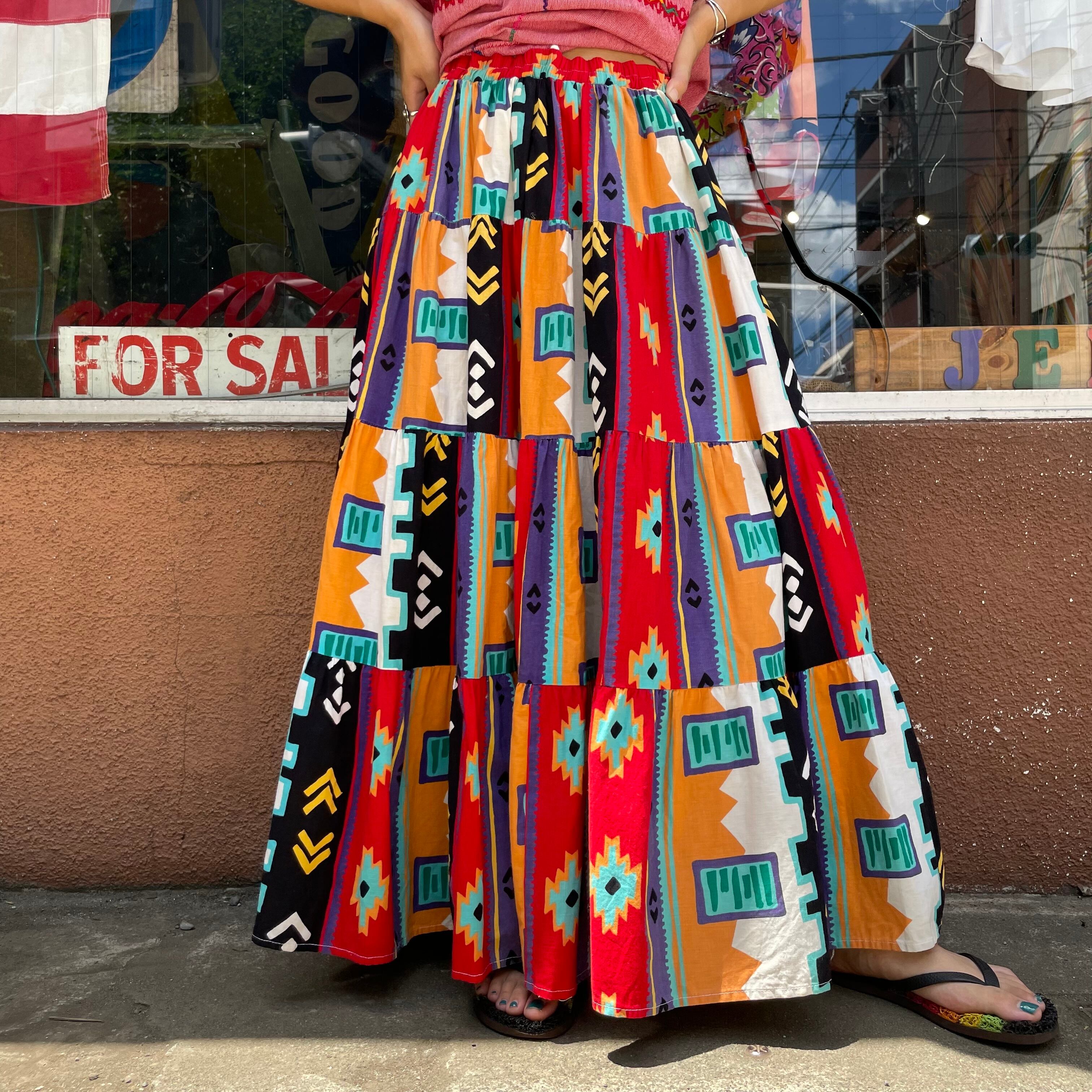 ポップなネイティブ柄がかわいいですし、しっかりめのコットン素材でこのボリューム感はAラインシルエットがきれいに出てかっこいいです。
