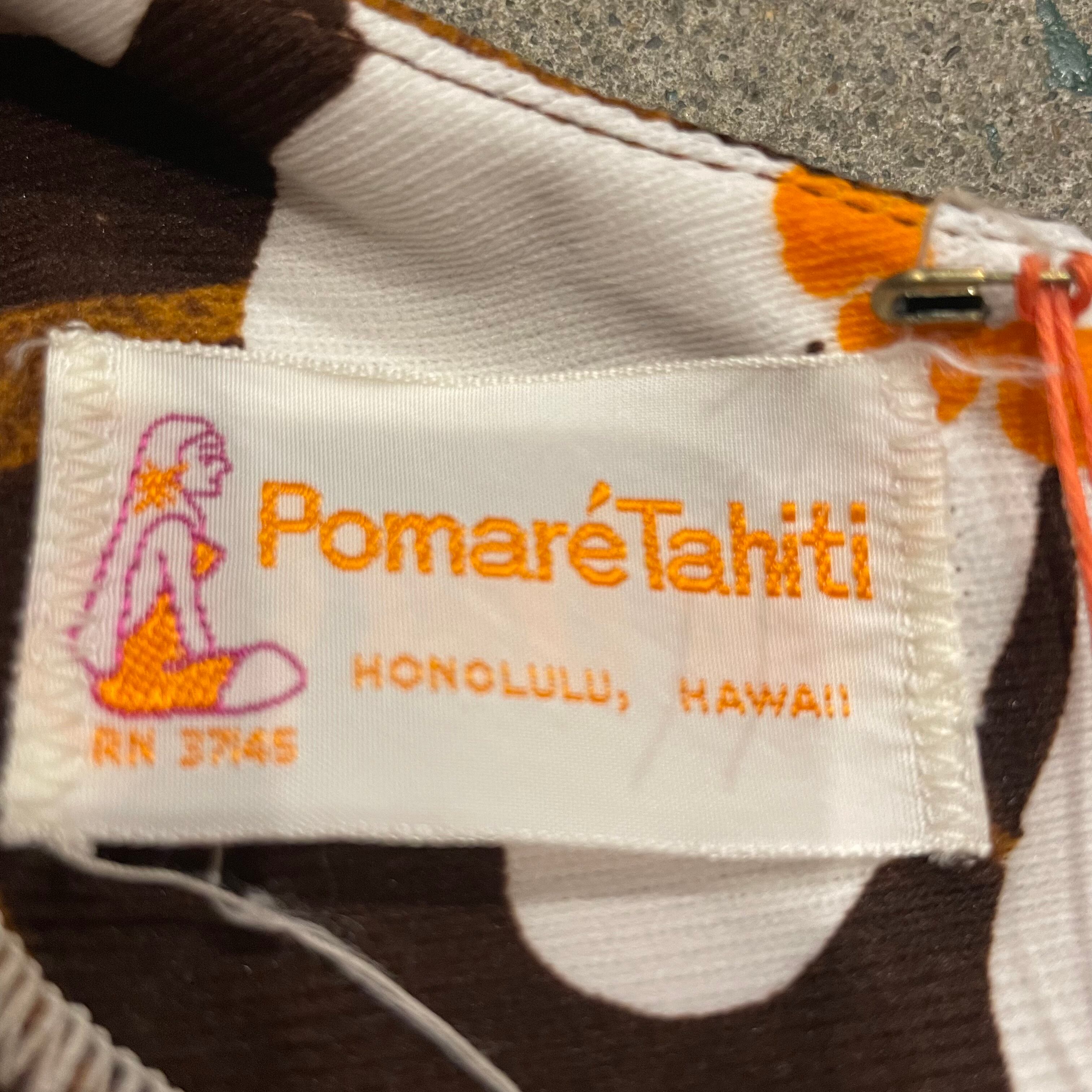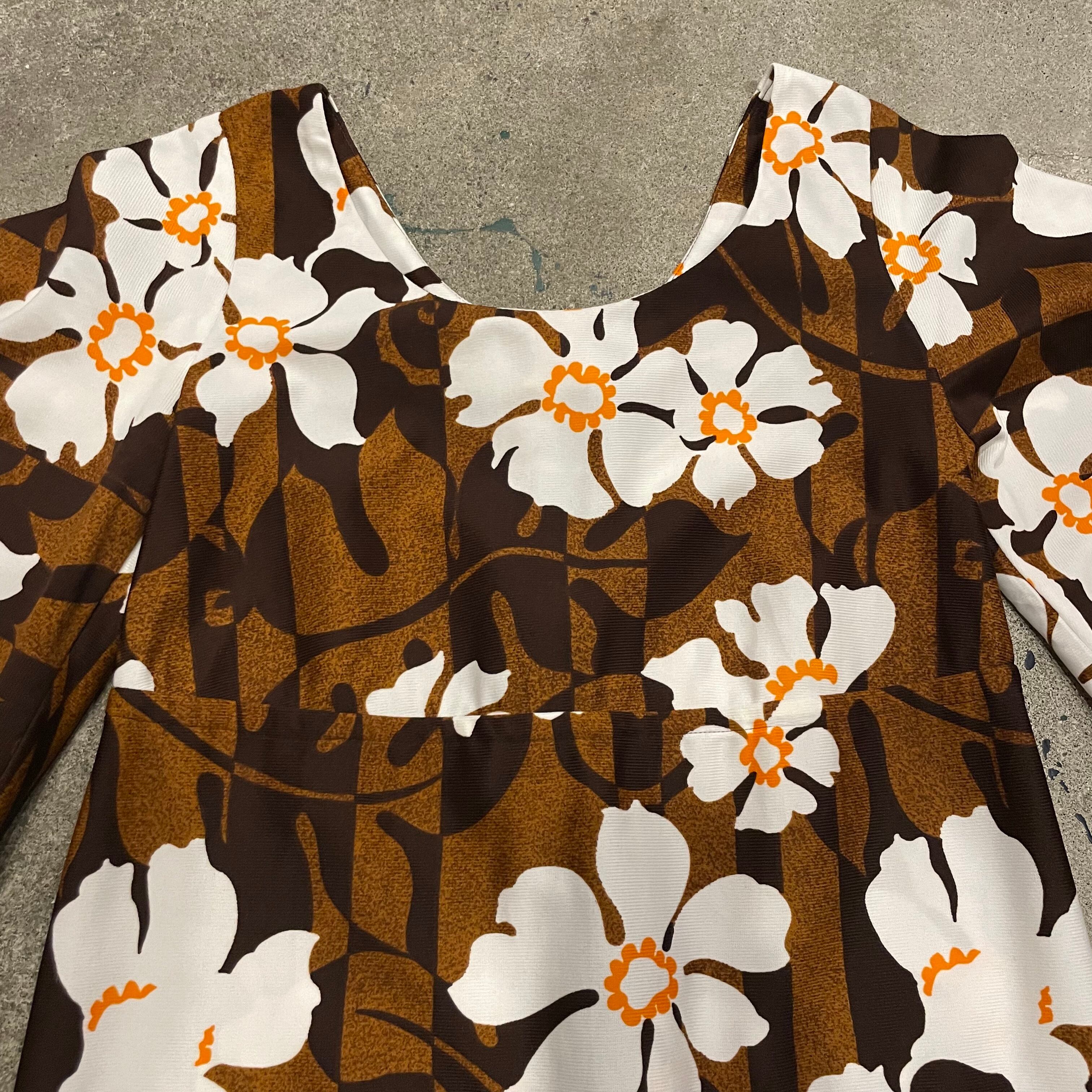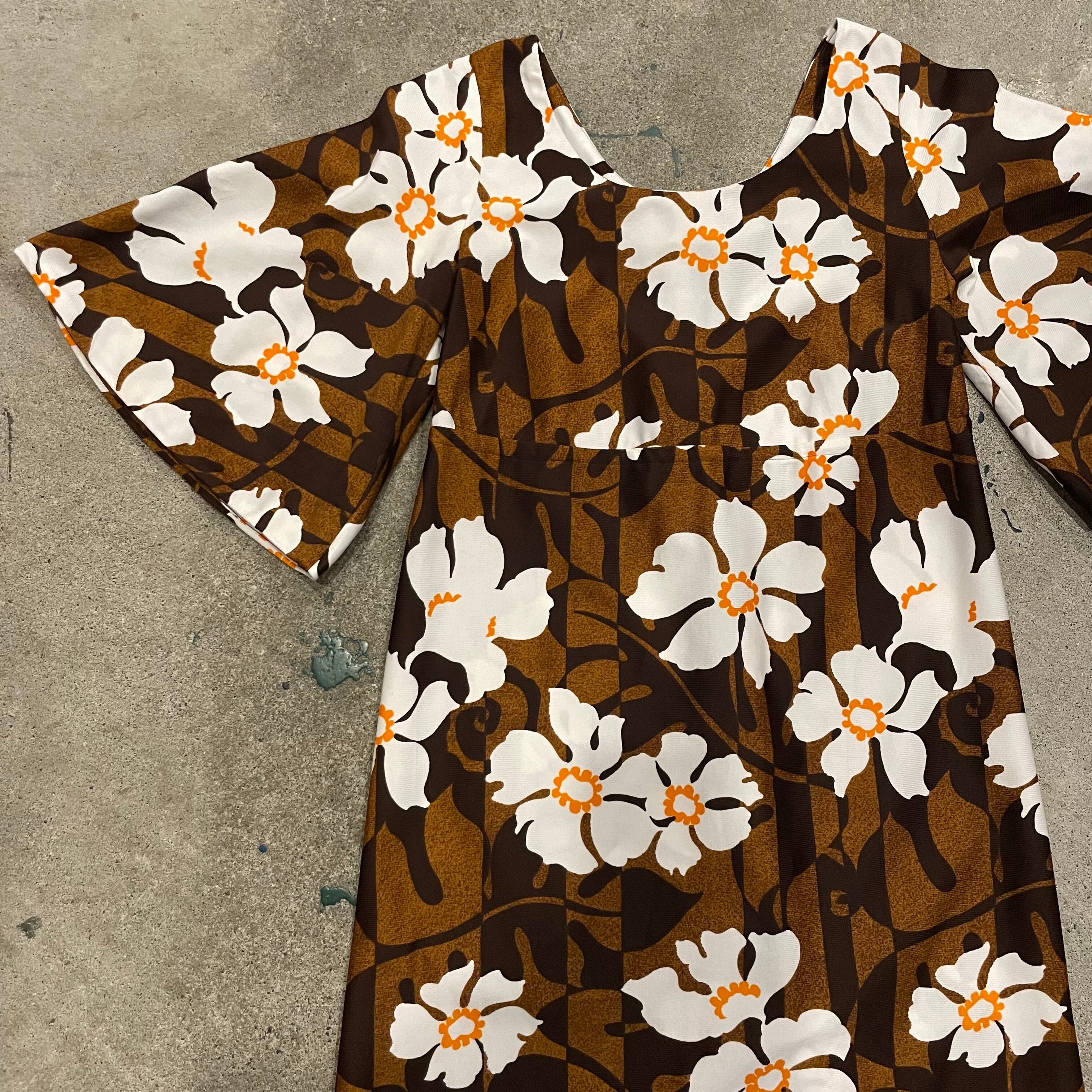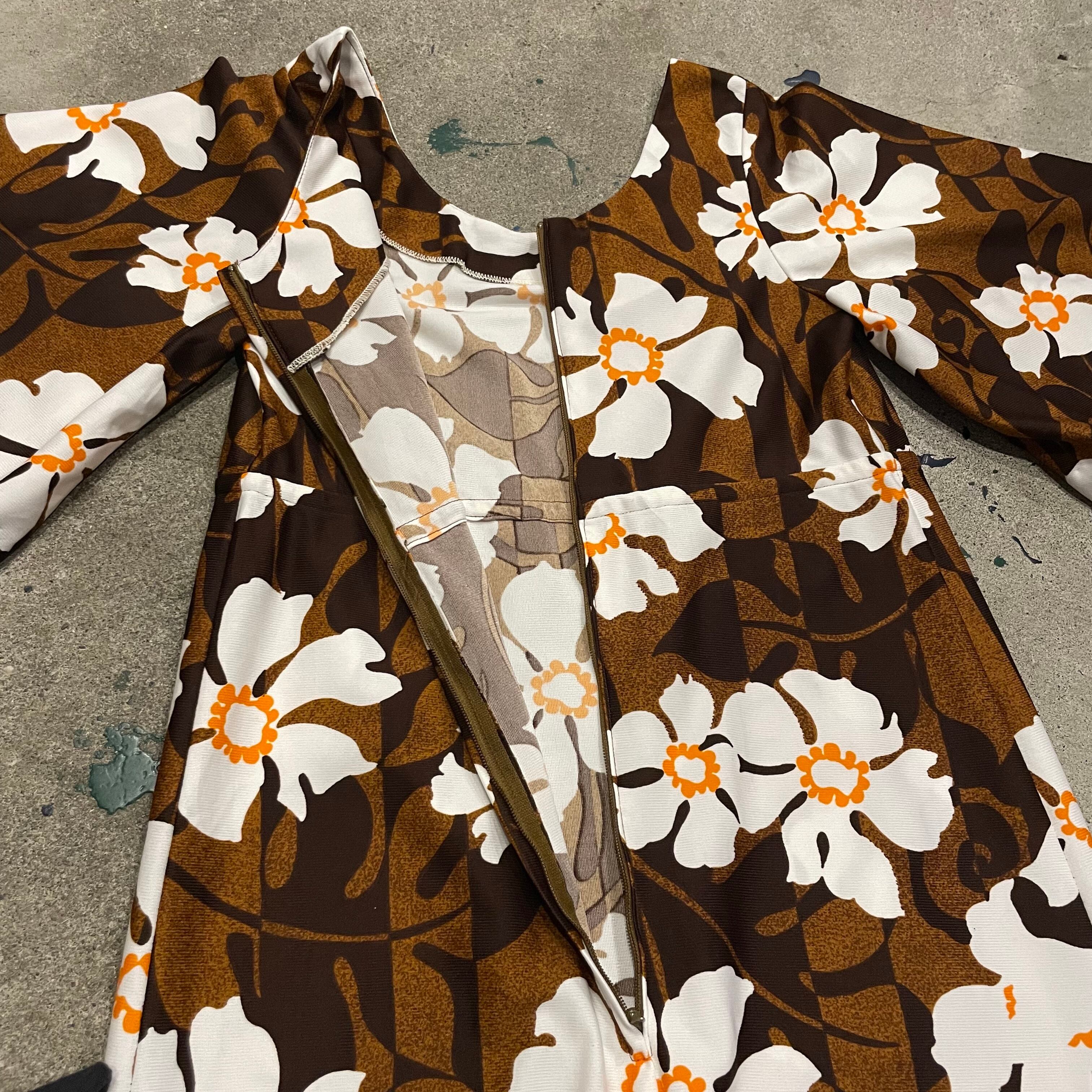 茶色ベースで大人っぽい雰囲気の70年代のハワイアンドレスです。