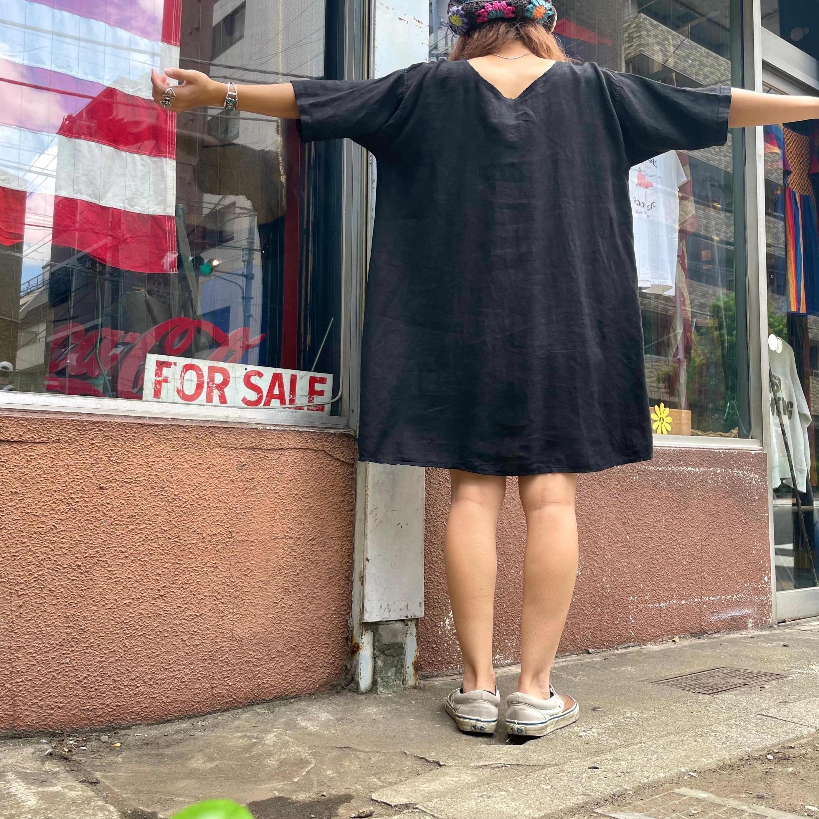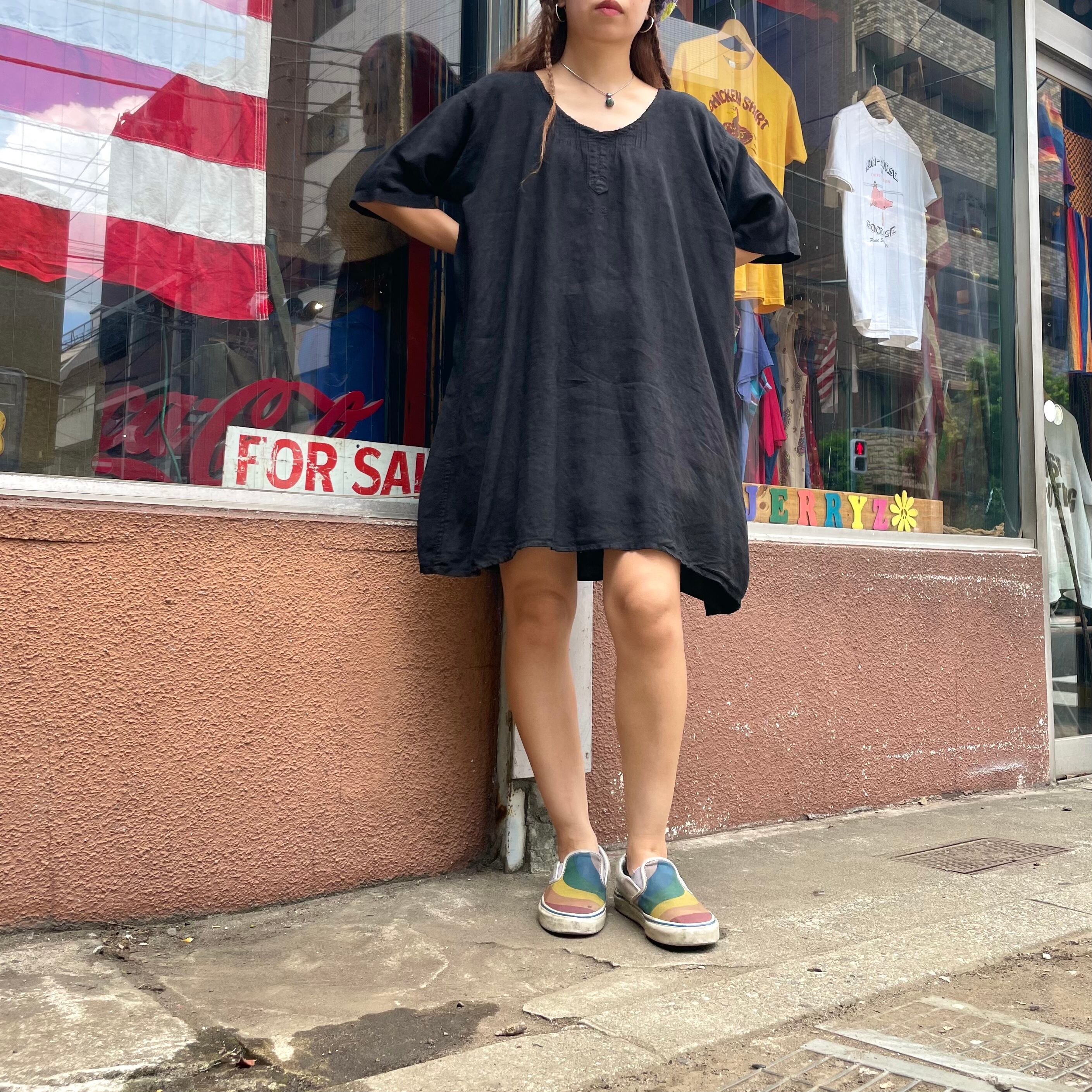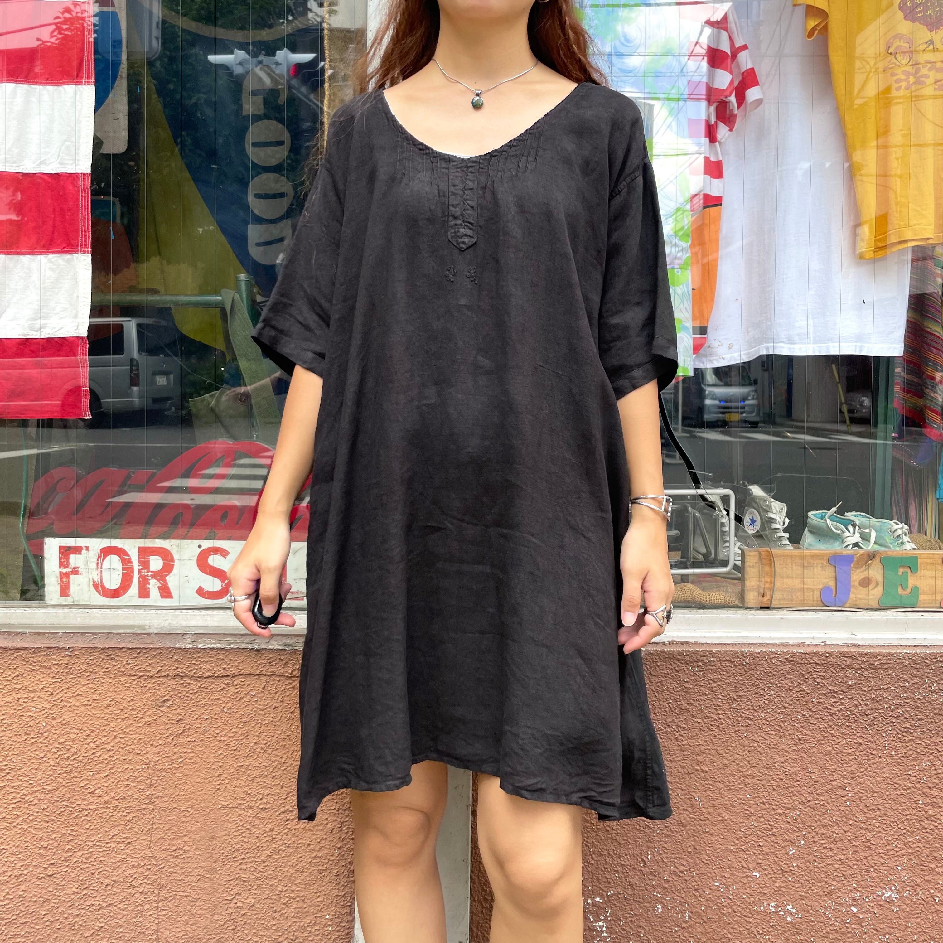 おそらくヨーロッパのナイトドレスを後から黒く染めたものだと思われるワンピースです。