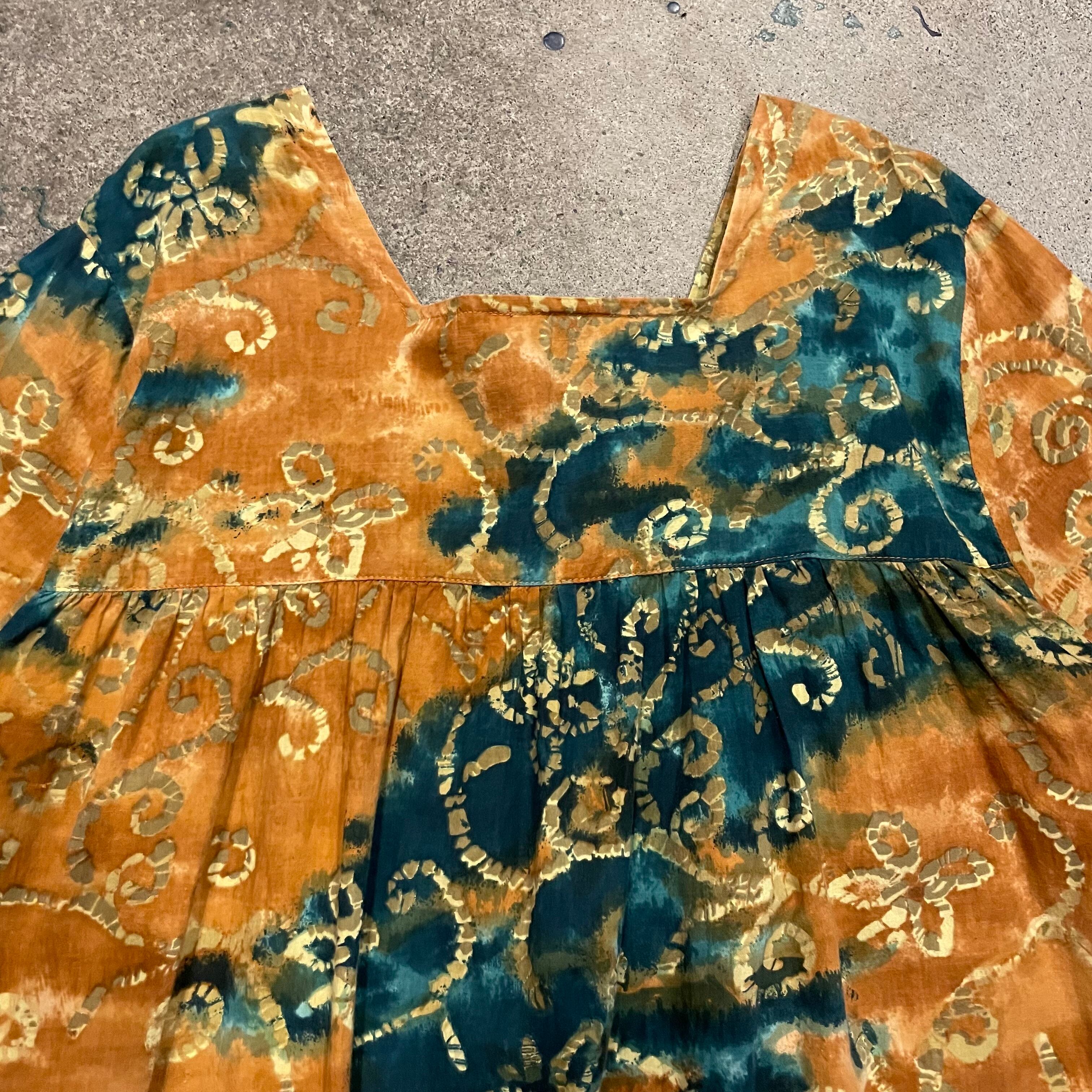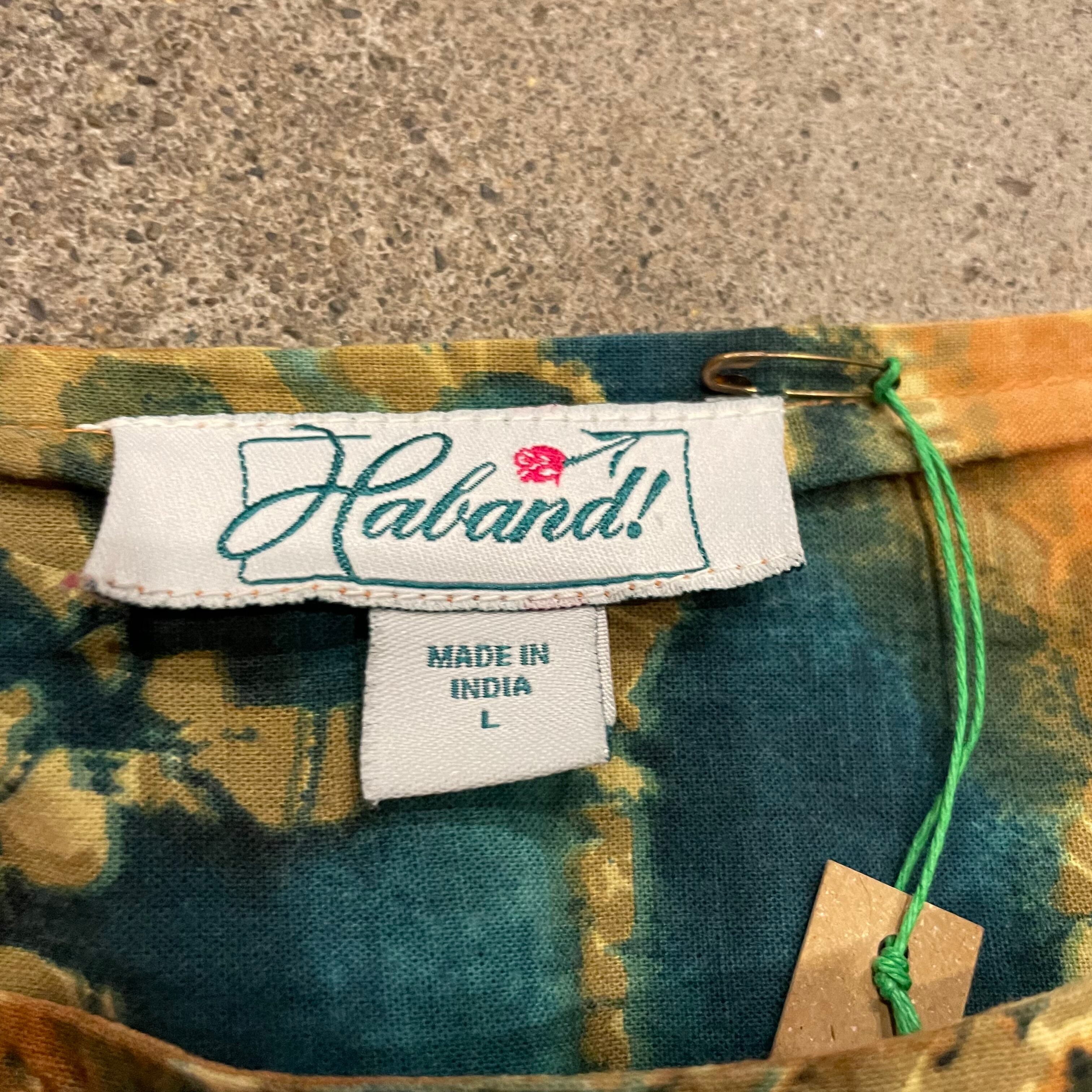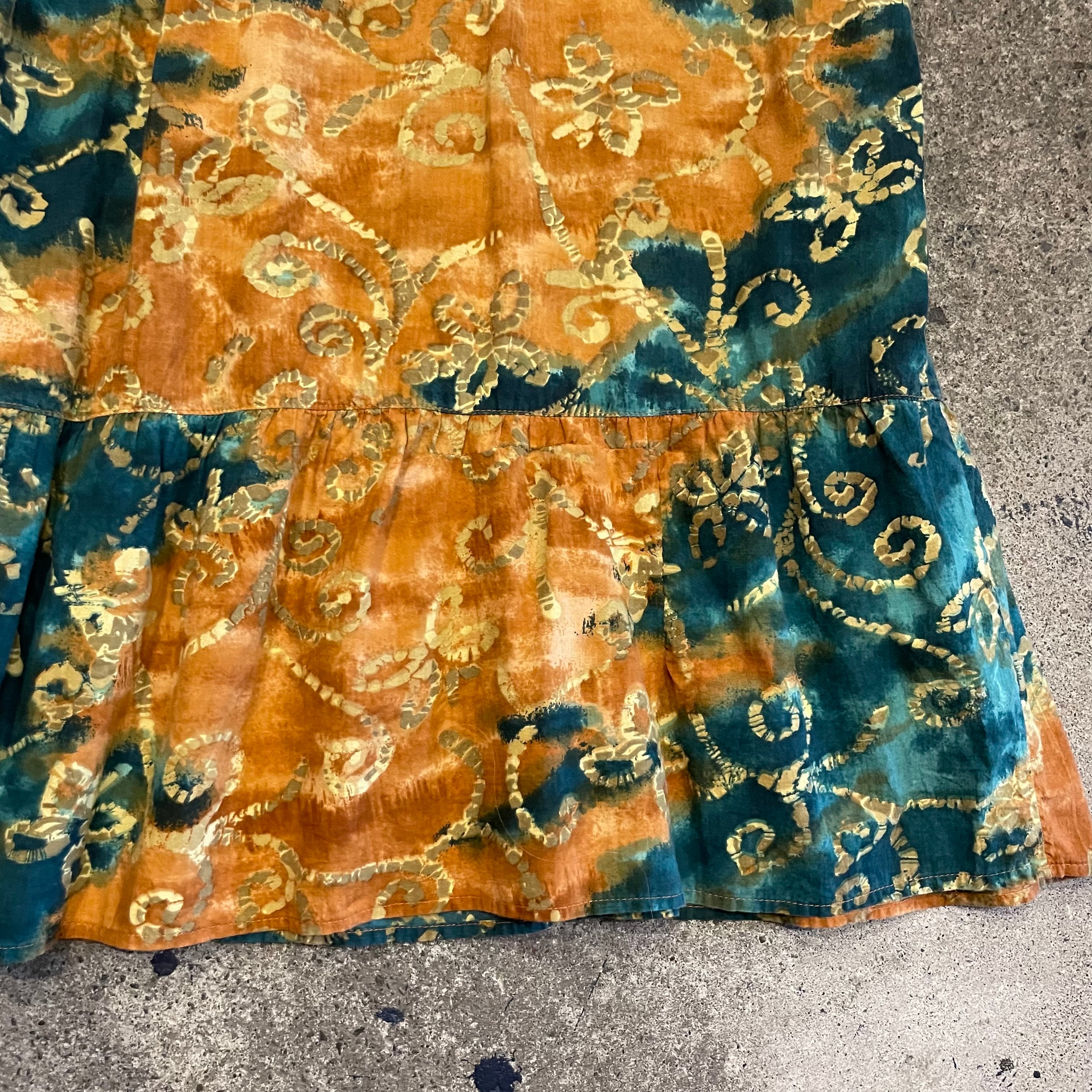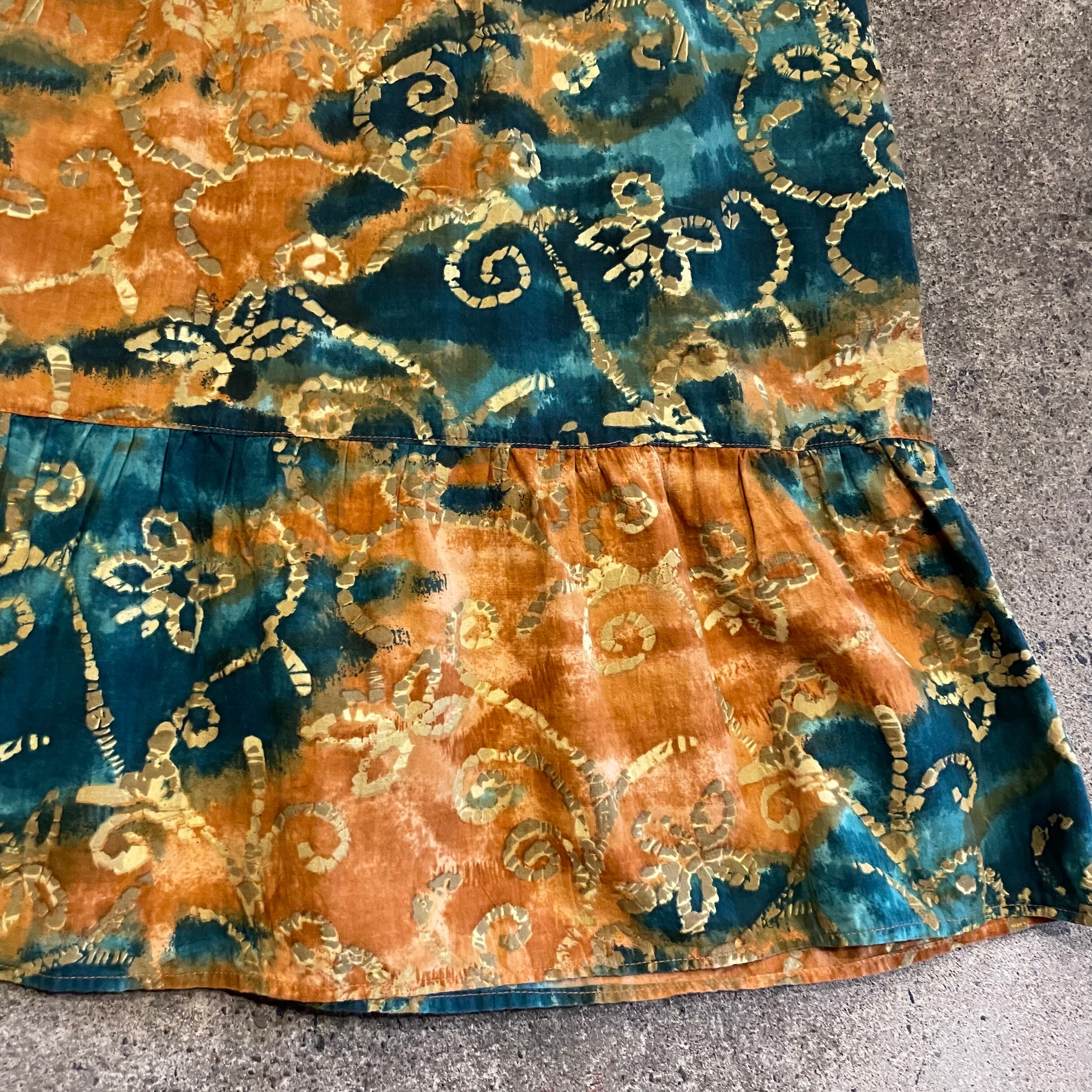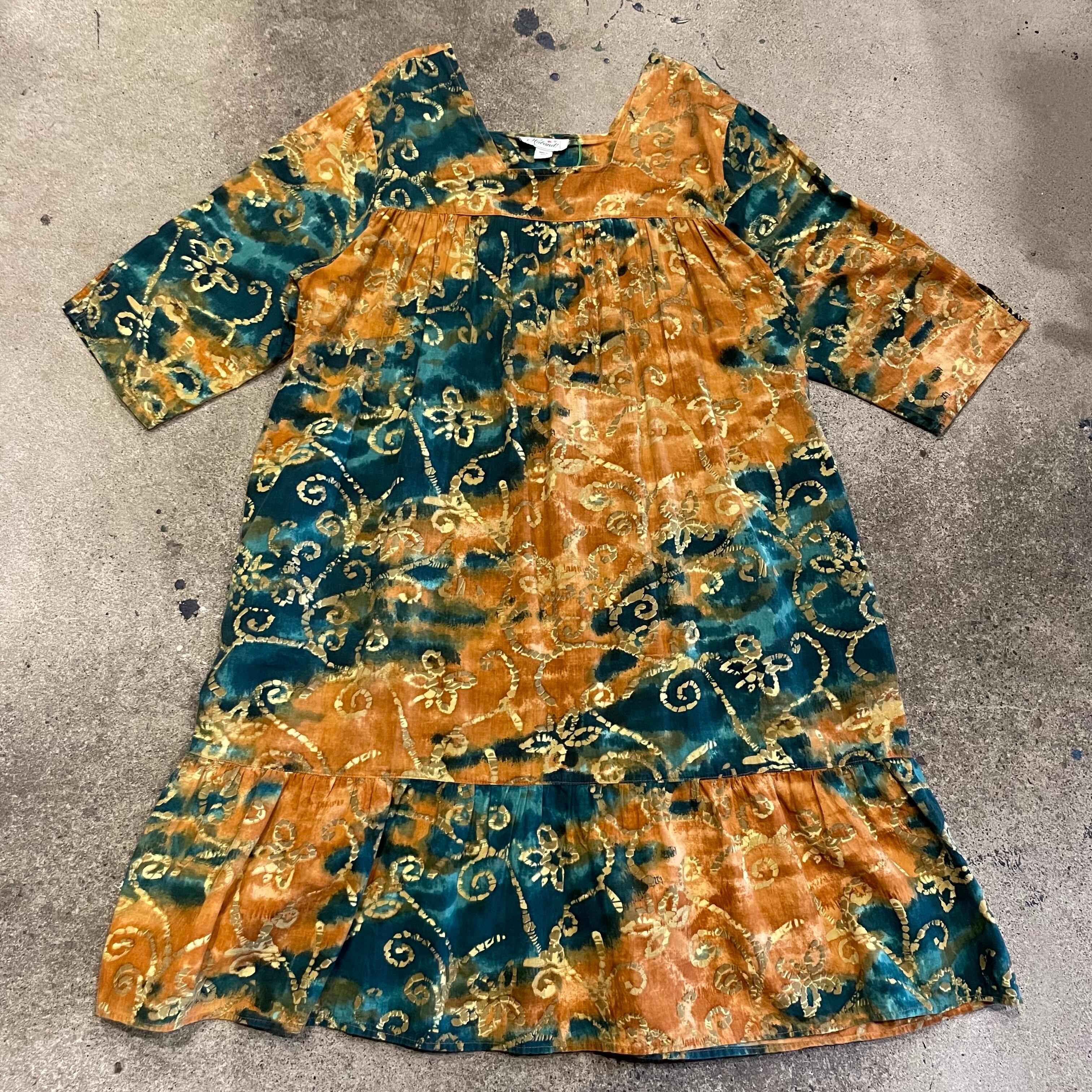 タイダイのようなマダラな模様に植物や蝶々らしきプリントが良い雰囲気です。