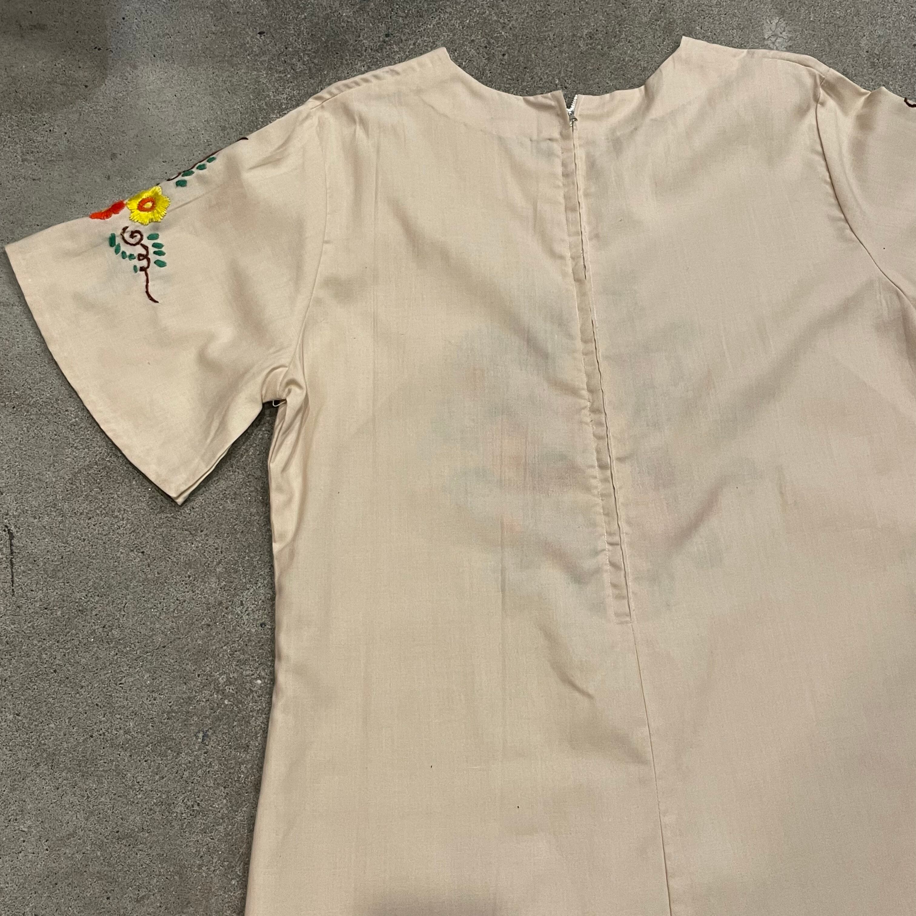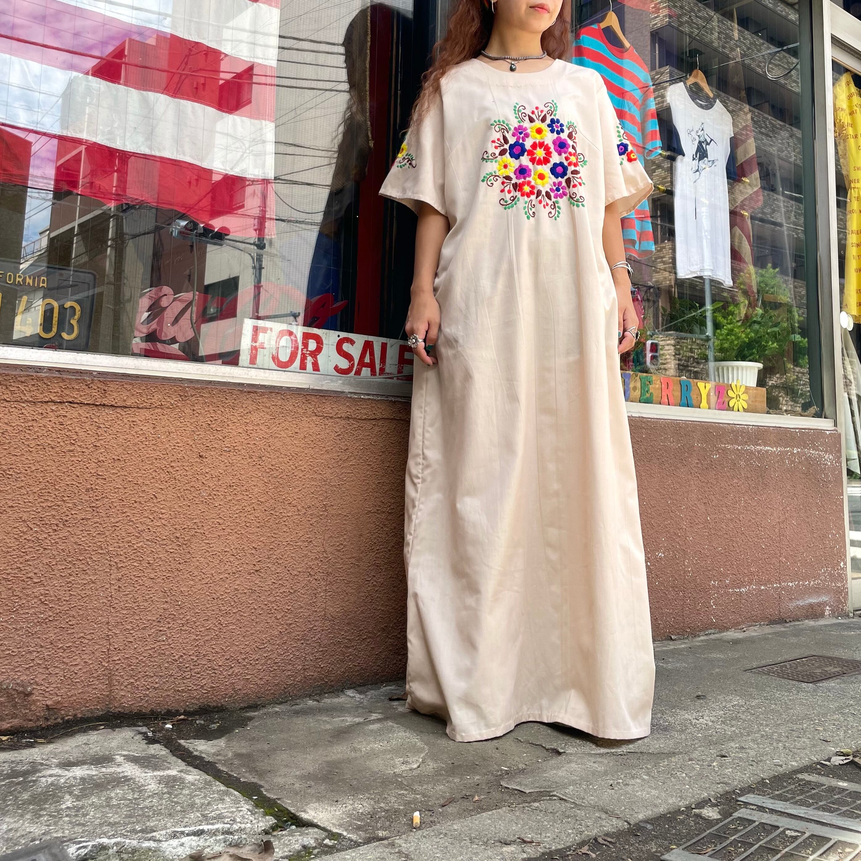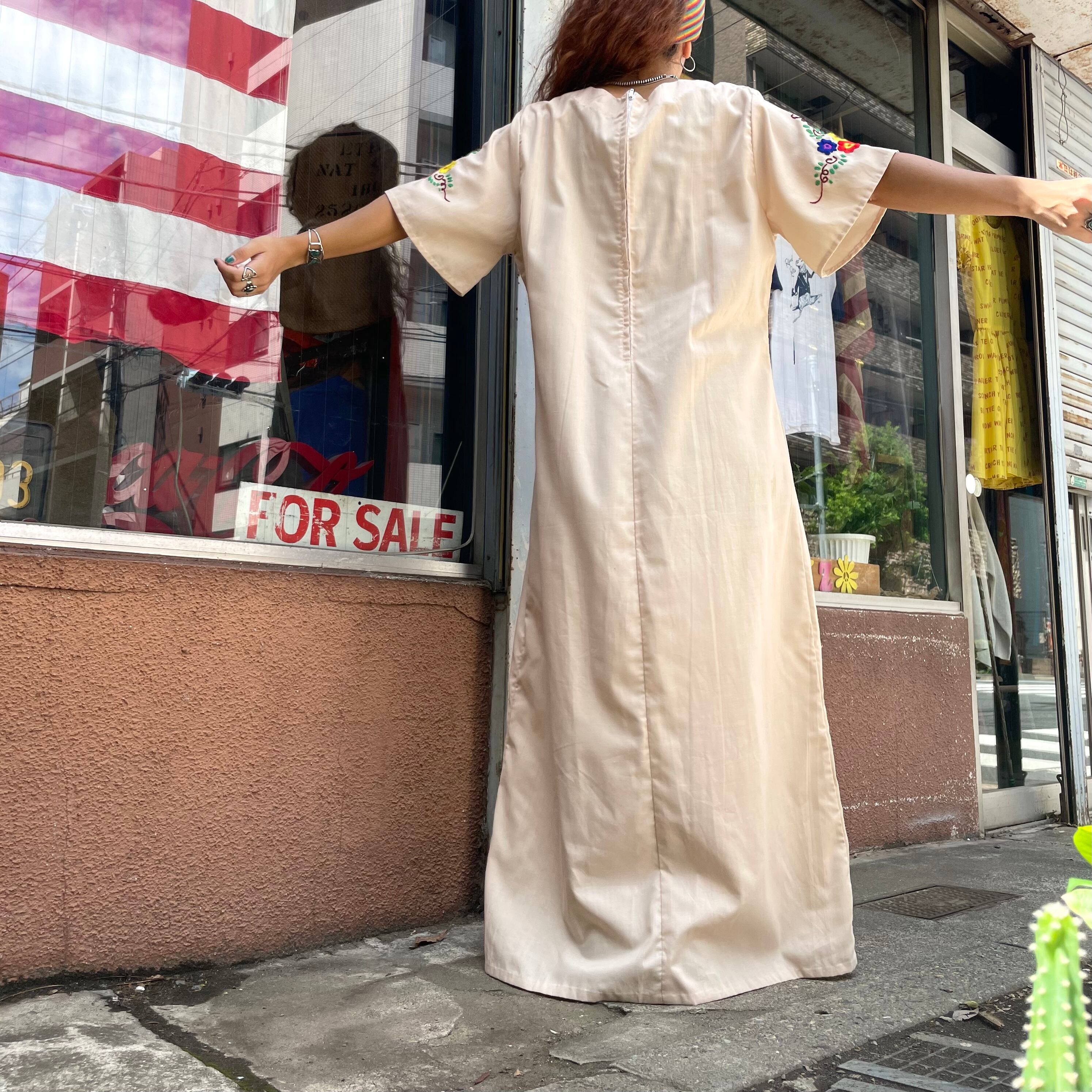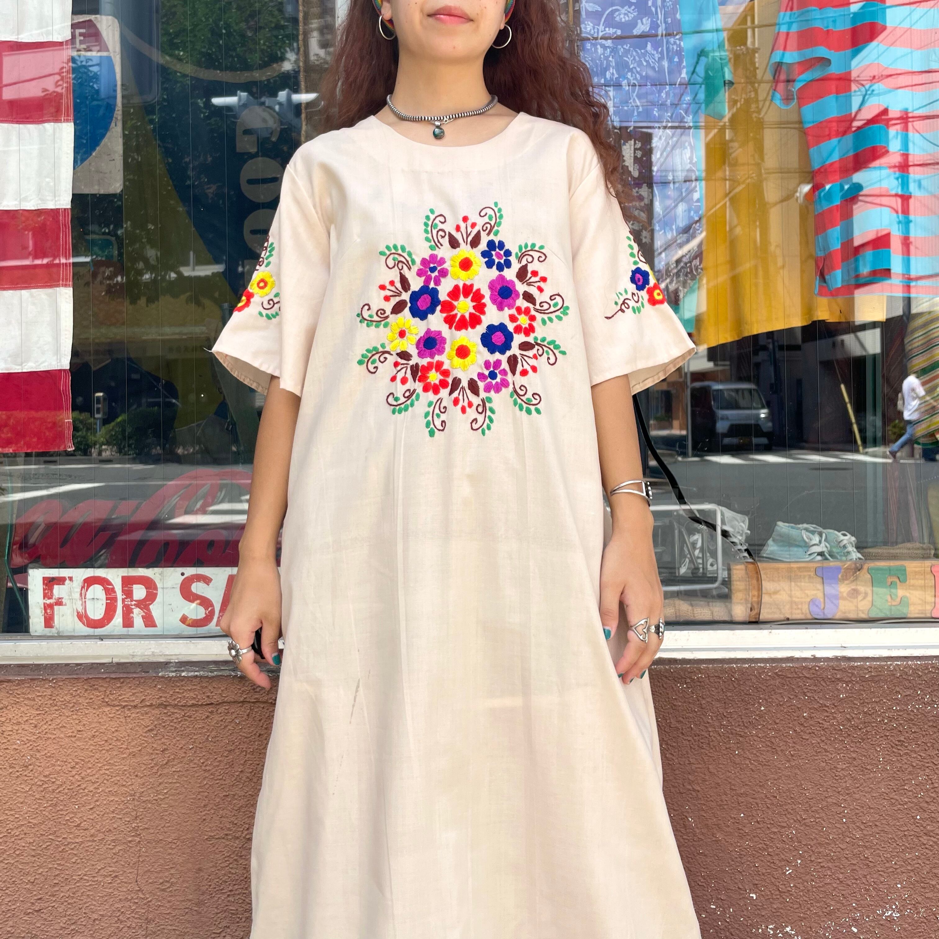 優しい色味にカラフルな手刺繍が映えてとても素敵なワンピースです。