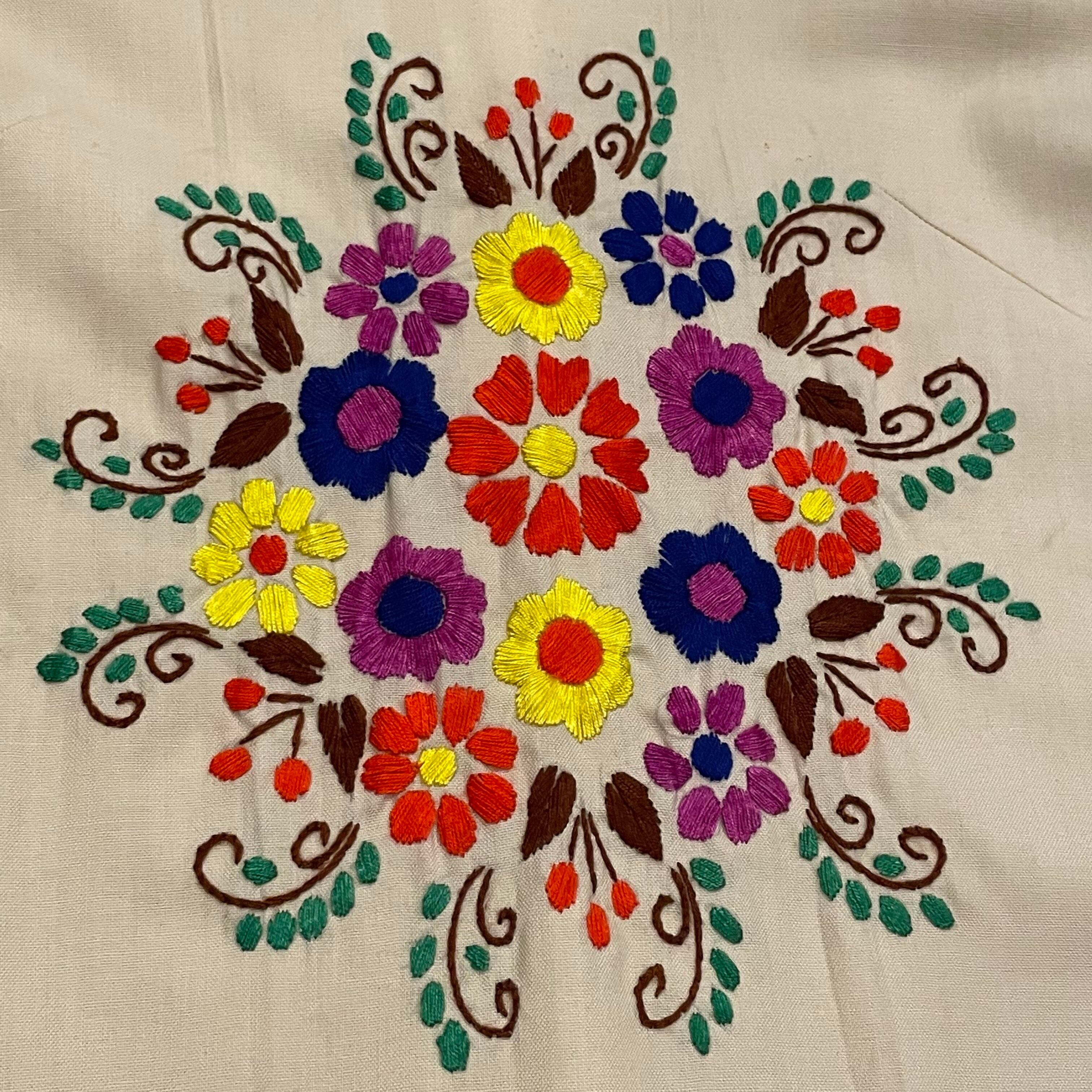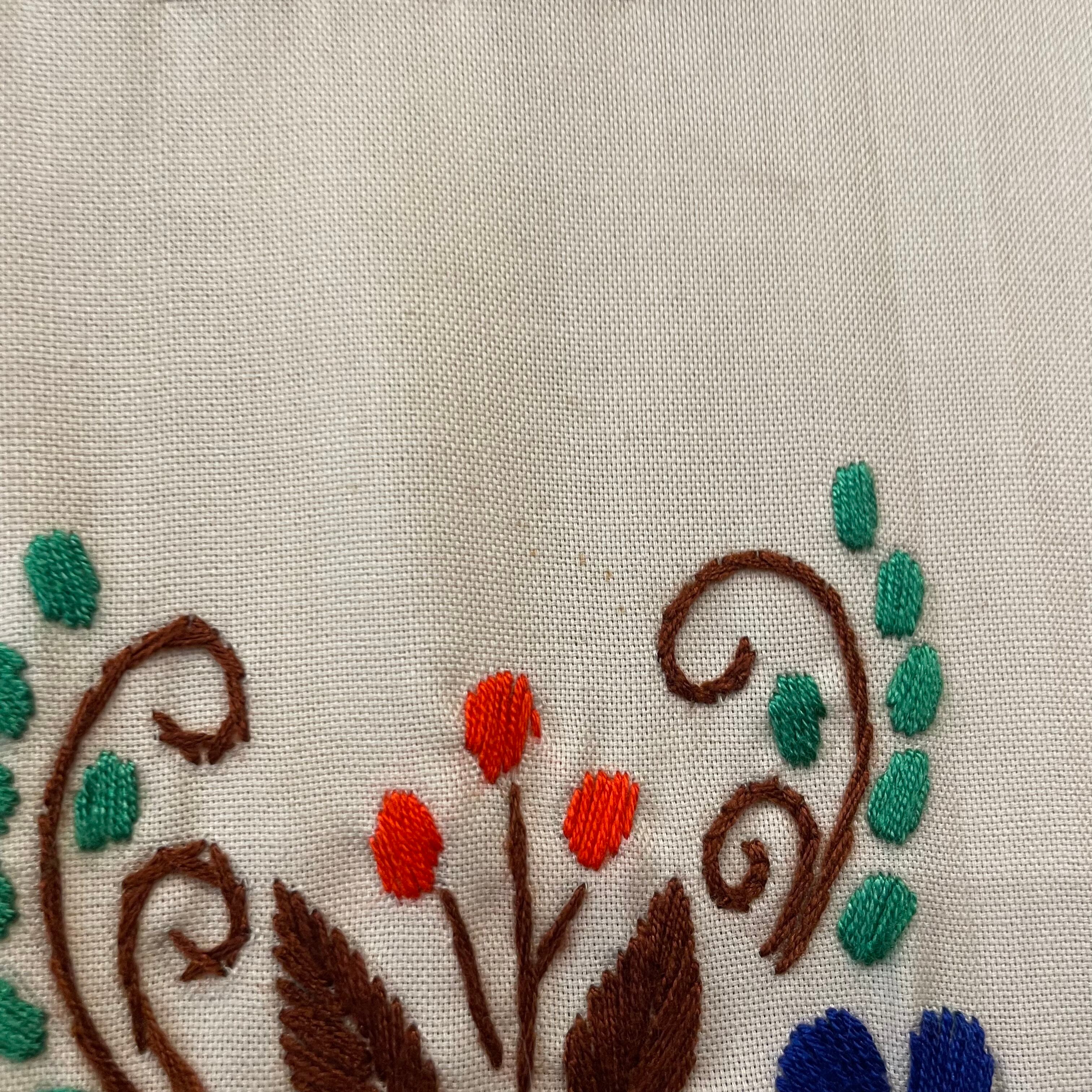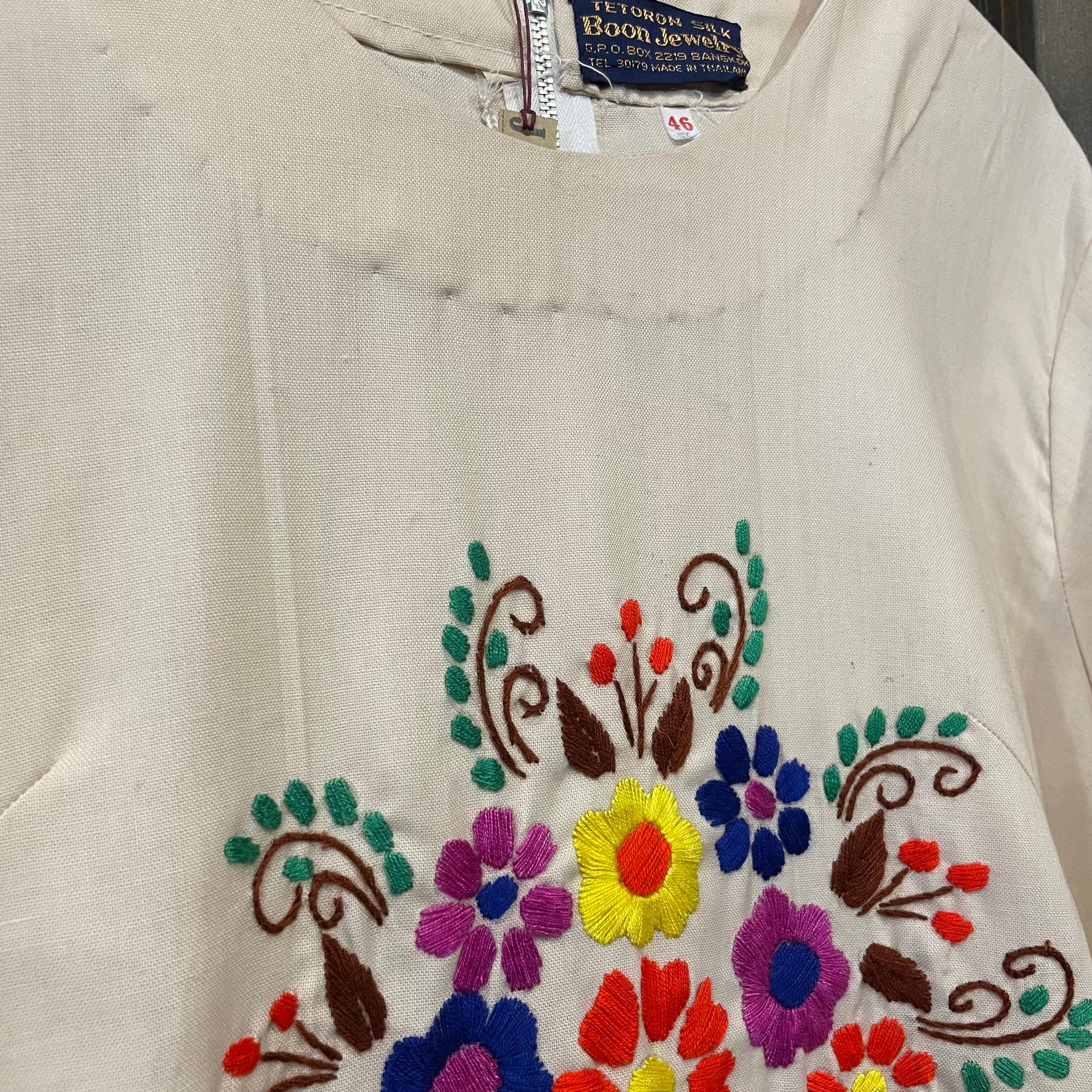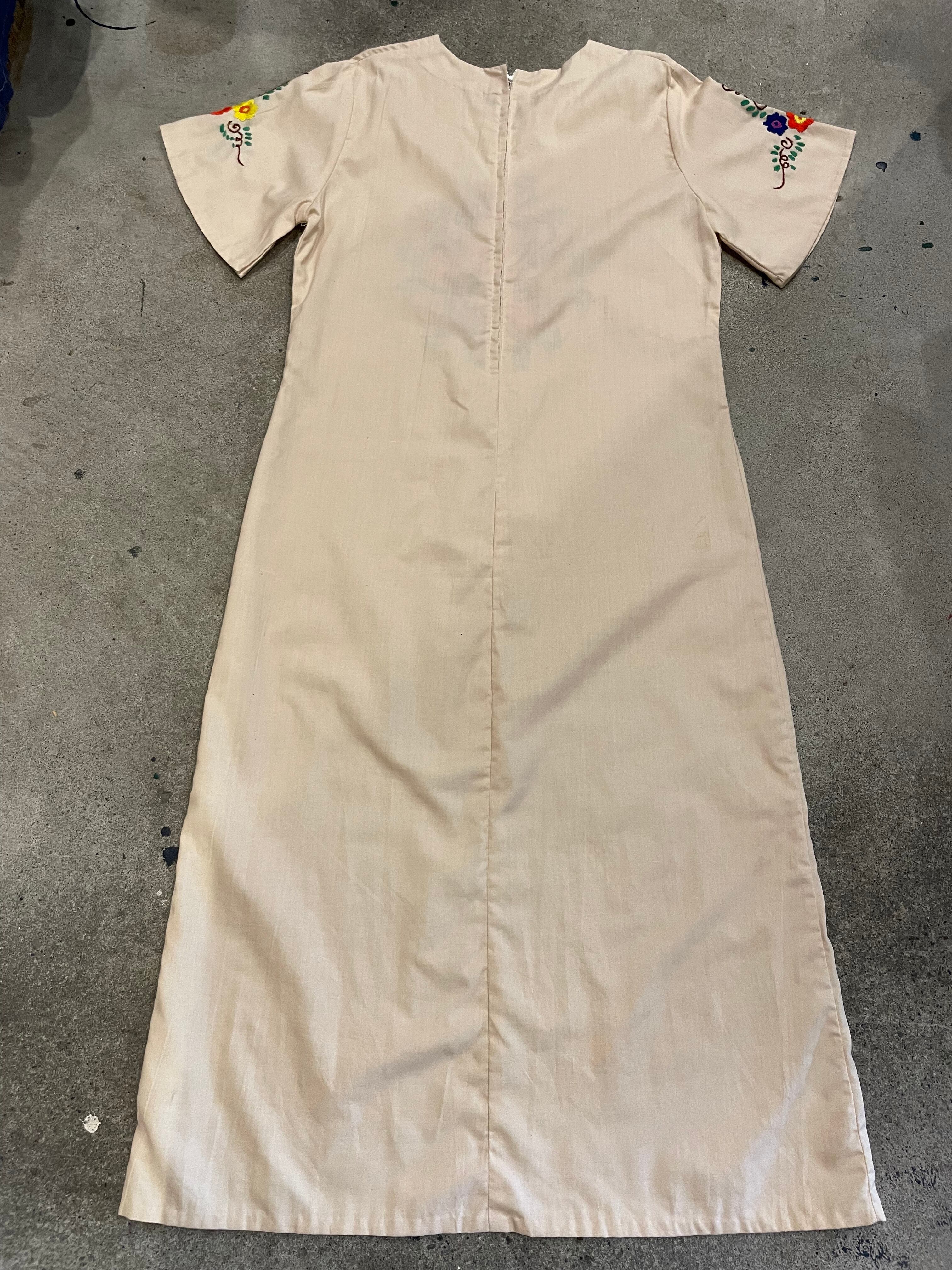 優しい色味にカラフルな手刺繍が映えてとても素敵なワンピースです。