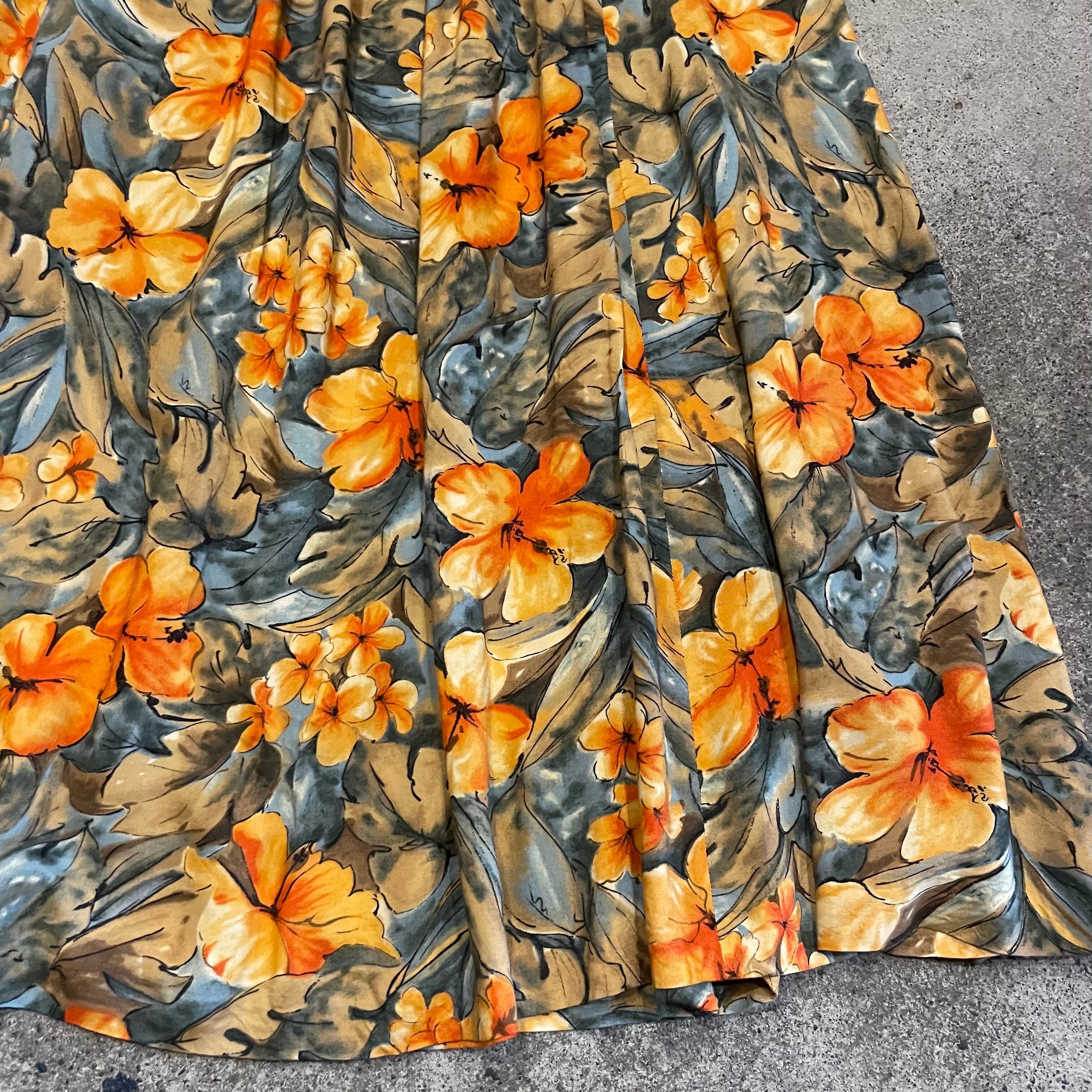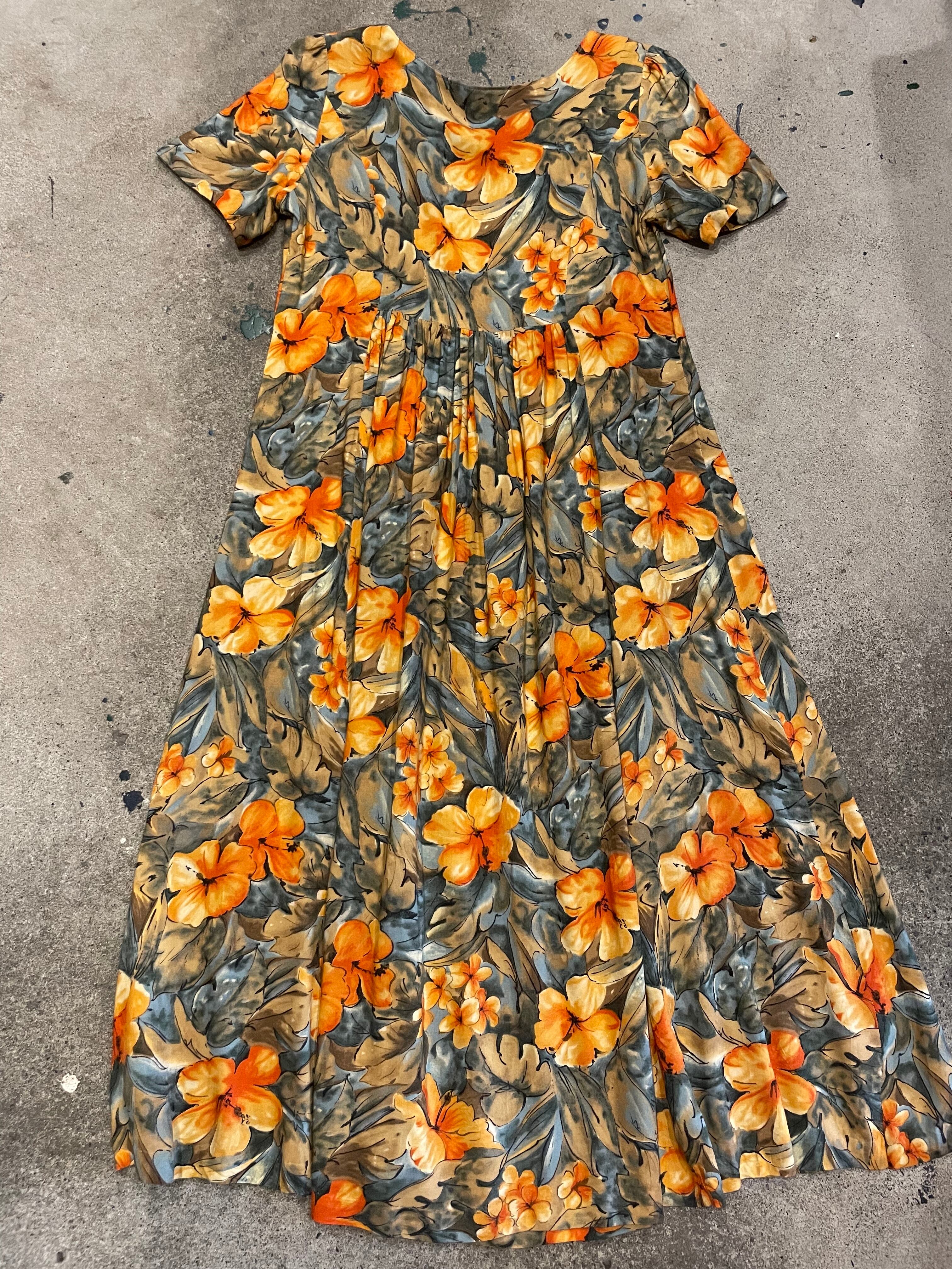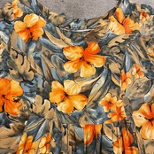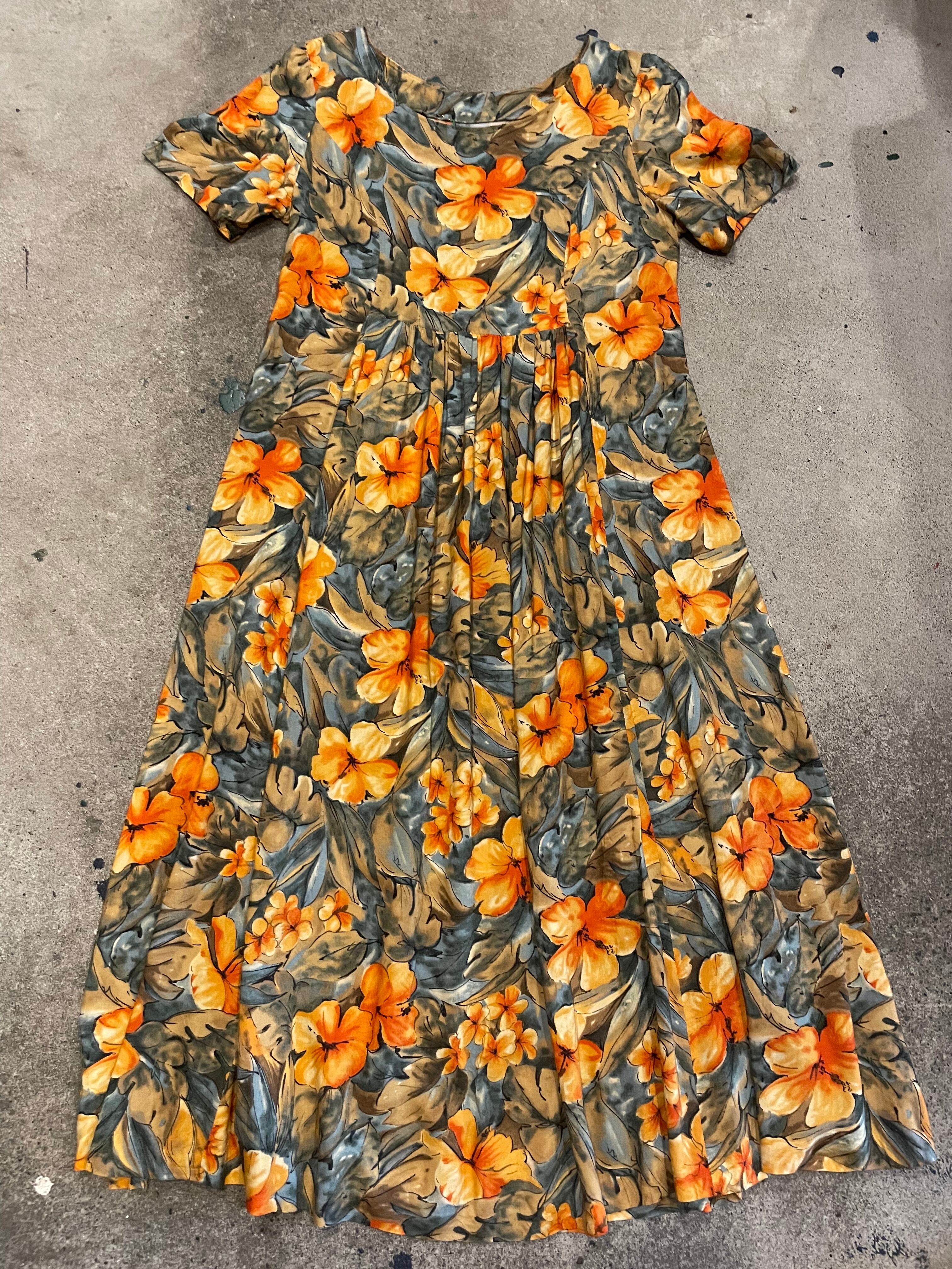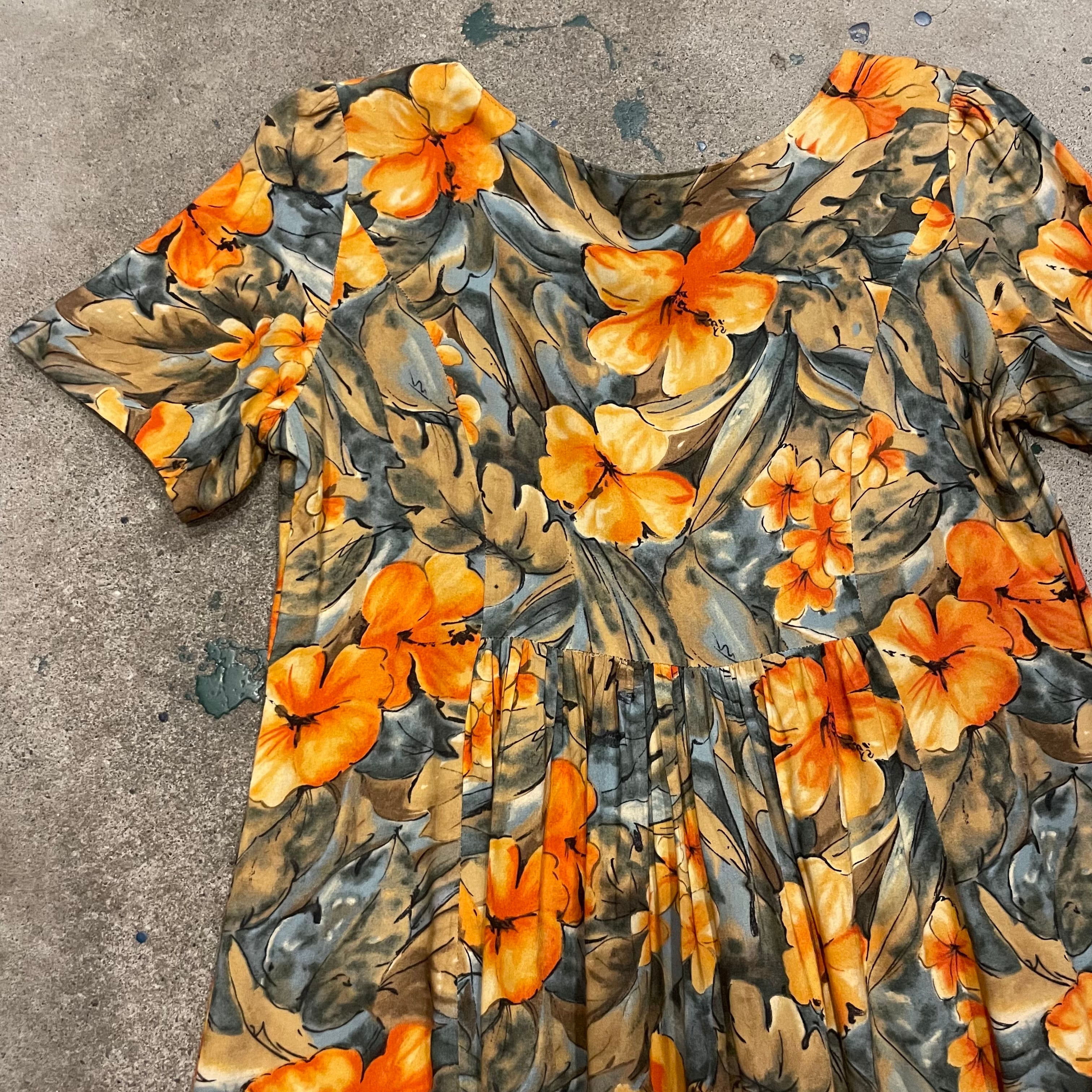 オレンジのハイビスカス?柄がかわいいワンピースです。