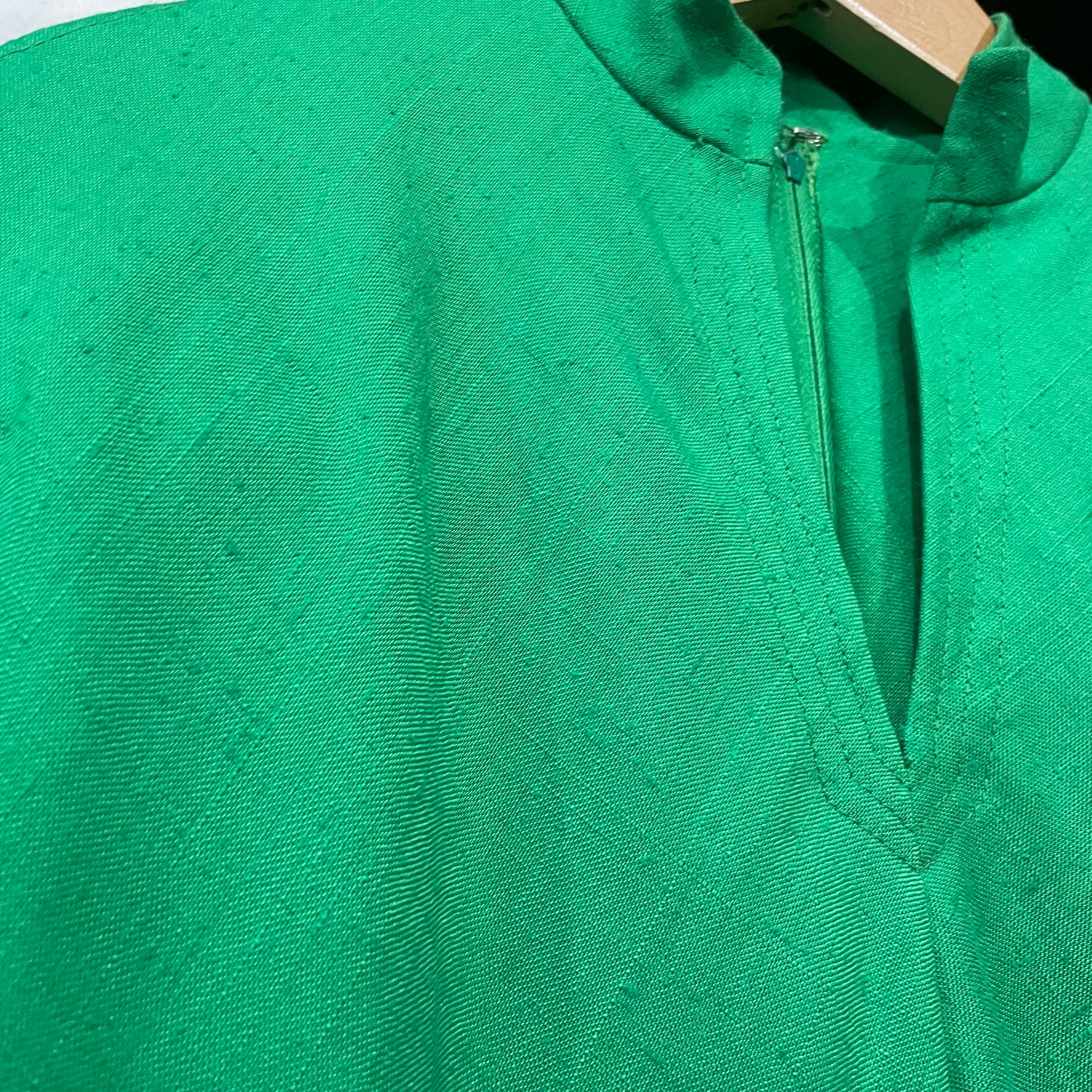 スタンドカラーで前にスリットが入っていて首の詰まった服が苦手な方も着て頂きやすいと思います。