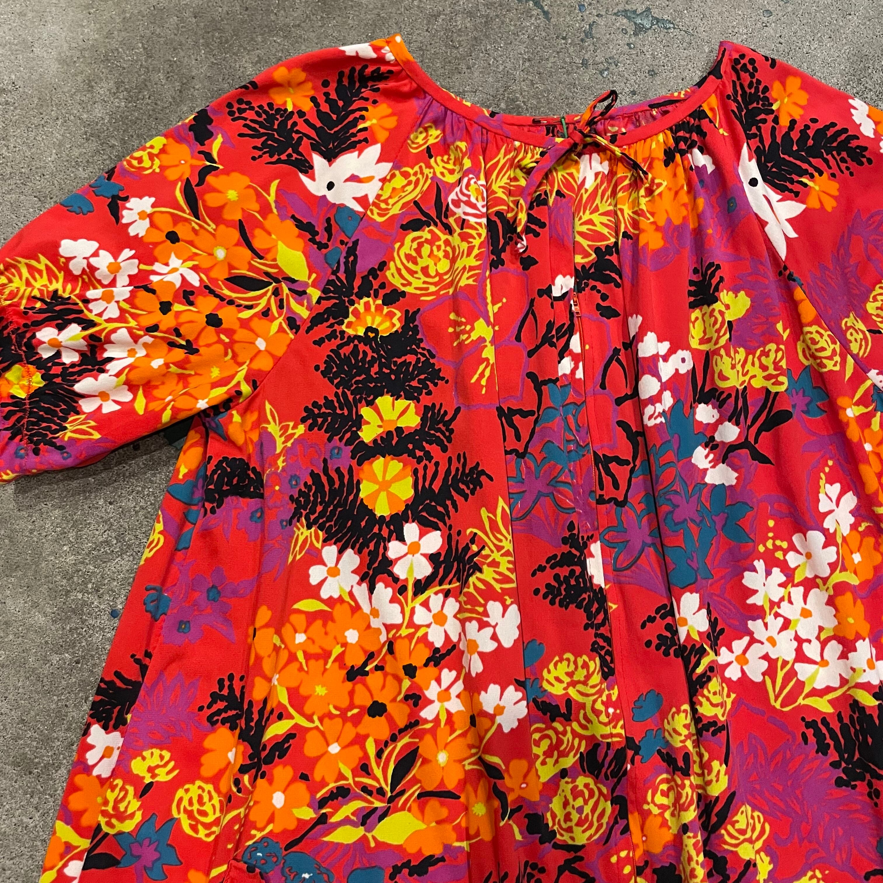 秋は中に柄物のロンTを合わせたり、無地のスカートを重ねたりいろいろお楽しみ頂けそうな一着です。