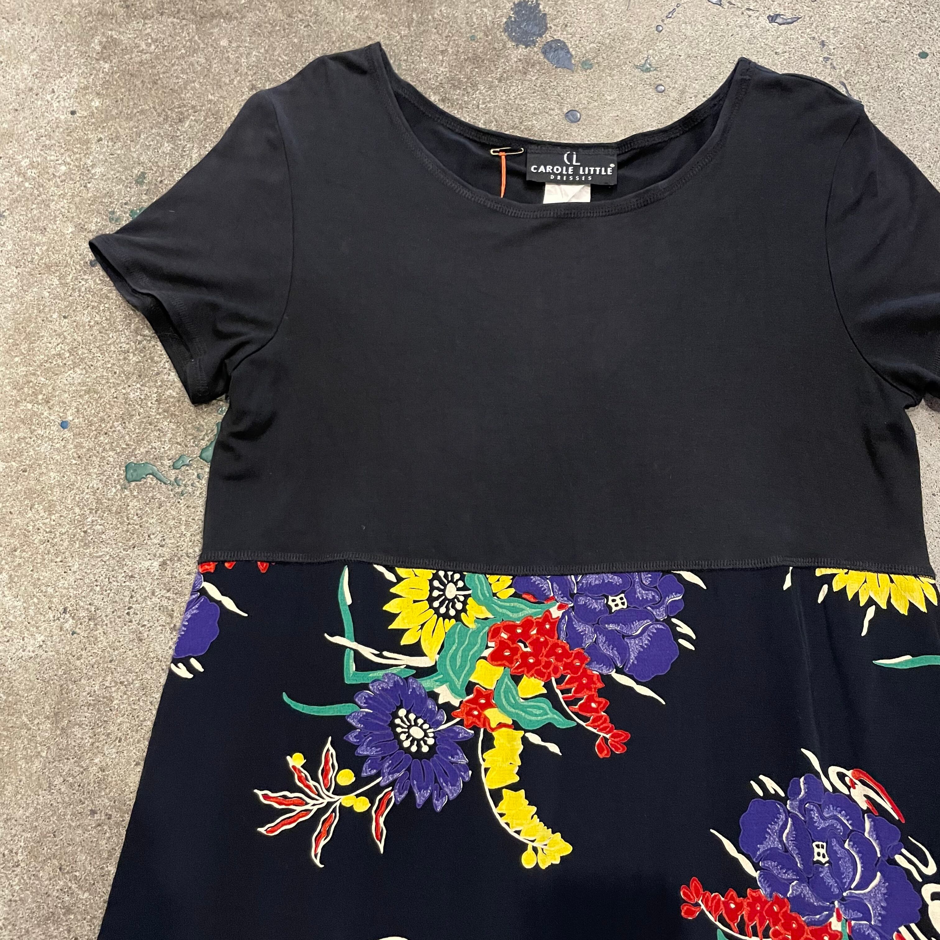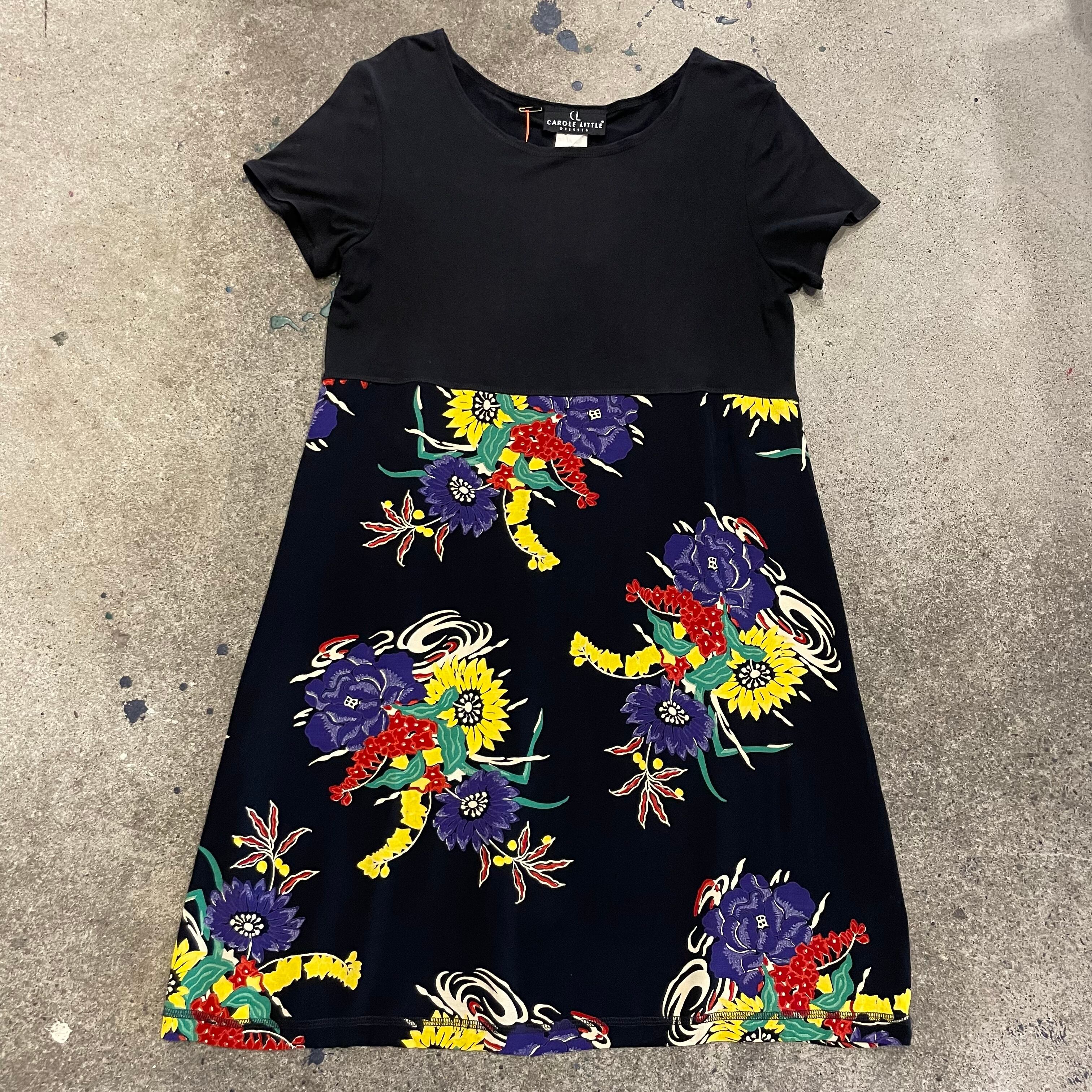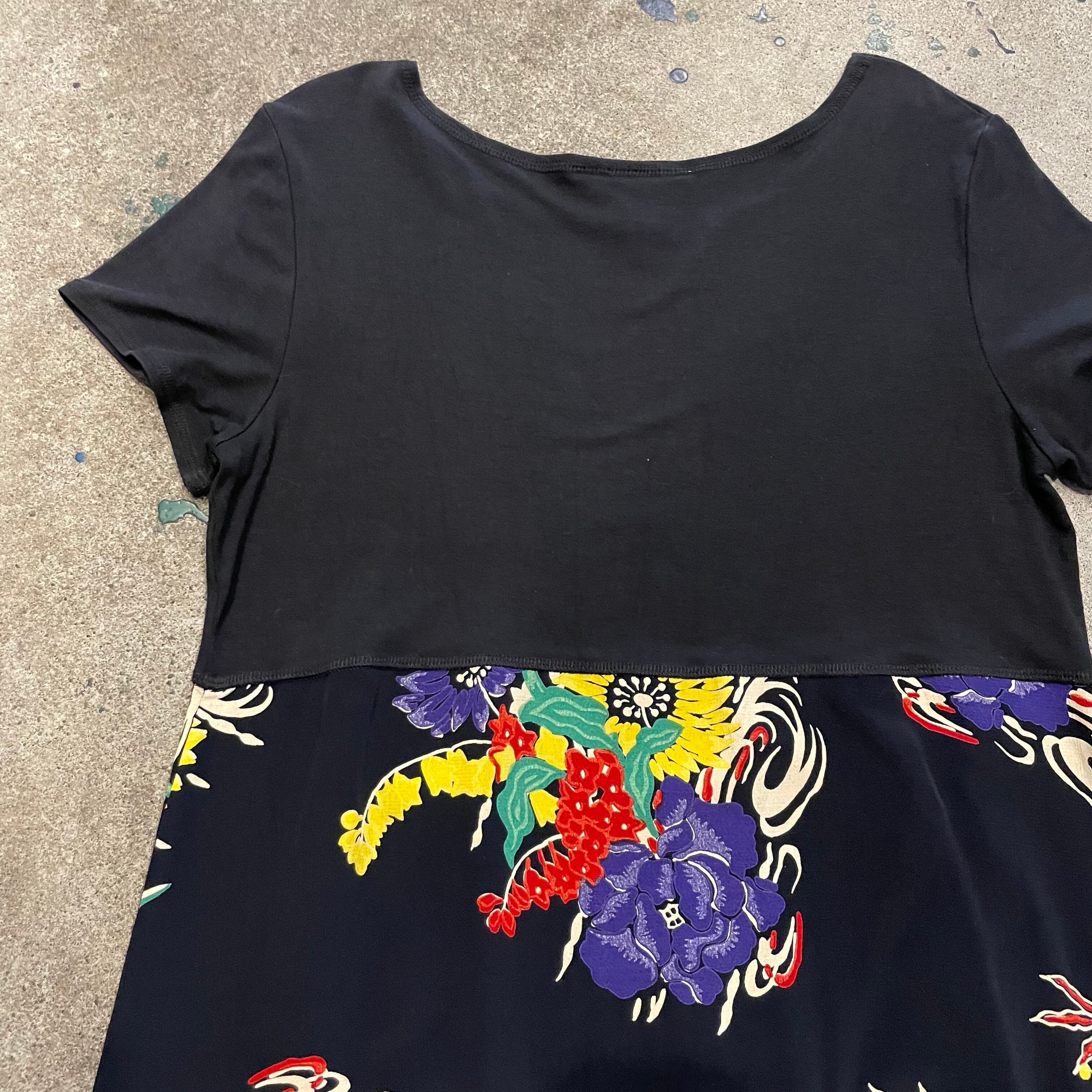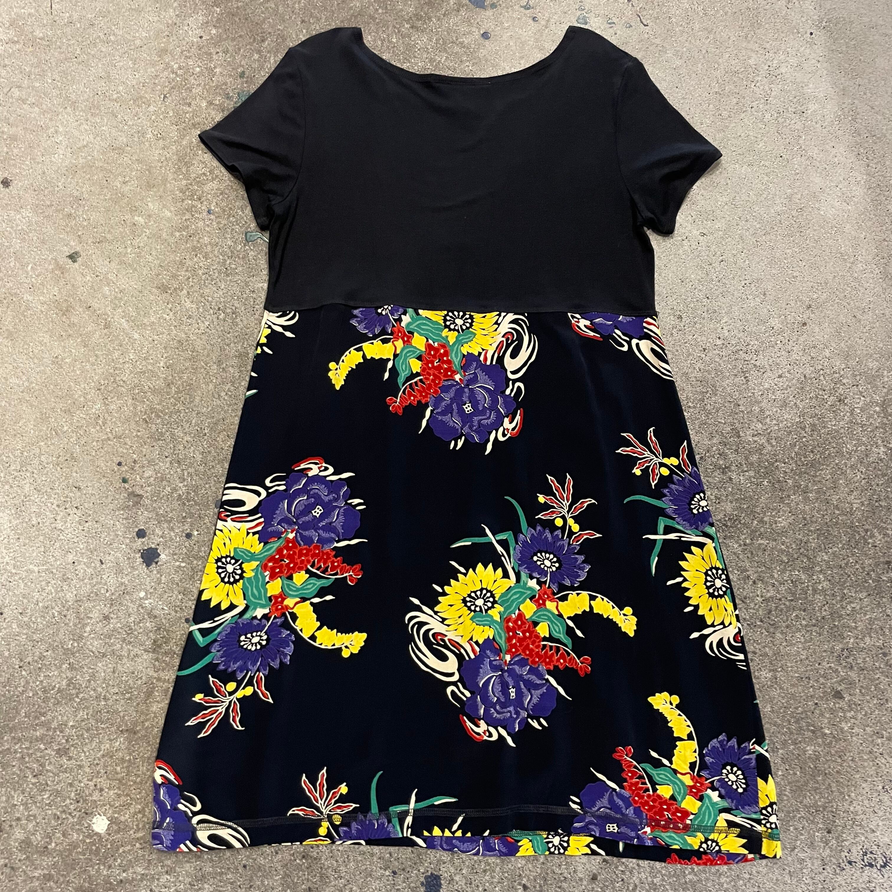 身頃部分はTシャツのような伸縮性のある編みの素材で、スカート部分はつるっとした織りの生地です。