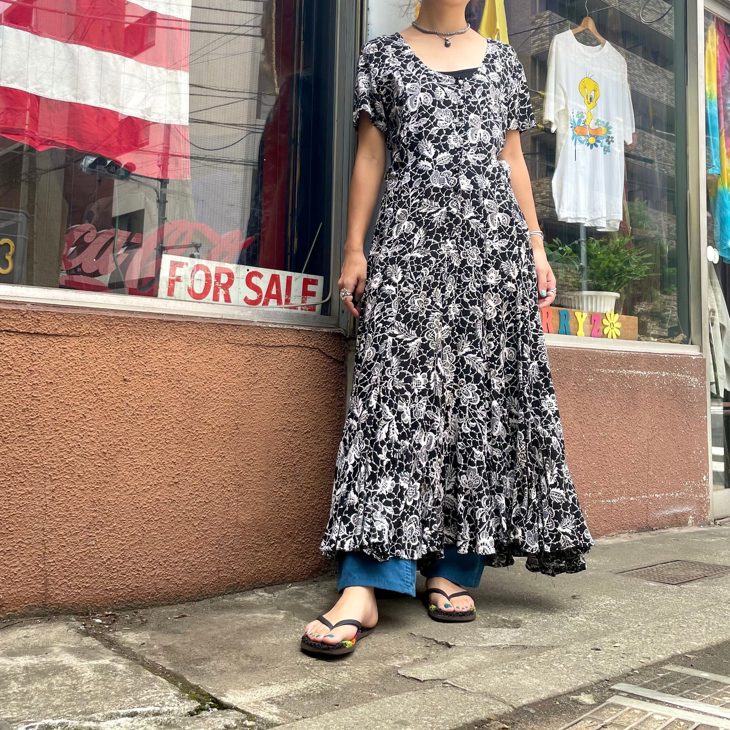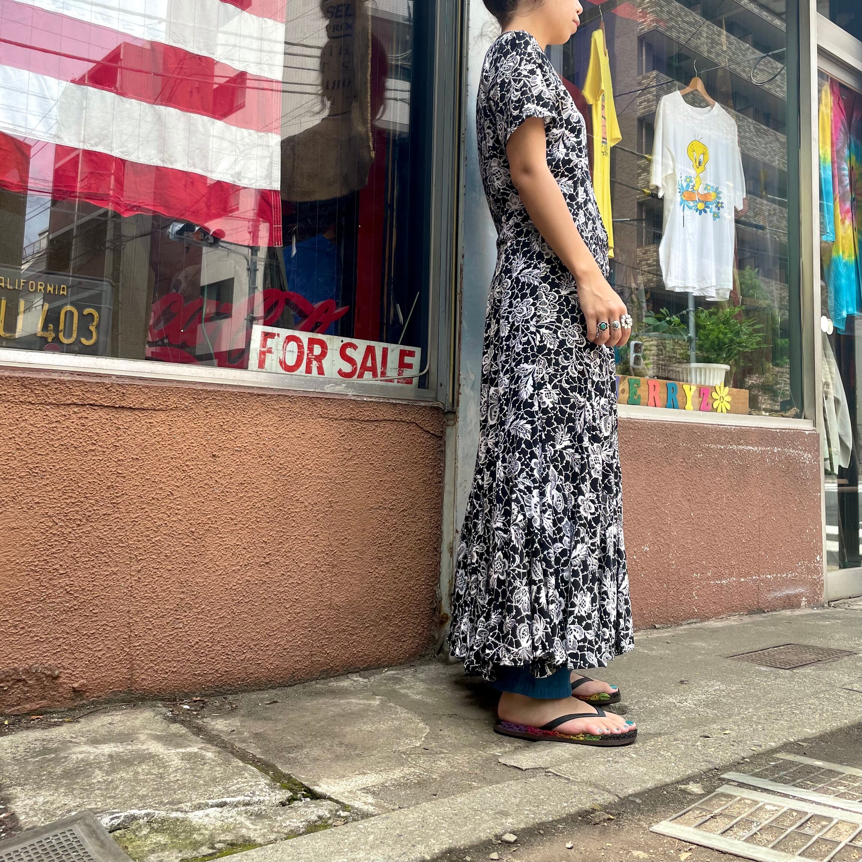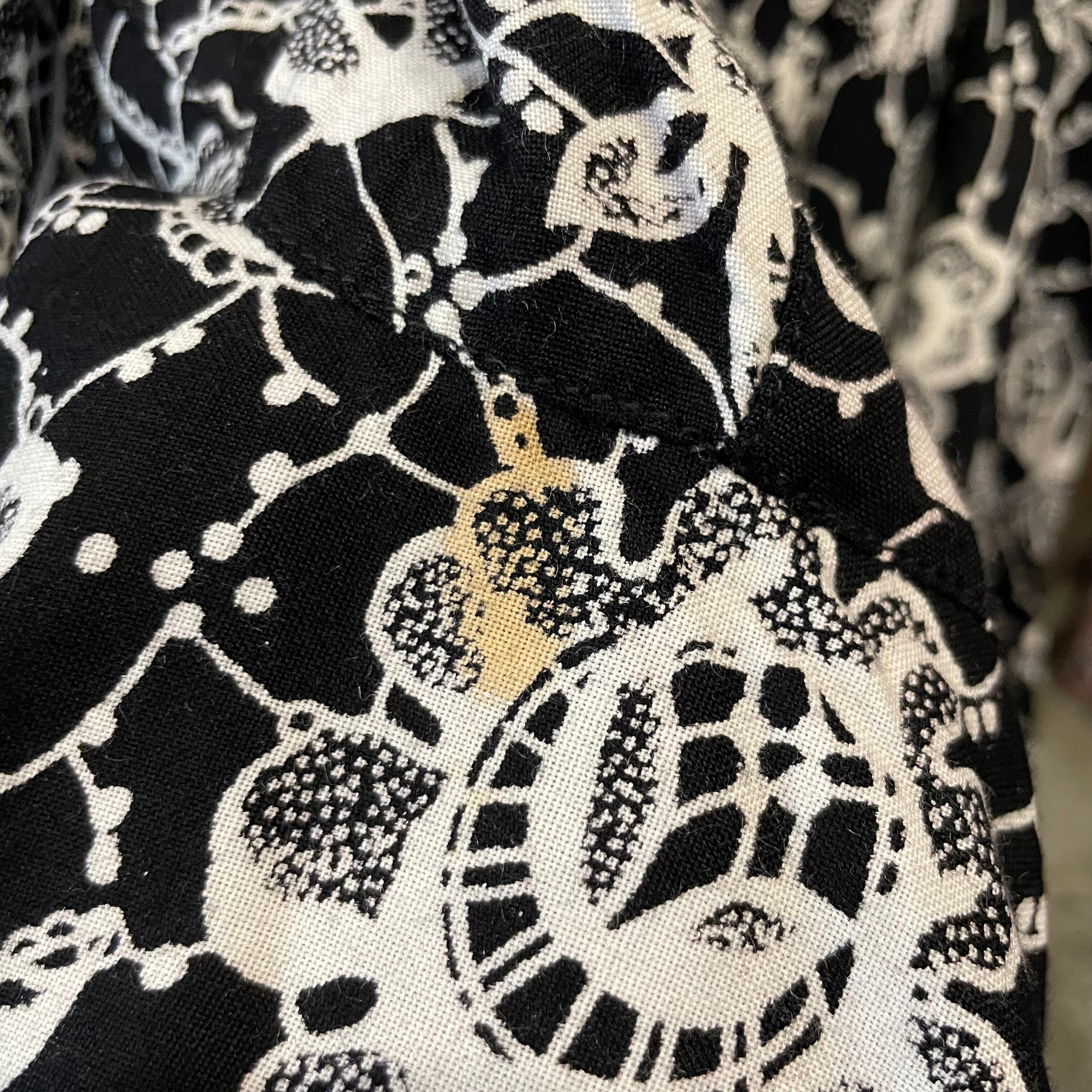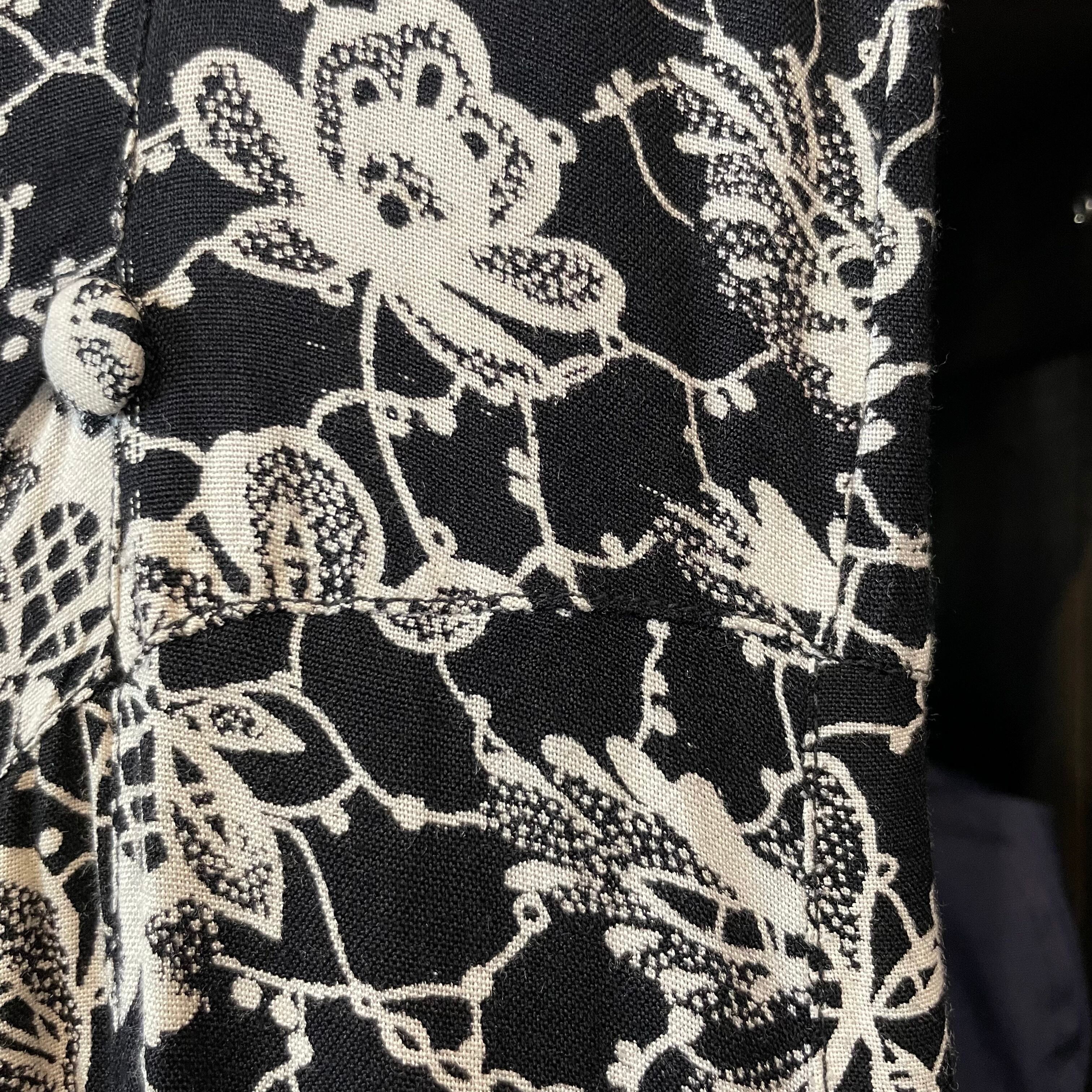 黒地に白の細かい不思議な葉っぱ柄がかわいいワンピースです。