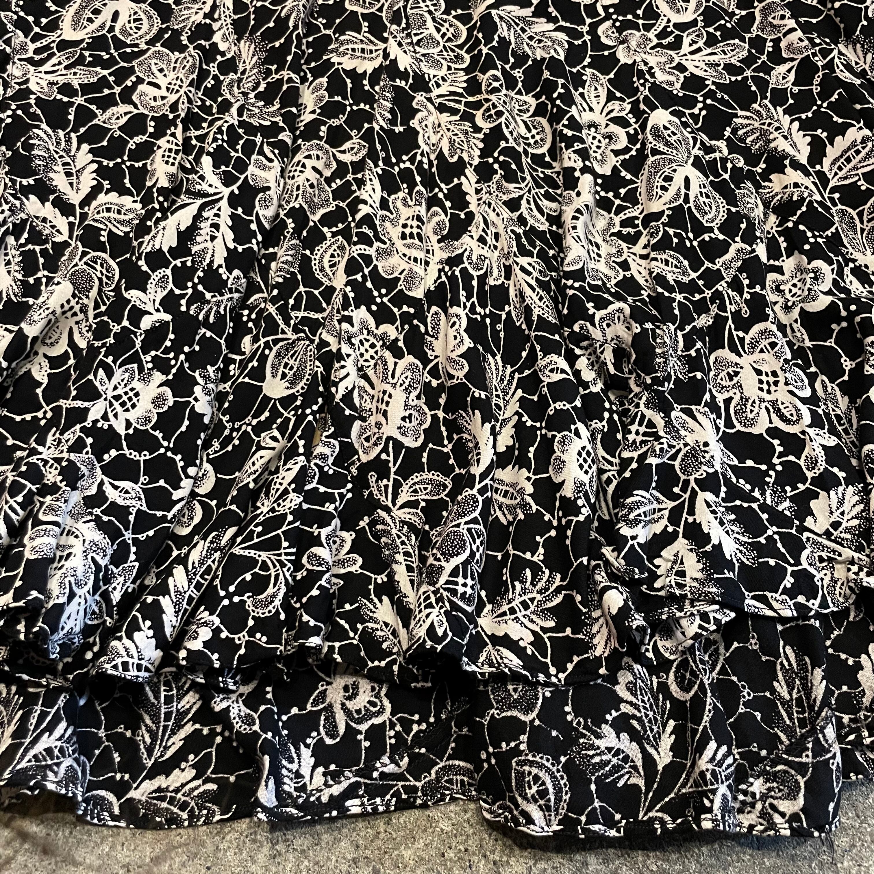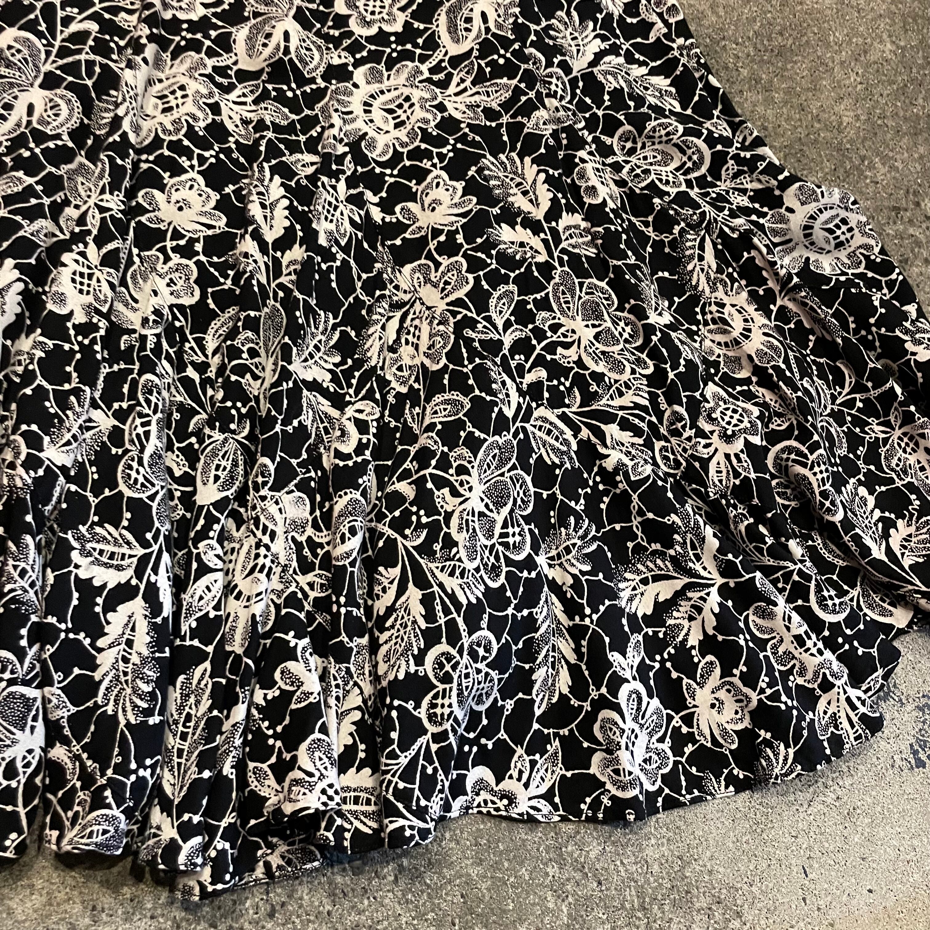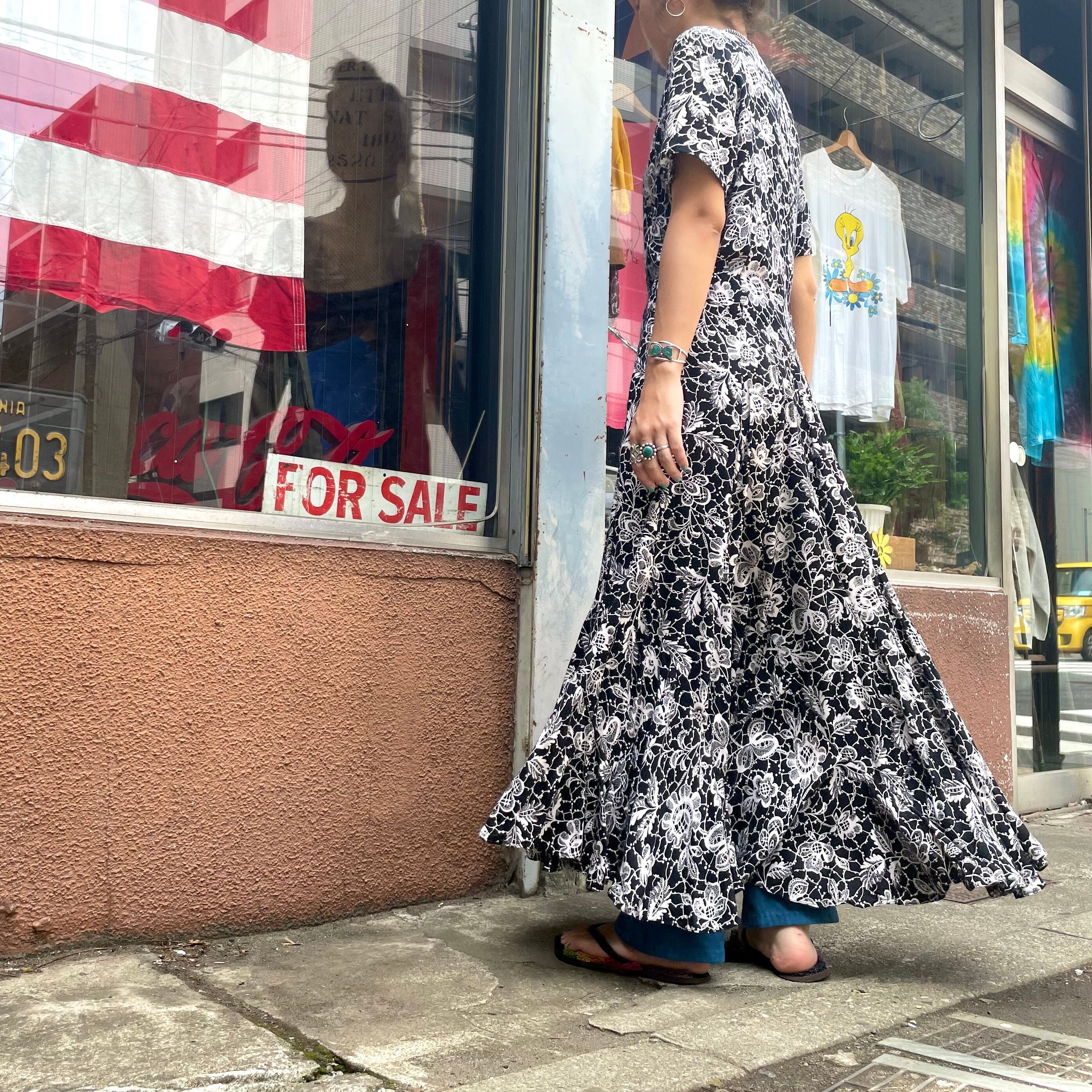 黒地に白の細かい不思議な葉っぱ柄がかわいいワンピースです。