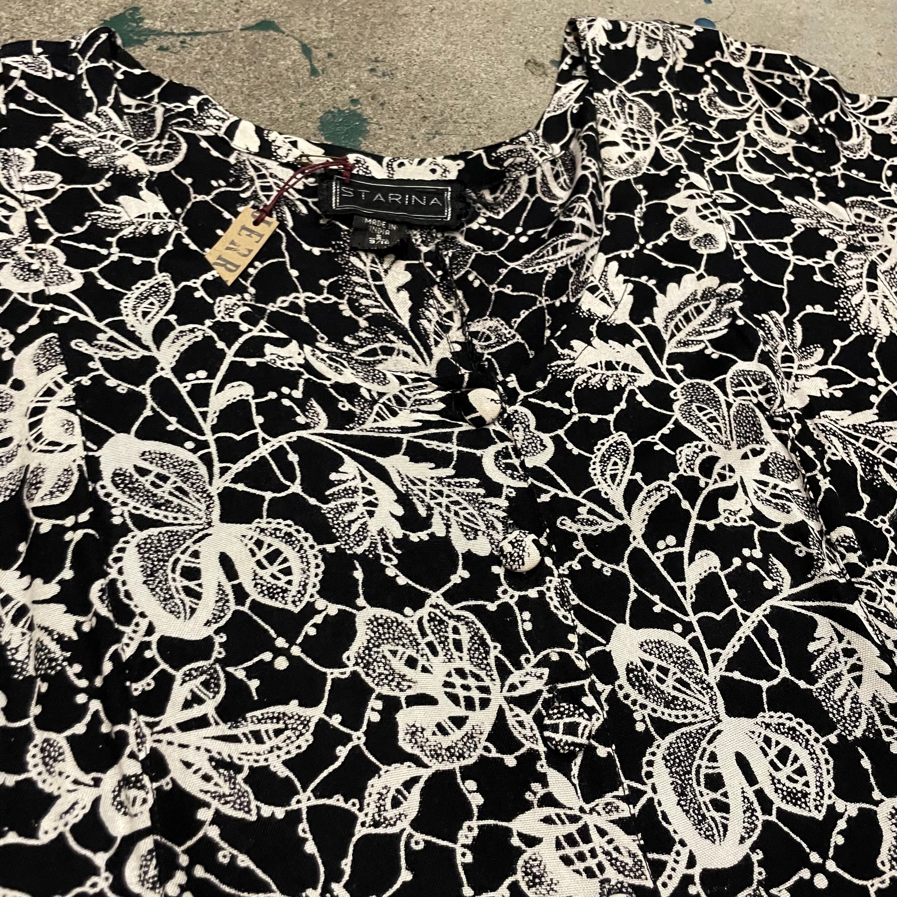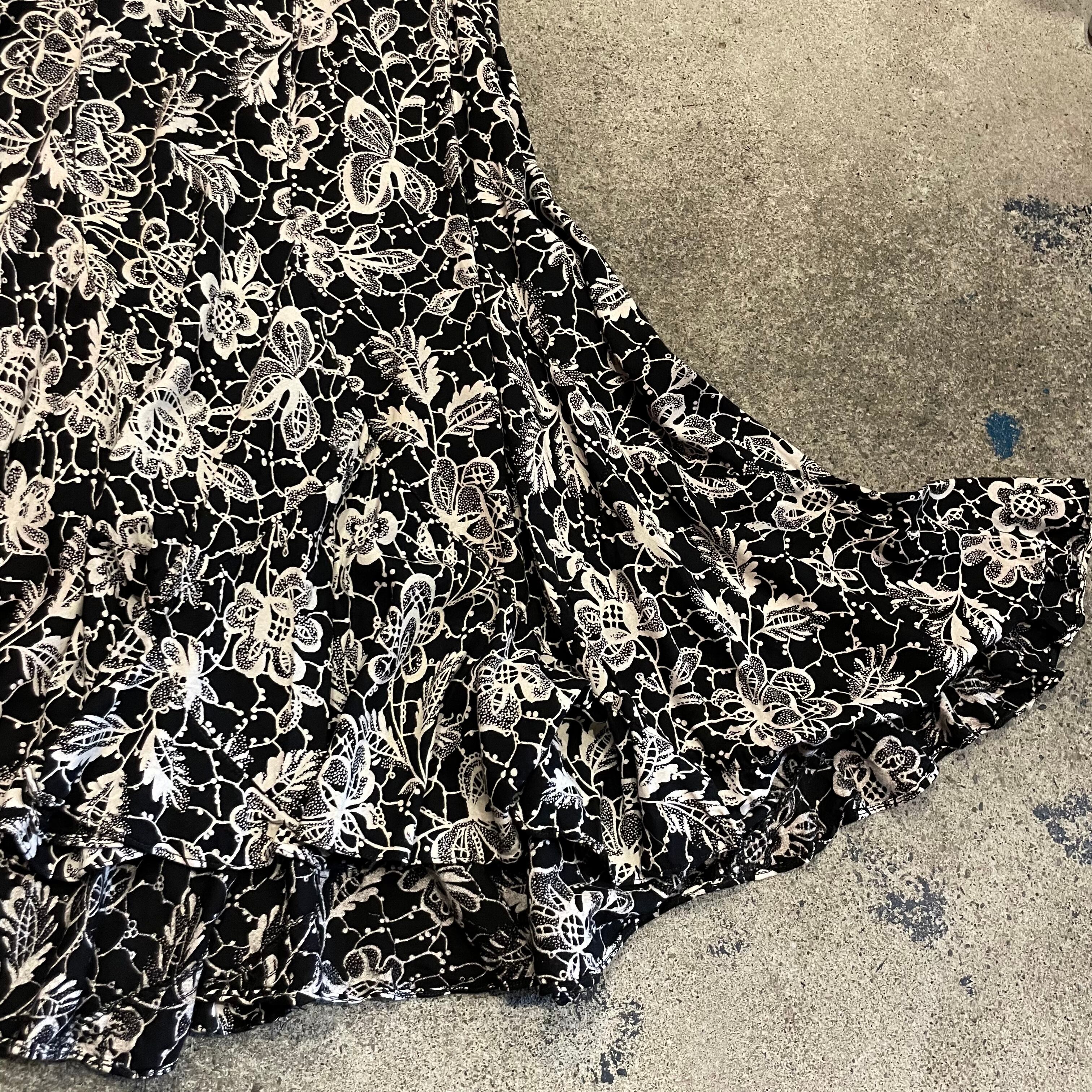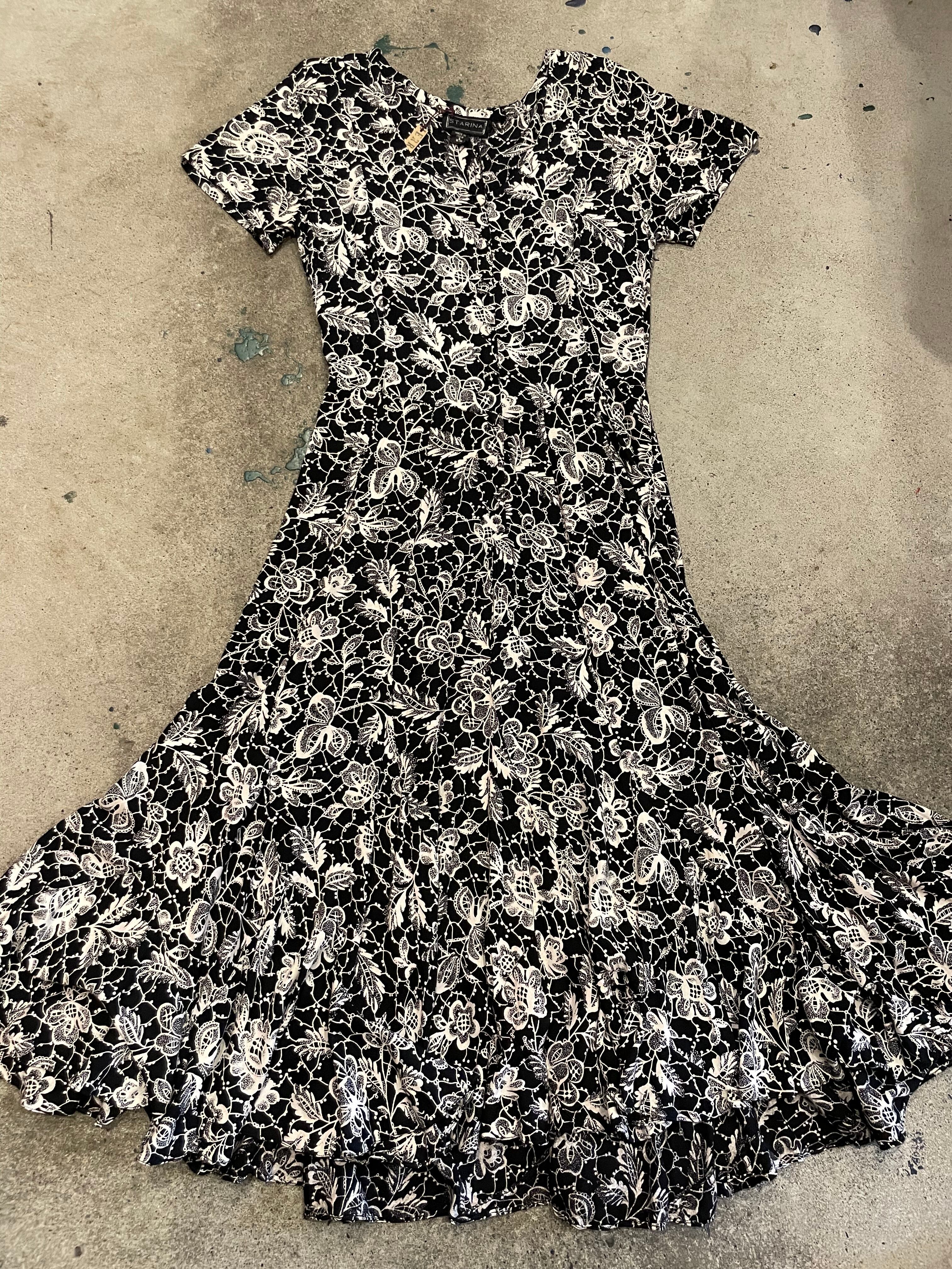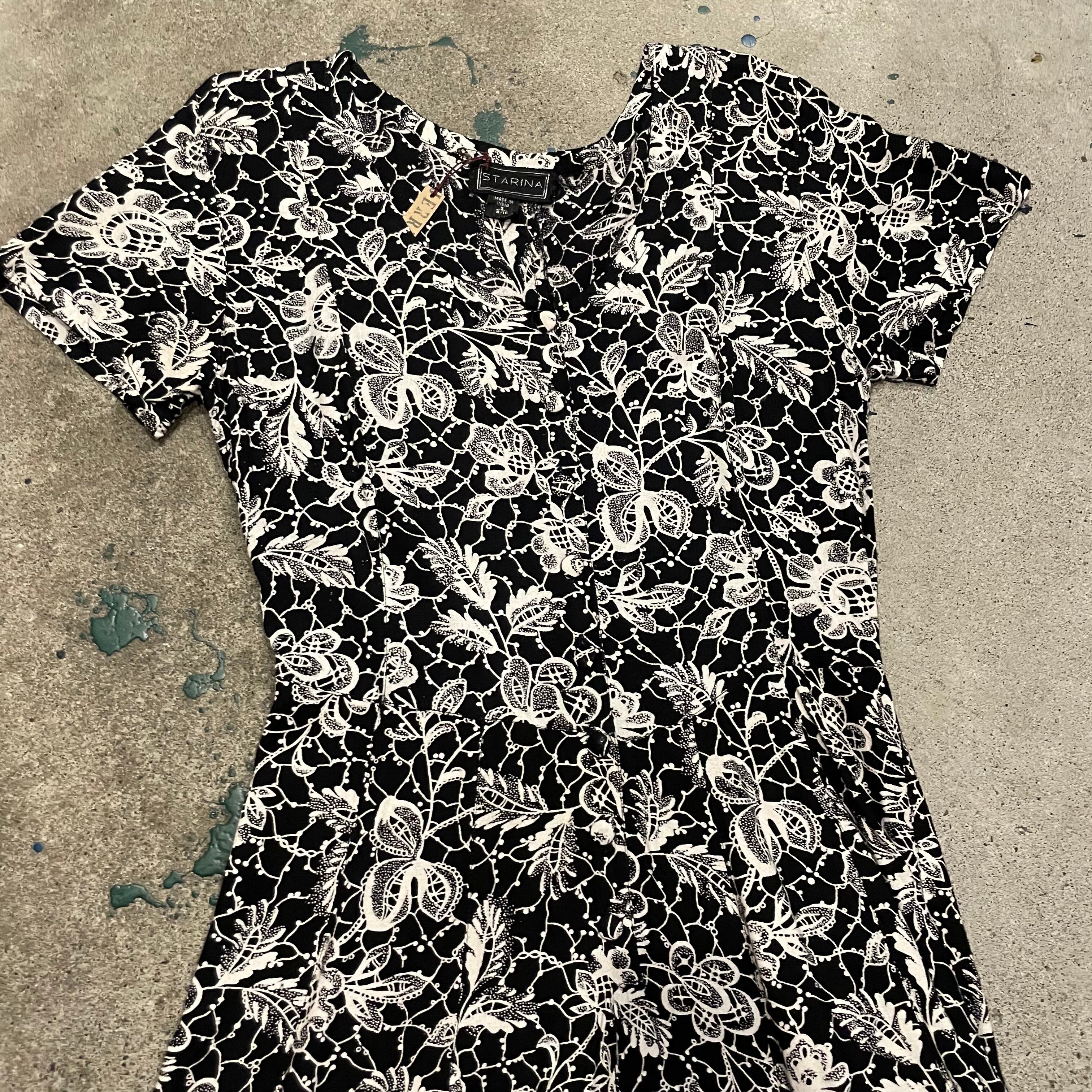 黒地に白の細かい不思議な葉っぱ柄がかわいいワンピースです。
