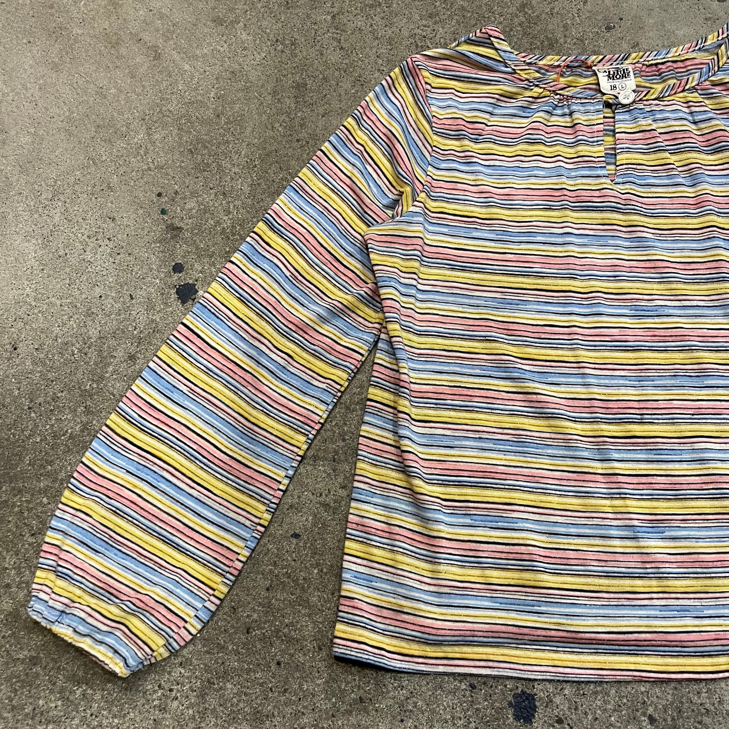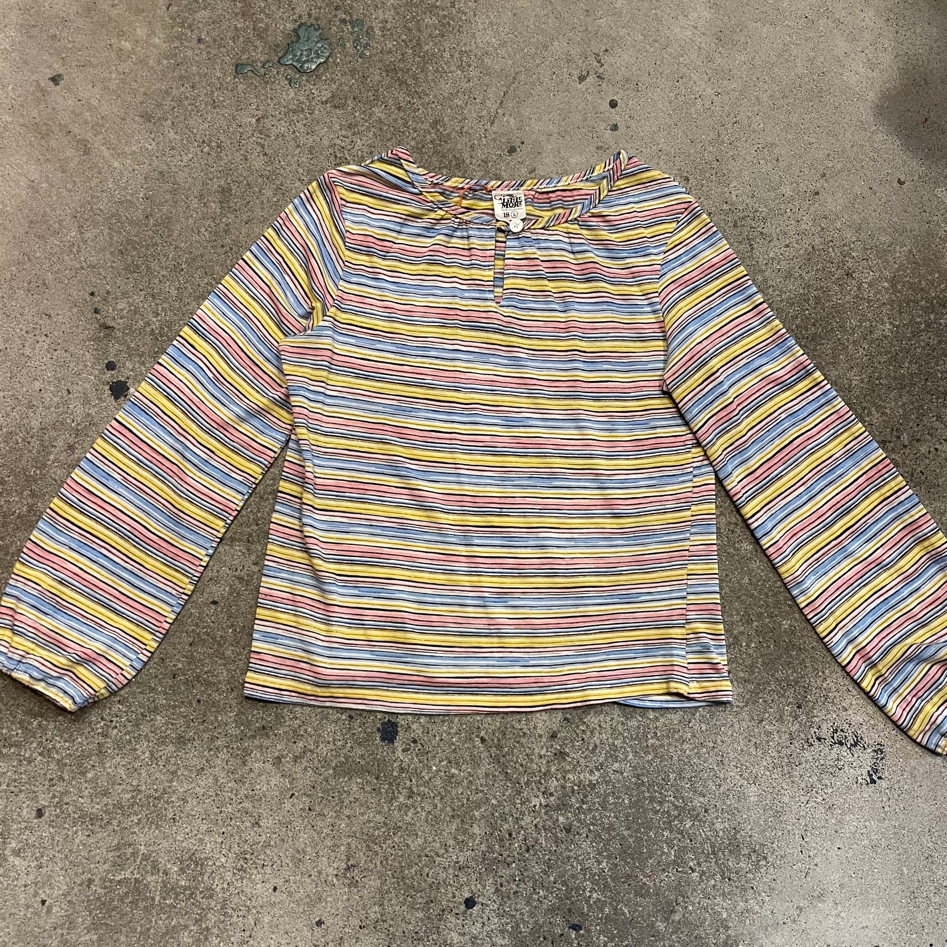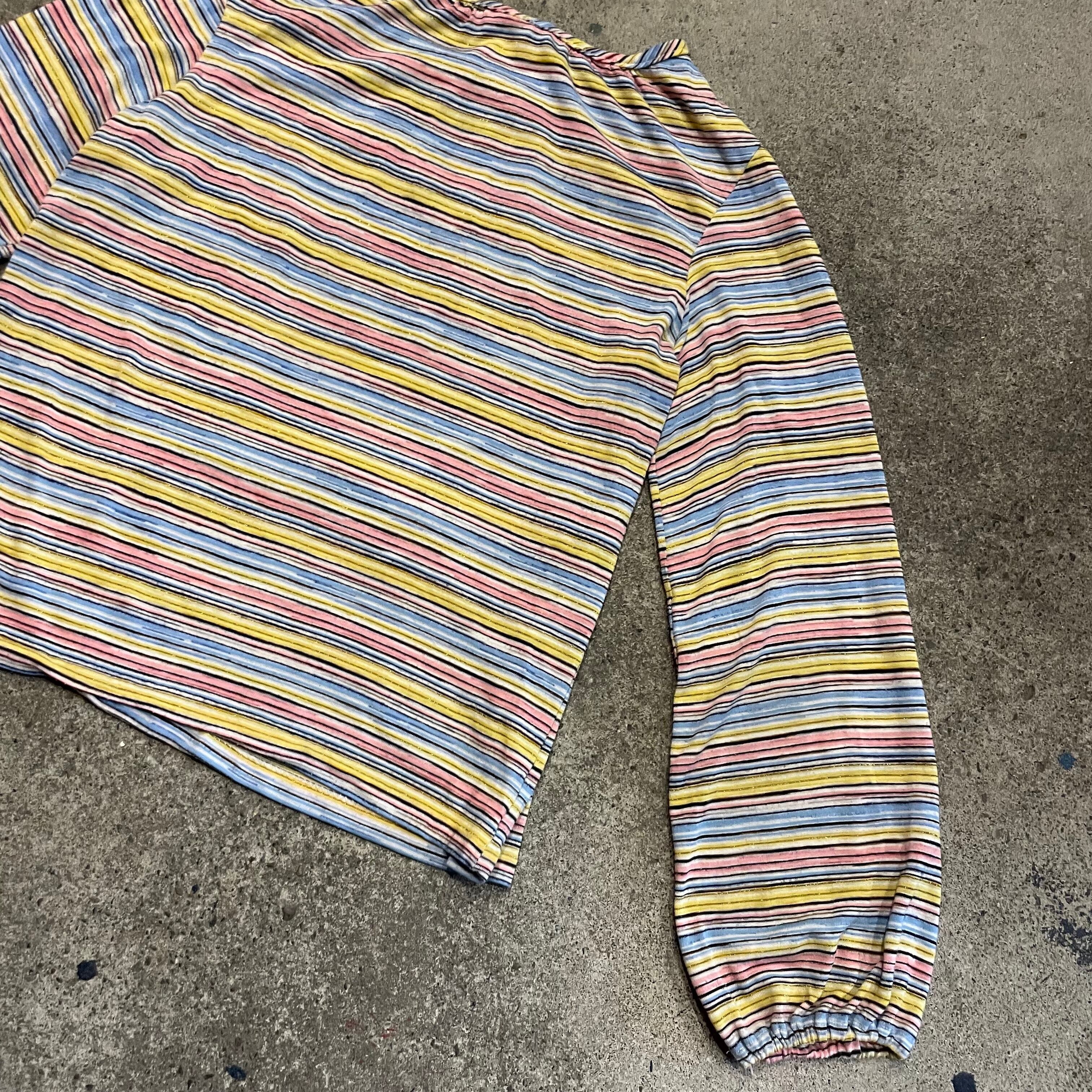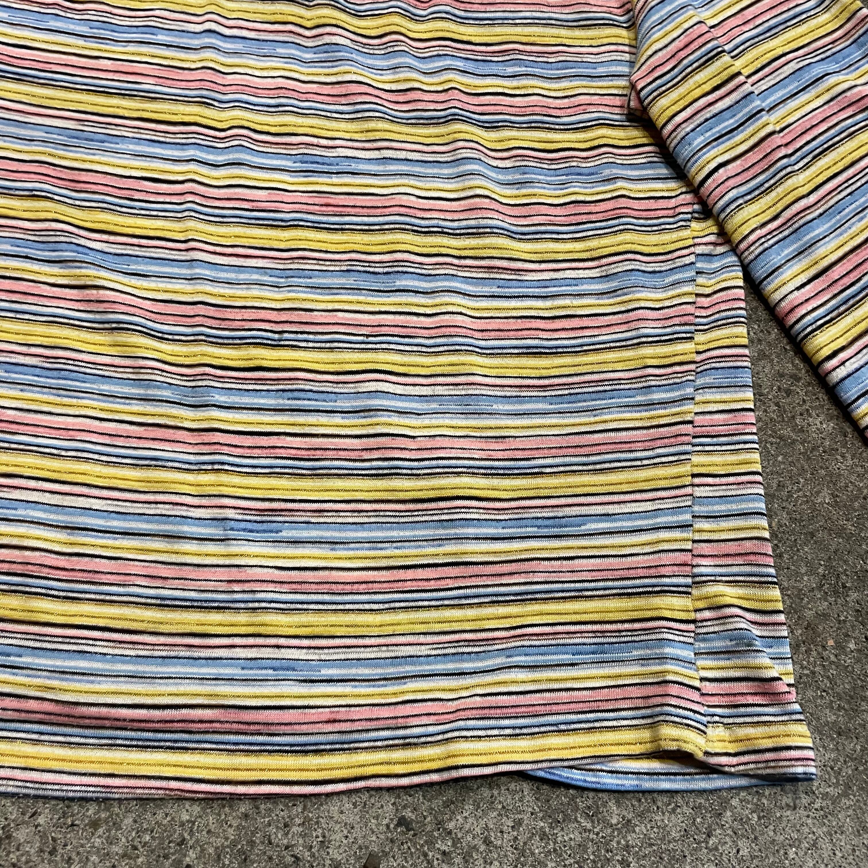 ボーダーとラメ糸がキラッとかわいいトップスです。淡めでポップなカラーリングが良い感じです。