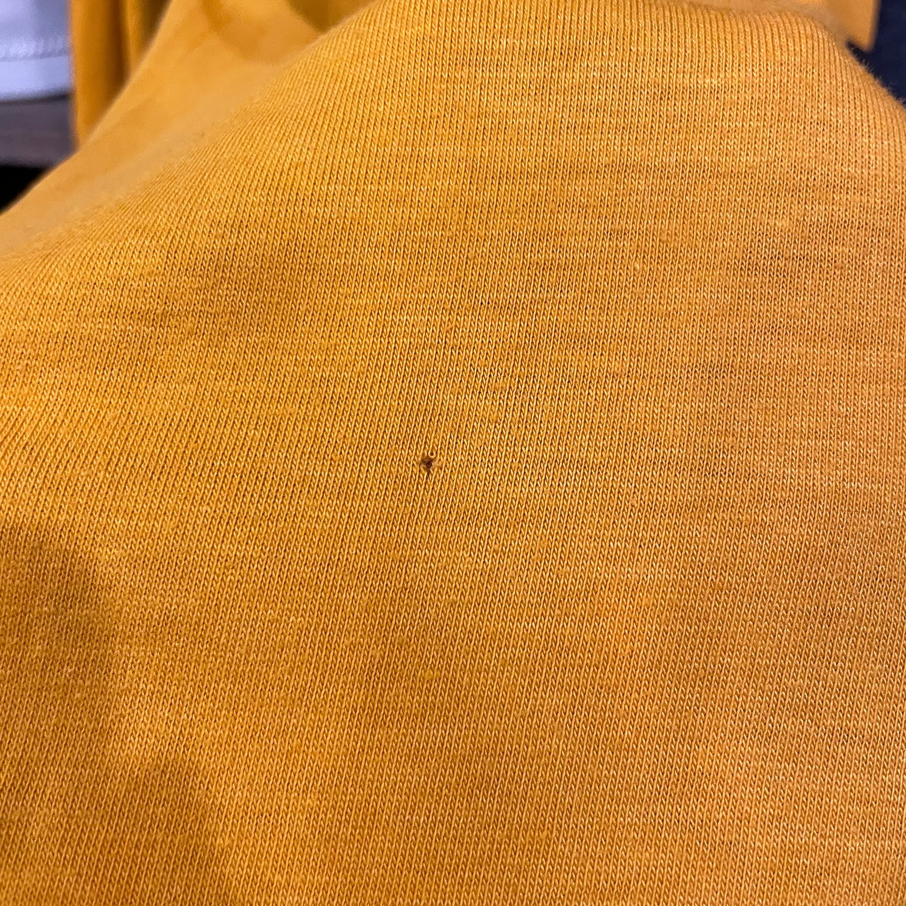 軽い毛羽立ちや小さい傷、袖にシミ等使用感のある商品です。