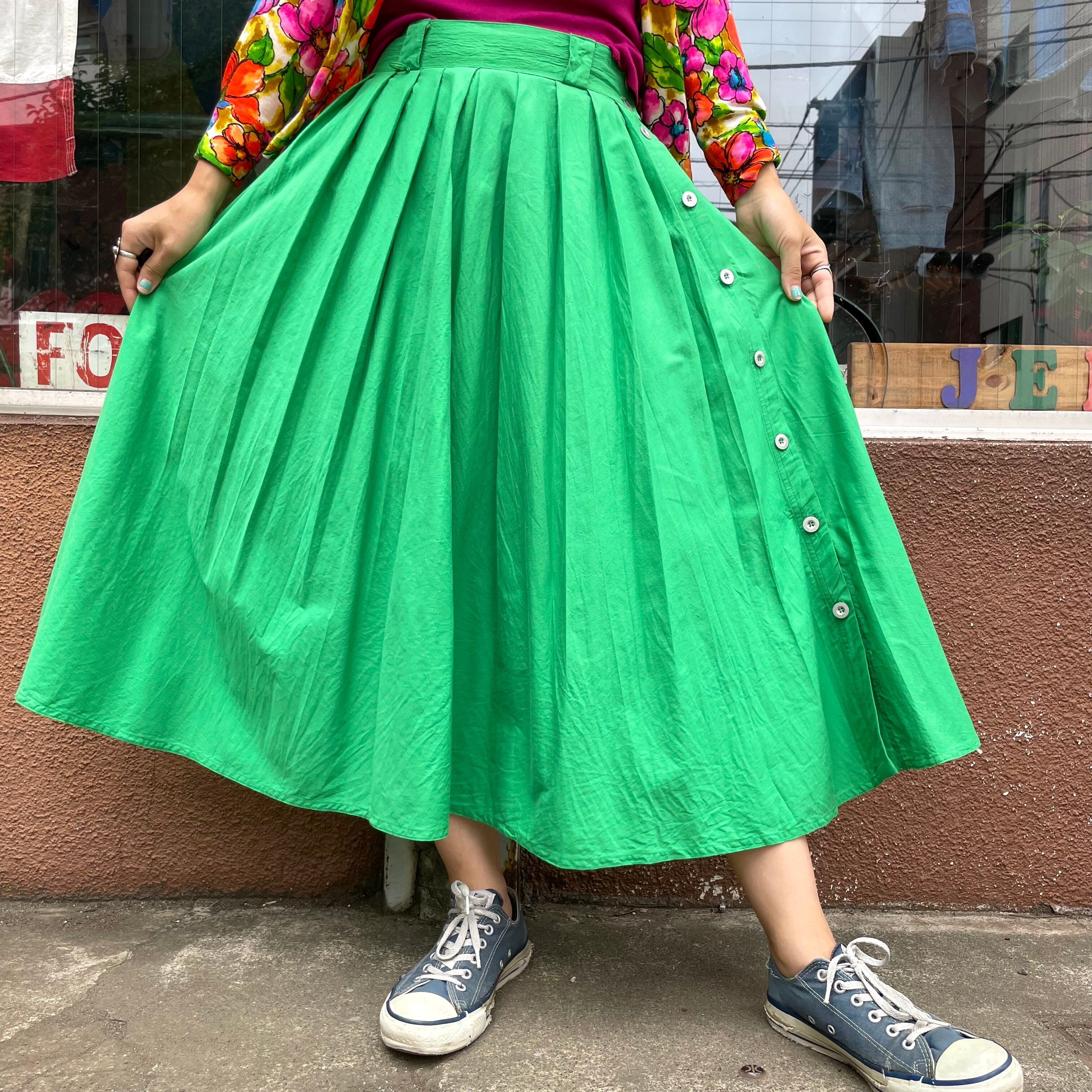 プリーツからのフレアのシルエットがとてもかわいい一着です。