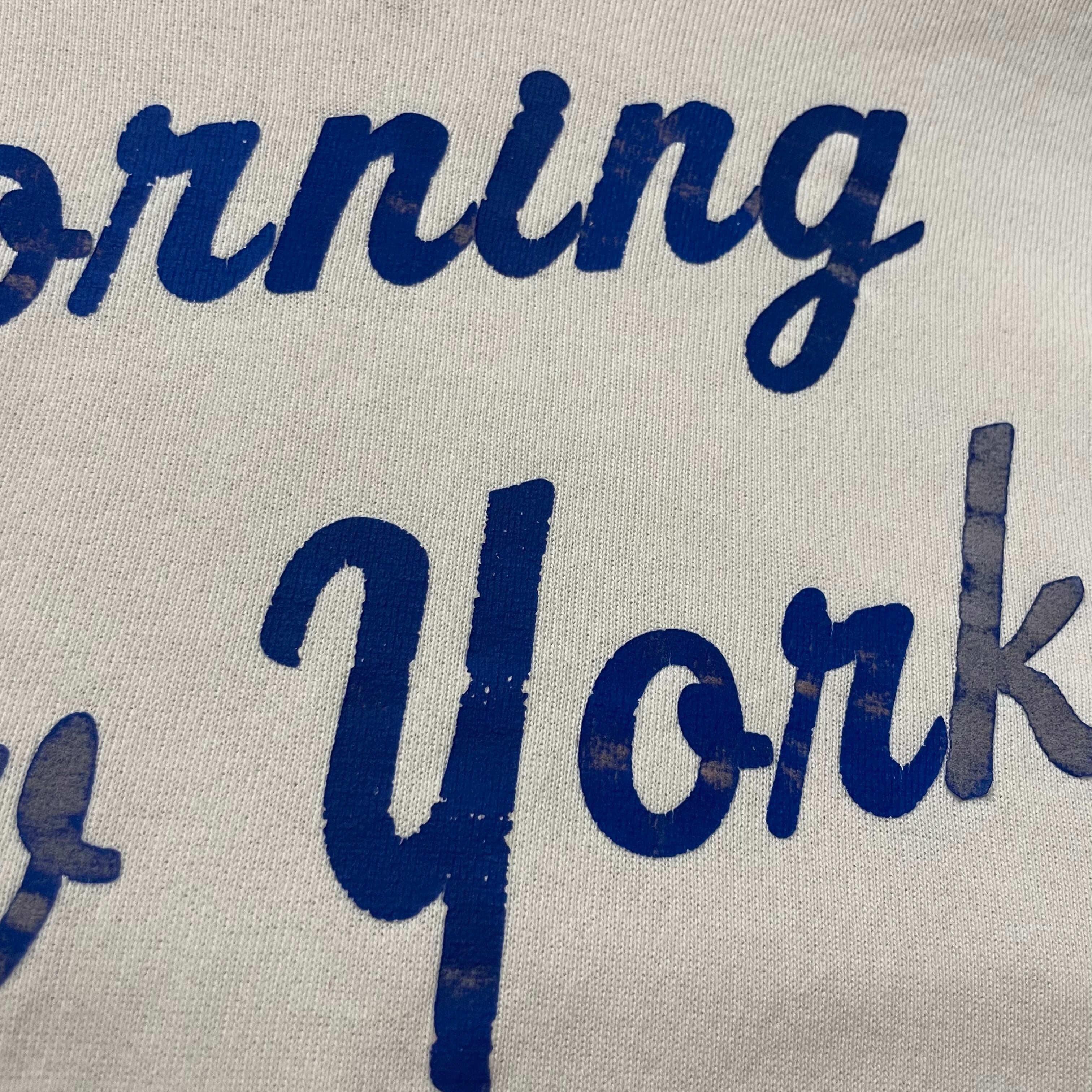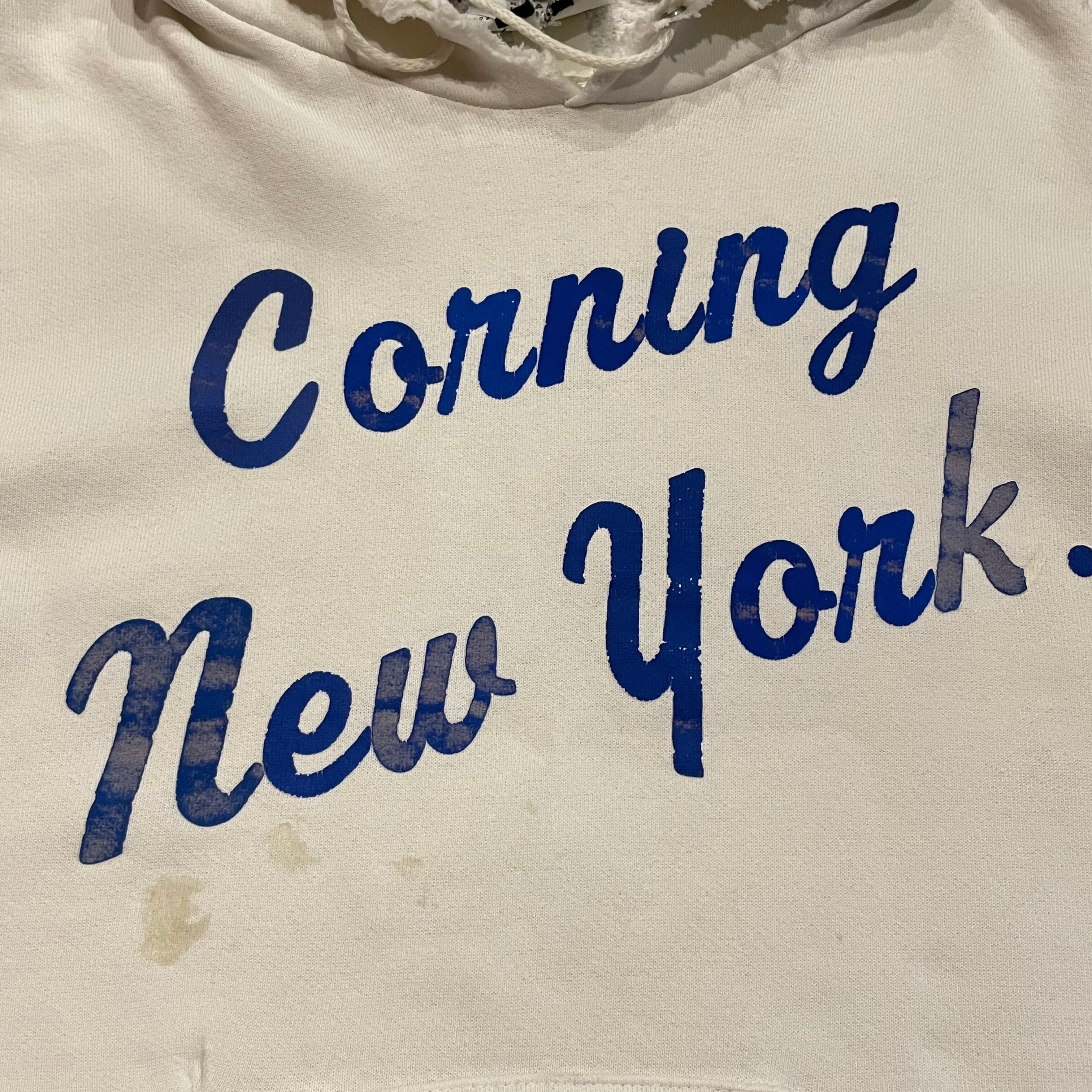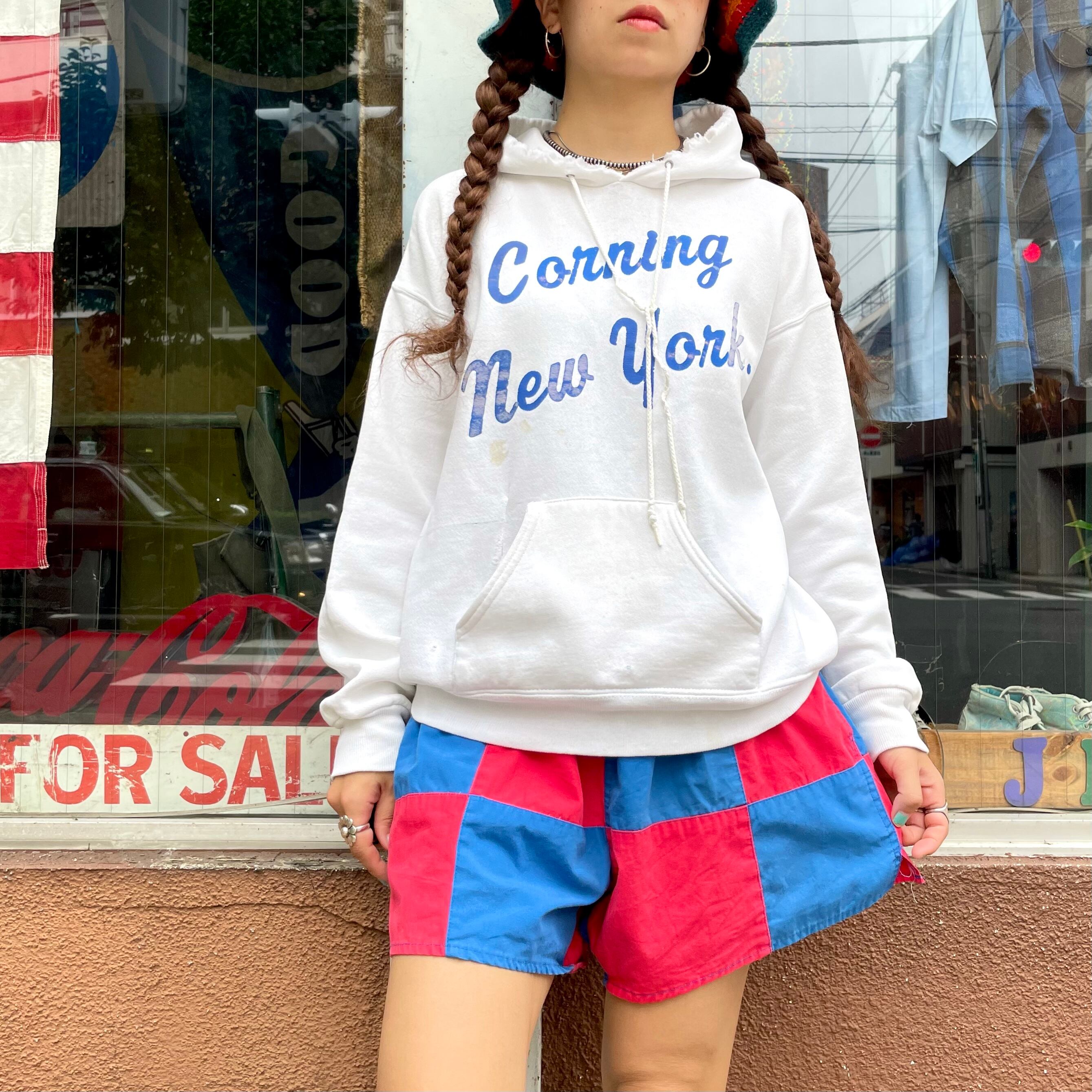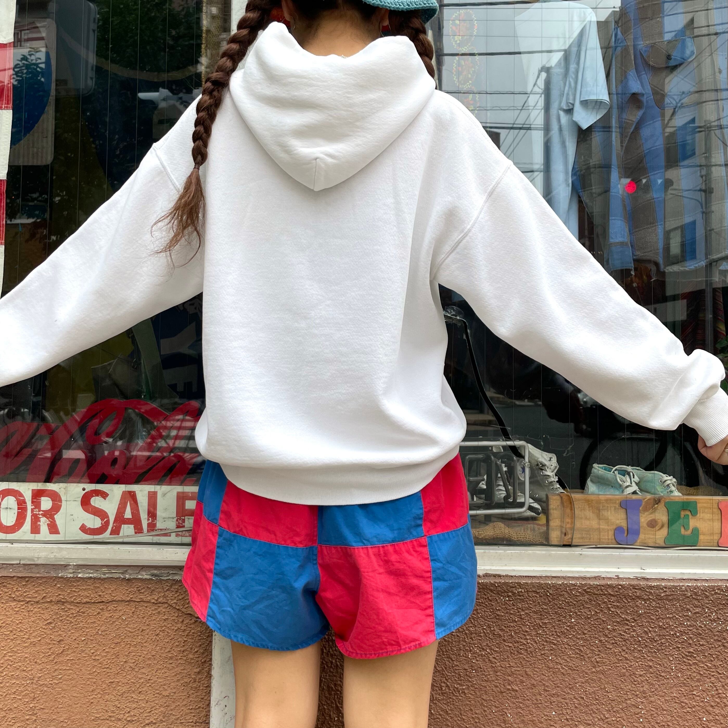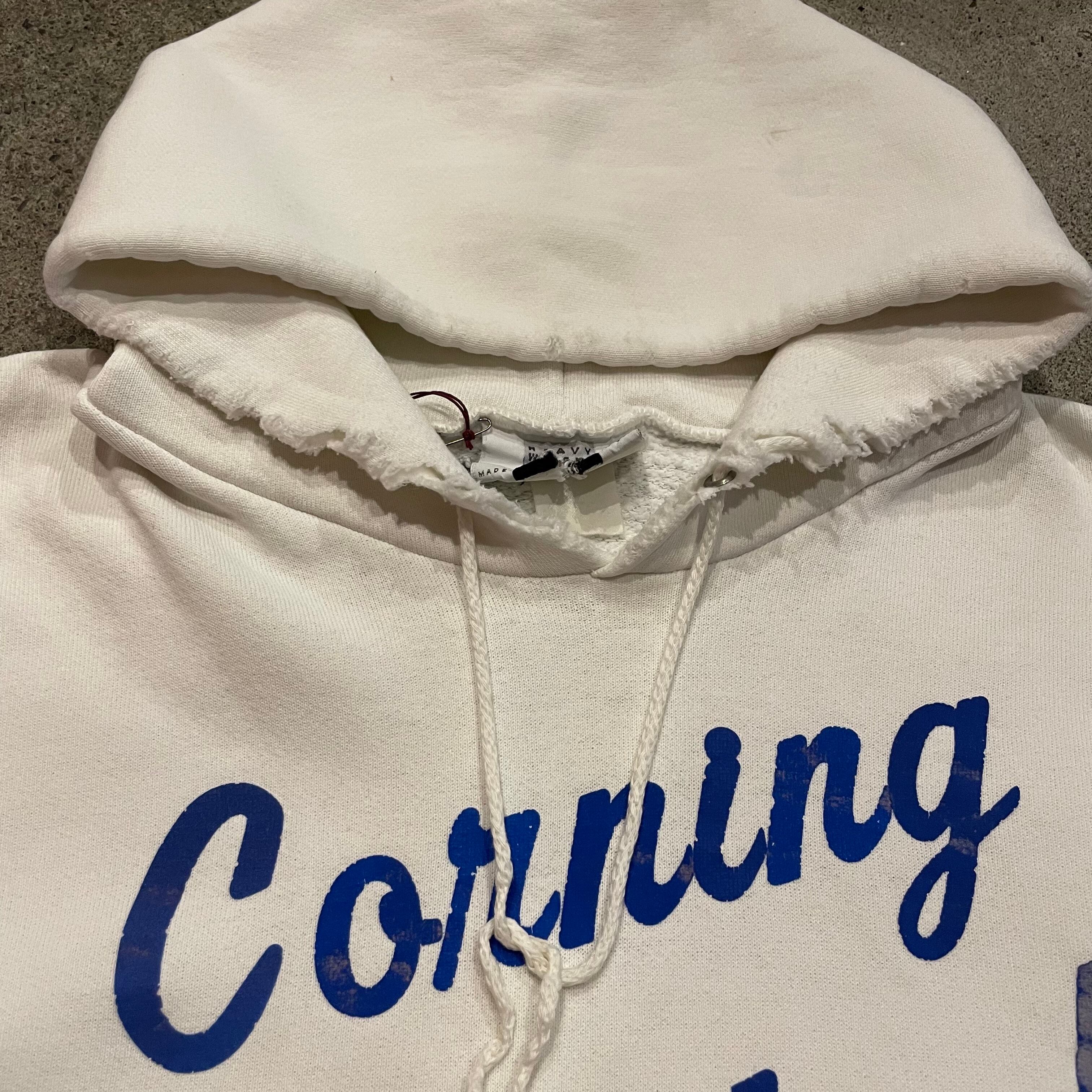 白地に青の文字、書体がかわいいパーカーです。