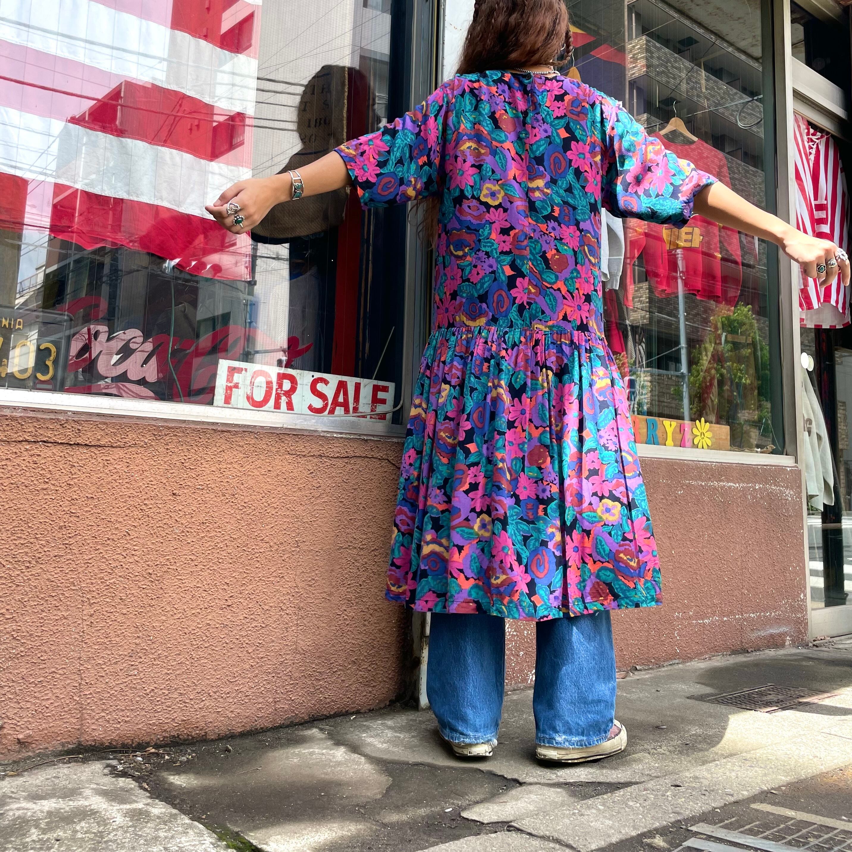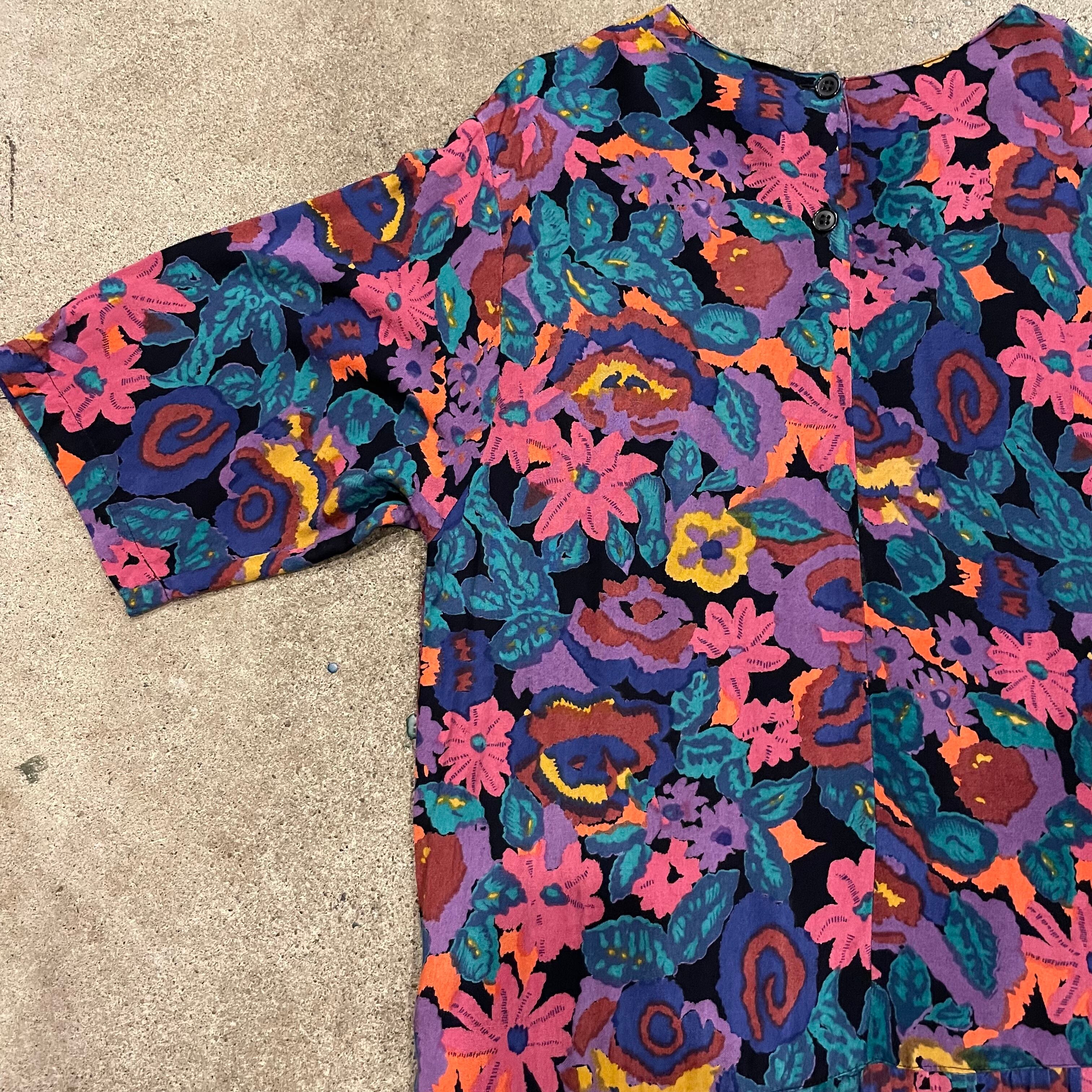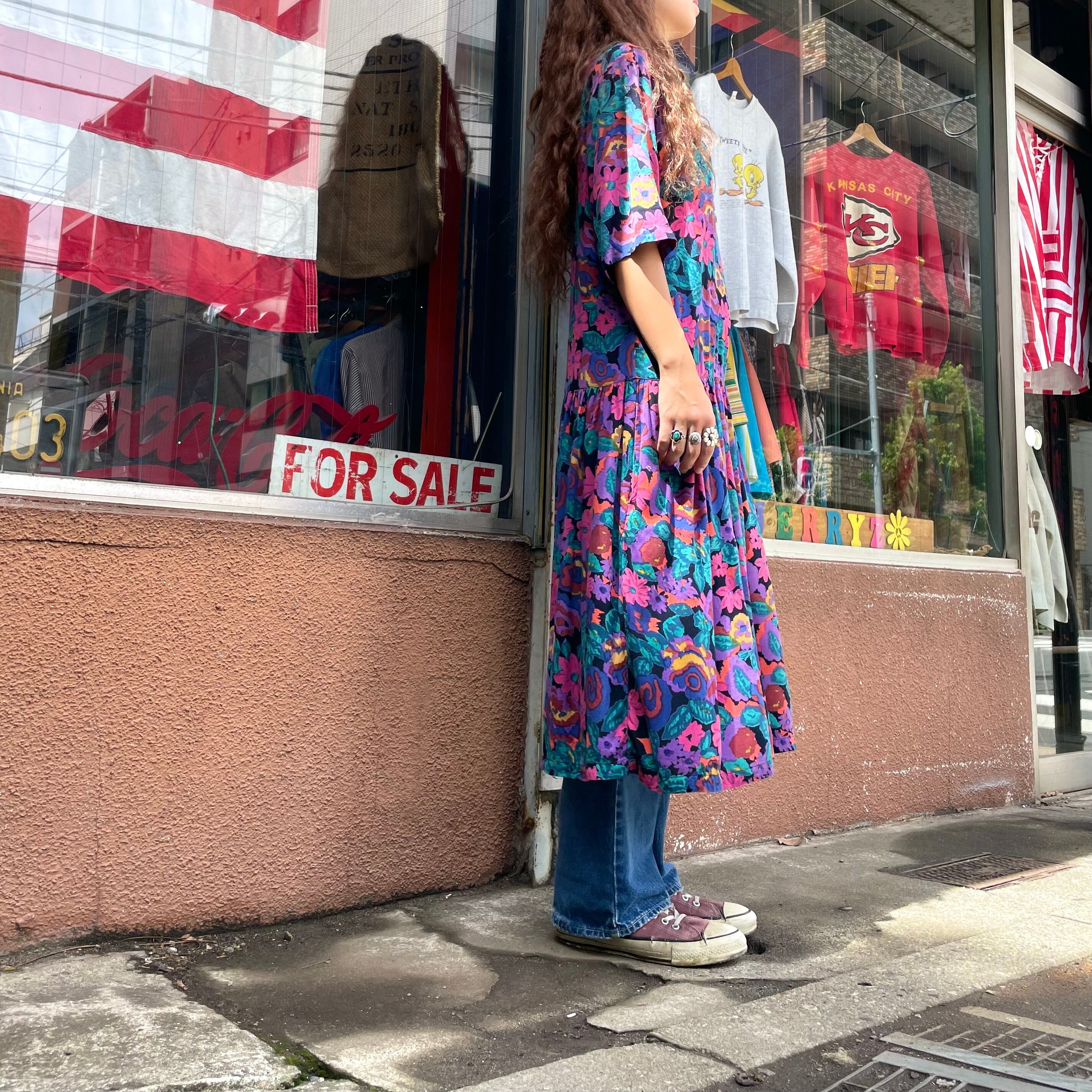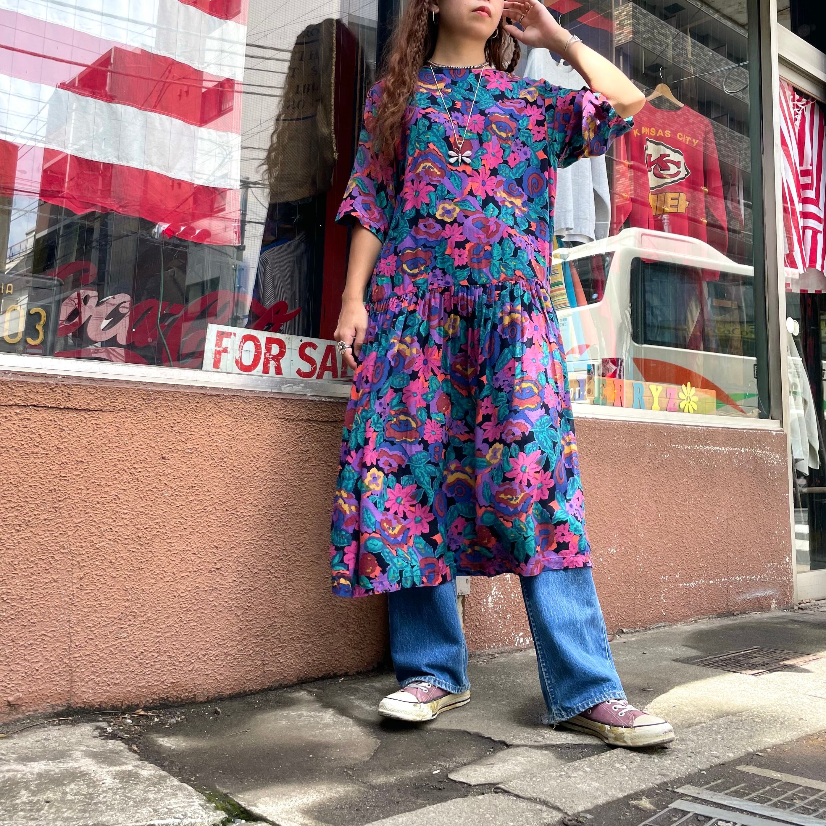 もやもやした独特な花柄がかわいいレーヨン素材のワンピースです。