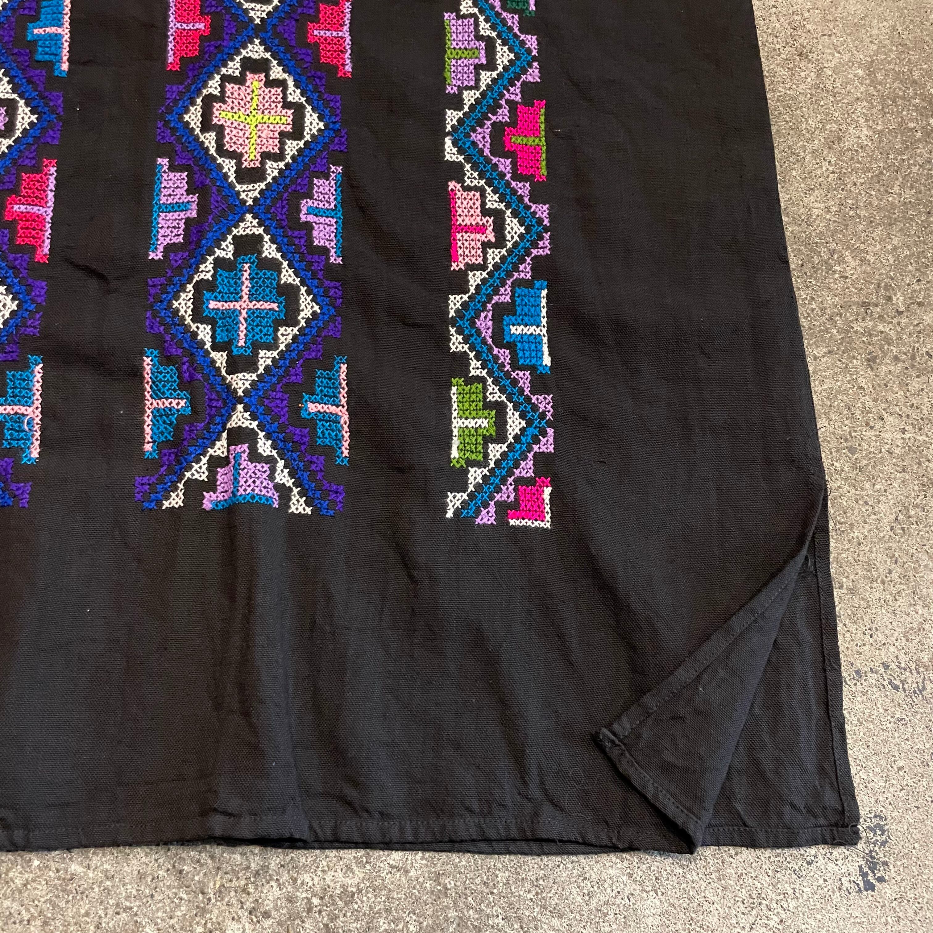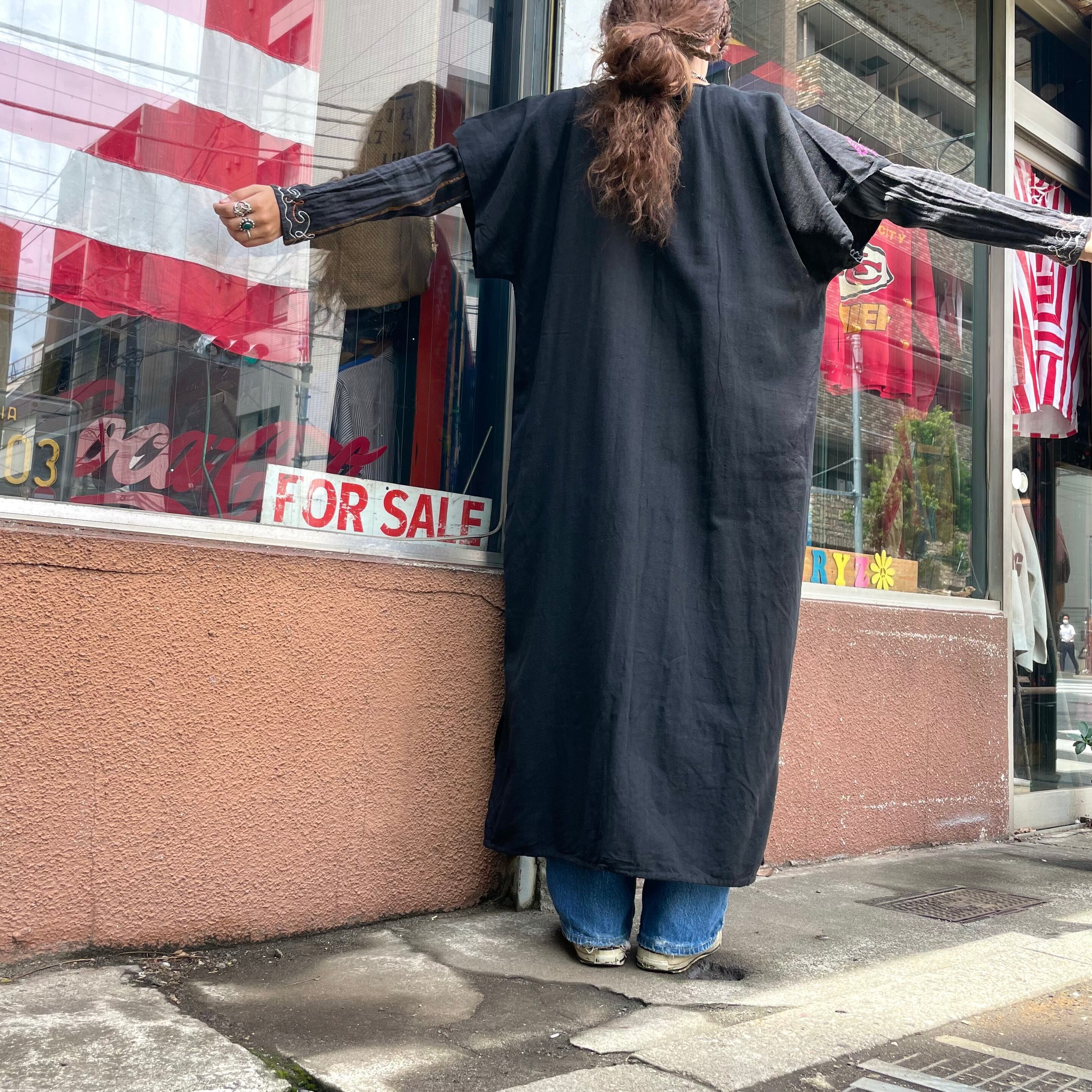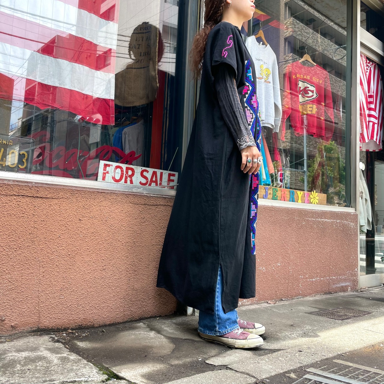 黒地にカラフルな手刺繍が映えて素敵なワンピースです。