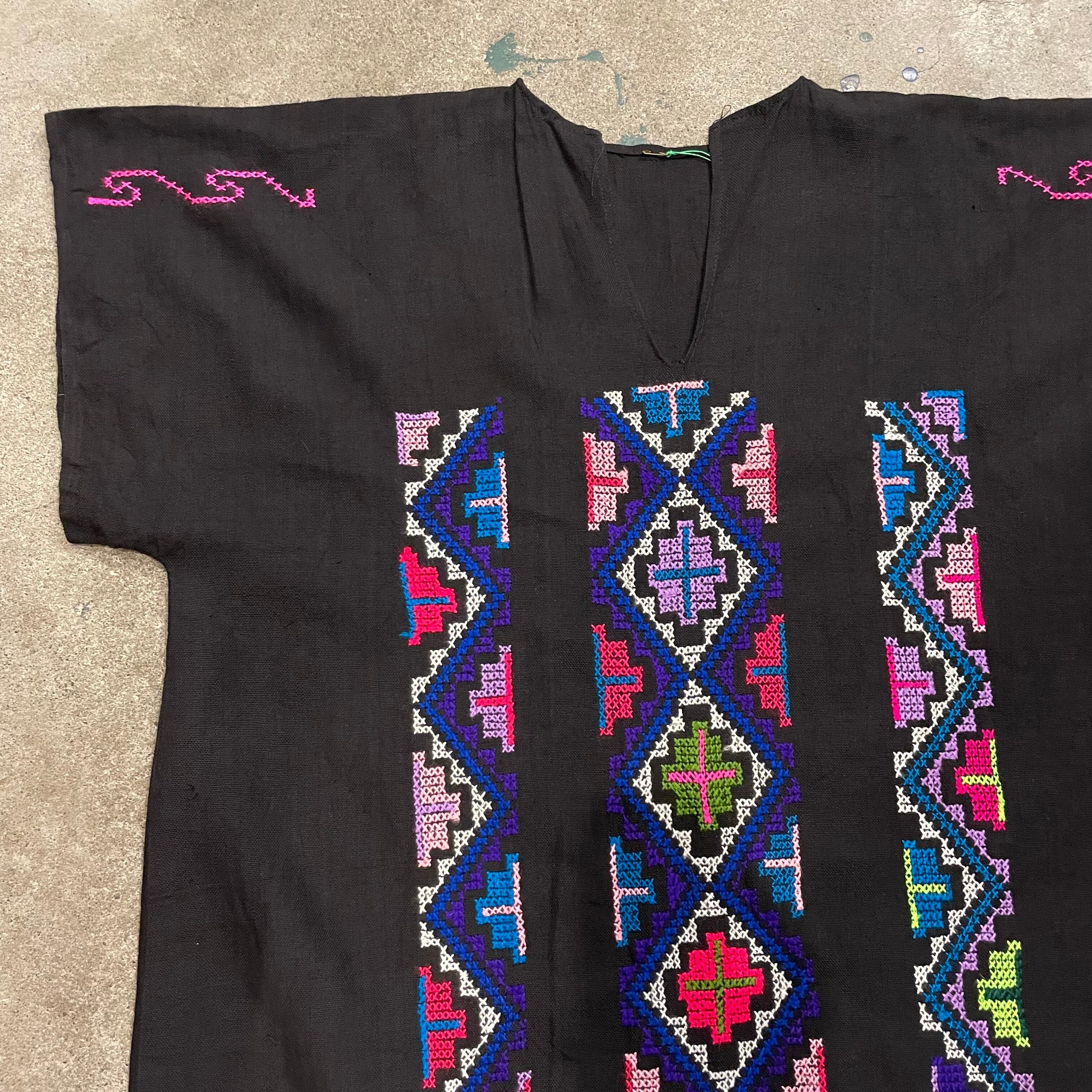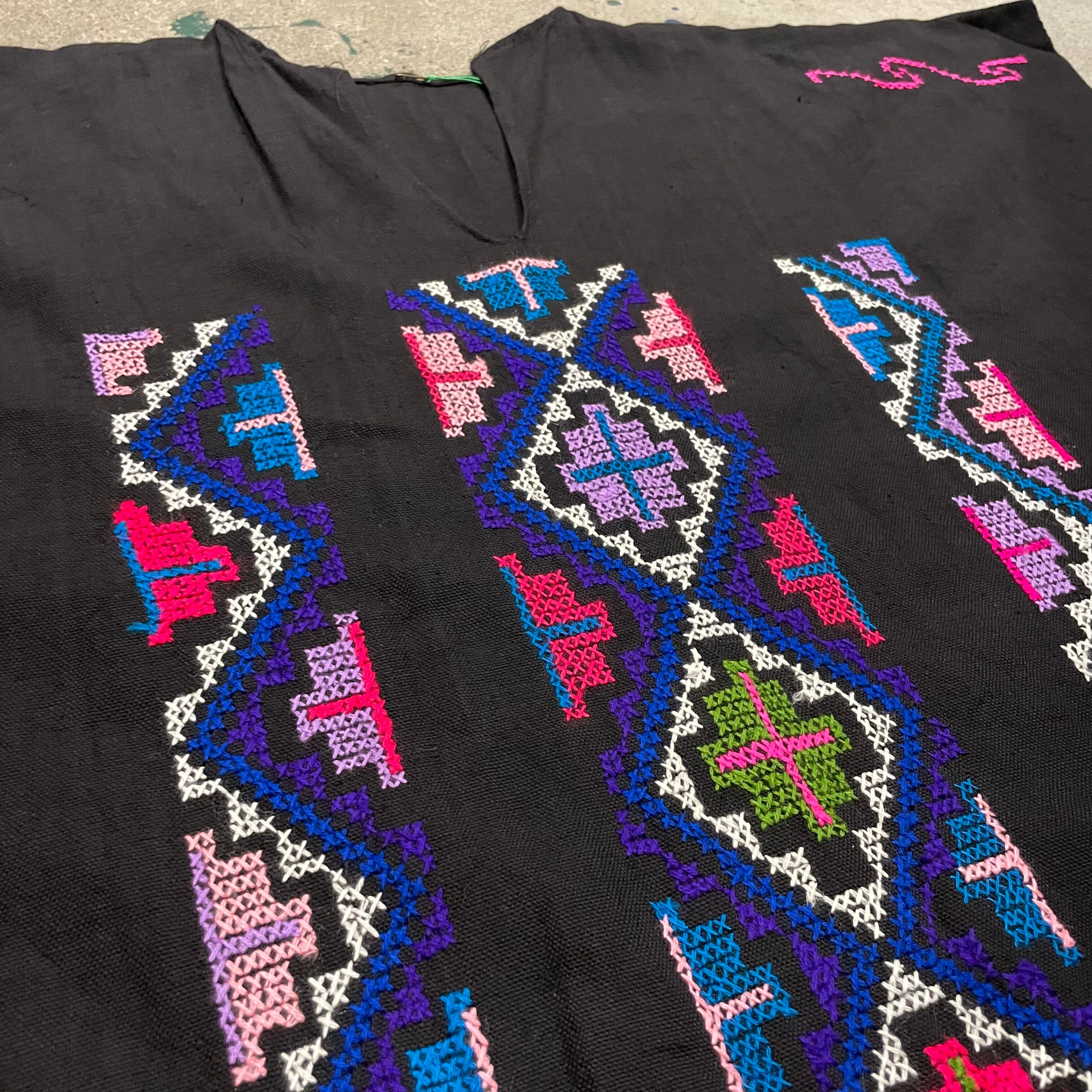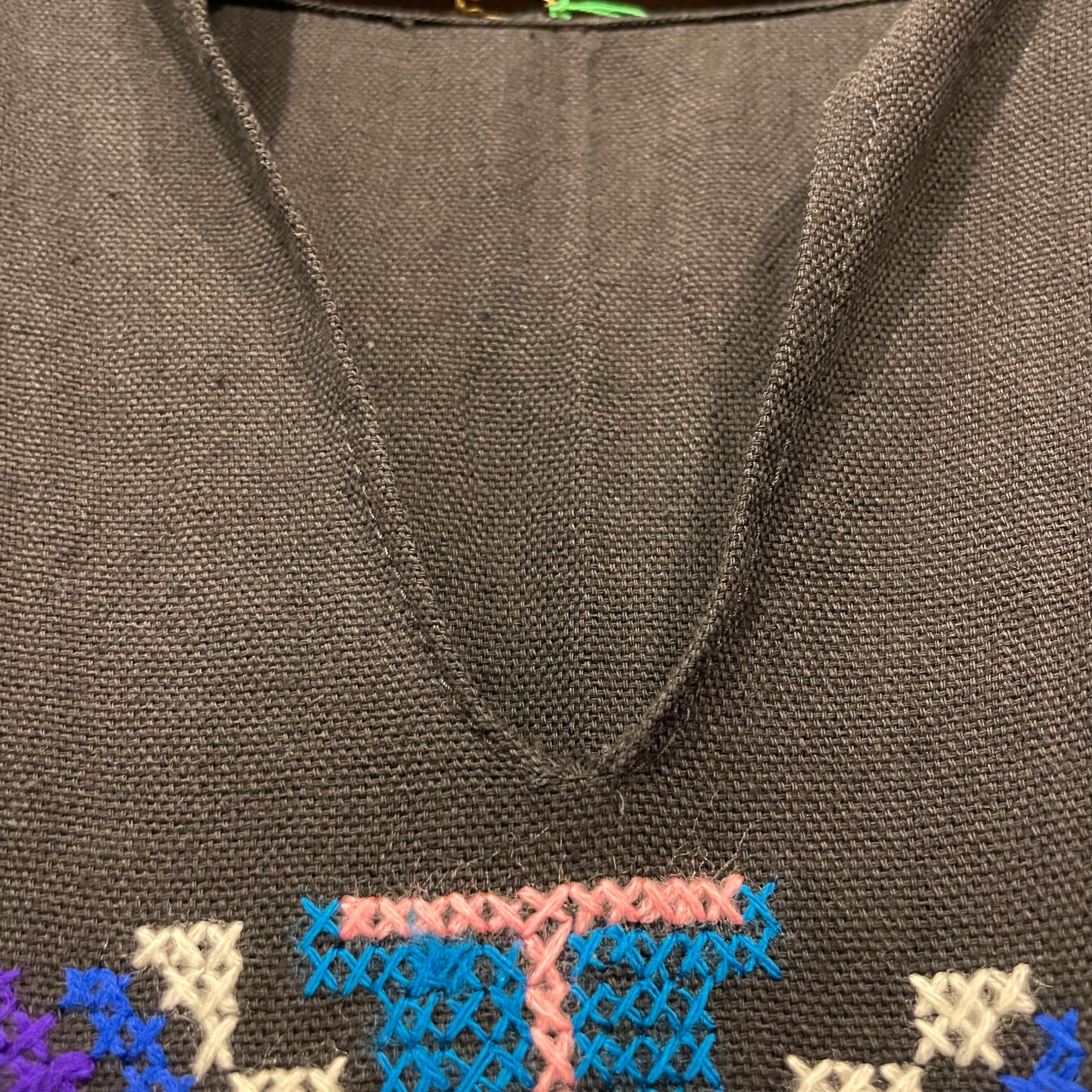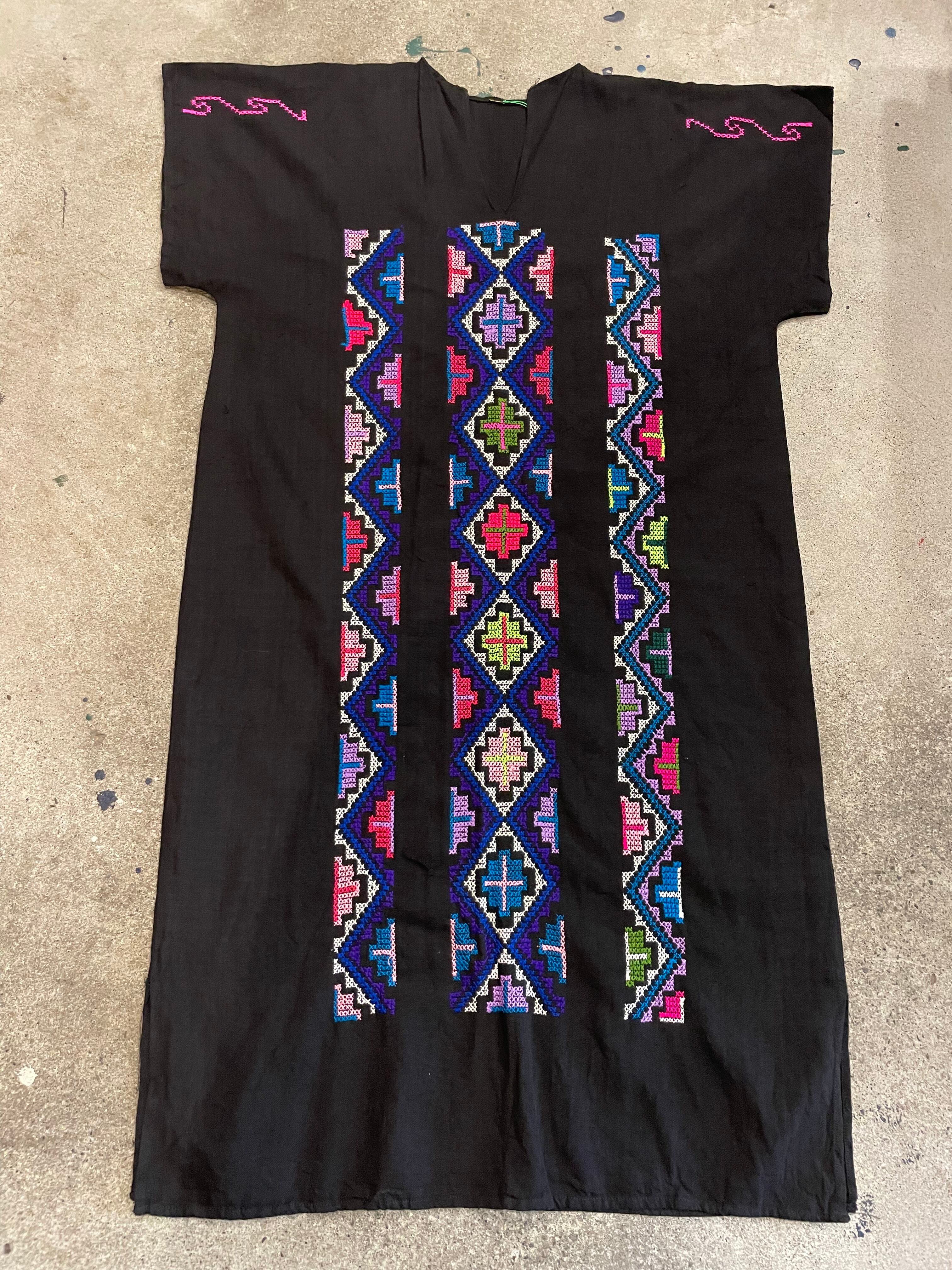 黒地にカラフルな手刺繍が映えて素敵なワンピースです。